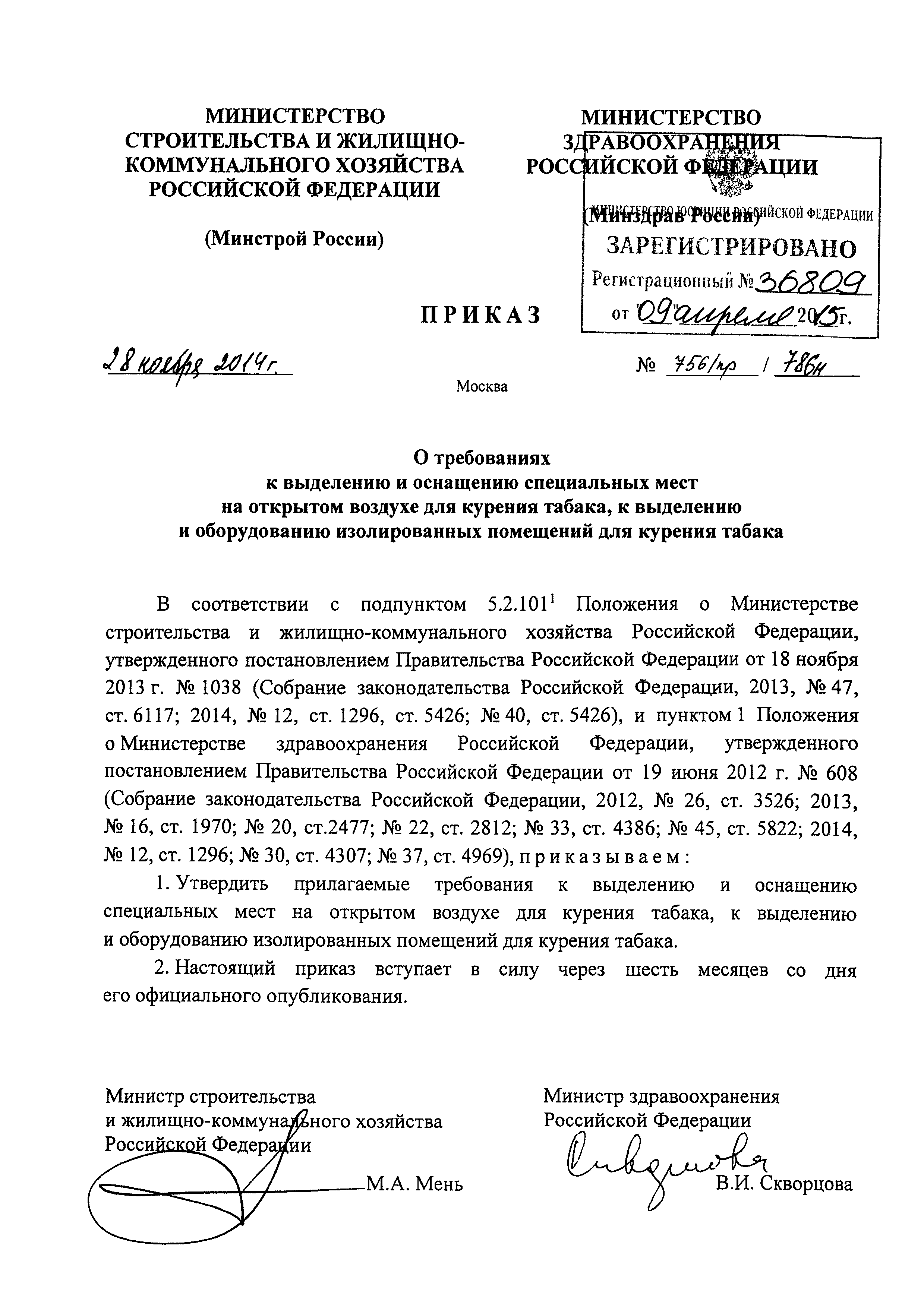 | Утверждён: | 28.11.2014 Министерство строительства и жилищно-коммунального хозяйства Российской Федерации (756/пр/786н) 28.11.2014 Министерство здравоохранения РФ (756/пр/786н) Министерство строительства и жилищно-коммунального хозяйства Российской Федерации (Минстрой России) |