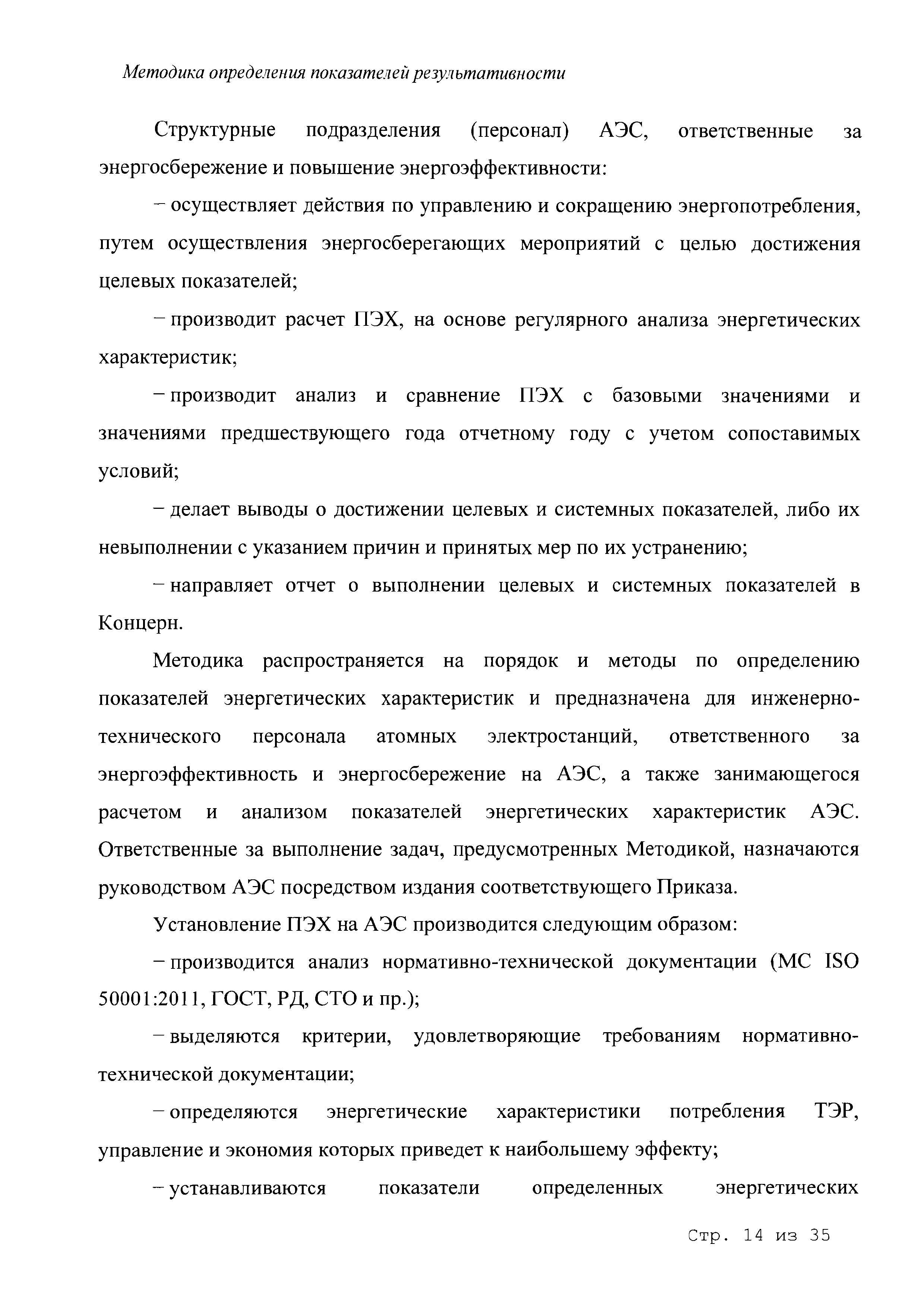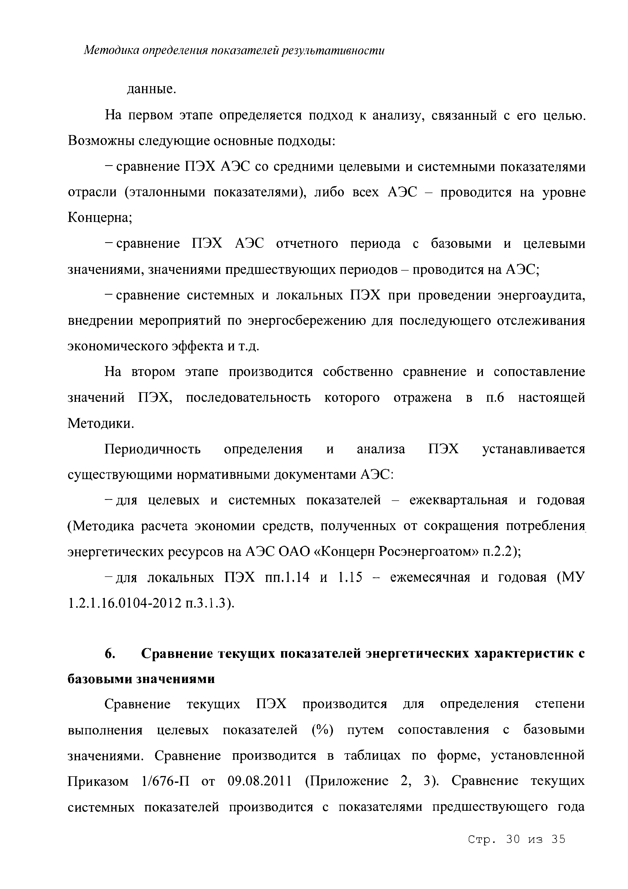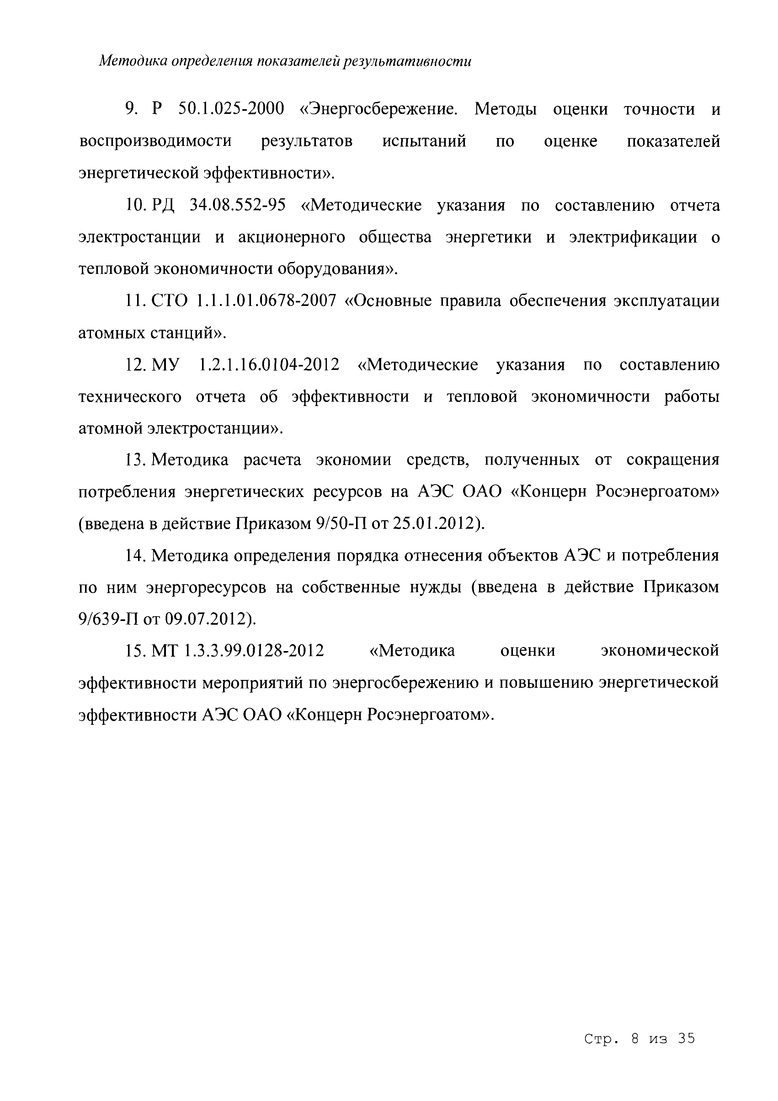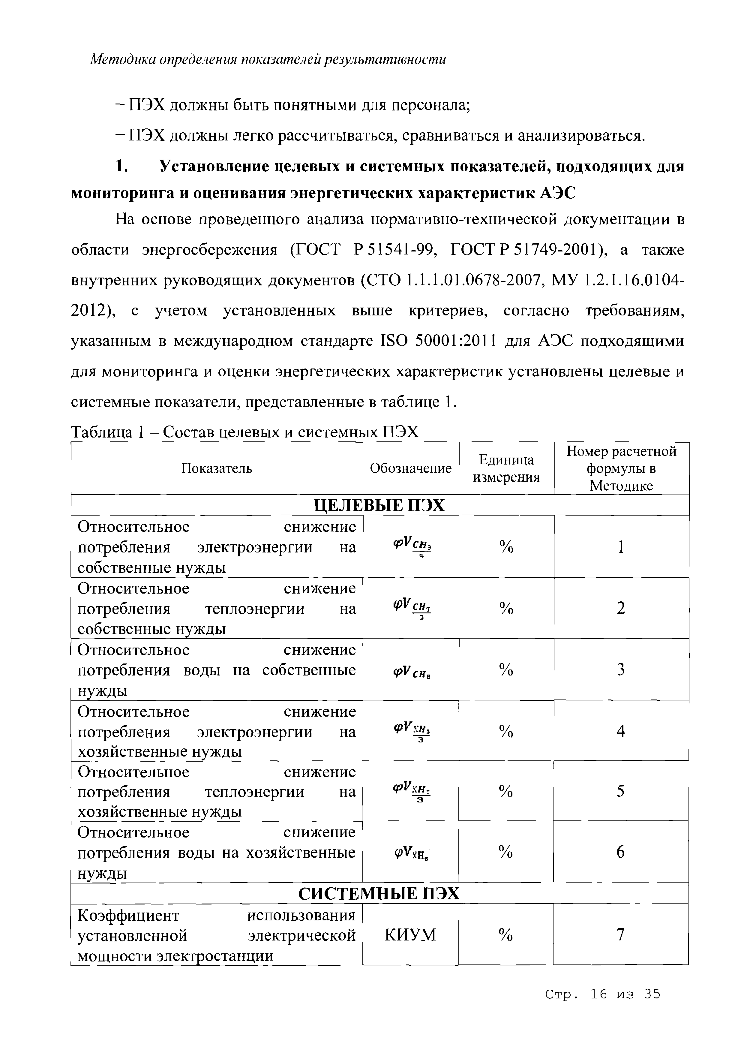 | Оглавление: | Область применения Нормативные ссылки Термины и определения Сокращения и обозначения Основные положения 1. Установление целевых и системных показателей, подходящих для мониторинга и оценивания энергетических характеристик АЭС 2. Установление локальных показателей, подходящих для мониторинга и оценивания энергетических характеристик 3. Актуализация показателей энергетических характеристик 4. Определение показателей энергетических характеристик 4.1. Определение относительного снижения потребления электроэнергии на собственные нужды 4.2. Определение относительного снижения потребления тепловой энергии на собственные нужды 4.3. Определение относительного снижения потребления воды на собственные нужды 4.4. Определение относительного снижения потребления электроэнергии на хозяйственные нужды 4.5. Определение относительного снижения потребления тепловой энергии на хозяйственные нужды 4.6. Определение относительного снижения потребления воды на хозяйственные нужды 4.7. Определение коэффициента использования установленной электрической мощности электростанции 4.8. Определение расхода электроэнергии на собственные нужды, отнесенного на выработку электроэнергии 4.9. Определение расхода электроэнергии на собственные нужды, отнесенного на отпуск теплоты 5. Проведение анализа показателей энергетических характеристик 6. Сравнение текущих показателей энергетических характеристик с базовыми значениями 7. Порядок управления Методикой Приложение 1. Исходные данные для расчета целевых и системных показателей Приложение 2. Сводная таблица о достижении целевого показателя в натуральных единицах Приложение 3. Сводная таблица о достижении целевого показателя в денежном выражении Приложение 4. Системные показатели работы АЭС |