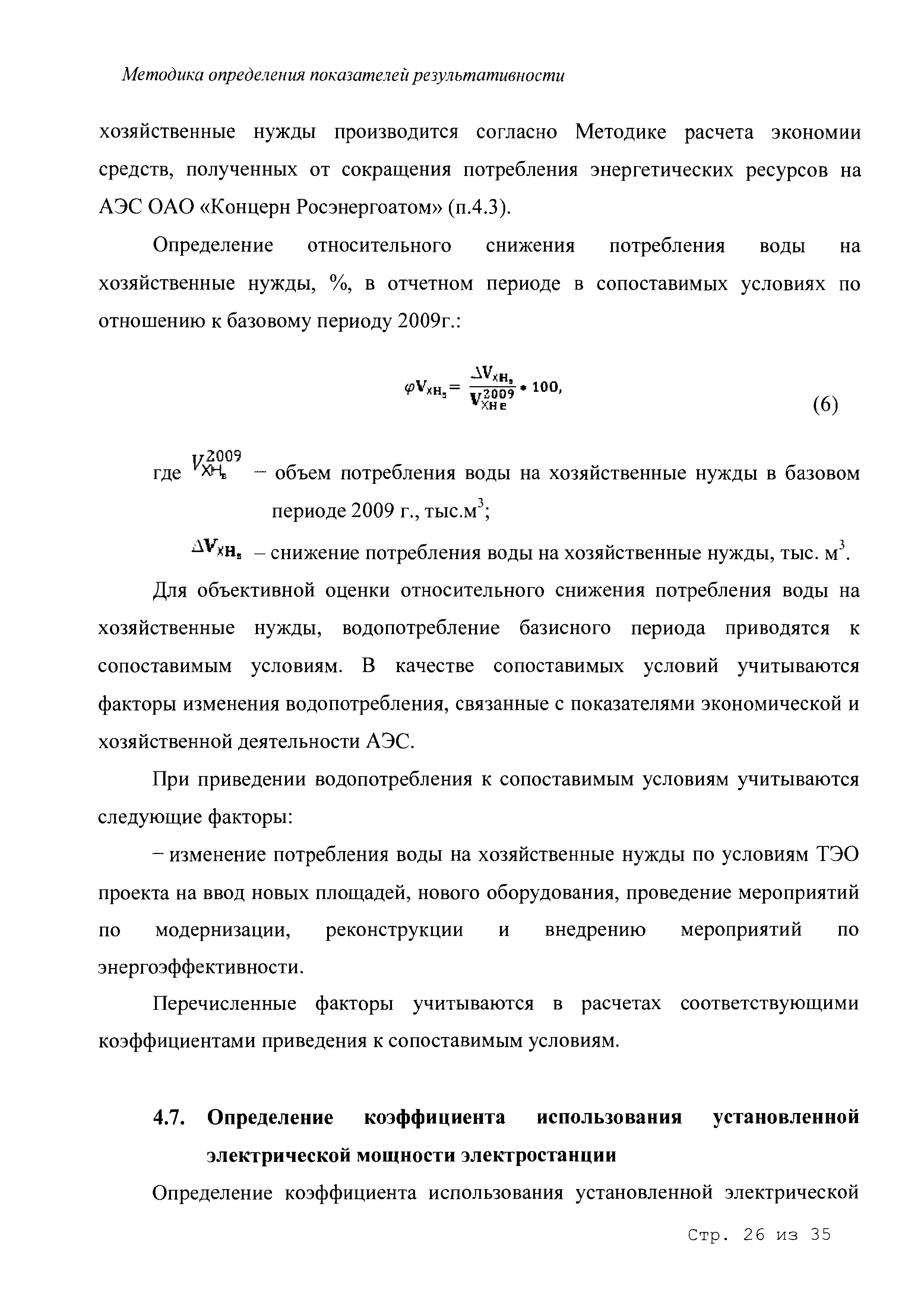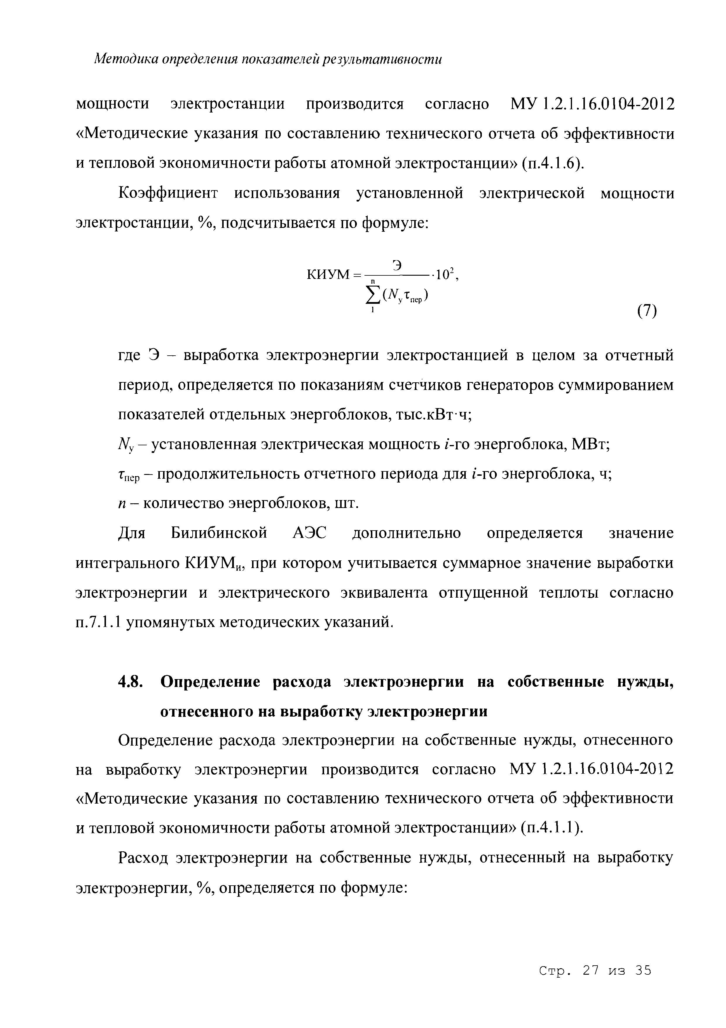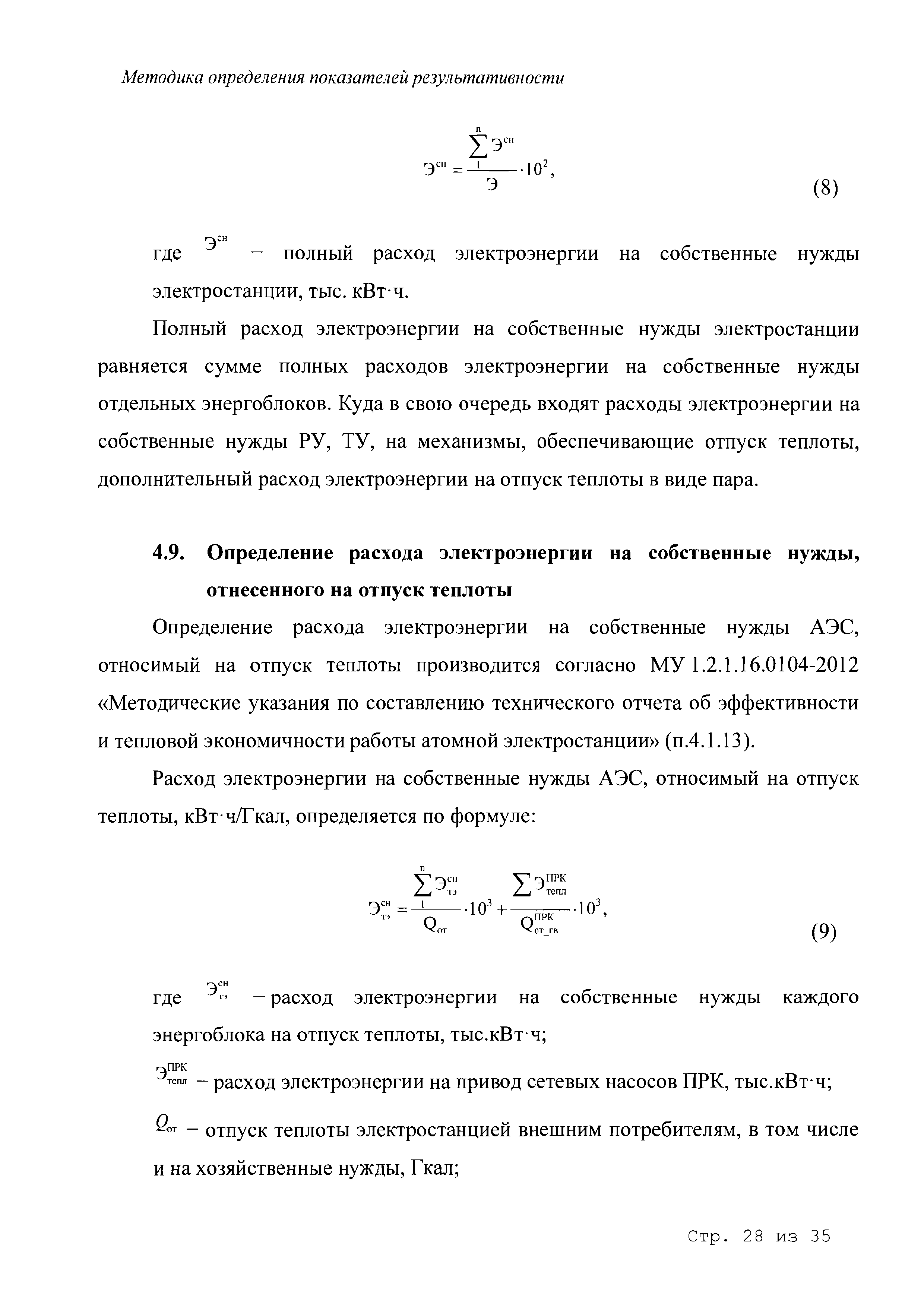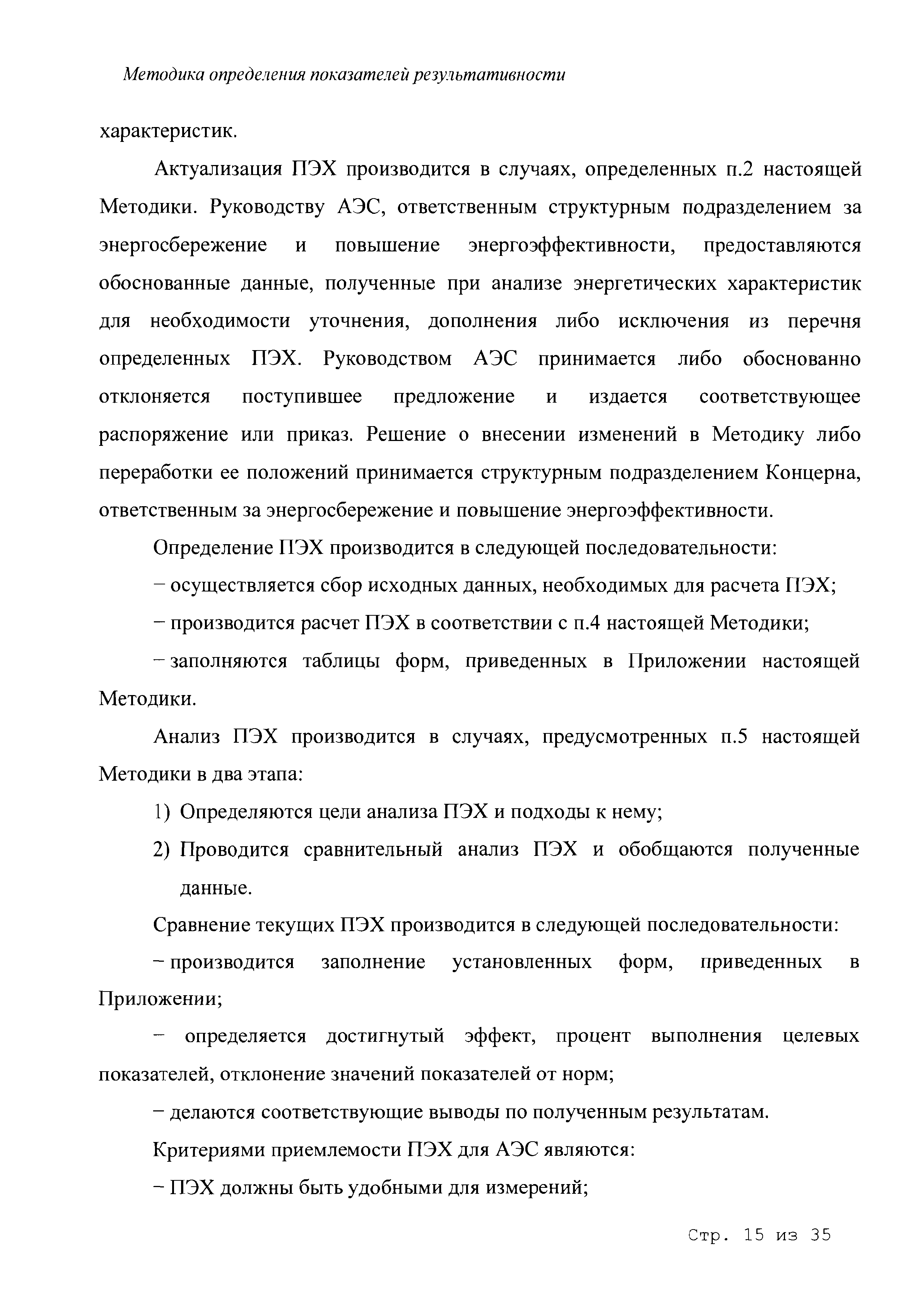 | Оглавление: | Область применения Нормативные ссылки Термины и определения Сокращения и обозначения Основные положения 1. Установление целевых и системных показателей, подходящих для мониторинга и оценивания энергетических характеристик АЭС 2. Установление локальных показателей, подходящих для мониторинга и оценивания энергетических характеристик 3. Актуализация показателей энергетических характеристик 4. Определение показателей энергетических характеристик 4.1. Определение относительного снижения потребления электроэнергии на собственные нужды 4.2. Определение относительного снижения потребления тепловой энергии на собственные нужды 4.3. Определение относительного снижения потребления воды на собственные нужды 4.4. Определение относительного снижения потребления электроэнергии на хозяйственные нужды 4.5. Определение относительного снижения потребления тепловой энергии на хозяйственные нужды 4.6. Определение относительного снижения потребления воды на хозяйственные нужды 4.7. Определение коэффициента использования установленной электрической мощности электростанции 4.8. Определение расхода электроэнергии на собственные нужды, отнесенного на выработку электроэнергии 4.9. Определение расхода электроэнергии на собственные нужды, отнесенного на отпуск теплоты 5. Проведение анализа показателей энергетических характеристик 6. Сравнение текущих показателей энергетических характеристик с базовыми значениями 7. Порядок управления Методикой Приложение 1. Исходные данные для расчета целевых и системных показателей Приложение 2. Сводная таблица о достижении целевого показателя в натуральных единицах Приложение 3. Сводная таблица о достижении целевого показателя в денежном выражении Приложение 4. Системные показатели работы АЭС |