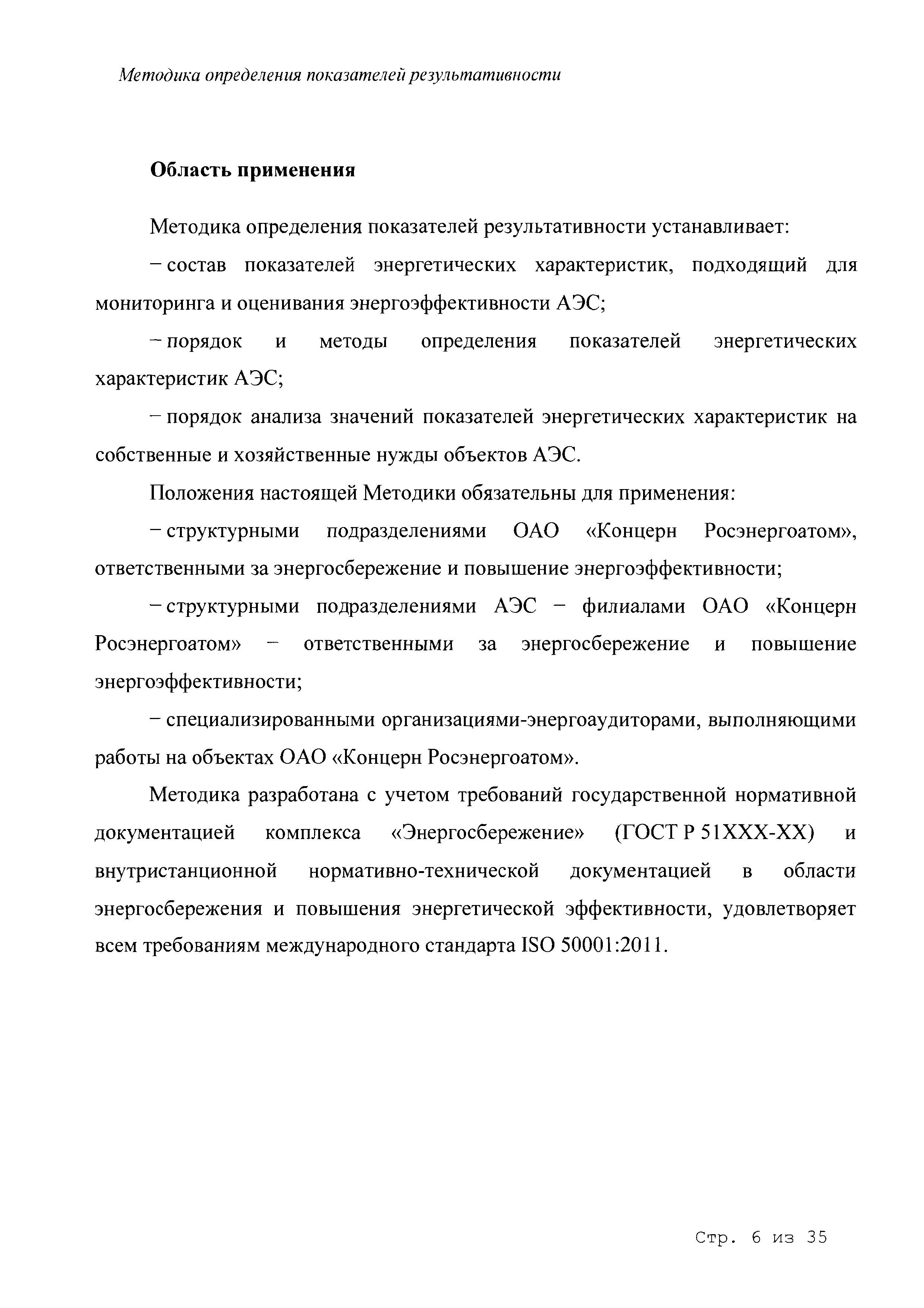 | Область применения: | Методика определения показателей результативности устанавливает состав показателей энергетических характеристик, подходящий для мониторинга и оценивания энергоэффективности АЭС; порядок и методы определения показателей энергетических характеристик АЭС; порядок анализа значений показателей энергетических характеристик на собственные и хозяйственные нужды объектов АЭС. |