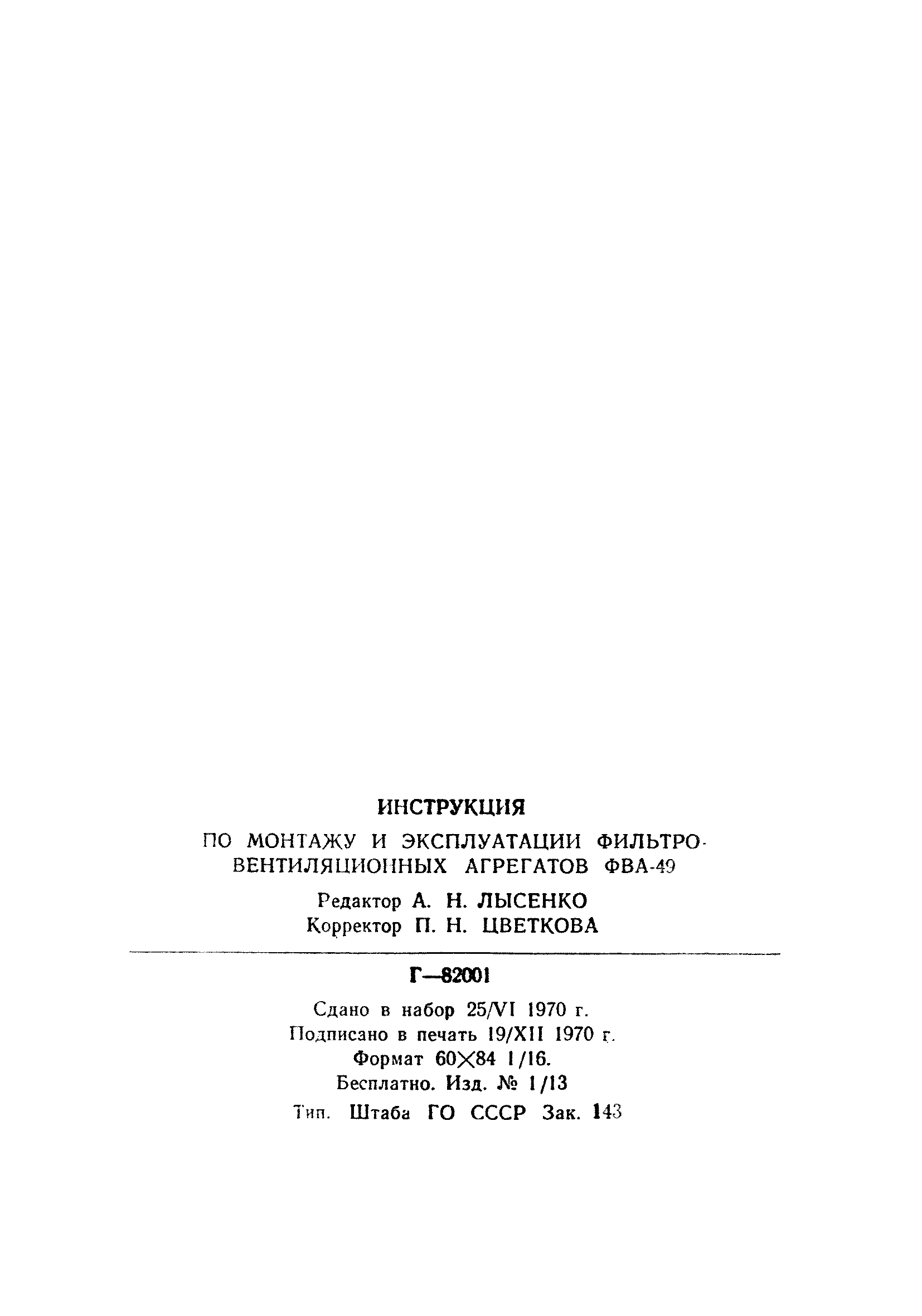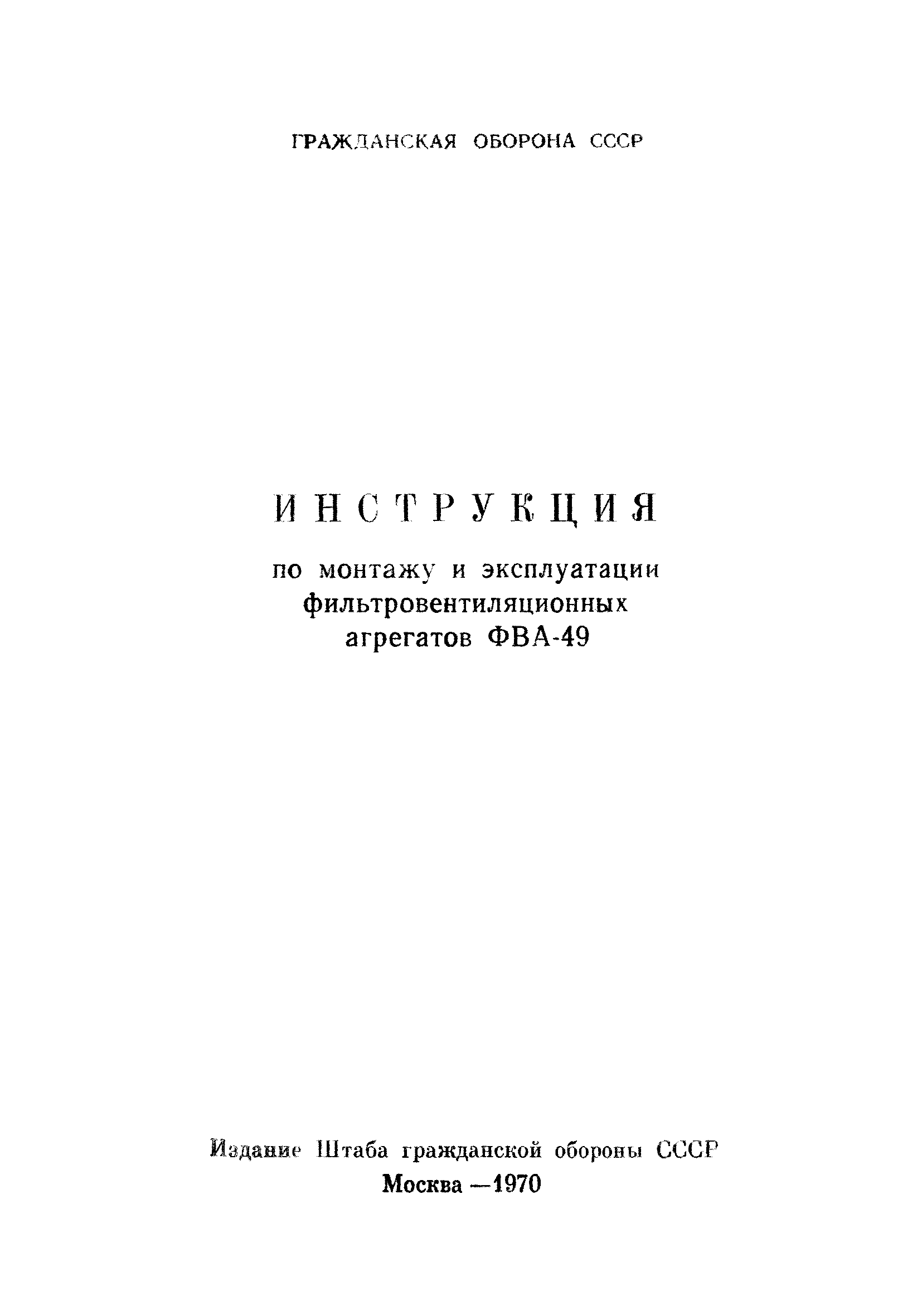 | Название рус.: | Инструкция по монтажу и эксплуатации фильтровентиляционных агрегатов ФВА-49 |