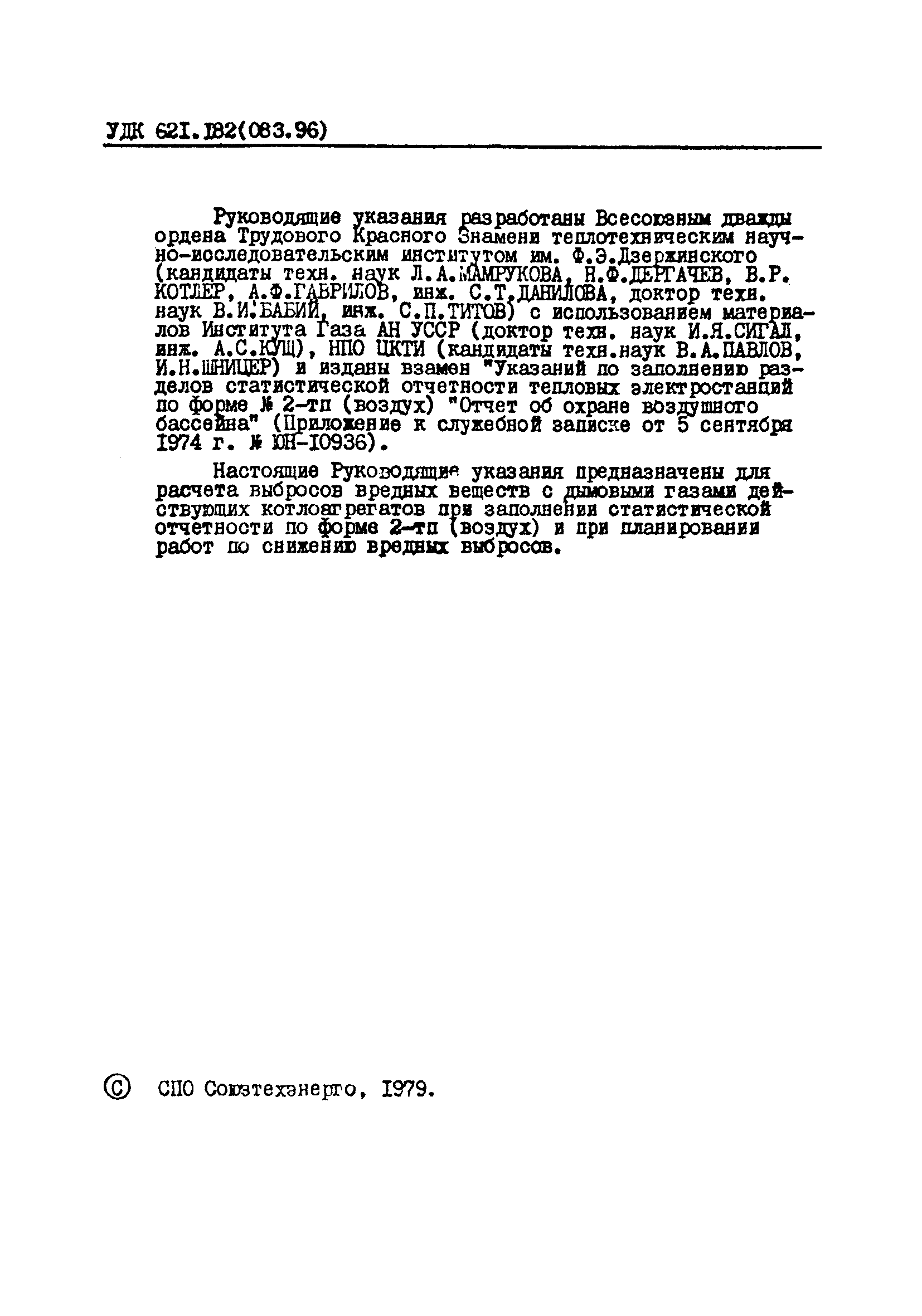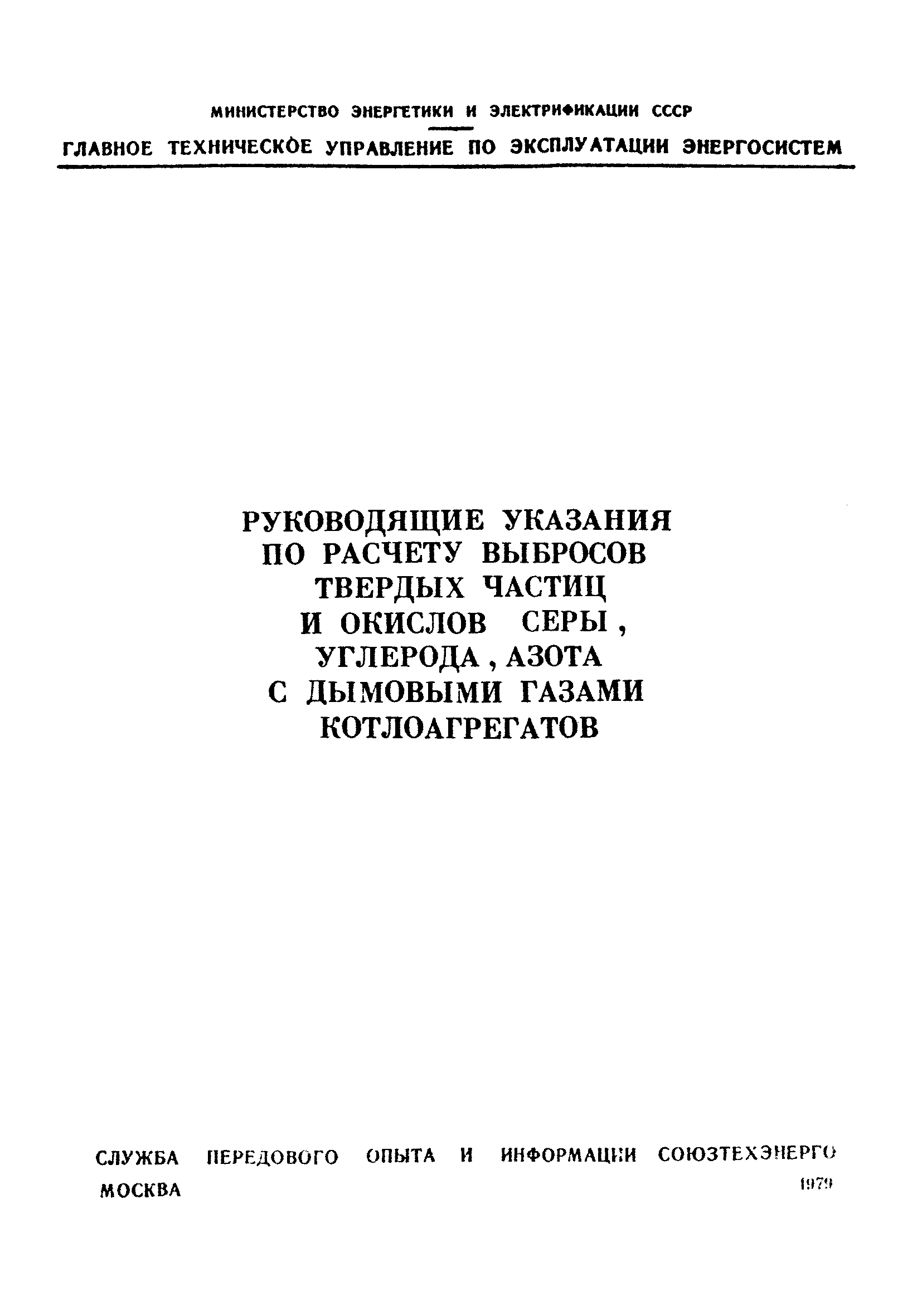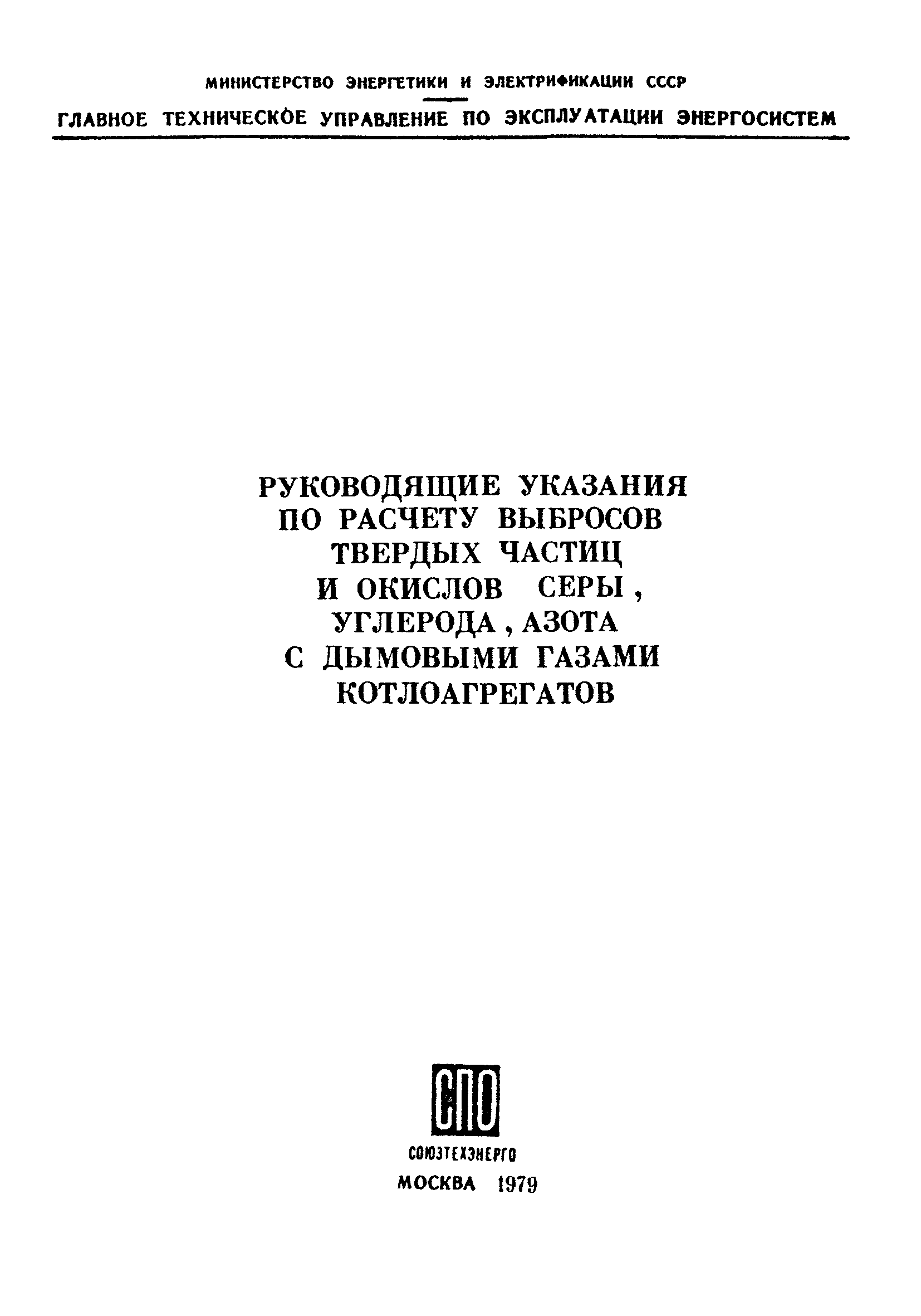 | Название рус.: | Руководящие указания по расчету выбросов твердых частиц и окислов серы, углерода, азота с дымовыми газами котлоагрегатов |