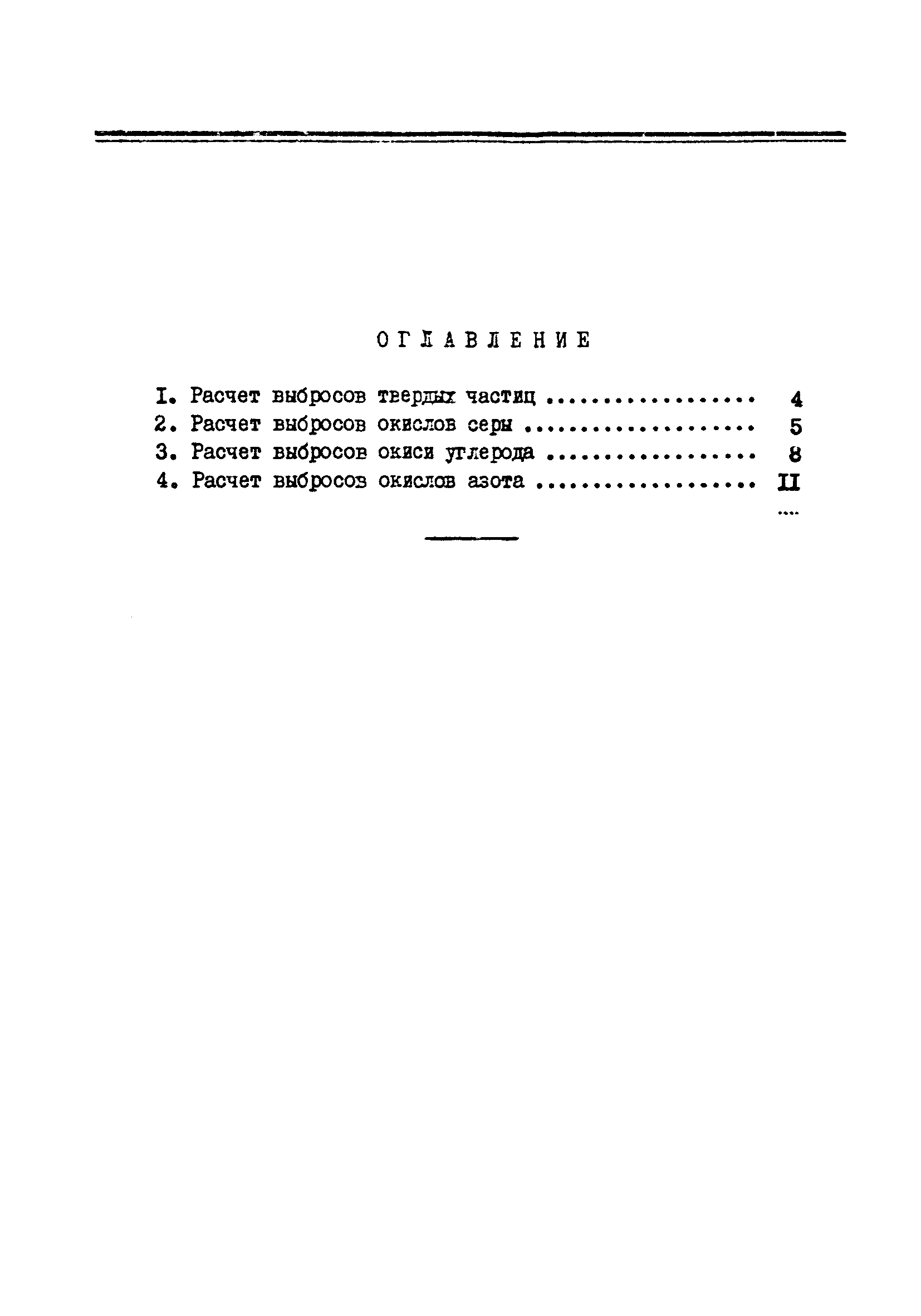 | Оглавление: | 1. Расчет выбросов твердых частиц 2. Расчет выбросов окислов серы 3. Расчет выбросов окиси углерода 4. Расчет выбросов окислов азота |