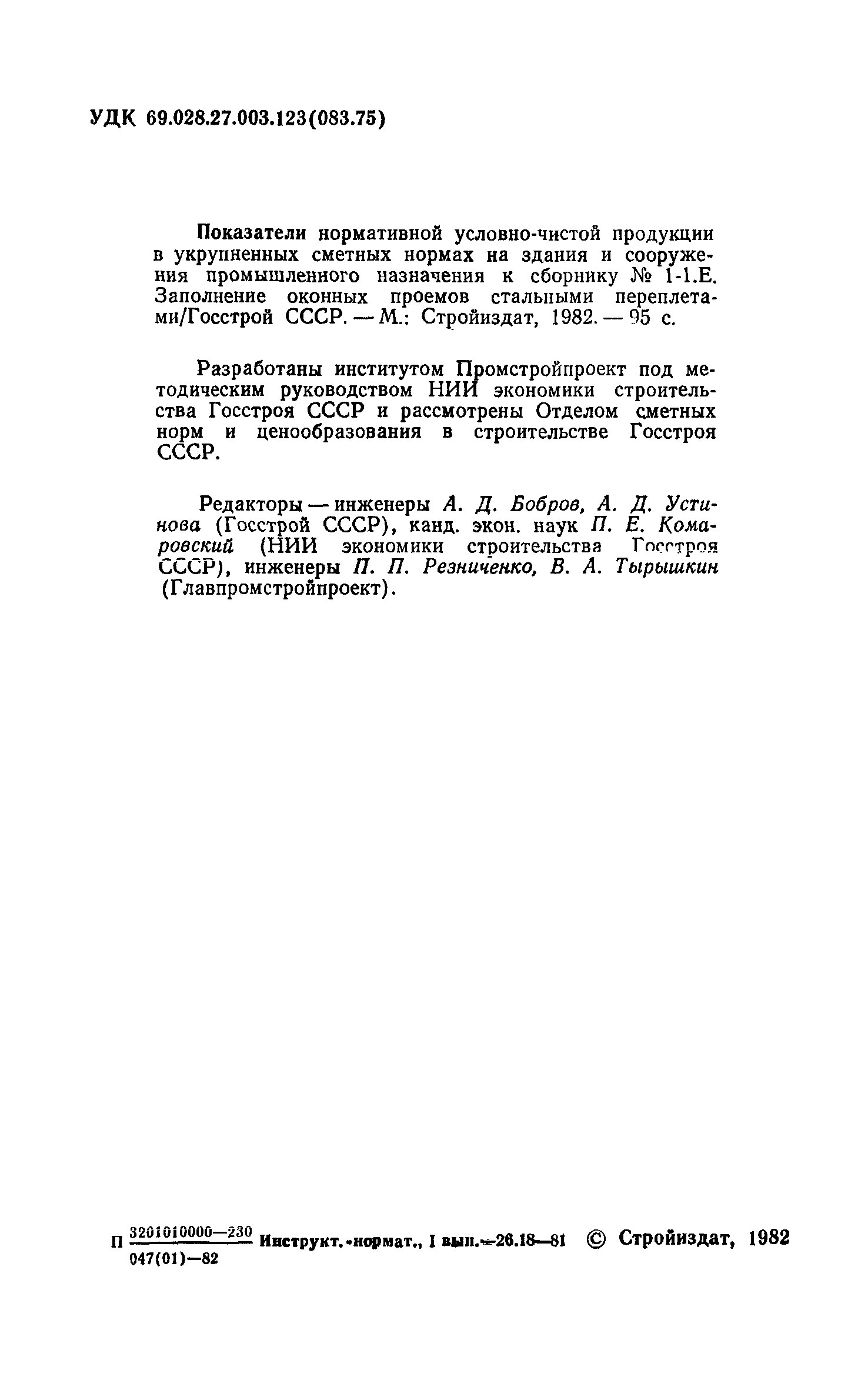 | Разработан: | НИИ экономики строительства Госстроя СССР Главпромстройпроект Промстройпроект
