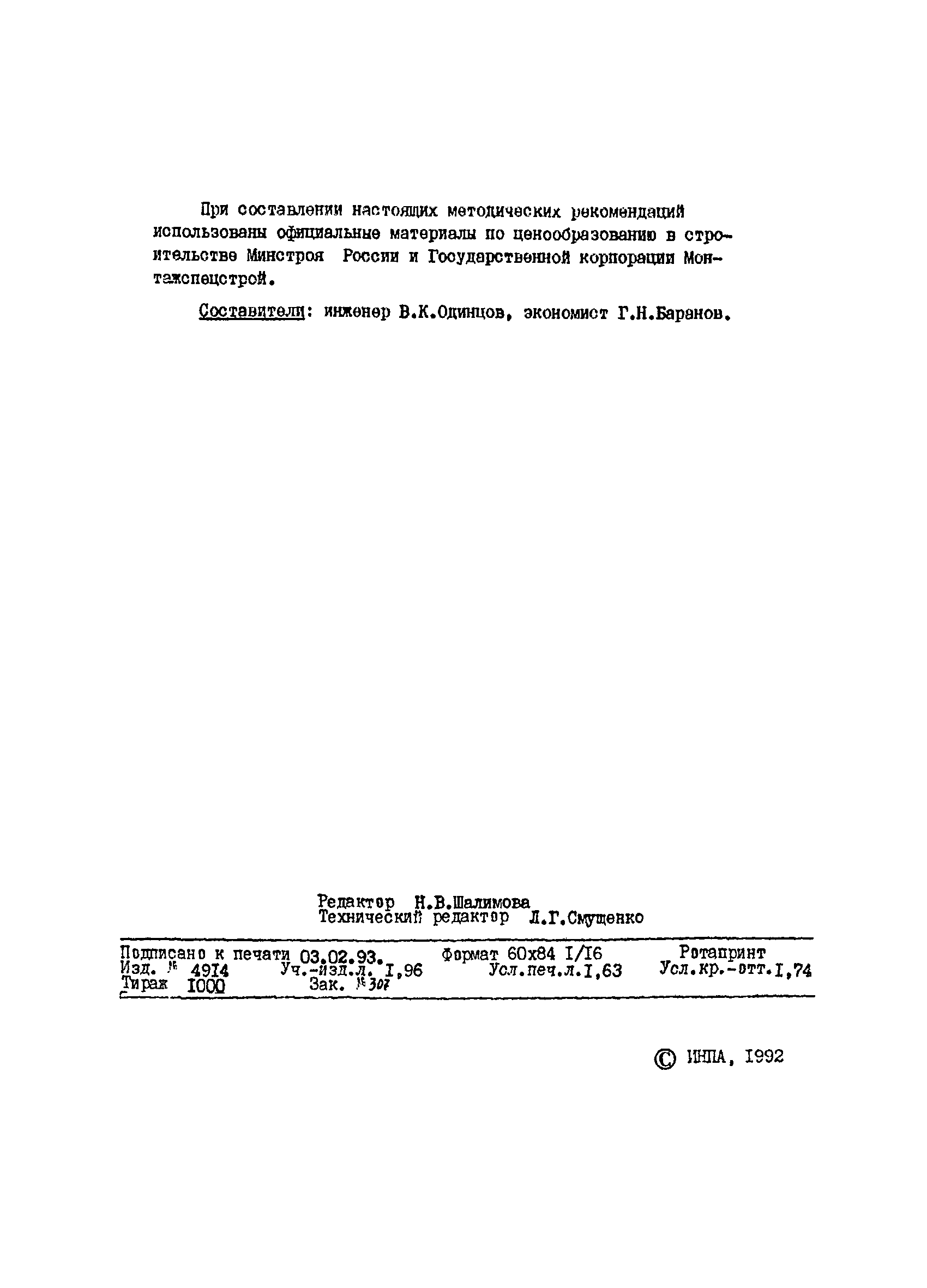 | Название рус.: | Методические рекомендации по определению стоимости монтажных и специальных строительных работ в условиях свободных цен |