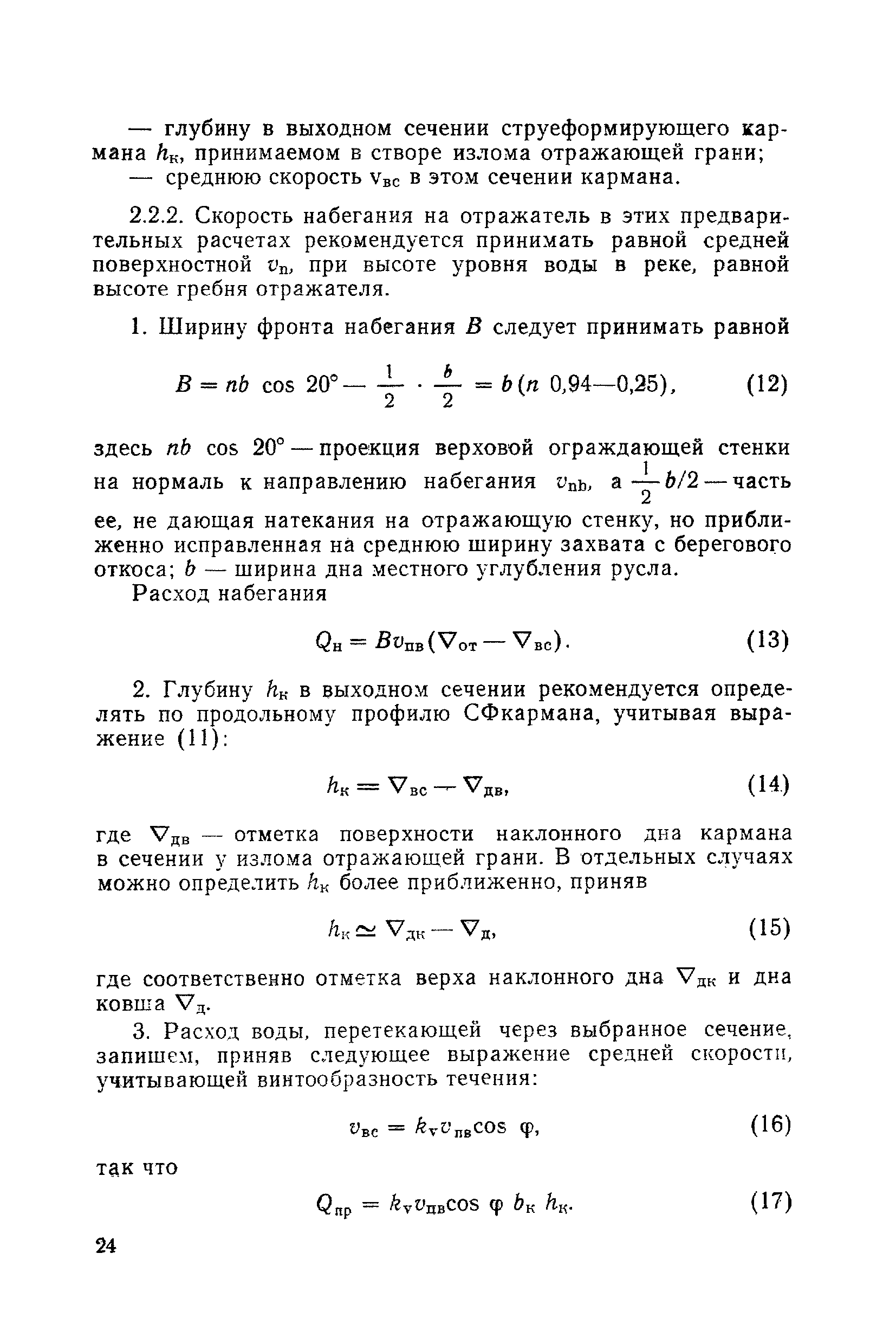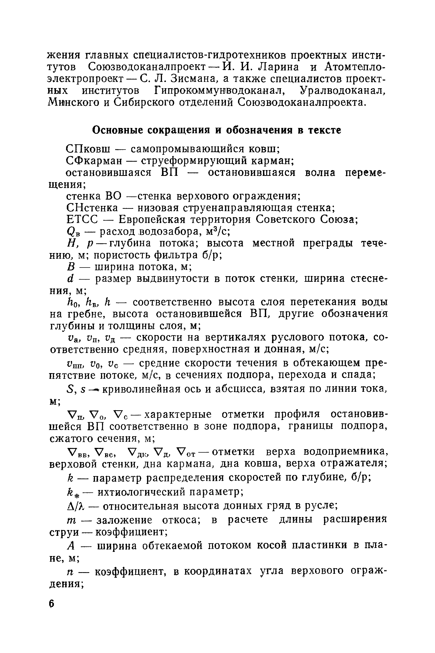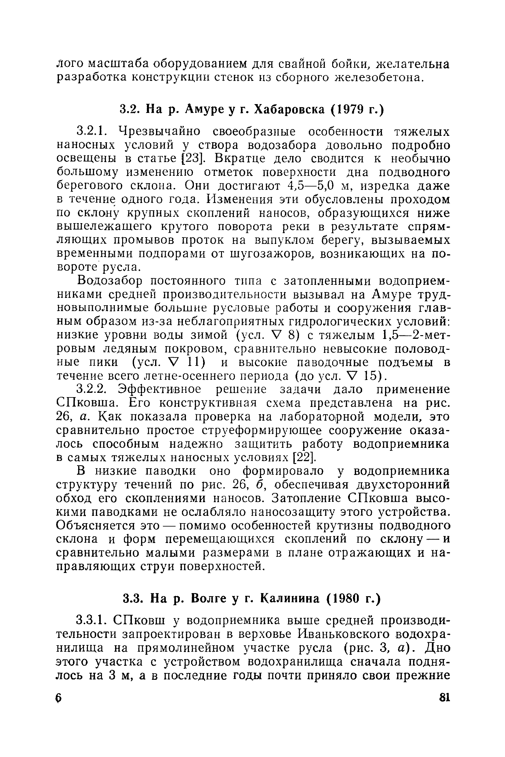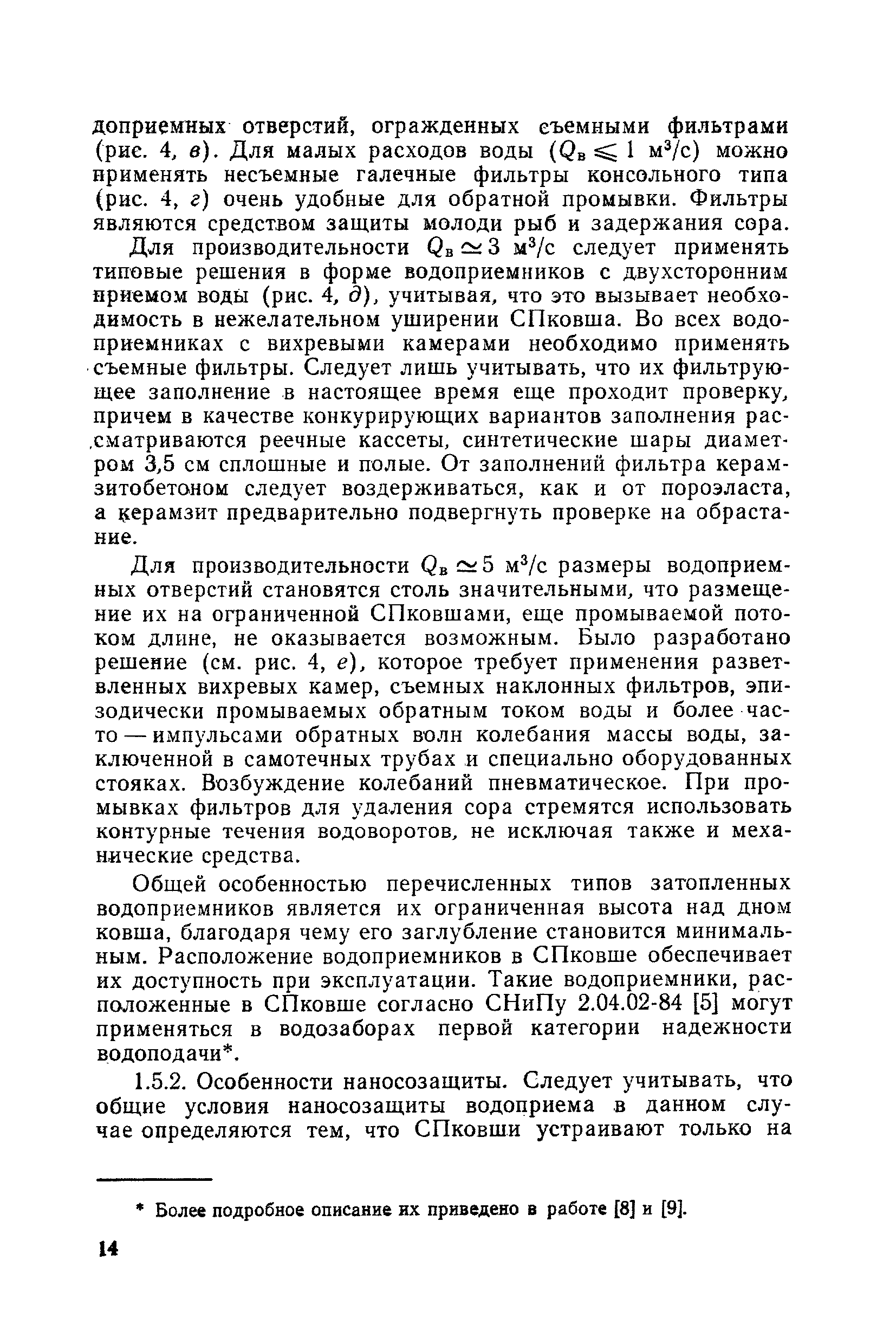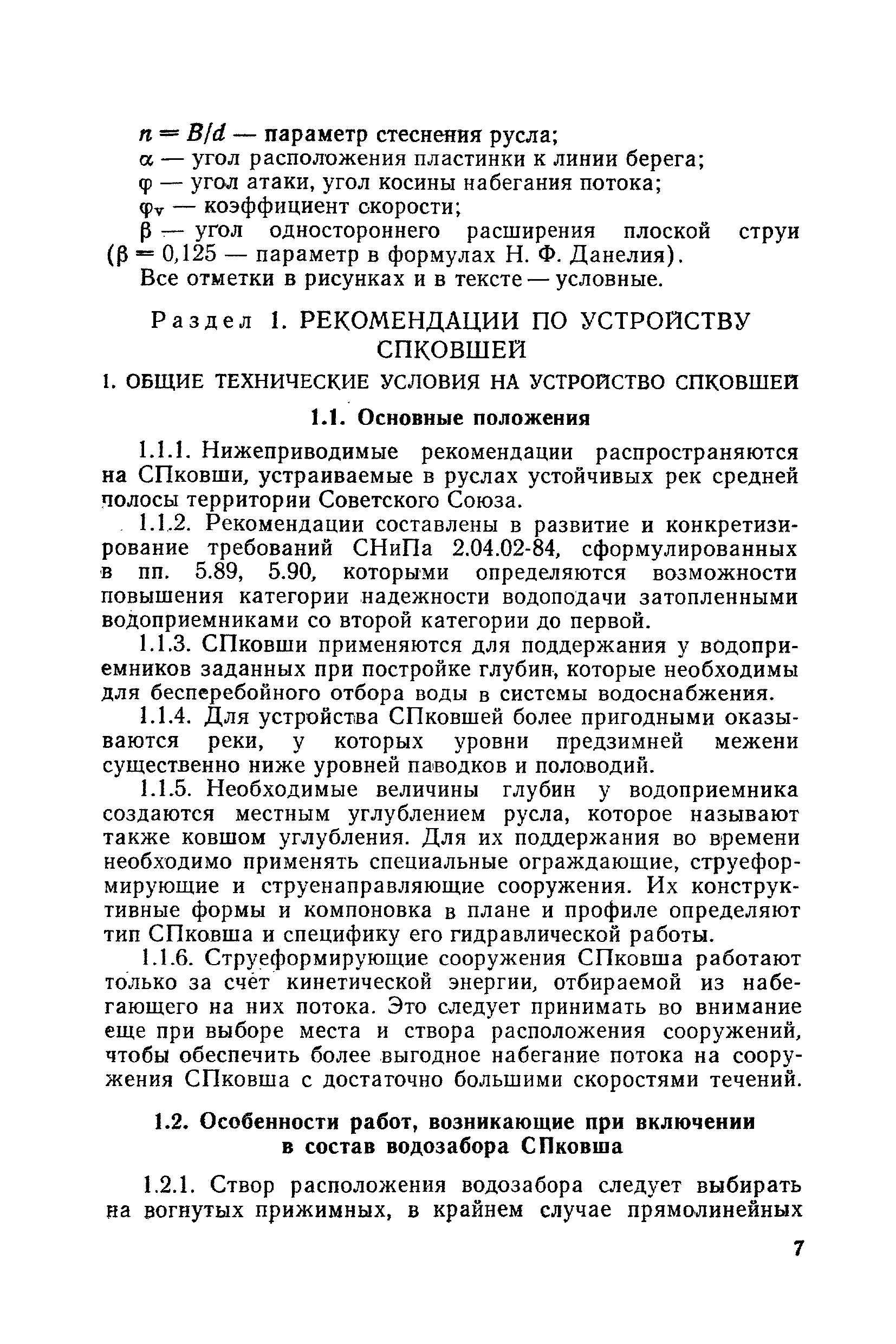 Рекомендации по проектированию самопромывающихся ковшей у затопленных водоприемников| Статус: | справочные материалы, мп, тпр | | Название рус.: | Рекомендации по проектированию самопромывающихся ковшей у затопленных водоприемников | | Дата добавления в базу: | 21.05.2015 | | Дата актуализации: | 01.01.2021 | | Область применения: | Рекомендации составлены на основе обобщения результатов исследований, выполненных во ВНИИ ВОДГЕО с 1944 года в связи с проектированием и постройкой водозаборов для водоснабжения промышленных предприятий. Методика гидравлического расчета Спковшей разработана для более усовершенствованной схемы Спковша с вертикальными стенками, предлагаемой для предстоящего составления типового проекта. Все результаты разработок прежних лет, которые не потеряли практического интереса и могут использоваться как примеры для проектирования, а также результаты исследований последних лет приведены в приложениях | | Оглавление: | Введение Основные сокращения и обозначения Раздел 1. Рекомендации по устройству СПковшей 1. Общие технические условия на устройство СПковшей 1.1. Основные положения 1.2. Особенности работ, возникающие при включении в состав водозабора СПковша 1.3. Классификация конструктивно-компоновочных схем СПковшей 1.4. Характерные гидравлические режимы работы СПковшей 1.5. Особенности защиты водоприемников, размещенных в СПковшах, от наносов, шугольда и сора 1.6. Способы рыбозащиты при водоотборе из СПковша 2. Рекомендации по проектированию СПковшей с вертикальными стенками 2.1. Выбор конструктивной и компоновочной схем СПковша 2.2. Выбор варианта компоновки сооружений в плане 2.3. Особенности конструктивных форм и компоновки СПковша 3. Гидравлические расчеты СПковша для периода межени 3.1. Основные задачи и особенности расчета. Исходные данные 3.2. Расчет обтекающего СПковша потока 3.3. Расчет контура обхода СПковша донными износами 3.4. Расчеты области водоворота при малых водоотборах из его акватории 3.5. Особые формы структуры течений водоворота 4. Гидравлические расчеты СПковша для периода паводков 4.1. Расчет обтекания СПковша в паводок 4.2. Расчет перетекания в СФкарман через стенку верхового ограждения и течений в нем 4.3. Расчеты скоростей течения в СФкармане и в ковше углубления вдоль водоприемника Раздел 2. Приложения. Материалы для проектирования СПковшей Предварительные замечания 1. СПковши, разработанные для условий рек Кузбасса 1.1. Первые решения военных и послевоенных лет 1.2. Решения, найденные для реконструкции действующих водоприемных ковшей традиционных типов 1.3. Самопромывающийся вход ковша у пойменного берега ниже Новокузнецка 2. СПковши, разработанные для условий рек средней полосы территории Советского Союза 2.1. СПковши, огражденные одной верховой шпорой выдвинутой в русло реки 2.2. СПковши, огражденные двумя дамбами, выдвинутыми в русло с бычком-отражателем между ними 2.3. СПковши, вынесенные из русла с откосными отражателями 2.4. СПковши, размещенные в местном уширении русла судоходной реки, с косыми вертикальным отражателем и каналом на береговом откосе 2.5. СПковши, огражденные вертикальными стенками 2.6. СПковши с индивидуальными конструктивными схемами 2.7. Краткие выводы 3. Примеры решений СПковша последних лет 3.1. На одной из рек Белоруссии (1982 год) 3.2. На р. Амуре у г. Хабаровска (1979 год) 3.3. На реке Волге у г