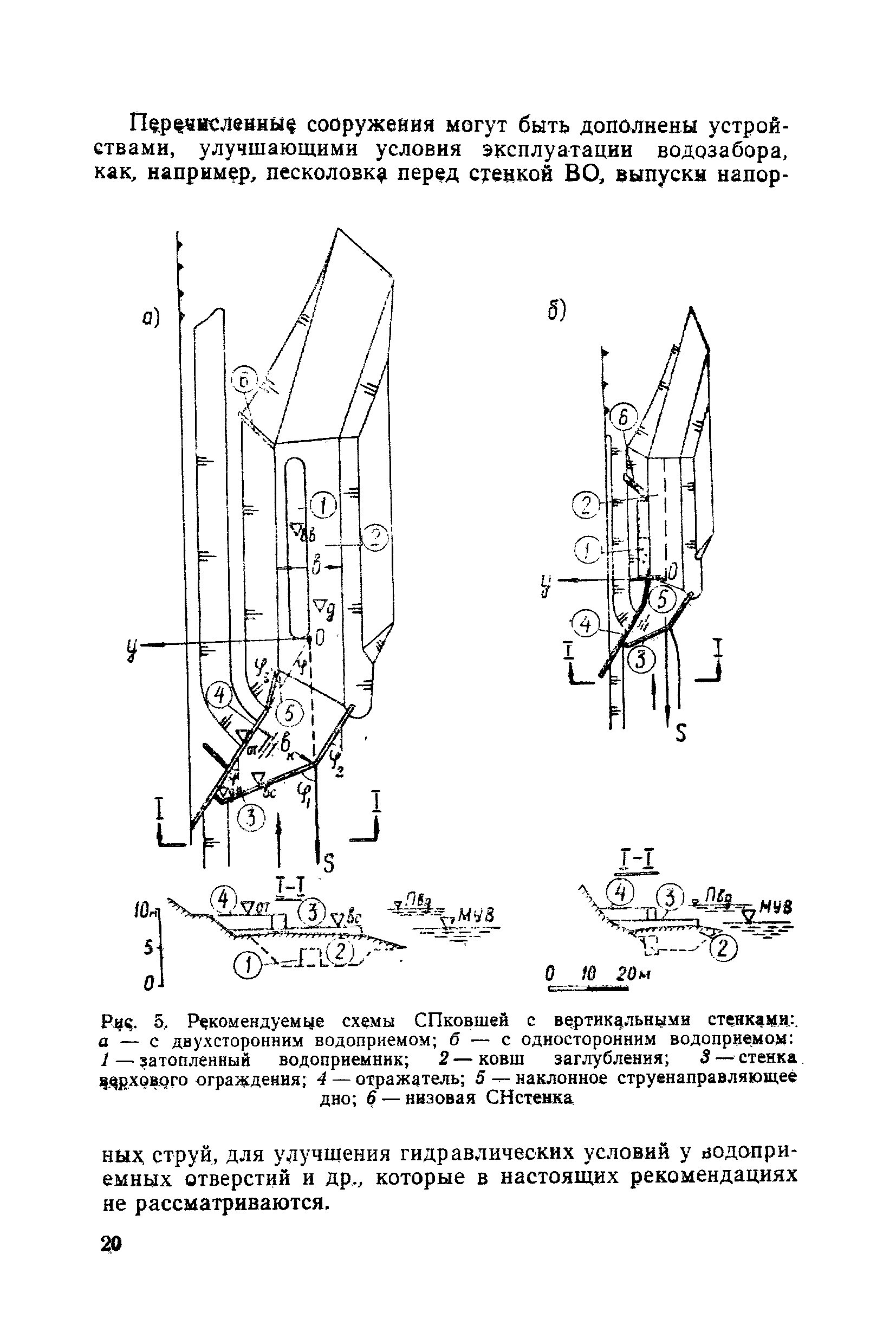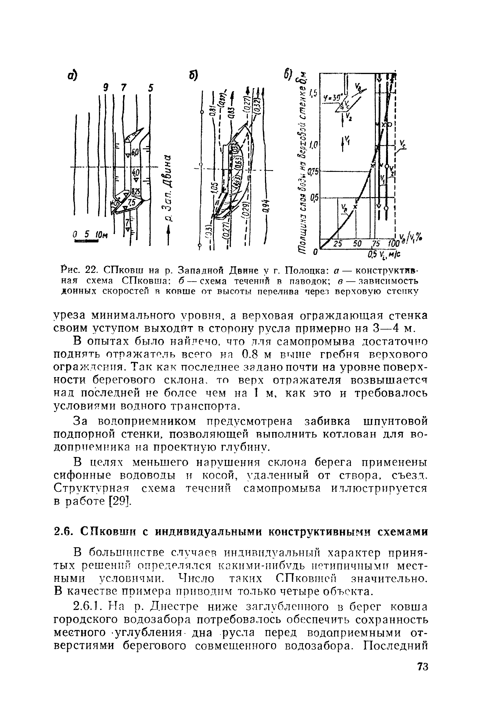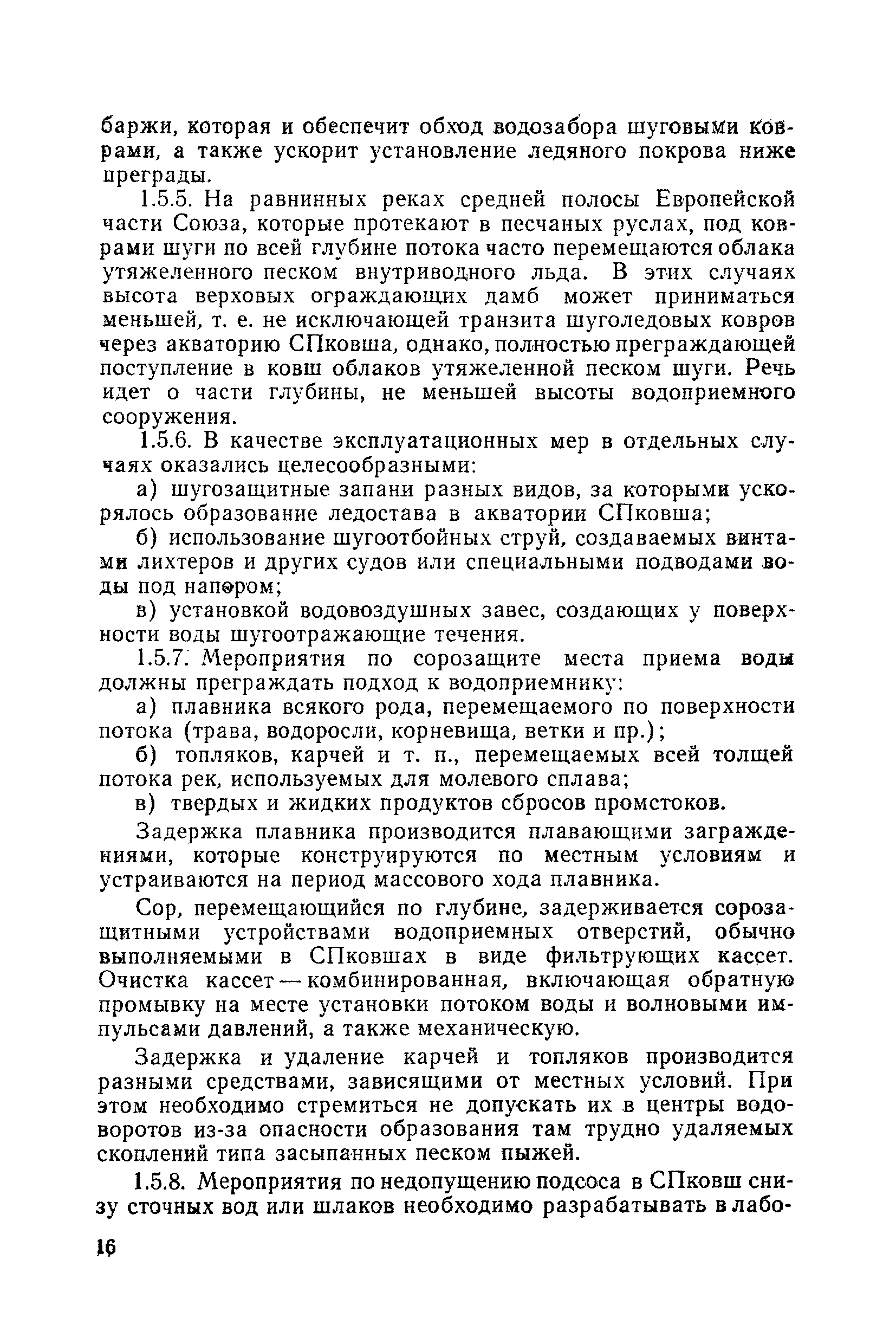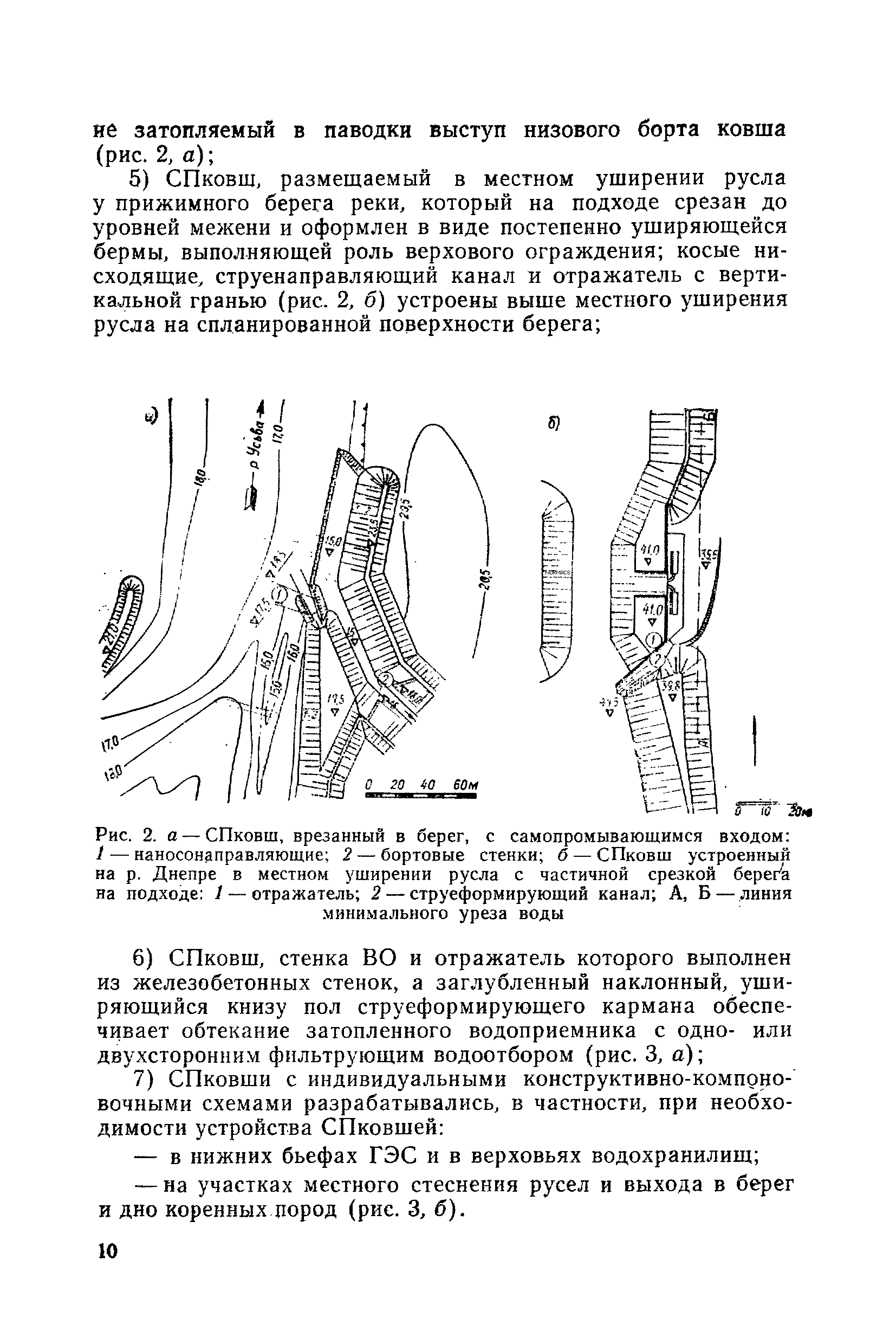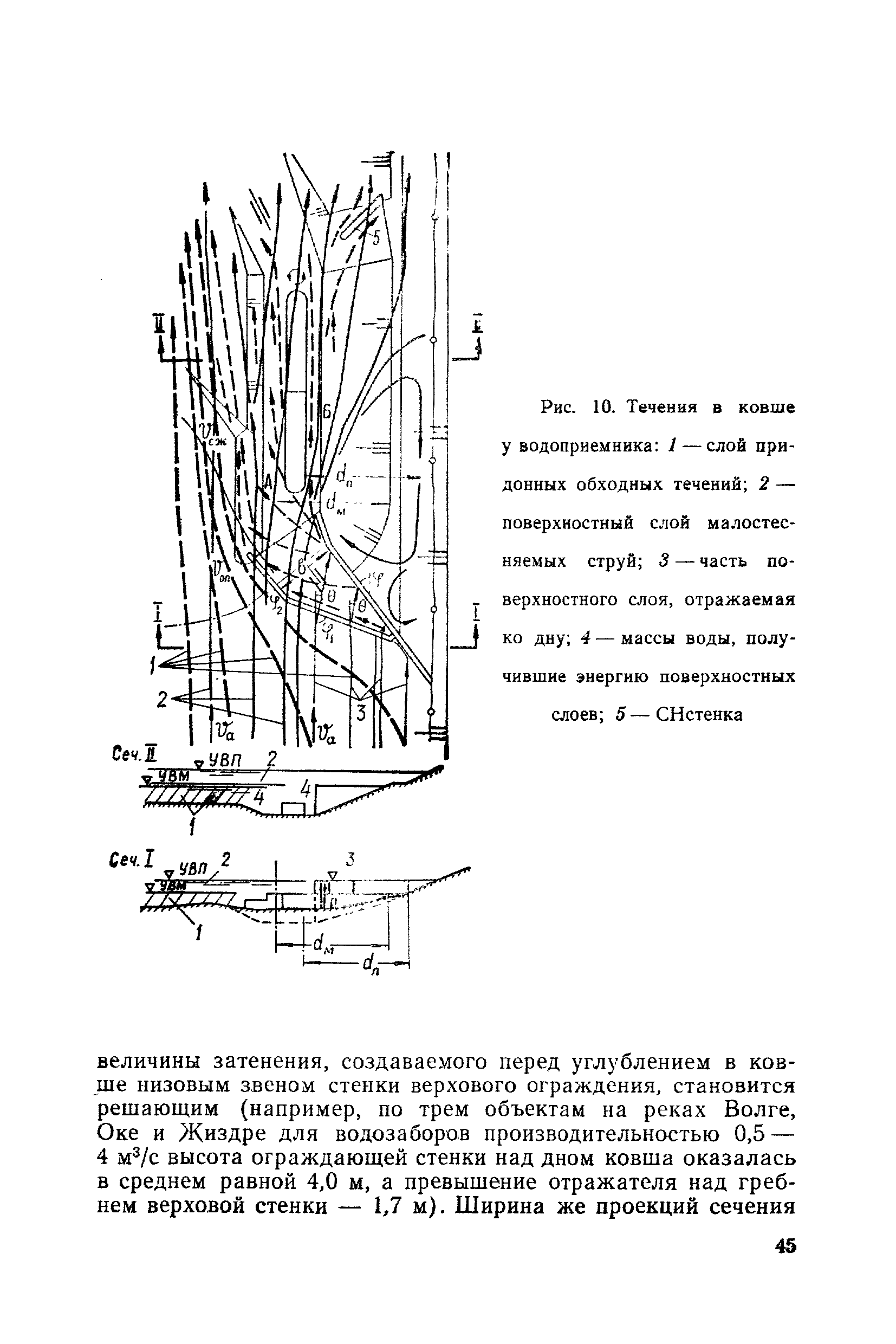 Рекомендации по проектированию самопромывающихся ковшей у затопленных водоприемников| Статус: | справочные материалы, мп, тпр | | Название рус.: | Рекомендации по проектированию самопромывающихся ковшей у затопленных водоприемников | | Дата добавления в базу: | 21.05.2015 | | Дата актуализации: | 01.01.2021 | | Область применения: | Рекомендации составлены на основе обобщения результатов исследований, выполненных во ВНИИ ВОДГЕО с 1944 года в связи с проектированием и постройкой водозаборов для водоснабжения промышленных предприятий. Методика гидравлического расчета Спковшей разработана для более усовершенствованной схемы Спковша с вертикальными стенками, предлагаемой для предстоящего составления типового проекта. Все результаты разработок прежних лет, которые не потеряли практического интереса и могут использоваться как примеры для проектирования, а также результаты исследований последних лет приведены в приложениях | | Оглавление: | Введение Основные сокращения и обозначения Раздел 1. Рекомендации по устройству СПковшей 1. Общие технические условия на устройство СПковшей 1.1. Основные положения 1.2. Особенности работ, возникающие при включении в состав водозабора СПковша 1.3. Классификация конструктивно-компоновочных схем СПковшей 1.4. Характерные гидравлические режимы работы СПковшей 1.5. Особенности защиты водоприемников, размещенных в СПковшах, от наносов, шугольда и сора 1.6. Способы рыбозащиты при водоотборе из СПковша 2. Рекомендации по проектированию СПковшей с вертикальными стенками 2.1. Выбор конструктивной и компоновочной схем СПковша 2.2. Выбор варианта компоновки сооружений в плане 2.3. Особенности конструктивных форм и компоновки СПковша 3. Гидравлические расчеты СПковша для периода межени 3.1. Основные задачи и особенности расчета. Исходные данные 3.2. Расчет обтекающего СПковша потока 3.3. Расчет контура обхода СПковша донными износами 3.4. Расчеты области водоворота при малых водоотборах из его акватории 3.5. Особые формы структуры течений водоворота 4. Гидравлические расчеты СПковша для периода паводков 4.1. Расчет обтекания СПковша в паводок 4.2. Расчет перетекания в СФкарман через стенку верхового ограждения и течений в нем 4.3. Расчеты скоростей течения в СФкармане и в ковше углубления вдоль водоприемника Раздел 2. Приложения. Материалы для проектирования СПковшей Предварительные замечания 1. СПковши, разработанные для условий рек Кузбасса 1.1. Первые решения военных и послевоенных лет 1.2. Решения, найденные для реконструкции действующих водоприемных ковшей традиционных типов 1.3. Самопромывающийся вход ковша у пойменного берега ниже Новокузнецка 2. СПковши, разработанные для условий рек средней полосы территории Советского Союза 2.1. СПковши, огражденные одной верховой шпорой выдвинутой в русло реки 2.2. СПковши, огражденные двумя дамбами, выдвинутыми в русло с бычком-отражателем между ними 2.3. СПковши, вынесенные из русла с откосными отражателями 2.4. СПковши, размещенные в местном уширении русла судоходной реки, с косыми вертикальным отражателем и каналом на береговом откосе 2.5. СПковши, огражденные вертикальными стенками 2.6. СПковши с индивидуальными конструктивными схемами 2.7. Краткие выводы 3. Примеры решений СПковша последних лет 3.1. На одной из рек Белоруссии (1982 год) 3.2. На р. Амуре у г. Хабаровска (1979 год) 3.3. На реке Волге у г