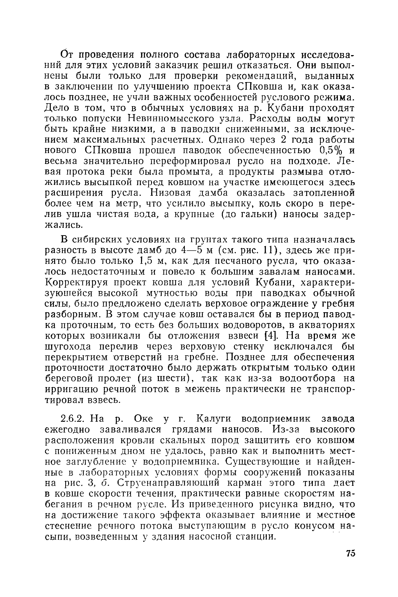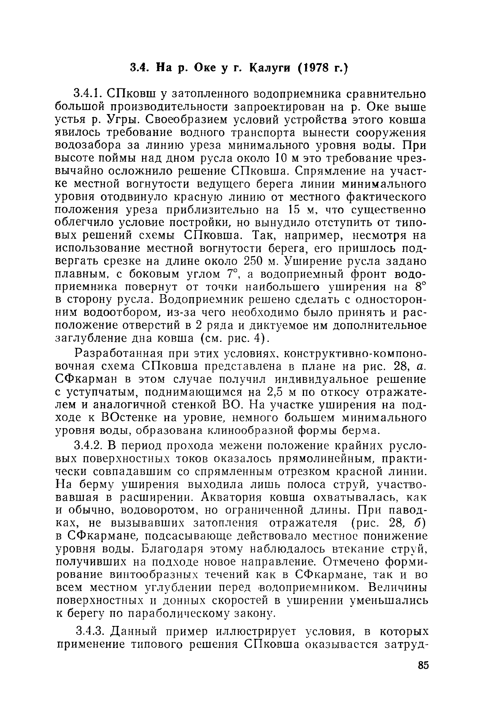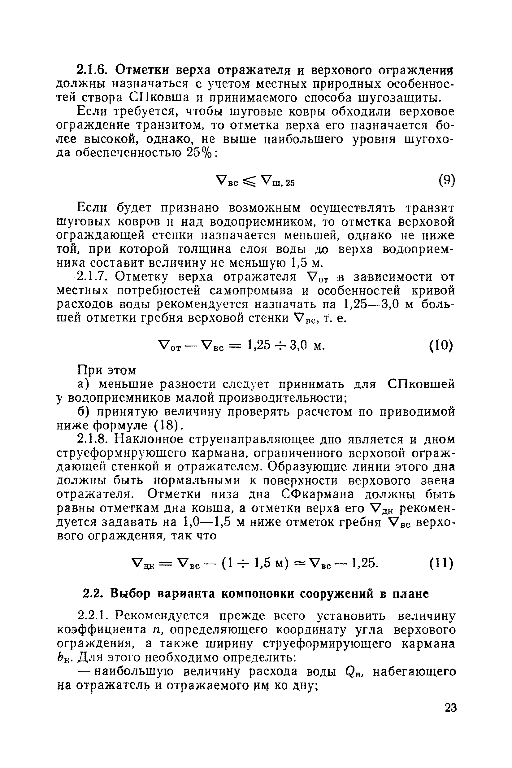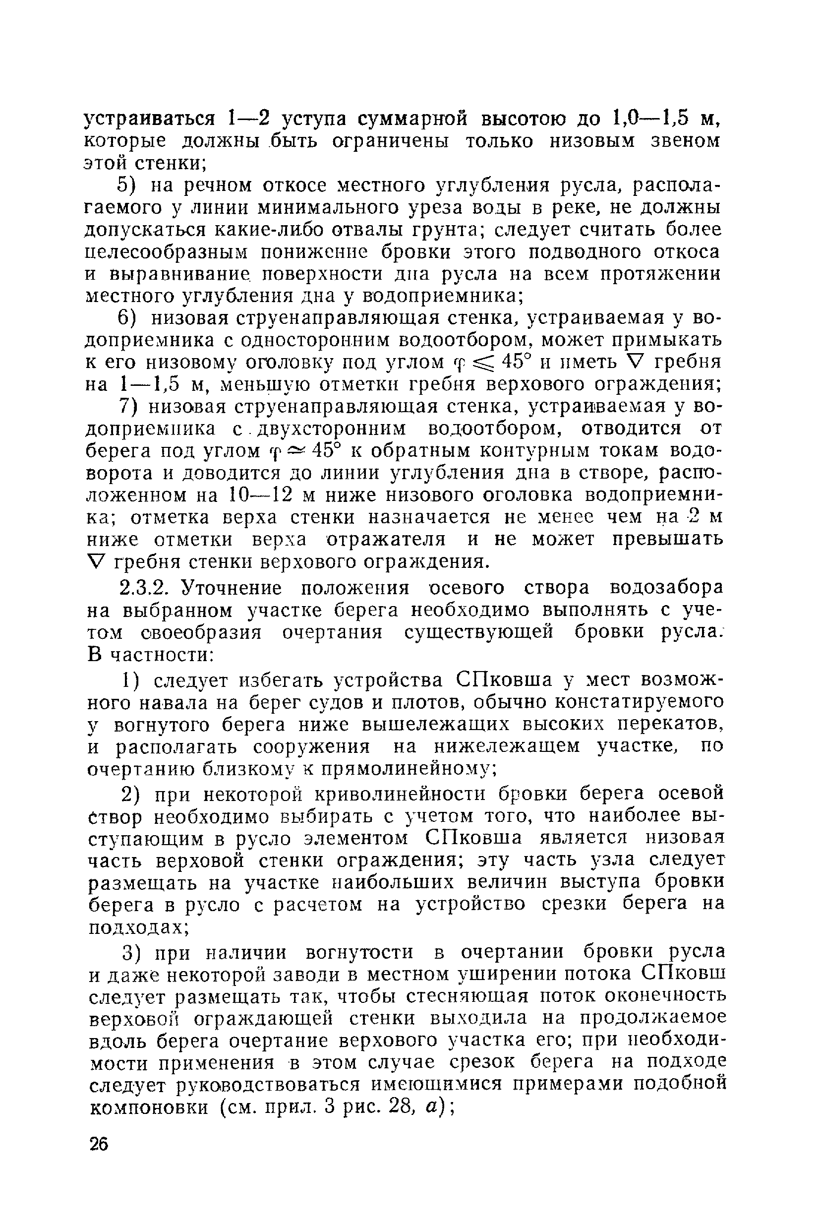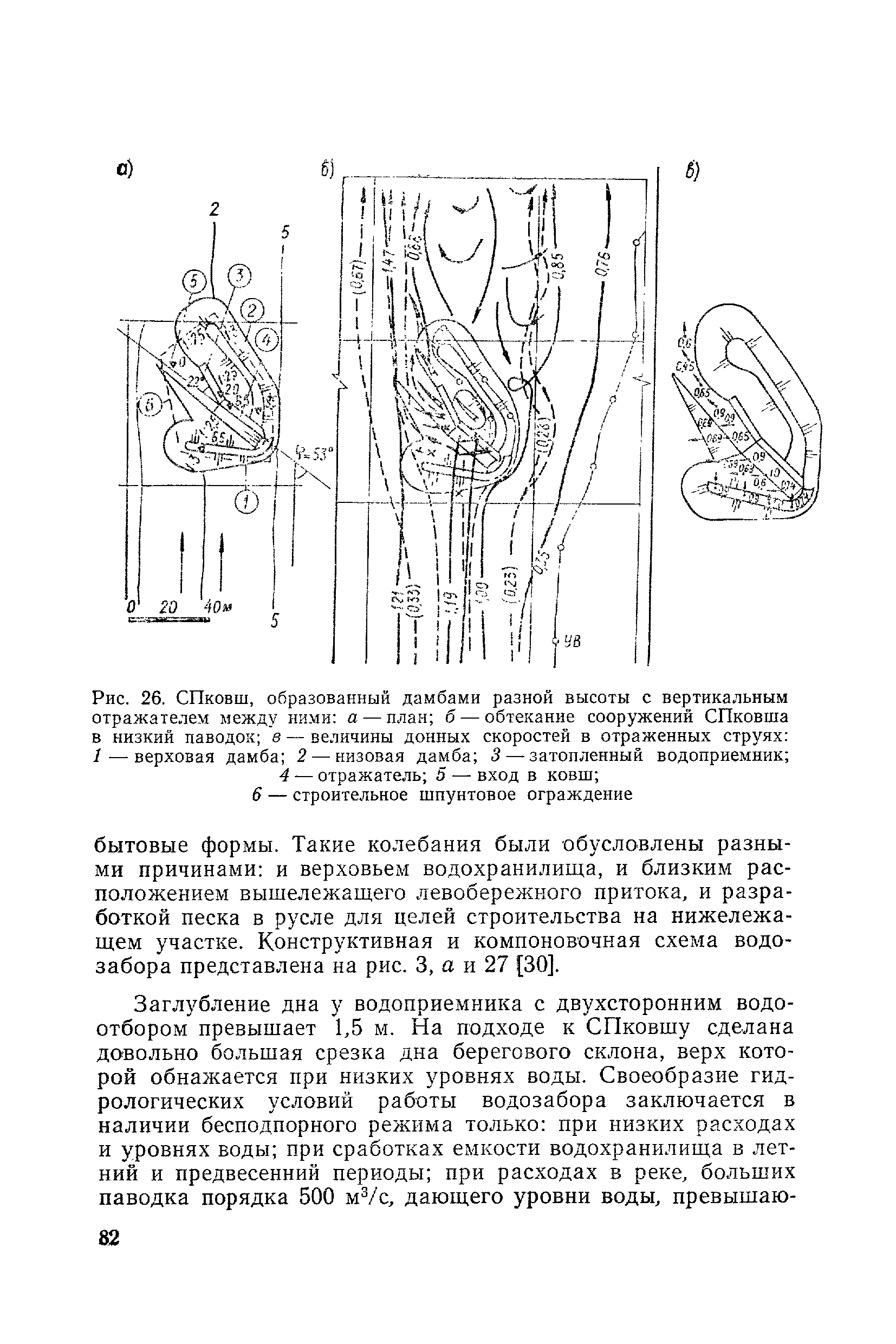 Рекомендации по проектированию самопромывающихся ковшей у затопленных водоприемников| Статус: | справочные материалы, мп, тпр | | Название рус.: | Рекомендации по проектированию самопромывающихся ковшей у затопленных водоприемников | | Дата добавления в базу: | 21.05.2015 | | Дата актуализации: | 01.01.2021 | | Область применения: | Рекомендации составлены на основе обобщения результатов исследований, выполненных во ВНИИ ВОДГЕО с 1944 года в связи с проектированием и постройкой водозаборов для водоснабжения промышленных предприятий. Методика гидравлического расчета Спковшей разработана для более усовершенствованной схемы Спковша с вертикальными стенками, предлагаемой для предстоящего составления типового проекта. Все результаты разработок прежних лет, которые не потеряли практического интереса и могут использоваться как примеры для проектирования, а также результаты исследований последних лет приведены в приложениях | | Оглавление: | Введение Основные сокращения и обозначения Раздел 1. Рекомендации по устройству СПковшей 1. Общие технические условия на устройство СПковшей 1.1. Основные положения 1.2. Особенности работ, возникающие при включении в состав водозабора СПковша 1.3. Классификация конструктивно-компоновочных схем СПковшей 1.4. Характерные гидравлические режимы работы СПковшей 1.5. Особенности защиты водоприемников, размещенных в СПковшах, от наносов, шугольда и сора 1.6. Способы рыбозащиты при водоотборе из СПковша 2. Рекомендации по проектированию СПковшей с вертикальными стенками 2.1. Выбор конструктивной и компоновочной схем СПковша 2.2. Выбор варианта компоновки сооружений в плане 2.3. Особенности конструктивных форм и компоновки СПковша 3. Гидравлические расчеты СПковша для периода межени 3.1. Основные задачи и особенности расчета. Исходные данные 3.2. Расчет обтекающего СПковша потока 3.3. Расчет контура обхода СПковша донными износами 3.4. Расчеты области водоворота при малых водоотборах из его акватории 3.5. Особые формы структуры течений водоворота 4. Гидравлические расчеты СПковша для периода паводков 4.1. Расчет обтекания СПковша в паводок 4.2. Расчет перетекания в СФкарман через стенку верхового ограждения и течений в нем 4.3. Расчеты скоростей течения в СФкармане и в ковше углубления вдоль водоприемника Раздел 2. Приложения. Материалы для проектирования СПковшей Предварительные замечания 1. СПковши, разработанные для условий рек Кузбасса 1.1. Первые решения военных и послевоенных лет 1.2. Решения, найденные для реконструкции действующих водоприемных ковшей традиционных типов 1.3. Самопромывающийся вход ковша у пойменного берега ниже Новокузнецка 2. СПковши, разработанные для условий рек средней полосы территории Советского Союза 2.1. СПковши, огражденные одной верховой шпорой выдвинутой в русло реки 2.2. СПковши, огражденные двумя дамбами, выдвинутыми в русло с бычком-отражателем между ними 2.3. СПковши, вынесенные из русла с откосными отражателями 2.4. СПковши, размещенные в местном уширении русла судоходной реки, с косыми вертикальным отражателем и каналом на береговом откосе 2.5. СПковши, огражденные вертикальными стенками 2.6. СПковши с индивидуальными конструктивными схемами 2.7. Краткие выводы 3. Примеры решений СПковша последних лет 3.1. На одной из рек Белоруссии (1982 год) 3.2. На р. Амуре у г. Хабаровска (1979 год) 3.3. На реке Волге у г