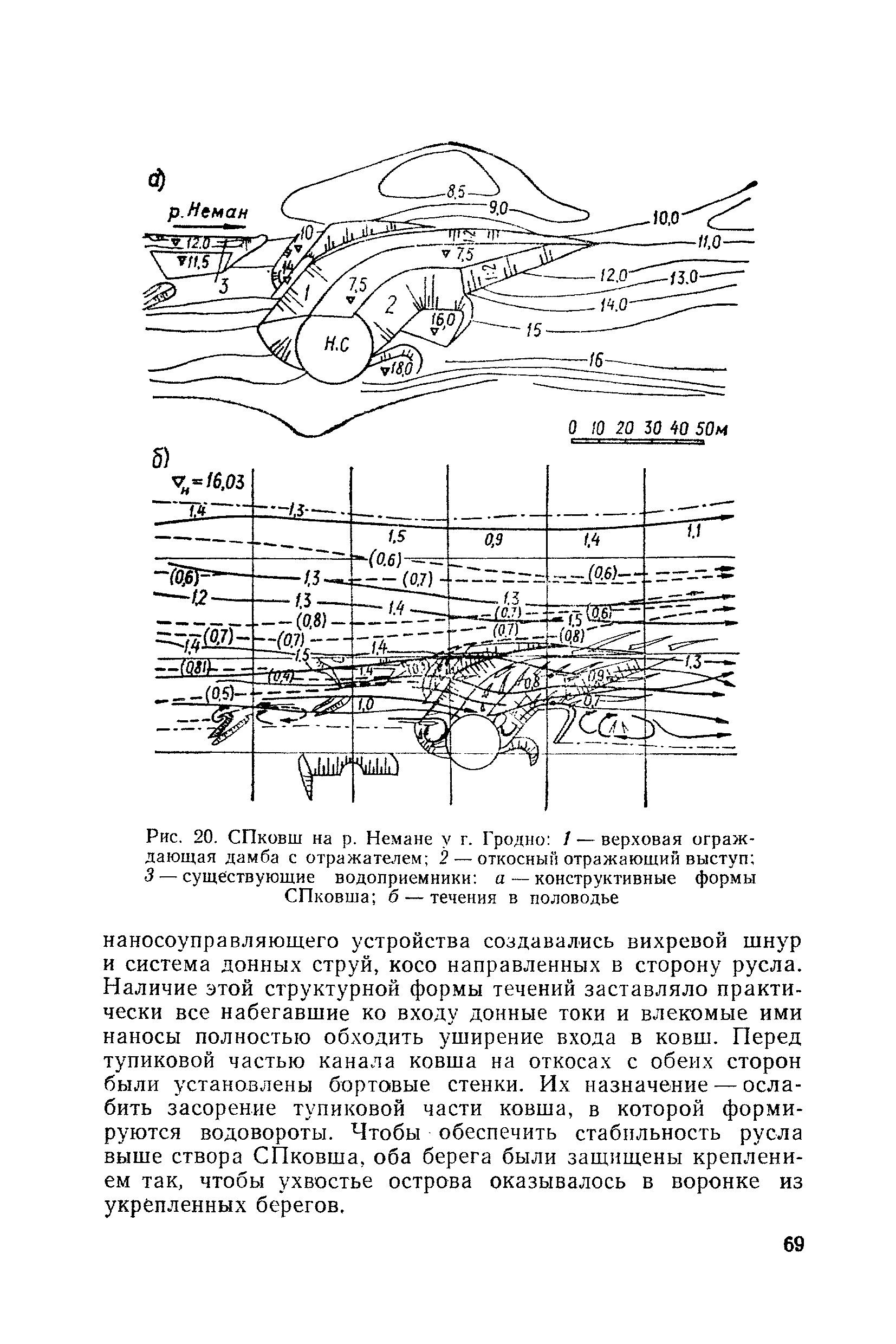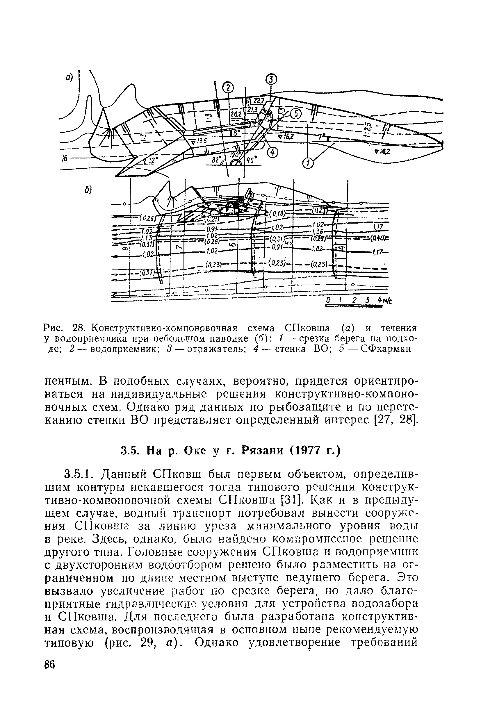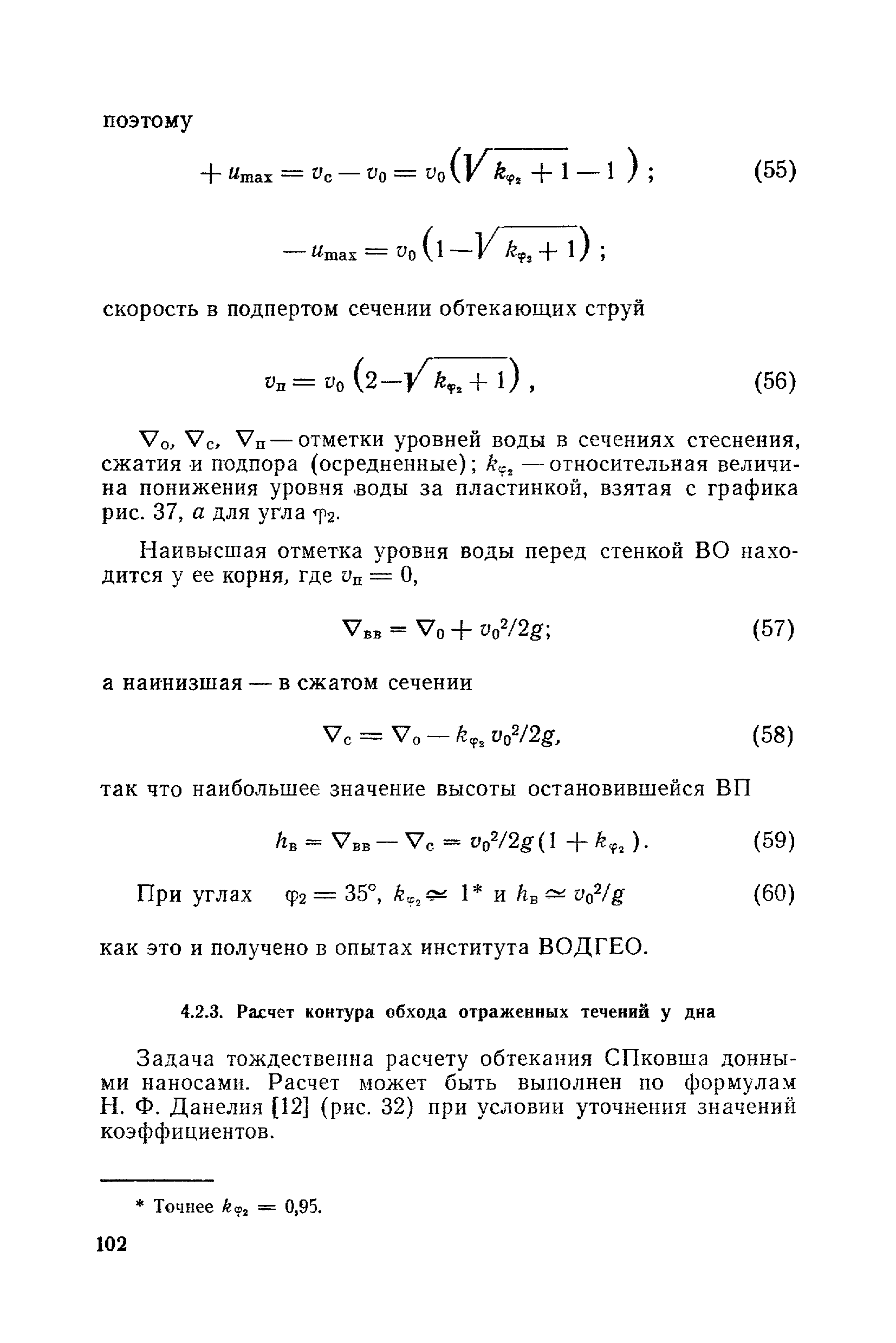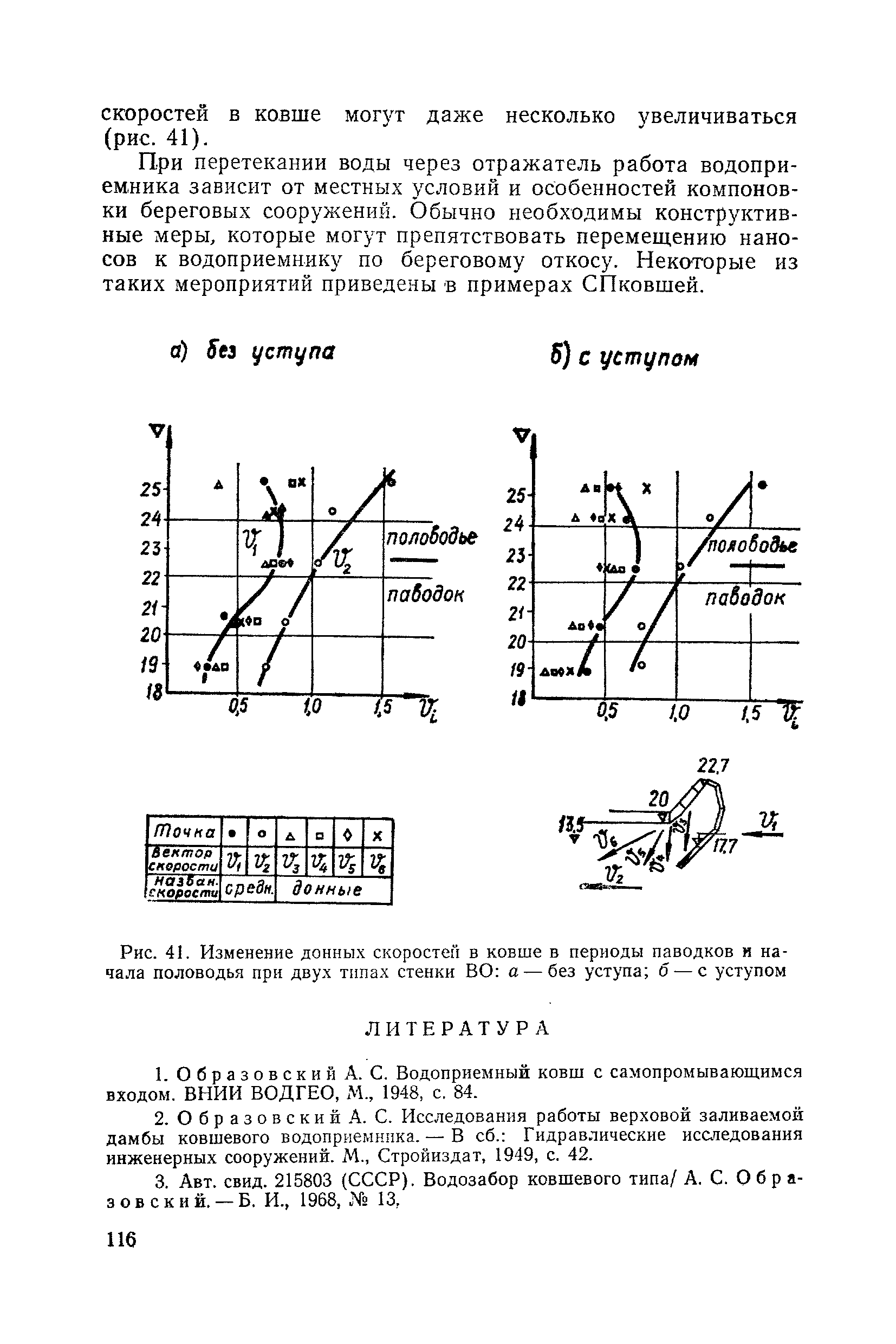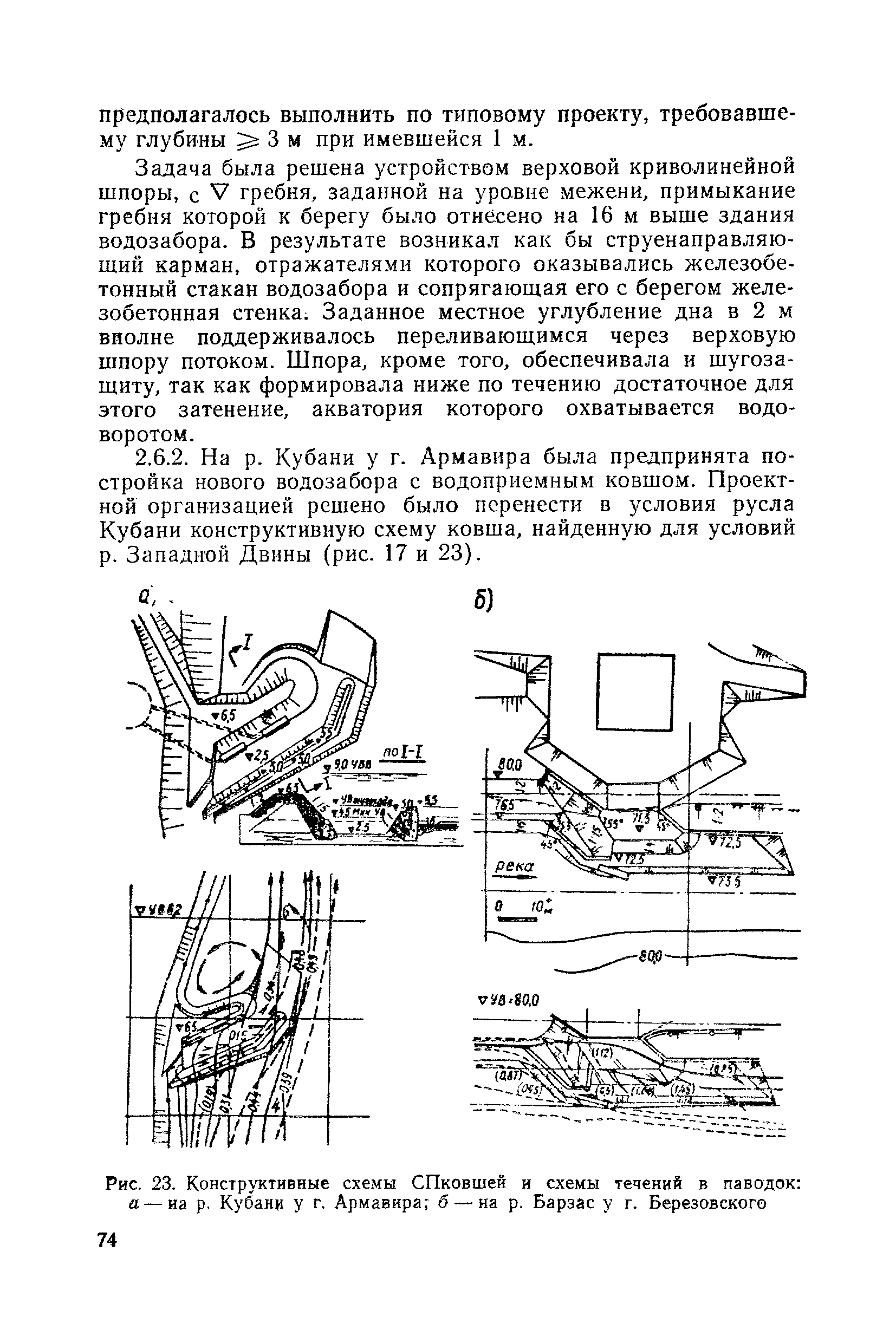 Рекомендации по проектированию самопромывающихся ковшей у затопленных водоприемников| Статус: | справочные материалы, мп, тпр | | Название рус.: | Рекомендации по проектированию самопромывающихся ковшей у затопленных водоприемников | | Дата добавления в базу: | 21.05.2015 | | Дата актуализации: | 01.01.2021 | | Область применения: | Рекомендации составлены на основе обобщения результатов исследований, выполненных во ВНИИ ВОДГЕО с 1944 года в связи с проектированием и постройкой водозаборов для водоснабжения промышленных предприятий. Методика гидравлического расчета Спковшей разработана для более усовершенствованной схемы Спковша с вертикальными стенками, предлагаемой для предстоящего составления типового проекта. Все результаты разработок прежних лет, которые не потеряли практического интереса и могут использоваться как примеры для проектирования, а также результаты исследований последних лет приведены в приложениях | | Оглавление: | Введение Основные сокращения и обозначения Раздел 1. Рекомендации по устройству СПковшей 1. Общие технические условия на устройство СПковшей 1.1. Основные положения 1.2. Особенности работ, возникающие при включении в состав водозабора СПковша 1.3. Классификация конструктивно-компоновочных схем СПковшей 1.4. Характерные гидравлические режимы работы СПковшей 1.5. Особенности защиты водоприемников, размещенных в СПковшах, от наносов, шугольда и сора 1.6. Способы рыбозащиты при водоотборе из СПковша 2. Рекомендации по проектированию СПковшей с вертикальными стенками 2.1. Выбор конструктивной и компоновочной схем СПковша 2.2. Выбор варианта компоновки сооружений в плане 2.3. Особенности конструктивных форм и компоновки СПковша 3. Гидравлические расчеты СПковша для периода межени 3.1. Основные задачи и особенности расчета. Исходные данные 3.2. Расчет обтекающего СПковша потока 3.3. Расчет контура обхода СПковша донными износами 3.4. Расчеты области водоворота при малых водоотборах из его акватории 3.5. Особые формы структуры течений водоворота 4. Гидравлические расчеты СПковша для периода паводков 4.1. Расчет обтекания СПковша в паводок 4.2. Расчет перетекания в СФкарман через стенку верхового ограждения и течений в нем 4.3. Расчеты скоростей течения в СФкармане и в ковше углубления вдоль водоприемника Раздел 2. Приложения. Материалы для проектирования СПковшей Предварительные замечания 1. СПковши, разработанные для условий рек Кузбасса 1.1. Первые решения военных и послевоенных лет 1.2. Решения, найденные для реконструкции действующих водоприемных ковшей традиционных типов 1.3. Самопромывающийся вход ковша у пойменного берега ниже Новокузнецка 2. СПковши, разработанные для условий рек средней полосы территории Советского Союза 2.1. СПковши, огражденные одной верховой шпорой выдвинутой в русло реки 2.2. СПковши, огражденные двумя дамбами, выдвинутыми в русло с бычком-отражателем между ними 2.3. СПковши, вынесенные из русла с откосными отражателями 2.4. СПковши, размещенные в местном уширении русла судоходной реки, с косыми вертикальным отражателем и каналом на береговом откосе 2.5. СПковши, огражденные вертикальными стенками 2.6. СПковши с индивидуальными конструктивными схемами 2.7. Краткие выводы 3. Примеры решений СПковша последних лет 3.1. На одной из рек Белоруссии (1982 год) 3.2. На р. Амуре у г. Хабаровска (1979 год) 3.3. На реке Волге у г