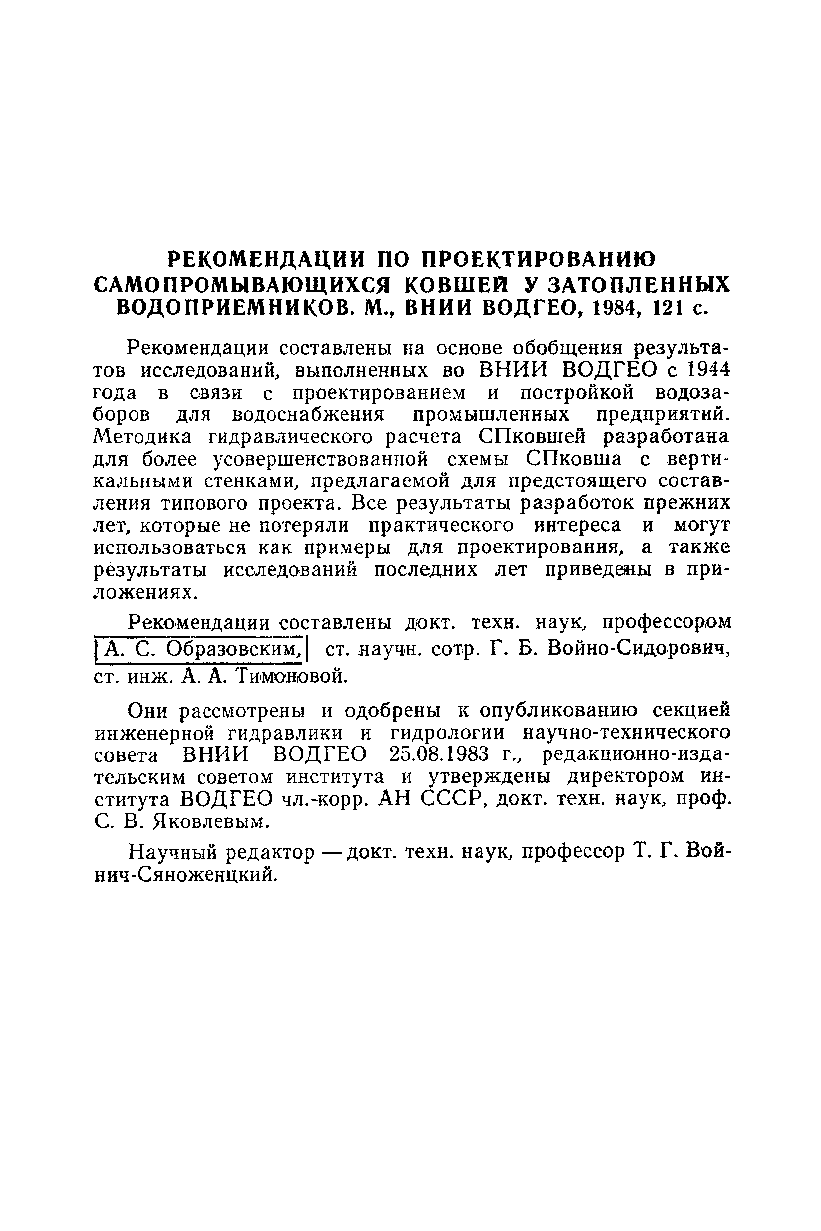| | Утверждён: | 25.08.1983 ВНИИ ВОДГЕО (VODGEO VNII )