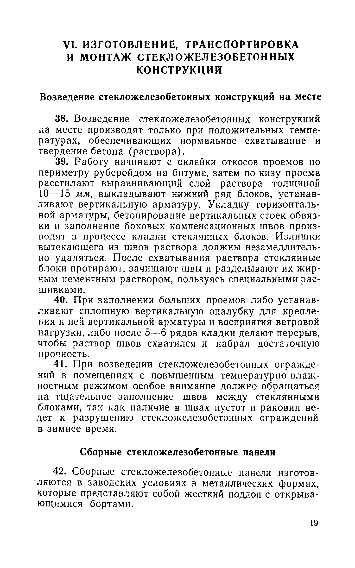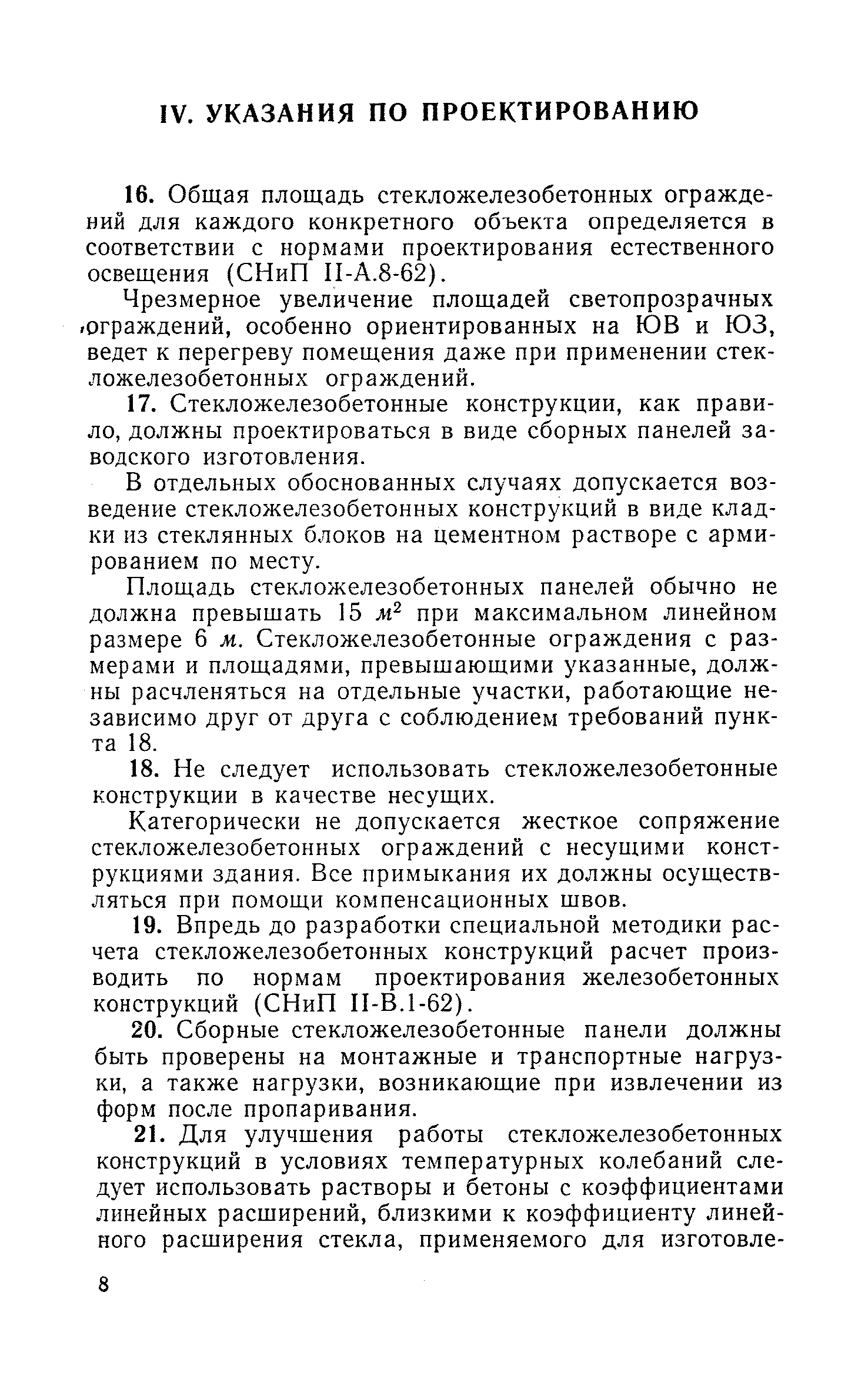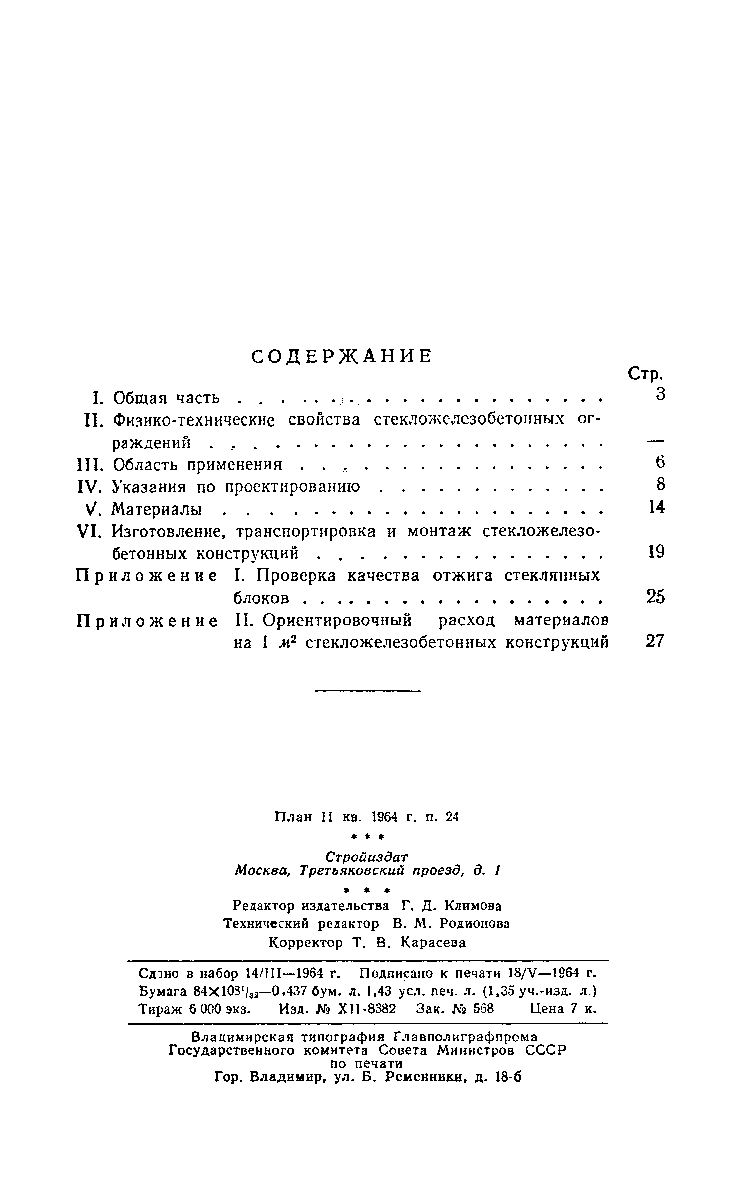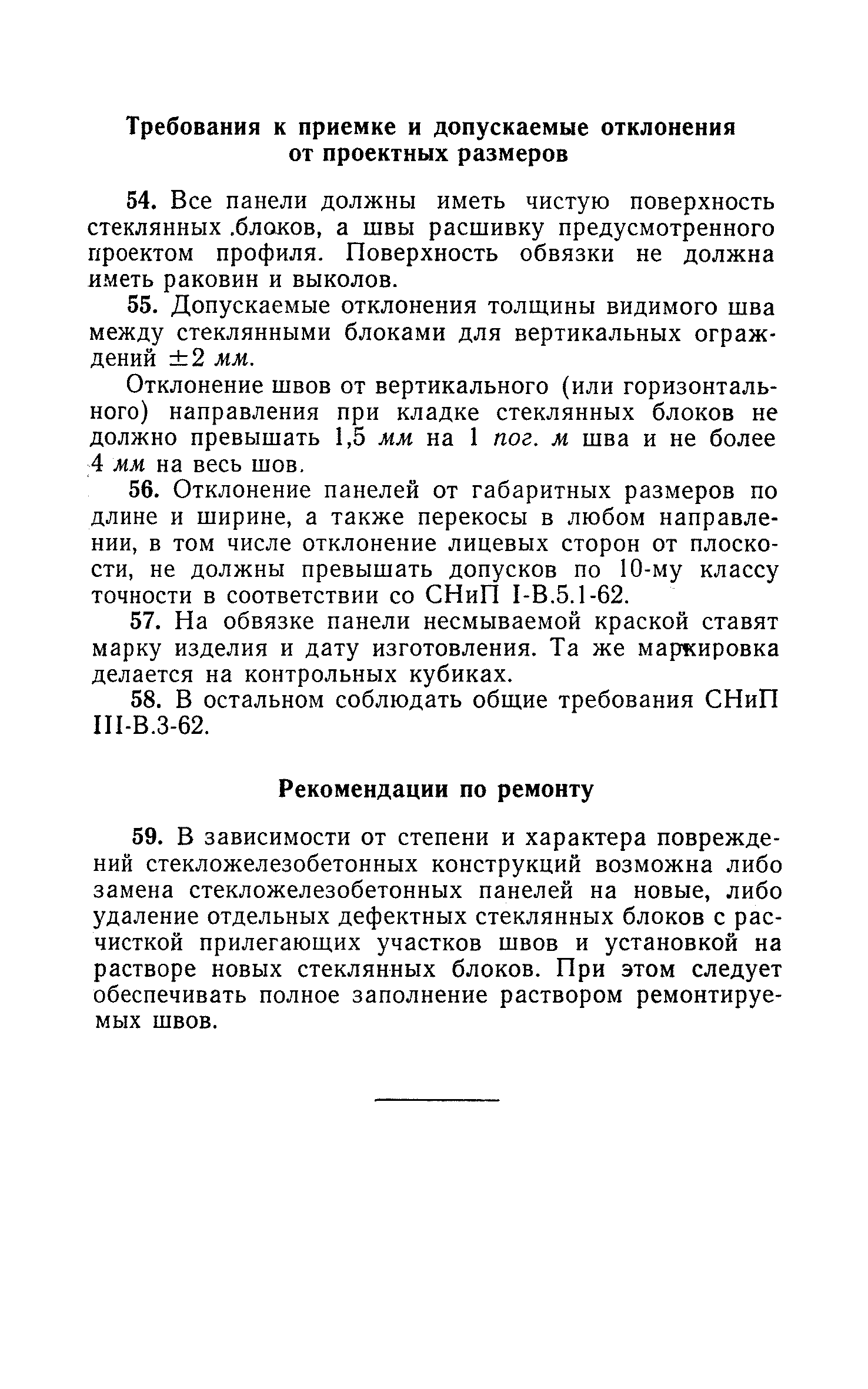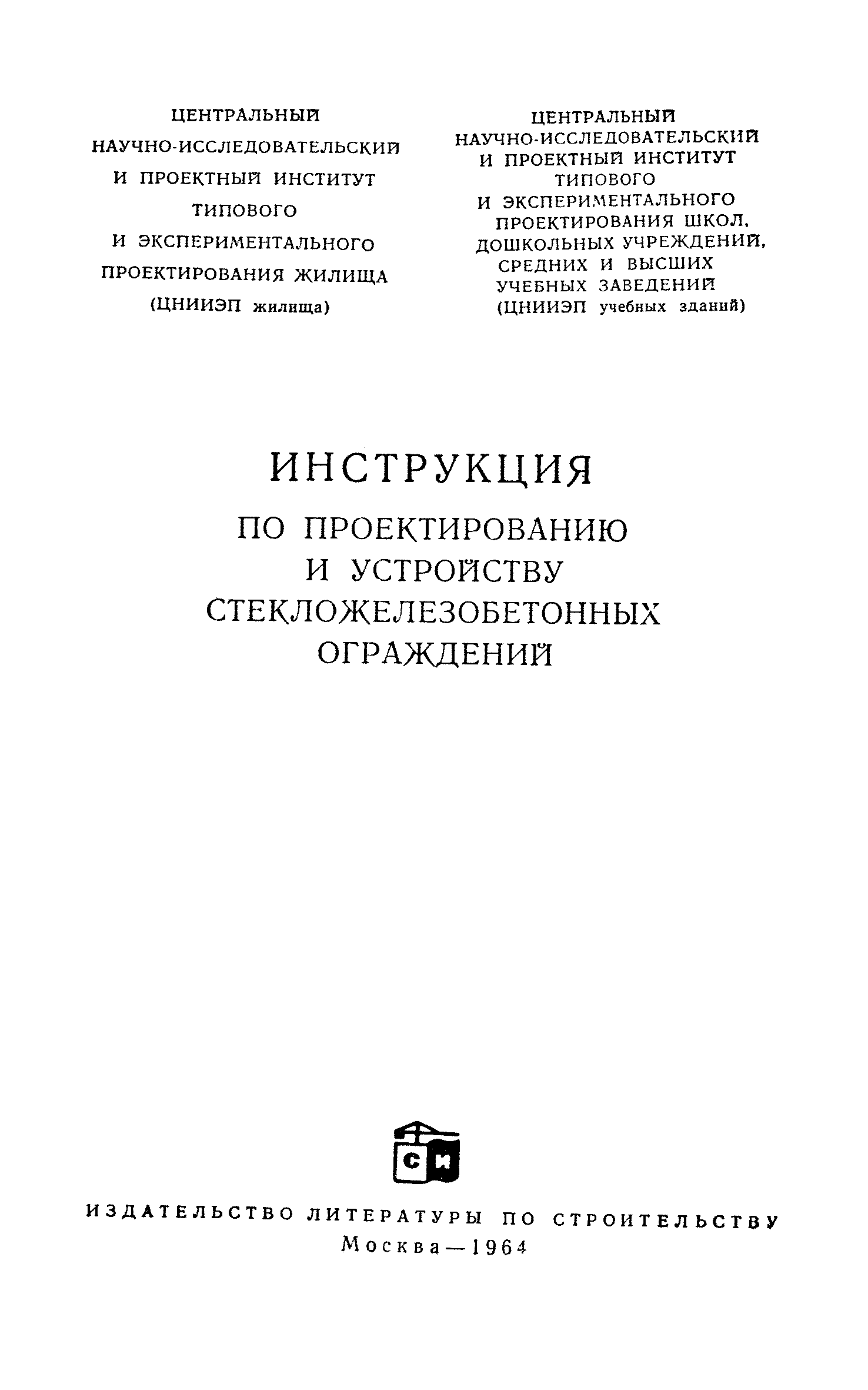 | Оглавление: | I. Общая часть II. Физико-технические свойства стекложелезобетонных ограждений III. Область применения IV. Указания по проектированию V. Материалы VI. Изготовление, транспортировка и монтаж стекложелезобетонных конструкций Приложение I. Проверка качества отжига стеклянных блоков Приложение II. Ориентировочный расход материалов на 1 м2 стекложелезобетонных конструкций |