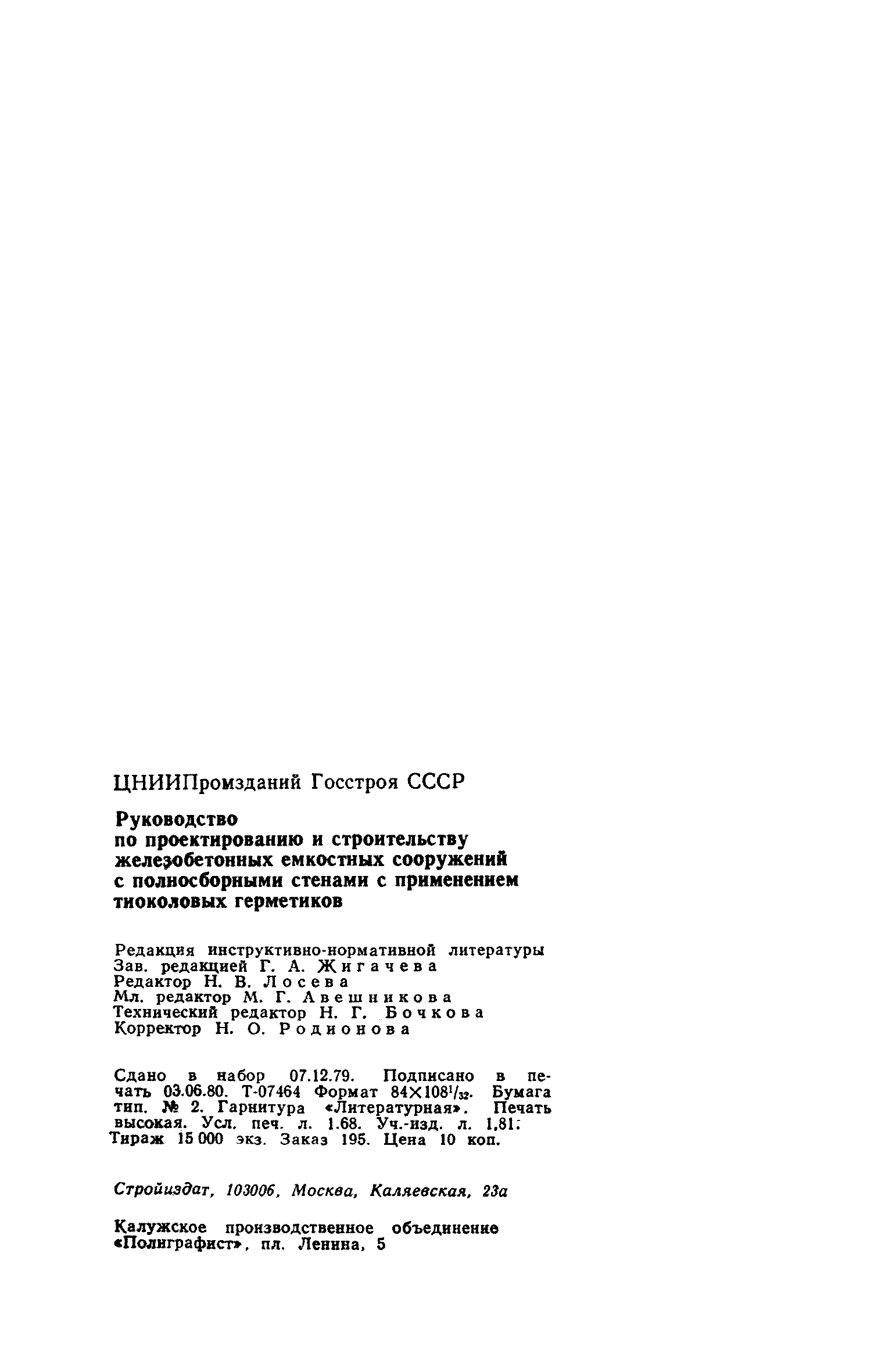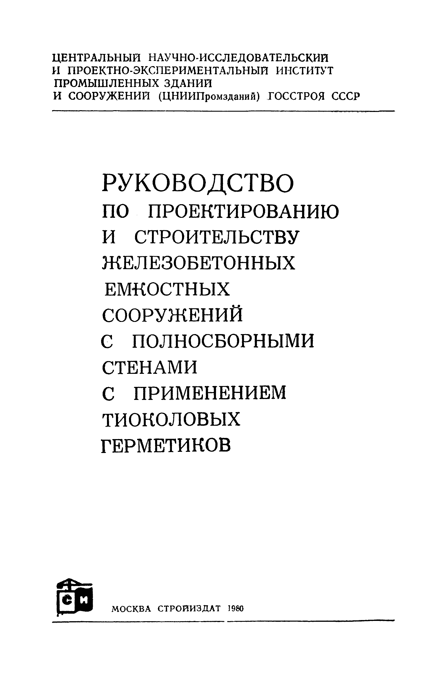 | Название рус.: | Руководство по проектированию и строительству железобетонных емкостных сооружений с полносборными стенами с применением тиоколовых герметиков |