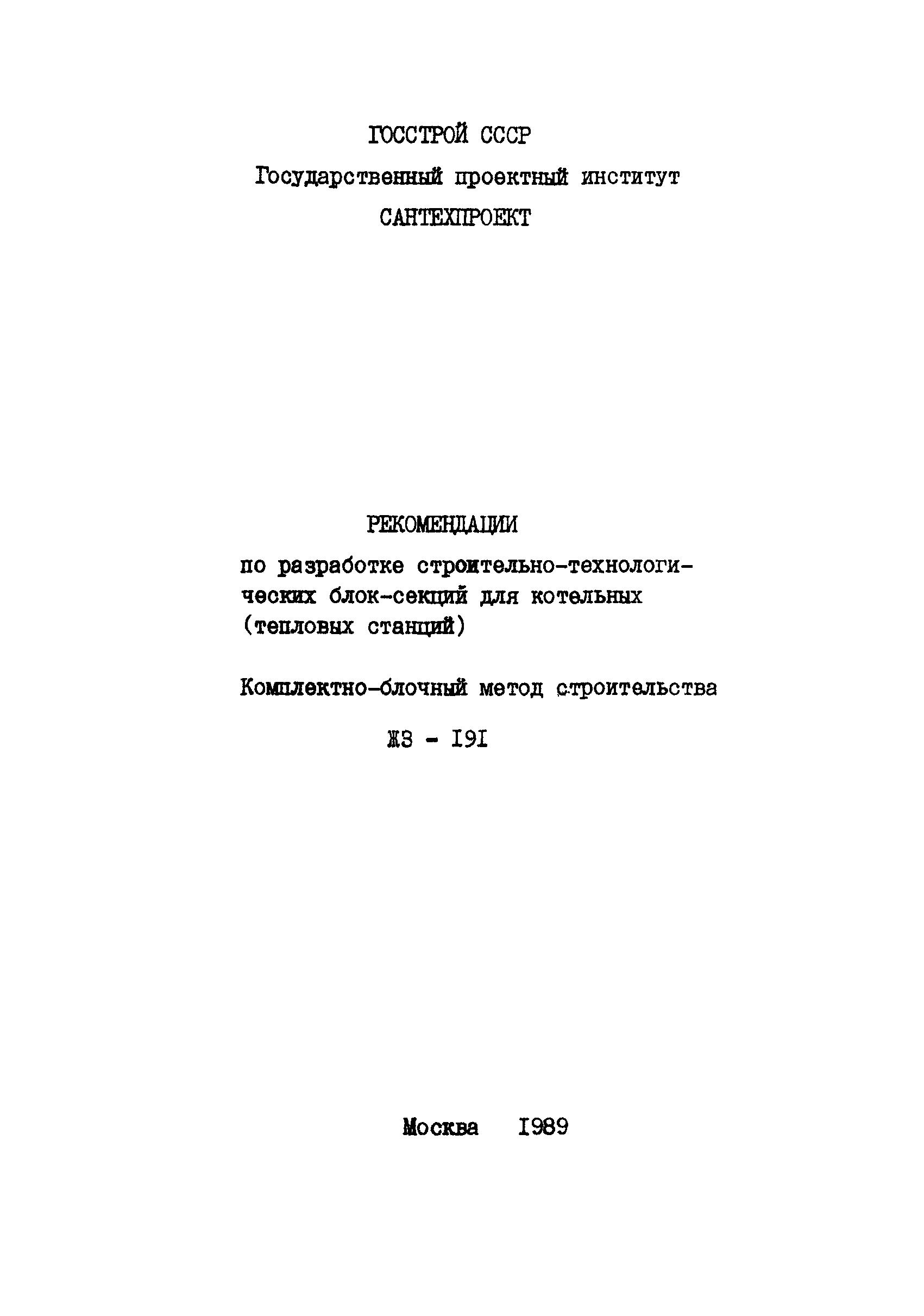| Название рус.: | Рекомендации по разработке строительно-технологических блок-секций для котельных (тепловых станций). Комплектно-блочный метод строительства ЖЗ-191 |