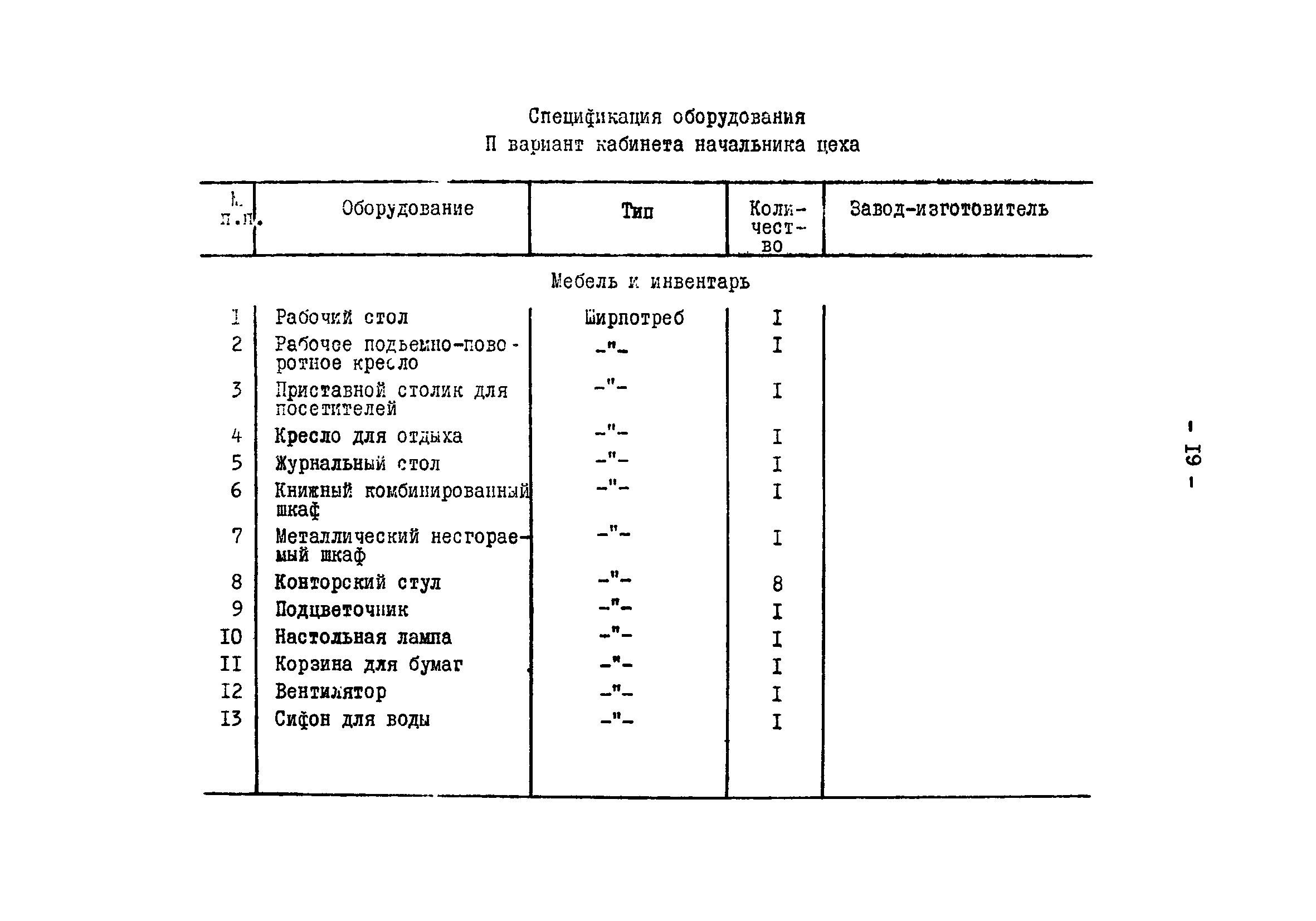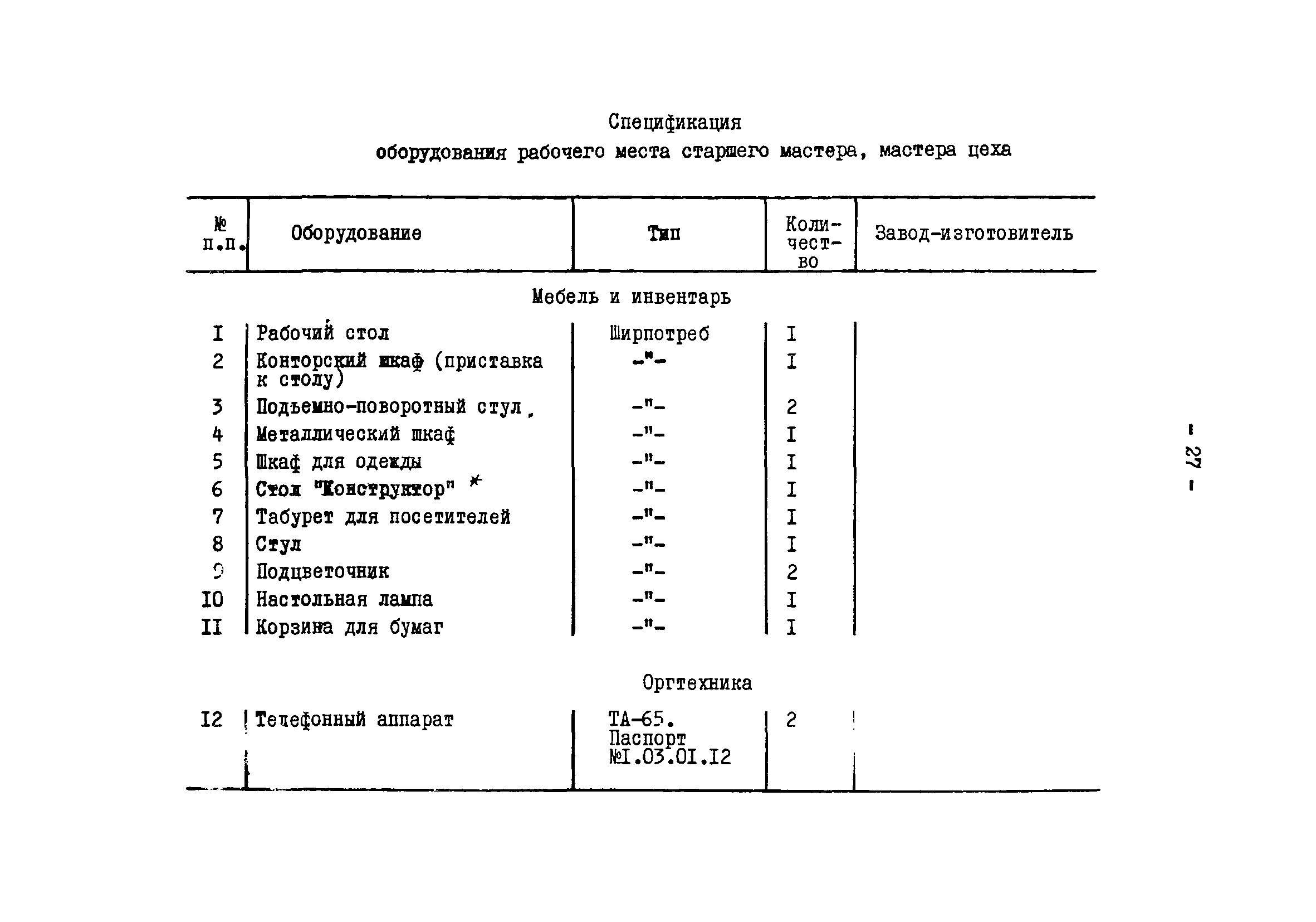 | Область применения: | В Типовых проектах даются рекомендации по улучшению условий труда ИТР, оснащению рабочих мест средствами оргтехники и мебелью. |