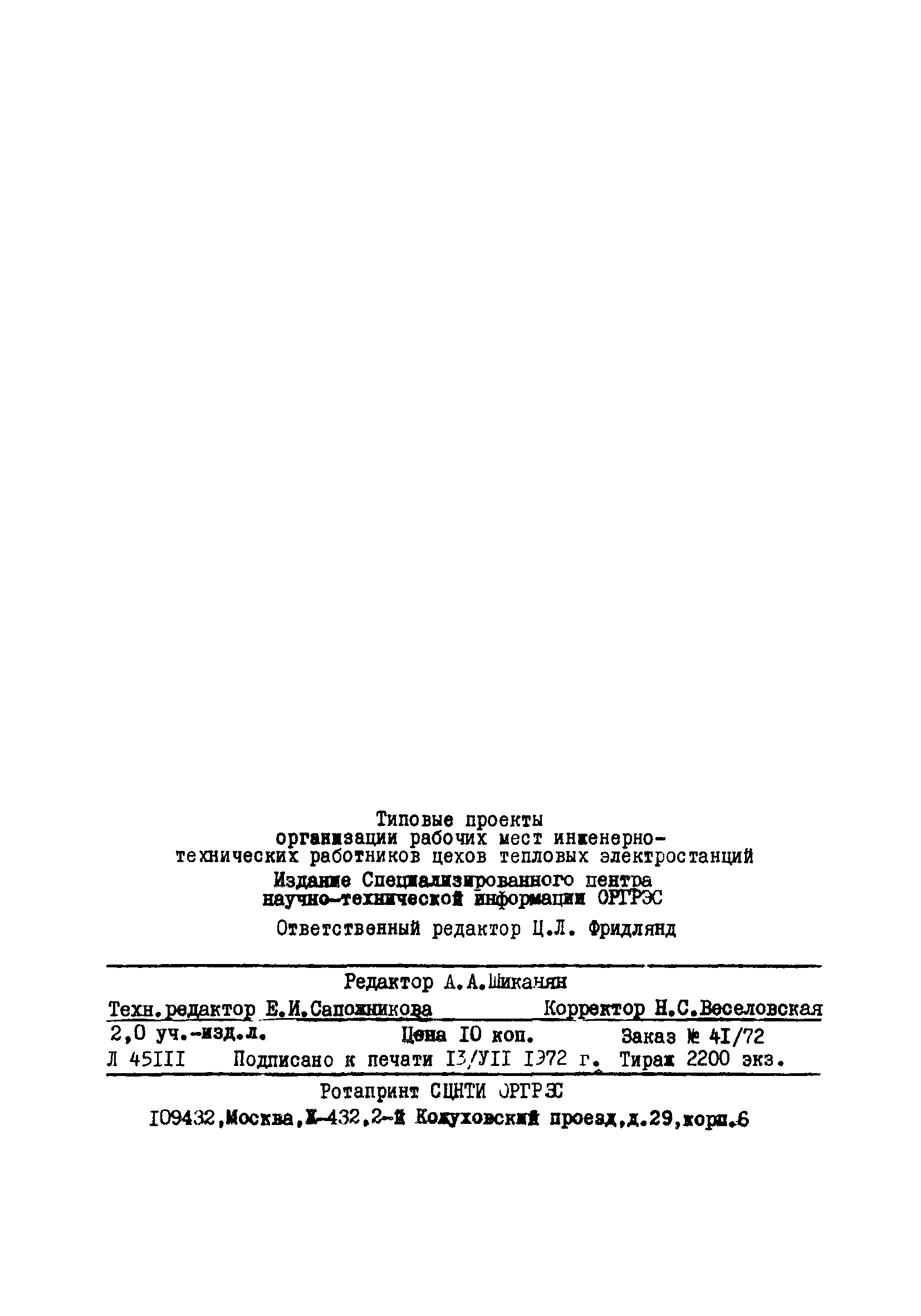 | Название рус.: | Типовые проекты организации рабочих мест инженерно-технических работников цехов тепловых электростанций |