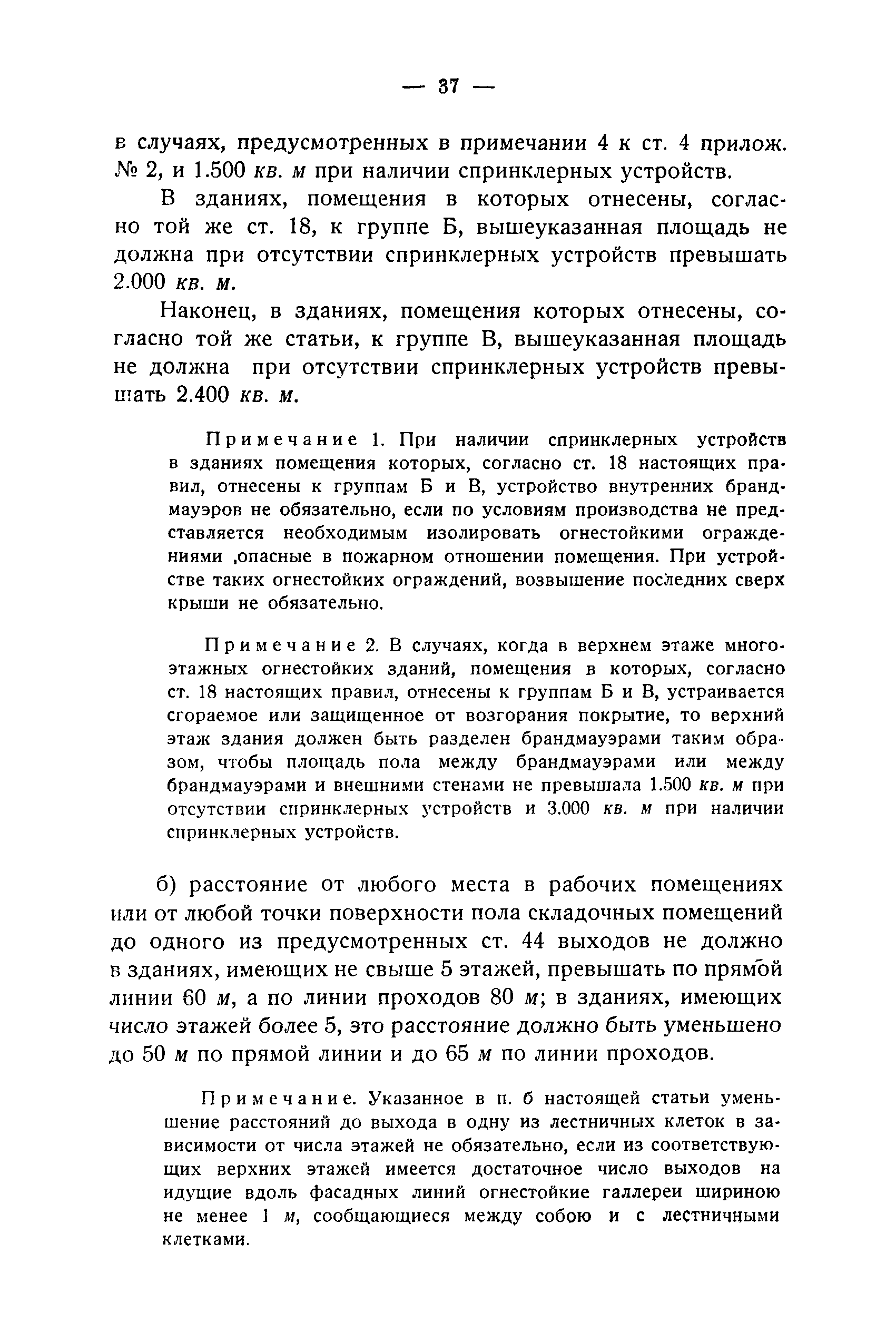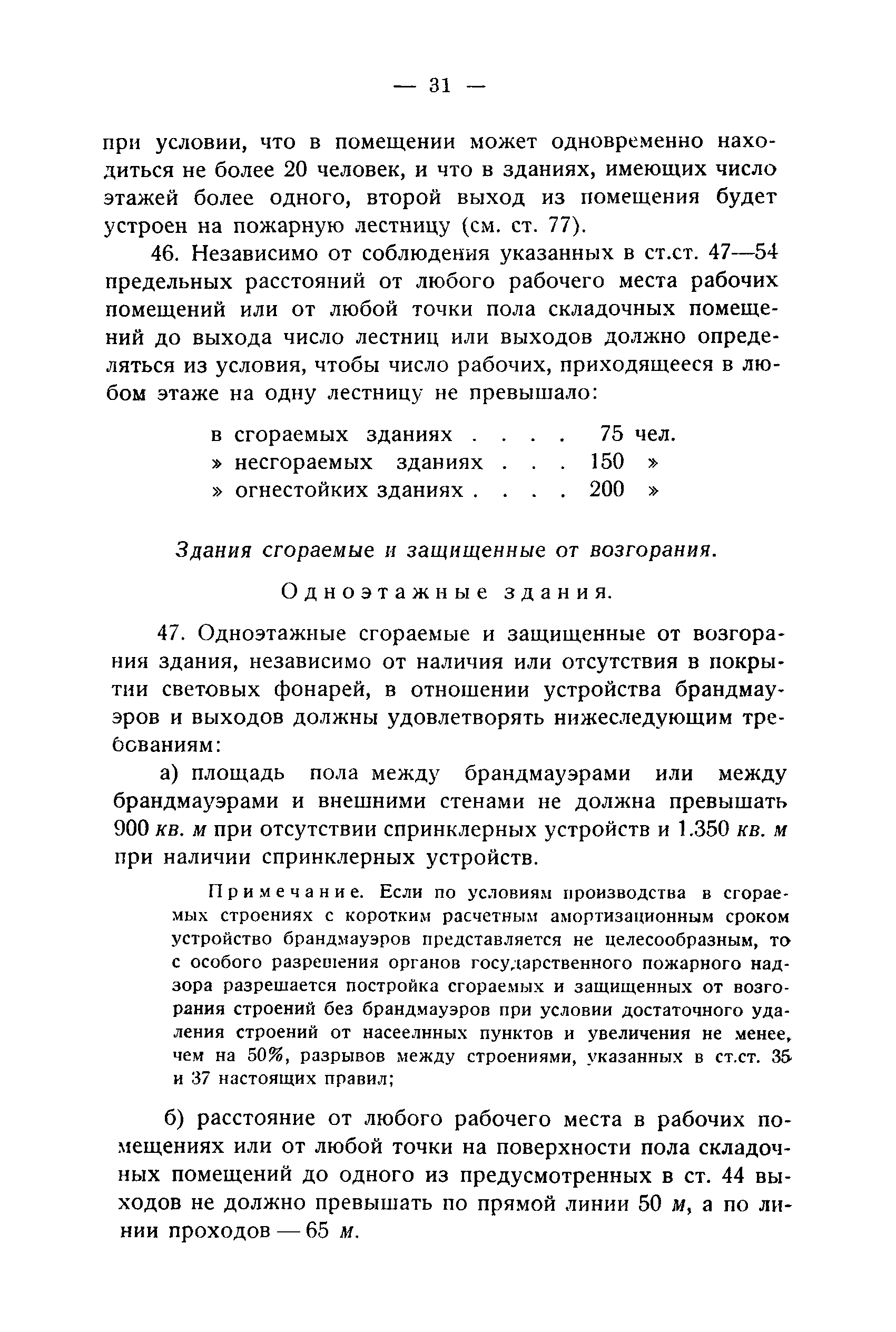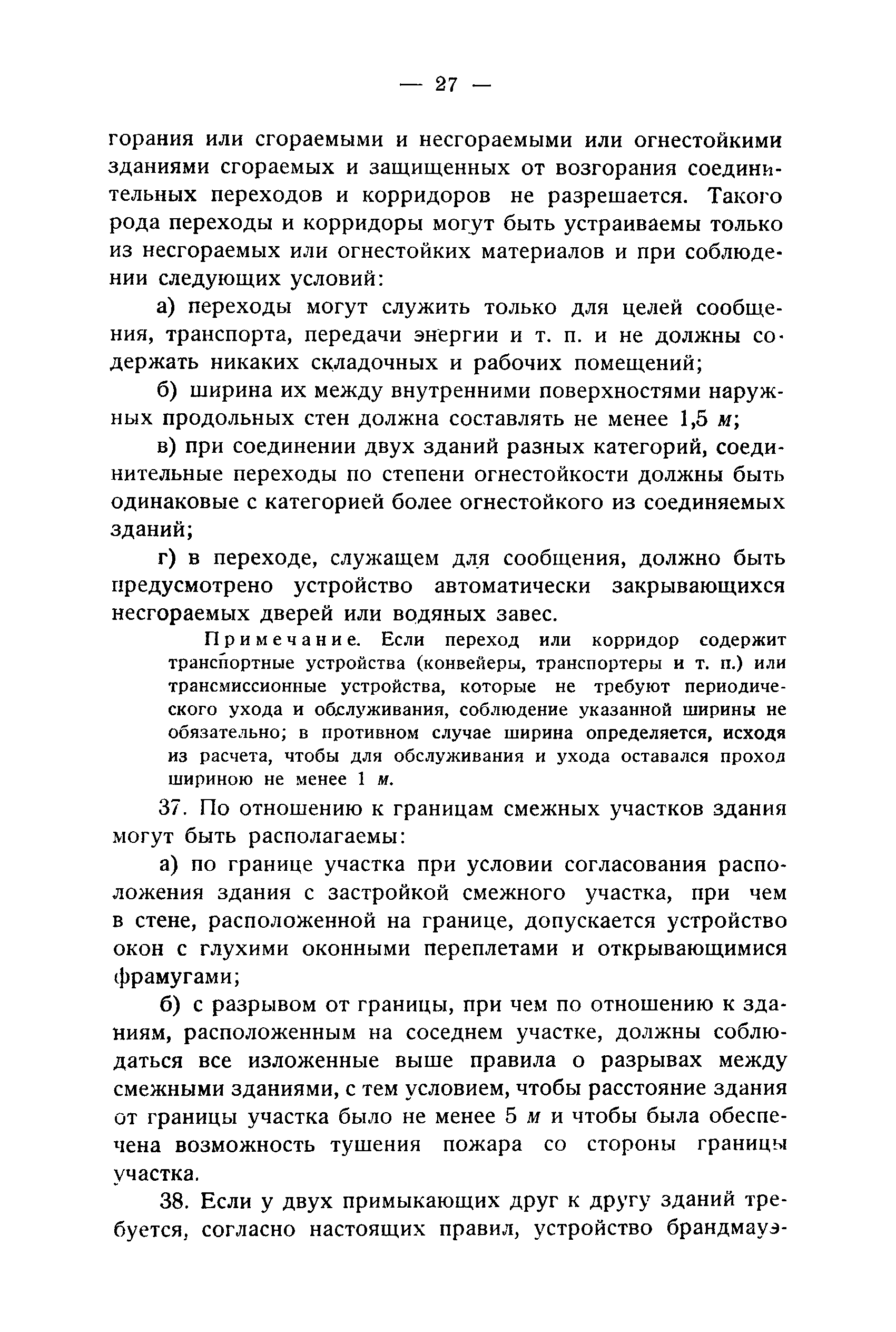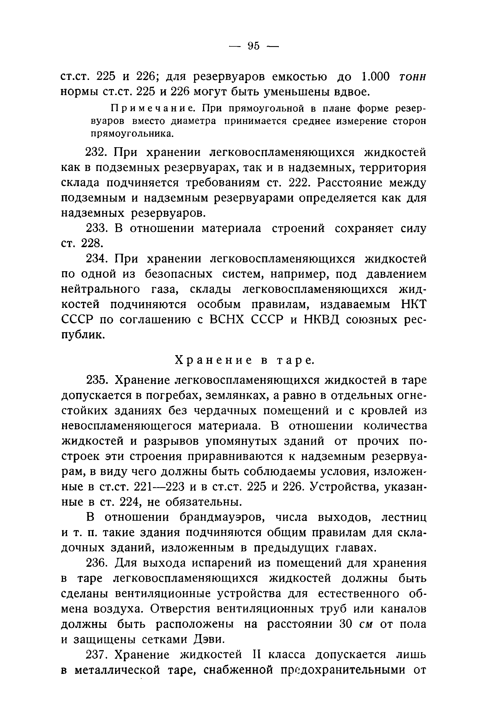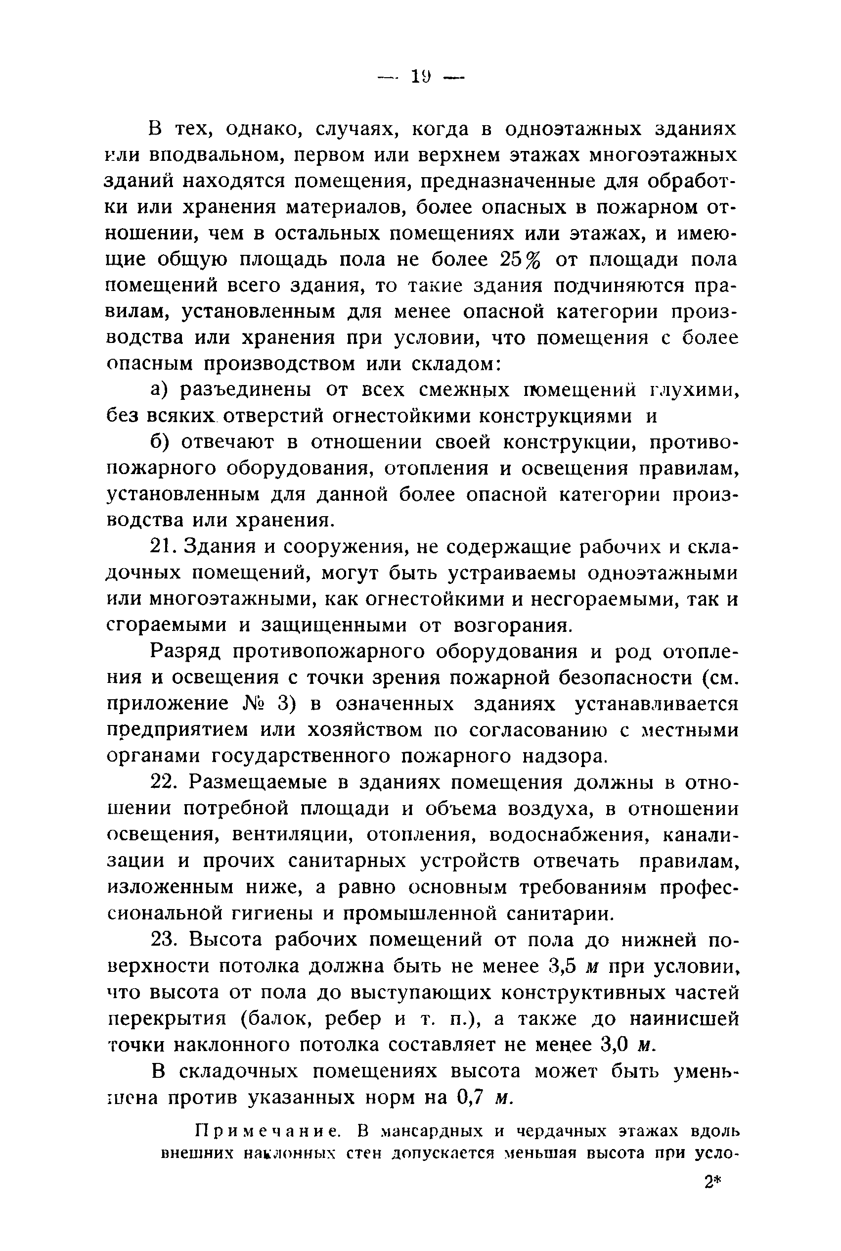 Правила и нормы для промышленного строительства| Статус: | не действует | | Название рус.: | Правила и нормы для промышленного строительства | | Дата добавления в базу: | 21.05.2015 | | Дата актуализации: | 01.01.2021 | | Область применения: | Правила распространяются на промышленное строительство, осуществляемое государственными, коммунальными, кооперативными и концессионными предприятиями и хозяйствами, а равно государственными и частными акционерными обществами и частными лицами, а именно: на постройку новых производственных и складочных предприятий и хозяйств с числом рабочих, занятых в одной смене, не менее 25 человек; на капитальное переустройство и переоборудование производственных и складочных предприятий и хозяйств с числом рабочих, занятых в одной смене, не менее 25 человек; на постройку отдельных зданий и сооружений промышленного характера, возводимых на территории существующих производственных и складочных предприятий и хозяйств с числом рабочих, занятых в одной смене, не менее 25 человек. | | Оглавление: | Постановление КомСТО по строительству Предисловие Вводная часть Глава I Территория производственных предприятий и хозяйств Глава II Типы зданий и противопожарное оборудование Рабочие или производственные помещения Производственно-подсобные помещения Складочные помещения Вспомогательные помещения Глава III Размеры зданий и число этажей Глава IV Расположение зданий на участке Глава V Брандмауэры и выходы Здания сгораемые и защищенные от возгорания Здания смешанные Здания несгораемые Здания огнестойкие Мансардные и чердачные этажи Глава VI Лестницы Глава VII Полы Глава VIII Вспомогательные помещения для рабочих Глава IХ Освещение помещений естественным и искусственным светом Освещение помещений окнами в наружных стенах Освещение помещений путем световых фонарей Искусственное освещение Глава Х Отопление и вентиляция Глава ХI Шахты подъемников Глава ХII Помещения для постоянных паровых котлов Глава ХIII Склады топлива при предприятиях и хозяйствах А. Склады твердого топлива Б. Склады жидкого топлива Глава ХIV Хранение легковоспламеняющихся жидкостей Раздел I Склады легковоспламеняющихся жидкостей Хранение в надземных резервуарах Хранение в подземных резервуарах Хранение в таре Раздел II Места хранения легковоспламеняющихся жидкостей на территории предприятия или хозяйства Хранение в надземных резервуарах Хранение в подземных резервуарах Хранение в таре Глава ХV Хранение горючих материалов Приложение 1. Классификация строительных материалов, а также зданий и их конструктивных элементов в отношении пожарной безопасности Приложение 2. Классификация противопожарного оборудования Приложение 3. Классификация систем отопления и освещения с точки зрения пожарной безопасности Приложение 4. Данные о разрывах для складов жидкого топлива | | Утверждён: | 05.03.1929 Народный Комиссариат Труда Союза ССР