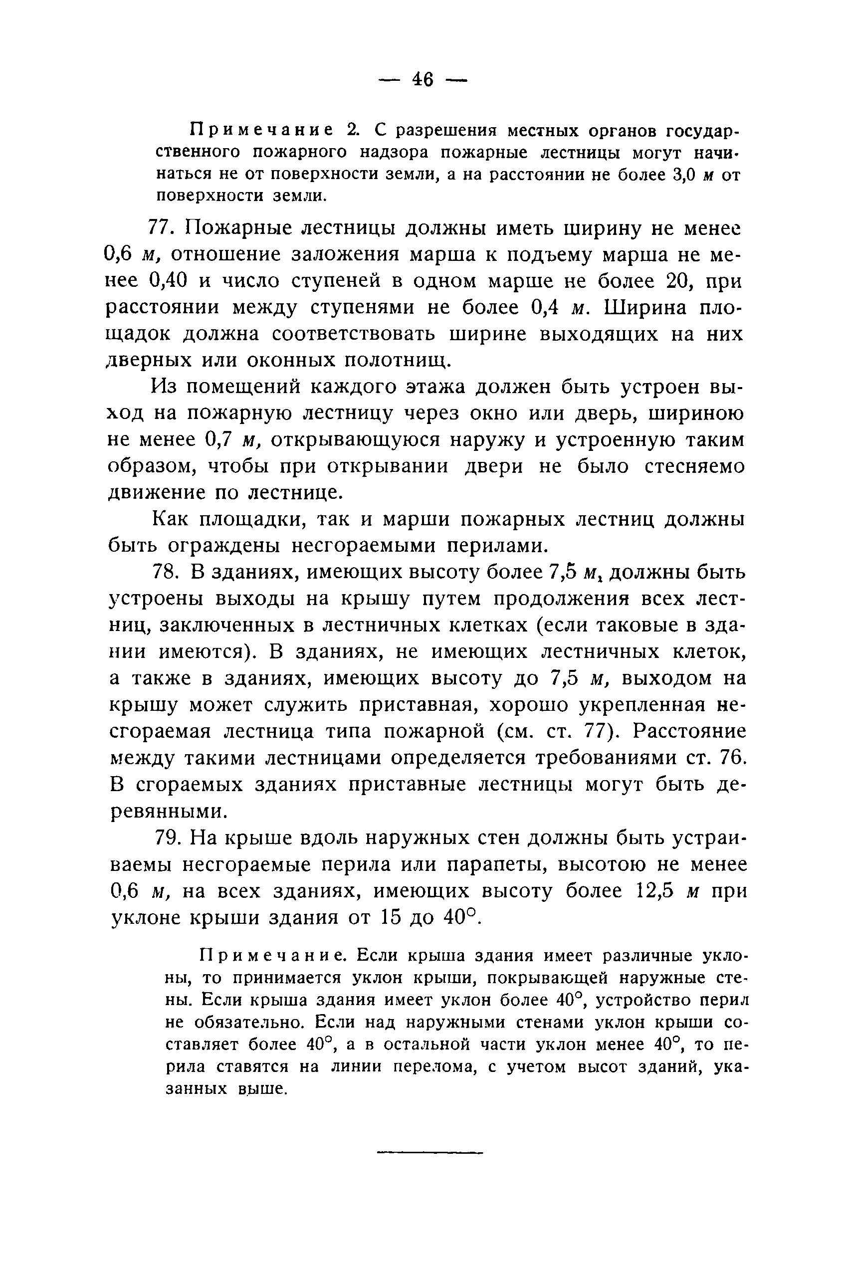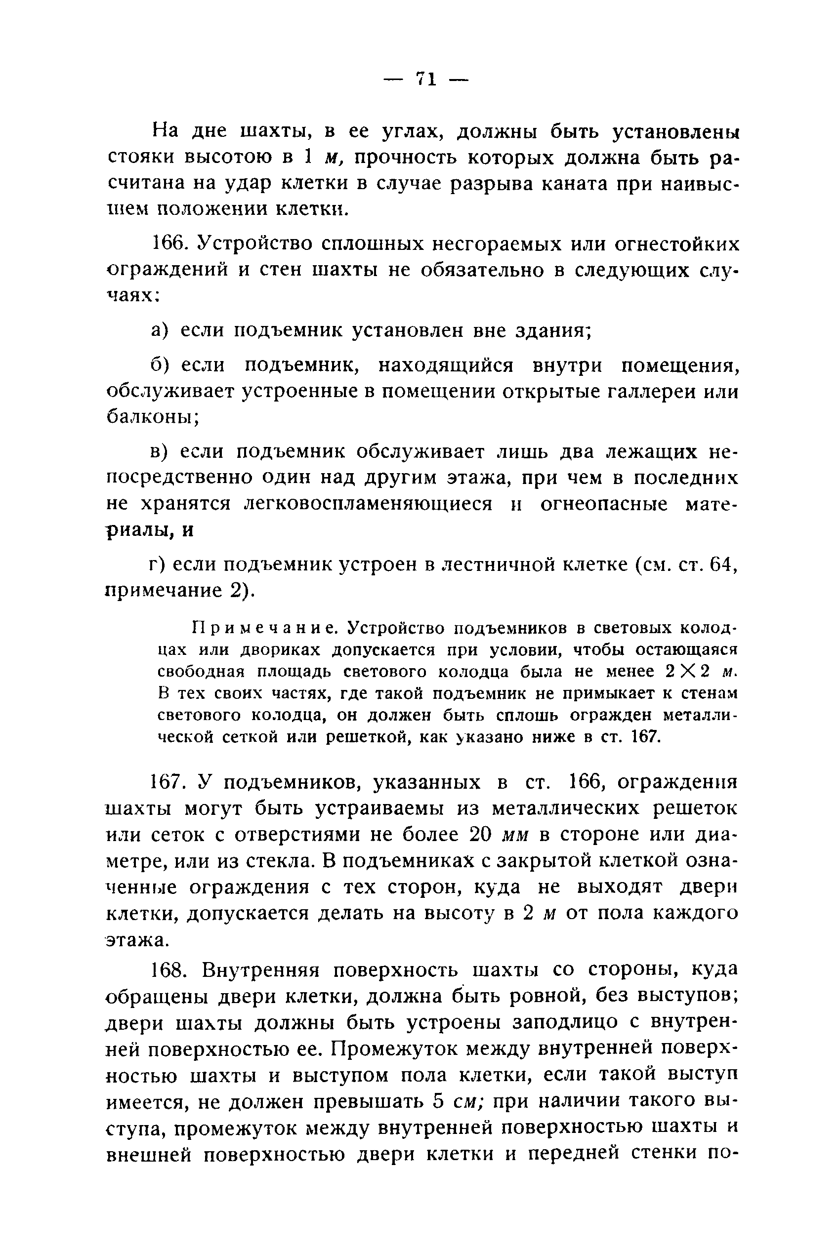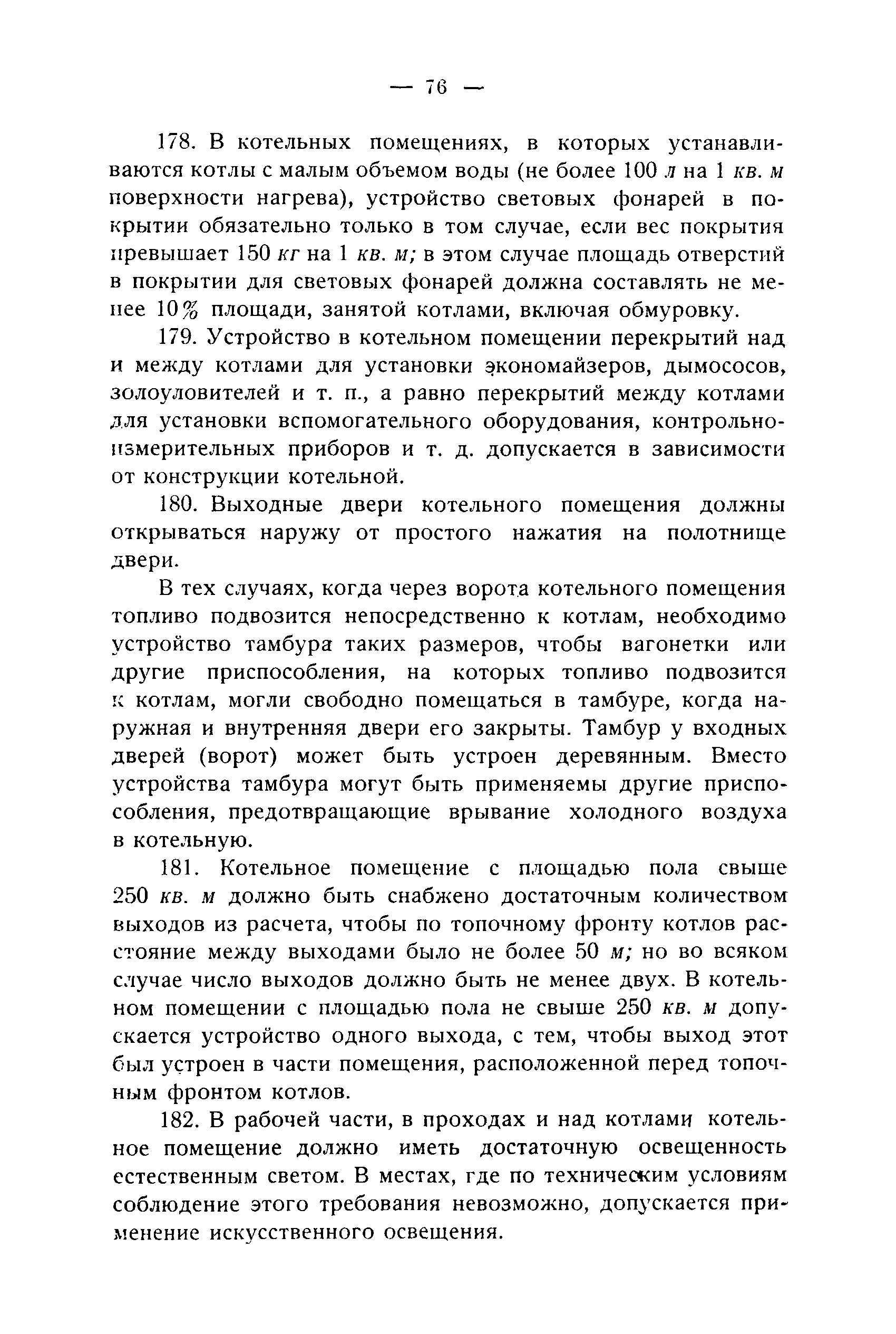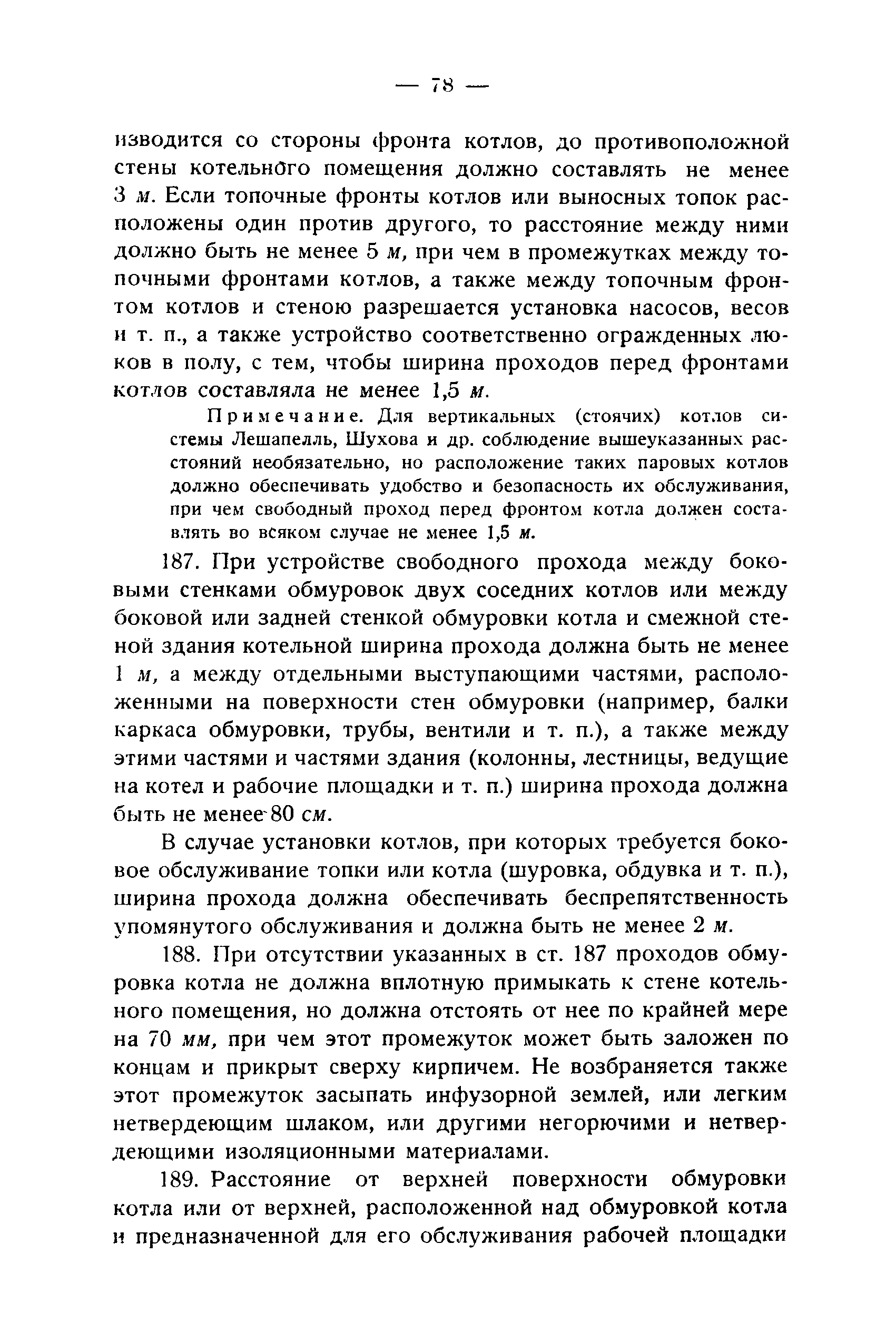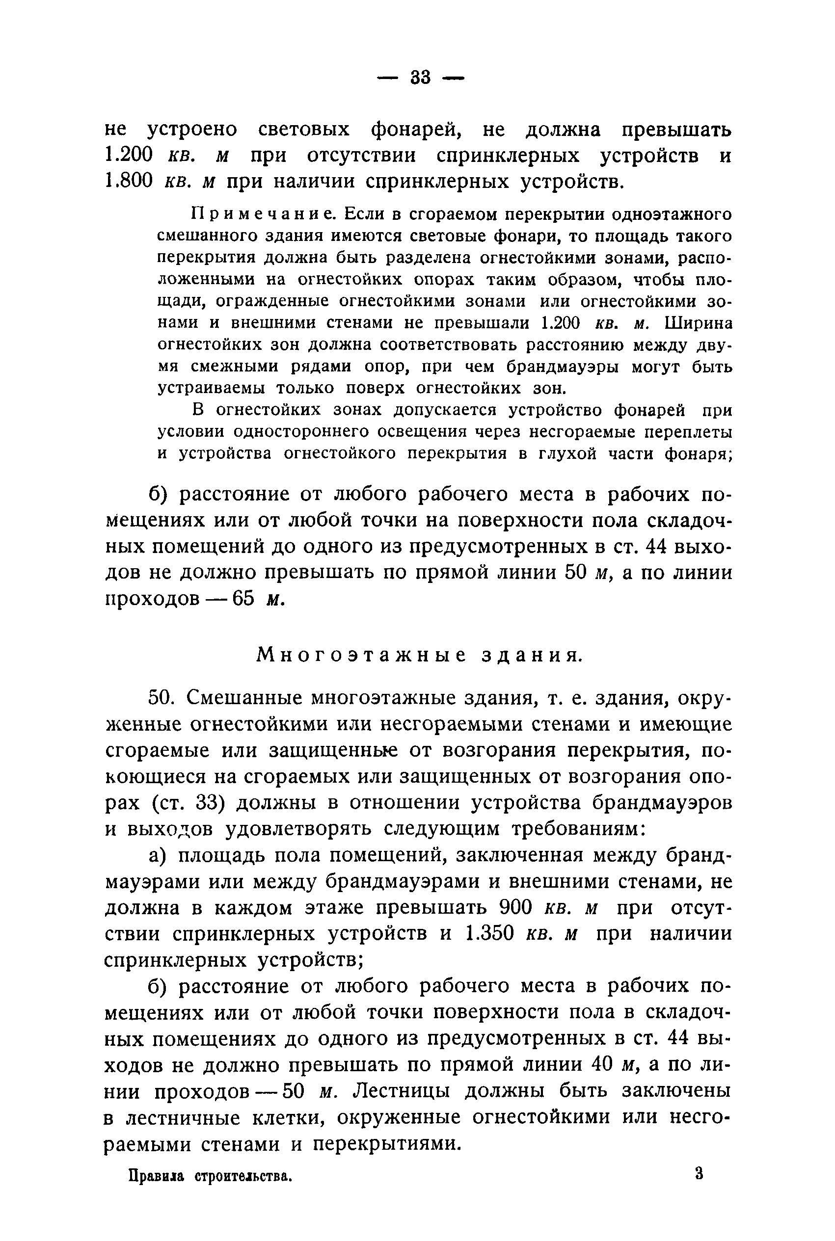 Правила и нормы для промышленного строительства| Статус: | не действует | | Название рус.: | Правила и нормы для промышленного строительства | | Дата добавления в базу: | 21.05.2015 | | Дата актуализации: | 01.01.2021 | | Область применения: | Правила распространяются на промышленное строительство, осуществляемое государственными, коммунальными, кооперативными и концессионными предприятиями и хозяйствами, а равно государственными и частными акционерными обществами и частными лицами, а именно: на постройку новых производственных и складочных предприятий и хозяйств с числом рабочих, занятых в одной смене, не менее 25 человек; на капитальное переустройство и переоборудование производственных и складочных предприятий и хозяйств с числом рабочих, занятых в одной смене, не менее 25 человек; на постройку отдельных зданий и сооружений промышленного характера, возводимых на территории существующих производственных и складочных предприятий и хозяйств с числом рабочих, занятых в одной смене, не менее 25 человек. | | Оглавление: | Постановление КомСТО по строительству Предисловие Вводная часть Глава I Территория производственных предприятий и хозяйств Глава II Типы зданий и противопожарное оборудование Рабочие или производственные помещения Производственно-подсобные помещения Складочные помещения Вспомогательные помещения Глава III Размеры зданий и число этажей Глава IV Расположение зданий на участке Глава V Брандмауэры и выходы Здания сгораемые и защищенные от возгорания Здания смешанные Здания несгораемые Здания огнестойкие Мансардные и чердачные этажи Глава VI Лестницы Глава VII Полы Глава VIII Вспомогательные помещения для рабочих Глава IХ Освещение помещений естественным и искусственным светом Освещение помещений окнами в наружных стенах Освещение помещений путем световых фонарей Искусственное освещение Глава Х Отопление и вентиляция Глава ХI Шахты подъемников Глава ХII Помещения для постоянных паровых котлов Глава ХIII Склады топлива при предприятиях и хозяйствах А. Склады твердого топлива Б. Склады жидкого топлива Глава ХIV Хранение легковоспламеняющихся жидкостей Раздел I Склады легковоспламеняющихся жидкостей Хранение в надземных резервуарах Хранение в подземных резервуарах Хранение в таре Раздел II Места хранения легковоспламеняющихся жидкостей на территории предприятия или хозяйства Хранение в надземных резервуарах Хранение в подземных резервуарах Хранение в таре Глава ХV Хранение горючих материалов Приложение 1. Классификация строительных материалов, а также зданий и их конструктивных элементов в отношении пожарной безопасности Приложение 2. Классификация противопожарного оборудования Приложение 3. Классификация систем отопления и освещения с точки зрения пожарной безопасности Приложение 4. Данные о разрывах для складов жидкого топлива | | Утверждён: | 05.03.1929 Народный Комиссариат Труда Союза ССР