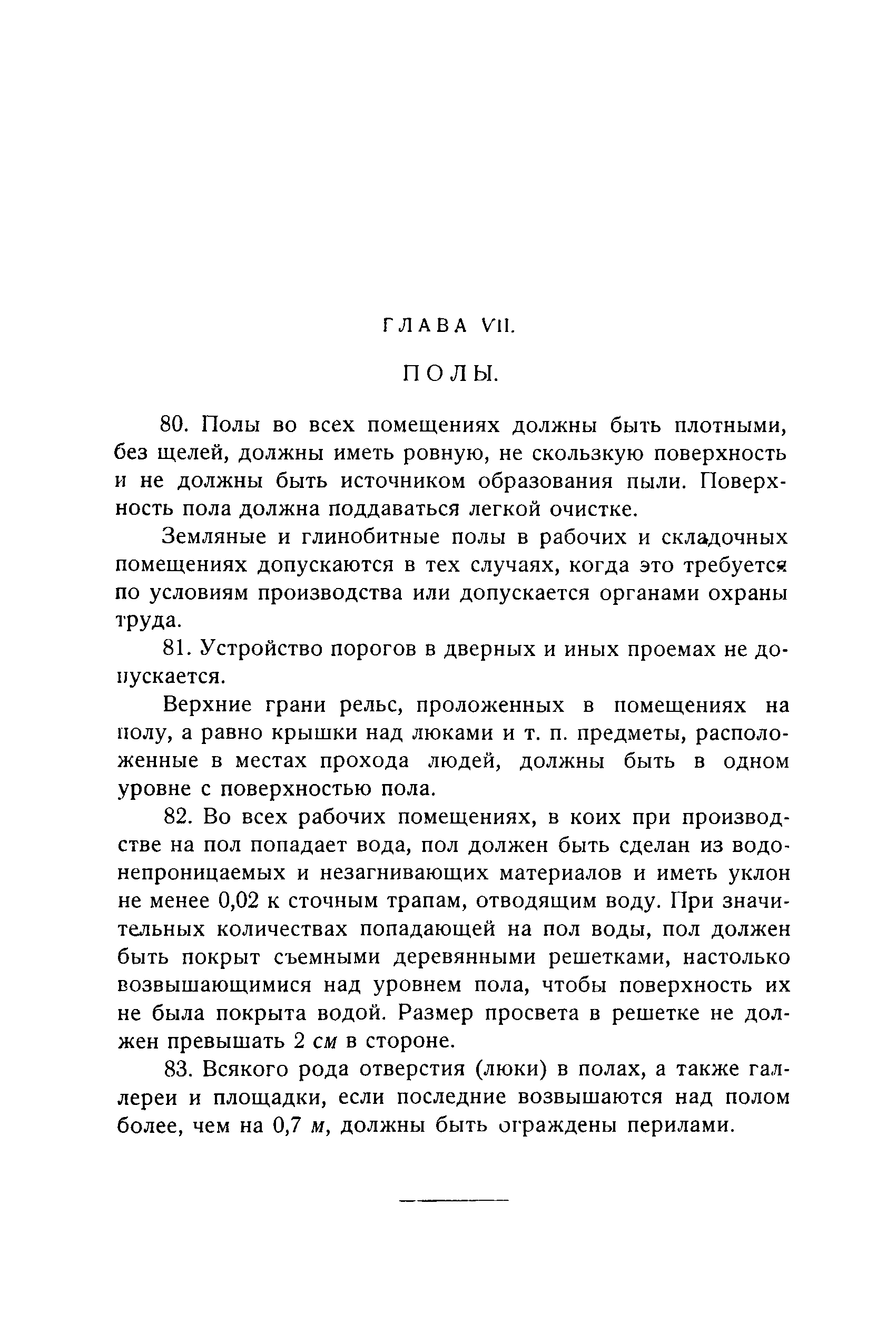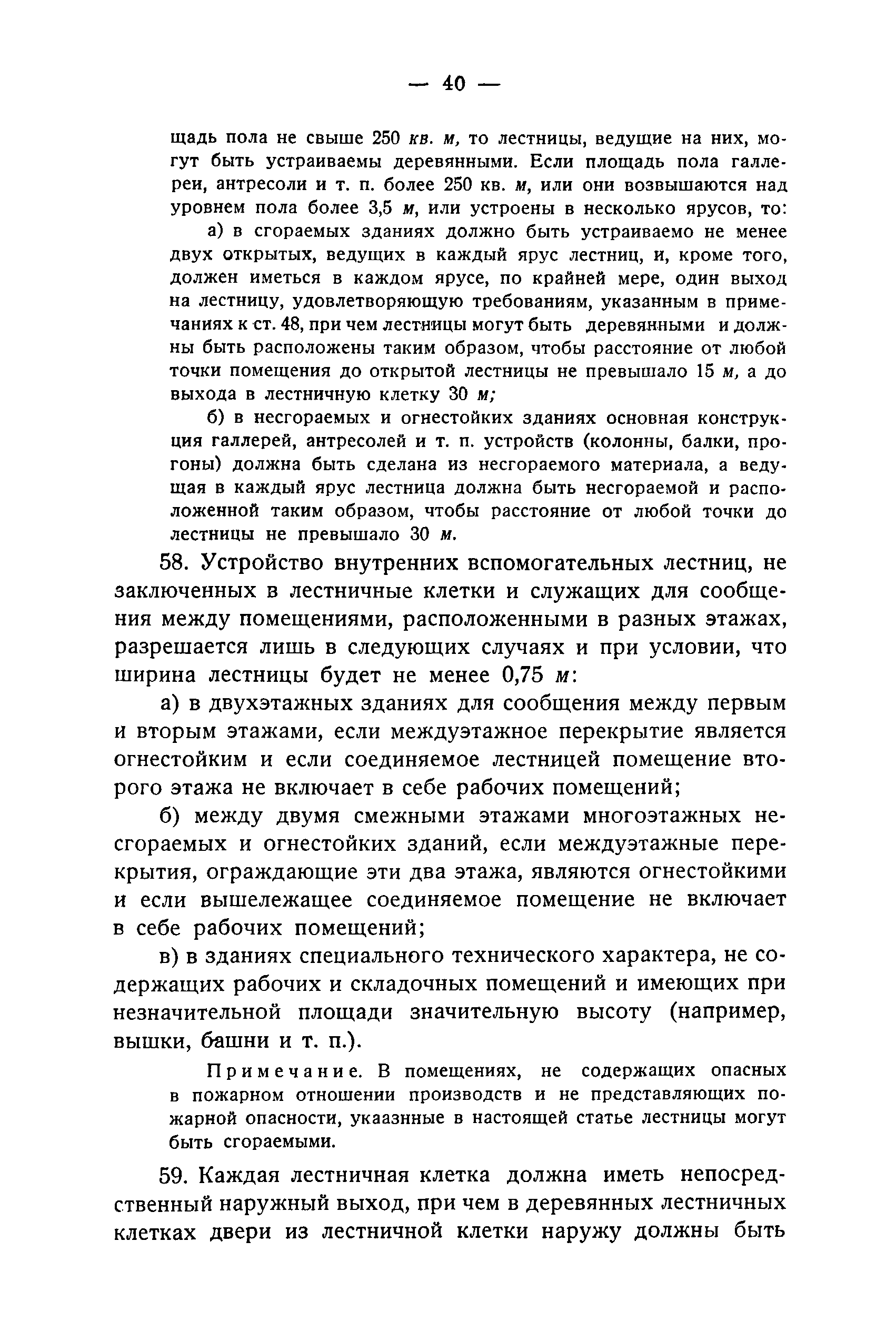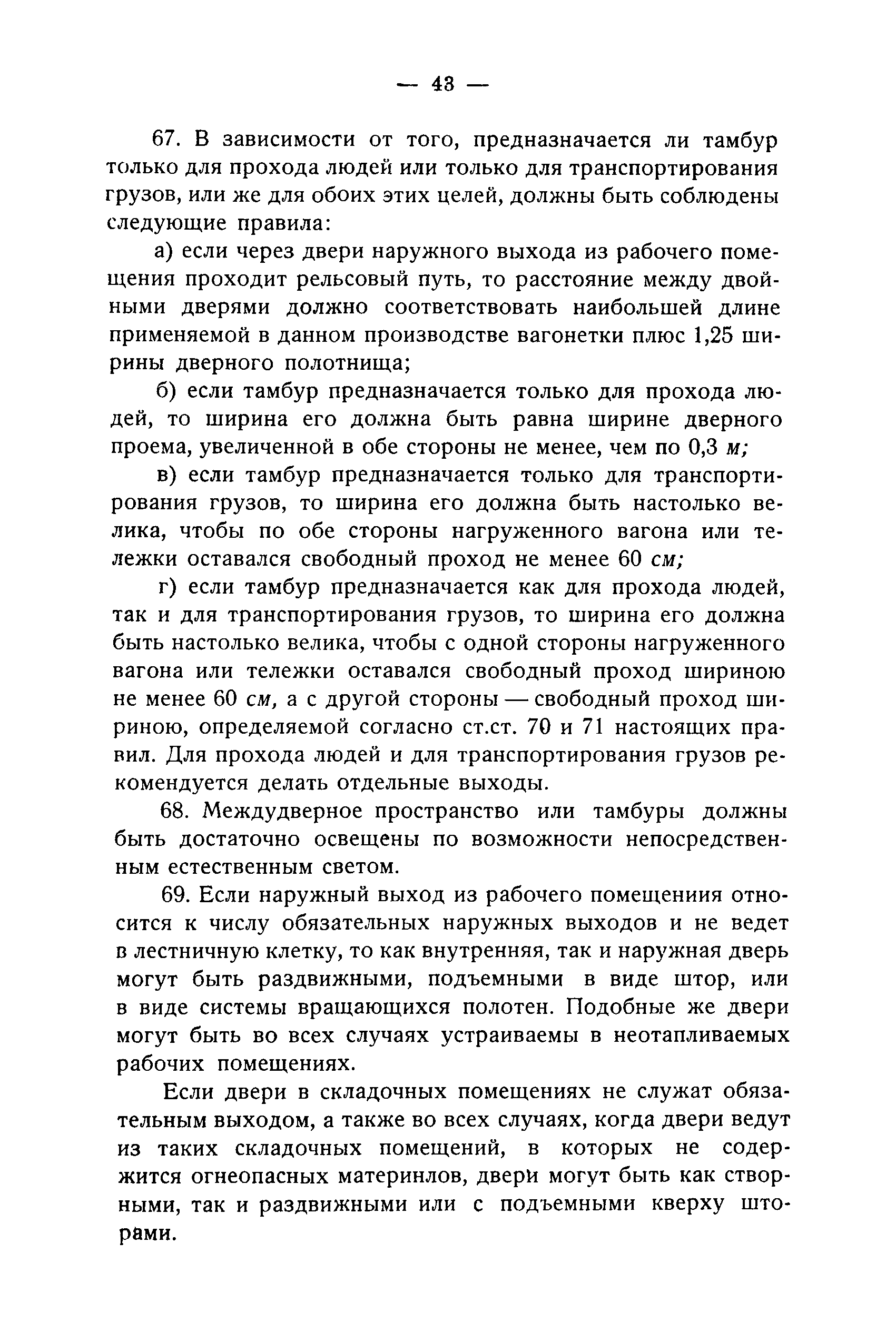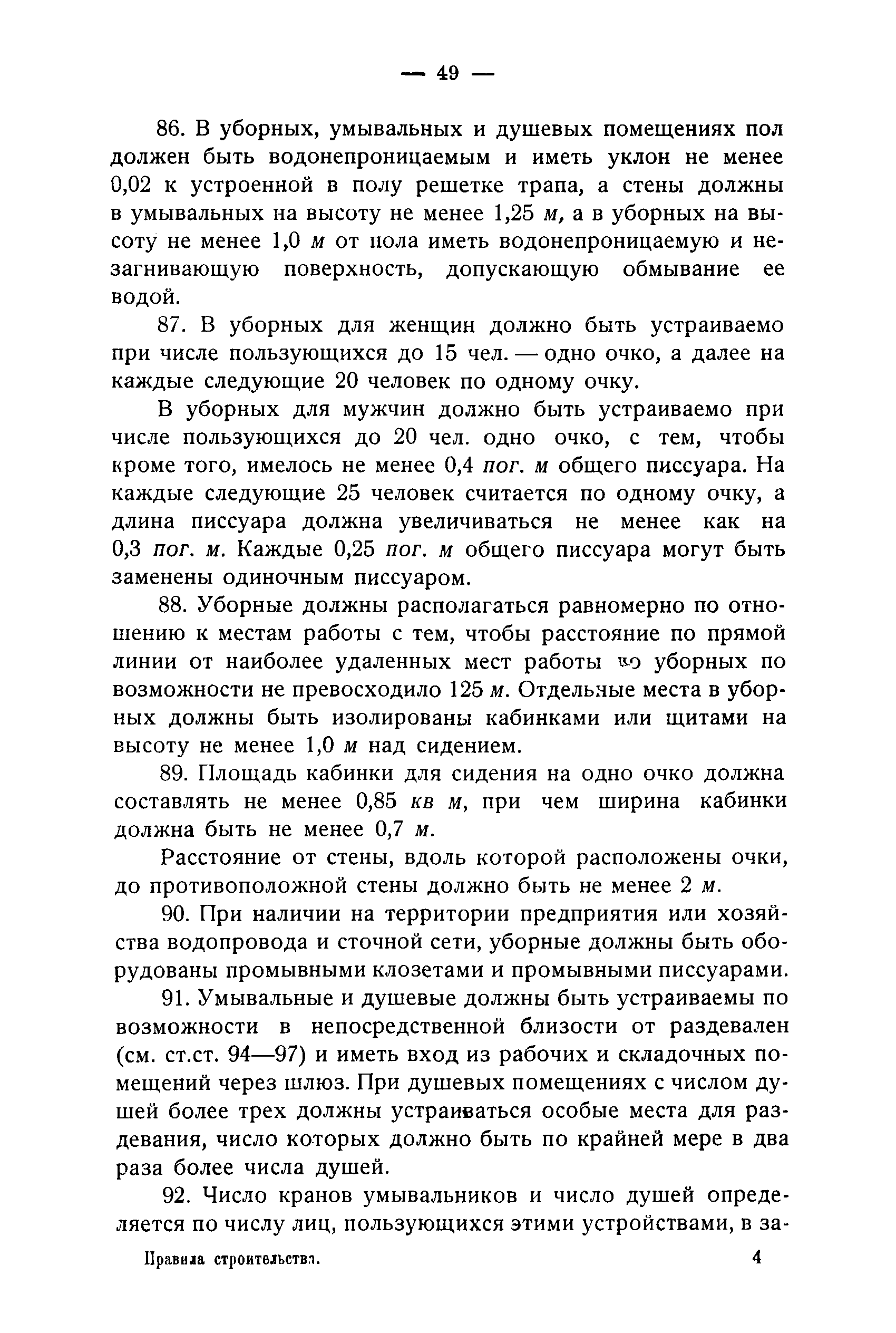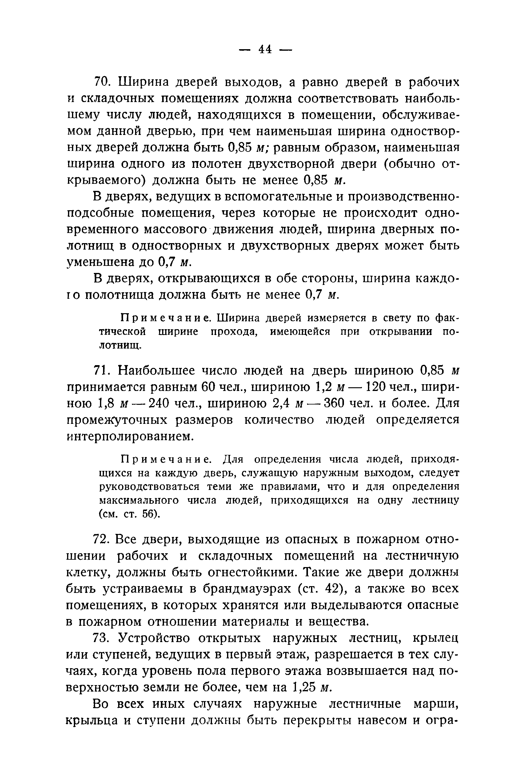Правила и нормы для промышленного строительства| Статус: | не действует | | Название рус.: | Правила и нормы для промышленного строительства | | Дата добавления в базу: | 21.05.2015 | | Дата актуализации: | 01.01.2021 | | Область применения: | Правила распространяются на промышленное строительство, осуществляемое государственными, коммунальными, кооперативными и концессионными предприятиями и хозяйствами, а равно государственными и частными акционерными обществами и частными лицами, а именно: на постройку новых производственных и складочных предприятий и хозяйств с числом рабочих, занятых в одной смене, не менее 25 человек; на капитальное переустройство и переоборудование производственных и складочных предприятий и хозяйств с числом рабочих, занятых в одной смене, не менее 25 человек; на постройку отдельных зданий и сооружений промышленного характера, возводимых на территории существующих производственных и складочных предприятий и хозяйств с числом рабочих, занятых в одной смене, не менее 25 человек. | | Оглавление: | Постановление КомСТО по строительству Предисловие Вводная часть Глава I Территория производственных предприятий и хозяйств Глава II Типы зданий и противопожарное оборудование Рабочие или производственные помещения Производственно-подсобные помещения Складочные помещения Вспомогательные помещения Глава III Размеры зданий и число этажей Глава IV Расположение зданий на участке Глава V Брандмауэры и выходы Здания сгораемые и защищенные от возгорания Здания смешанные Здания несгораемые Здания огнестойкие Мансардные и чердачные этажи Глава VI Лестницы Глава VII Полы Глава VIII Вспомогательные помещения для рабочих Глава IХ Освещение помещений естественным и искусственным светом Освещение помещений окнами в наружных стенах Освещение помещений путем световых фонарей Искусственное освещение Глава Х Отопление и вентиляция Глава ХI Шахты подъемников Глава ХII Помещения для постоянных паровых котлов Глава ХIII Склады топлива при предприятиях и хозяйствах А. Склады твердого топлива Б. Склады жидкого топлива Глава ХIV Хранение легковоспламеняющихся жидкостей Раздел I Склады легковоспламеняющихся жидкостей Хранение в надземных резервуарах Хранение в подземных резервуарах Хранение в таре Раздел II Места хранения легковоспламеняющихся жидкостей на территории предприятия или хозяйства Хранение в надземных резервуарах Хранение в подземных резервуарах Хранение в таре Глава ХV Хранение горючих материалов Приложение 1. Классификация строительных материалов, а также зданий и их конструктивных элементов в отношении пожарной безопасности Приложение 2. Классификация противопожарного оборудования Приложение 3. Классификация систем отопления и освещения с точки зрения пожарной безопасности Приложение 4. Данные о разрывах для складов жидкого топлива | | Утверждён: | 05.03.1929 Народный Комиссариат Труда Союза ССР