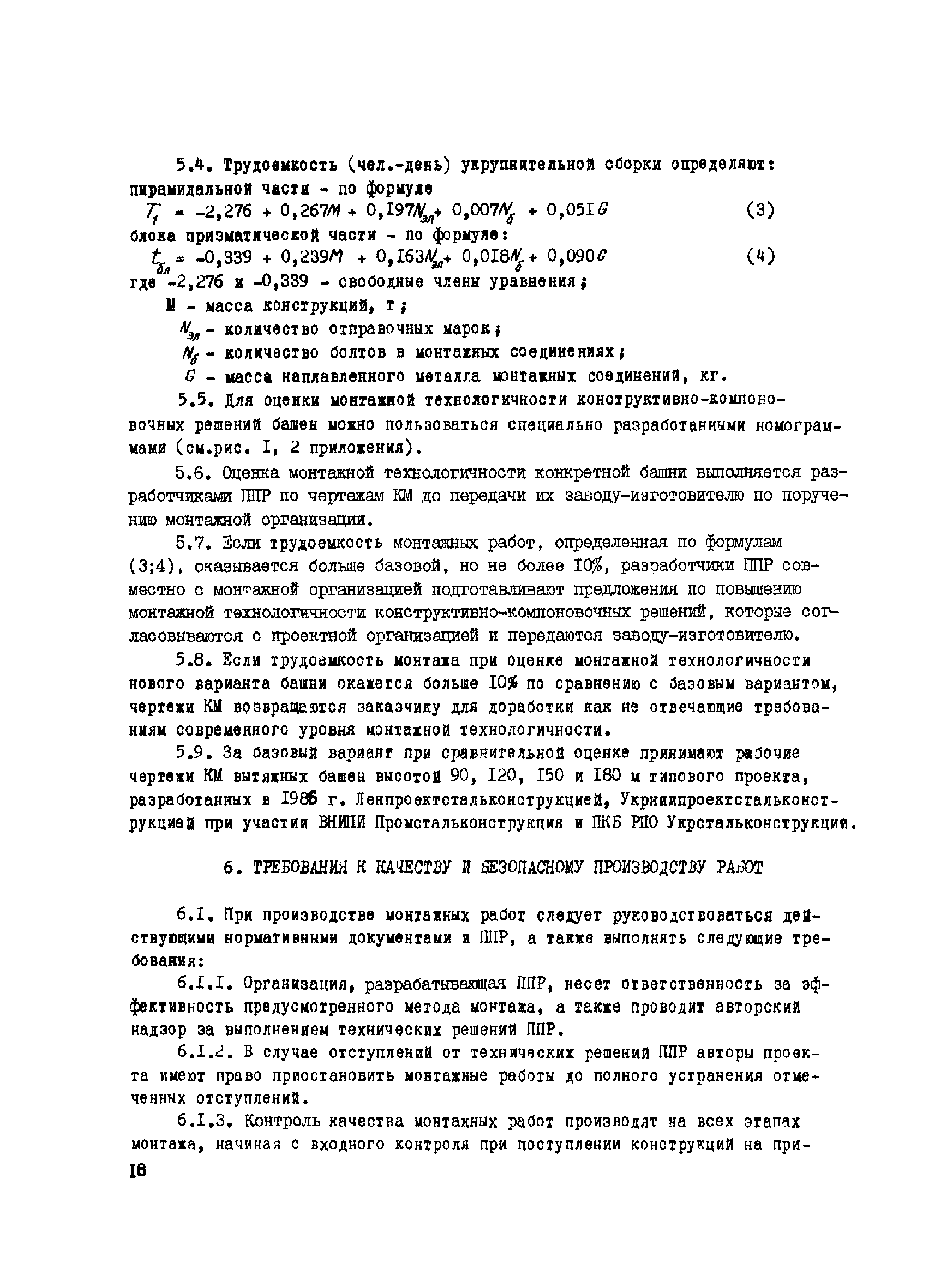 | Оглавление: | 1. Общие положения 2. Классификация вытяжных башен по параметрам конструктивно-компоновочных решений 3. Классификация и характеристика методов монтажа башен 4. Технико-экономические показатели методов монтажа 5. Оценка монтажной технологичности конструктивных решений башен 6. Требования к качеству и безопасному производству работ Приложение. Пример определения трудоемкости монтажа по номограммам при оценек монтажной технологичности вытяжной башни |