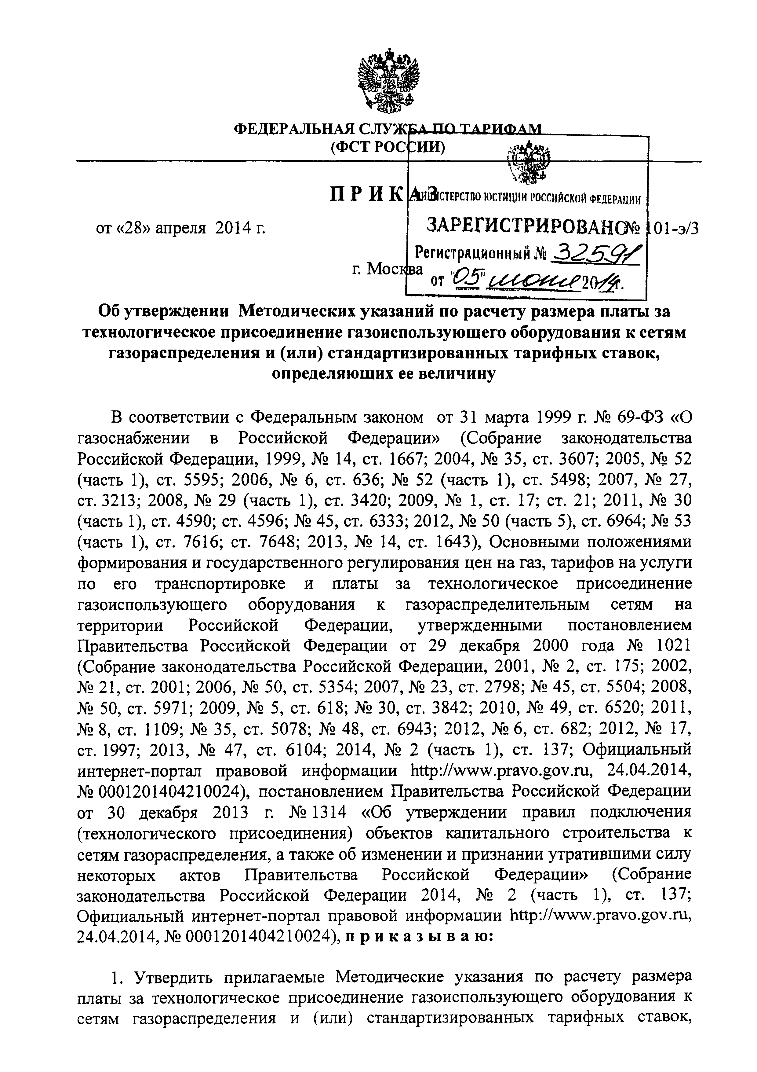 | Утверждён: | 28.04.2014 Федеральная служба по тарифам (101-э/3) |