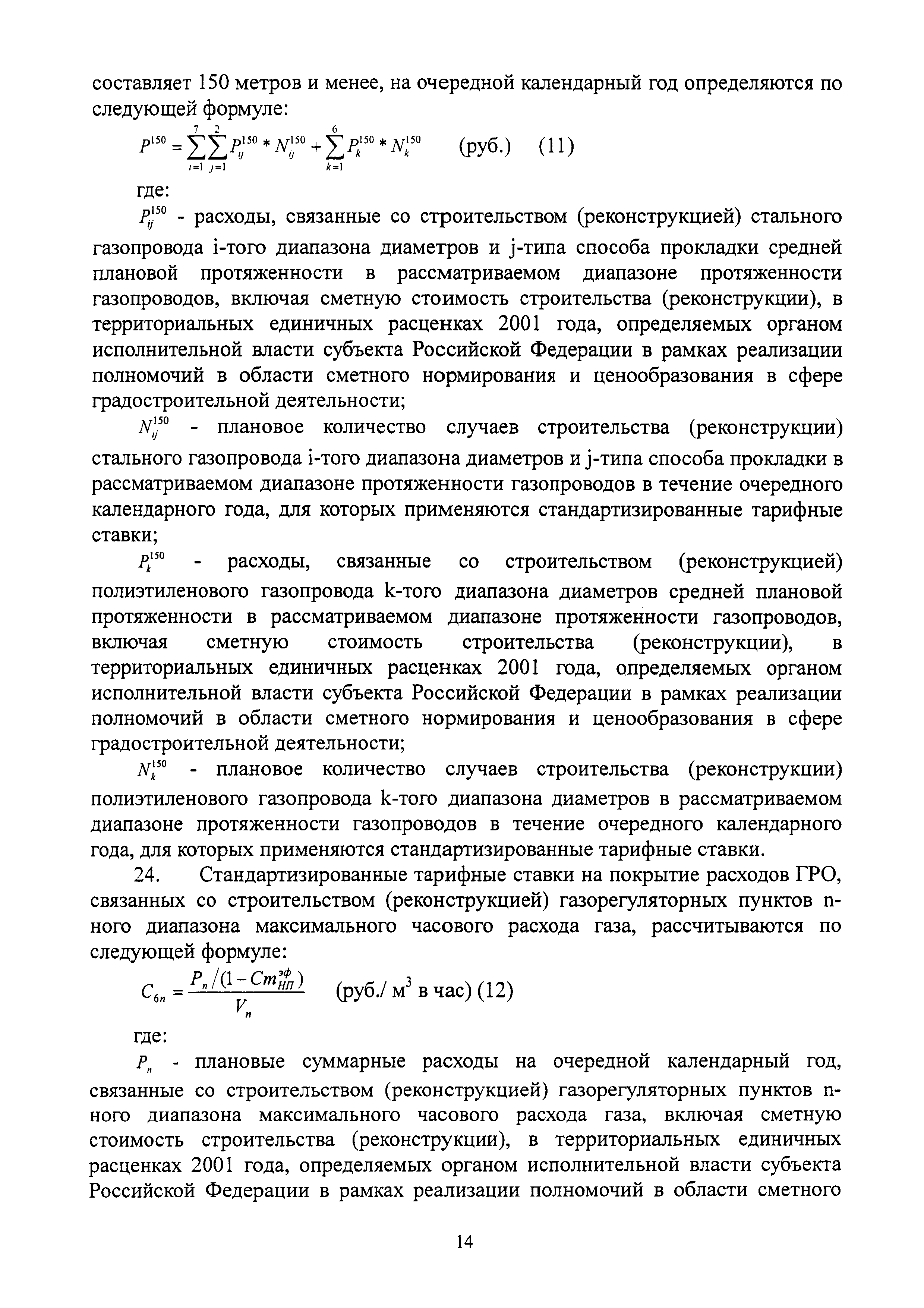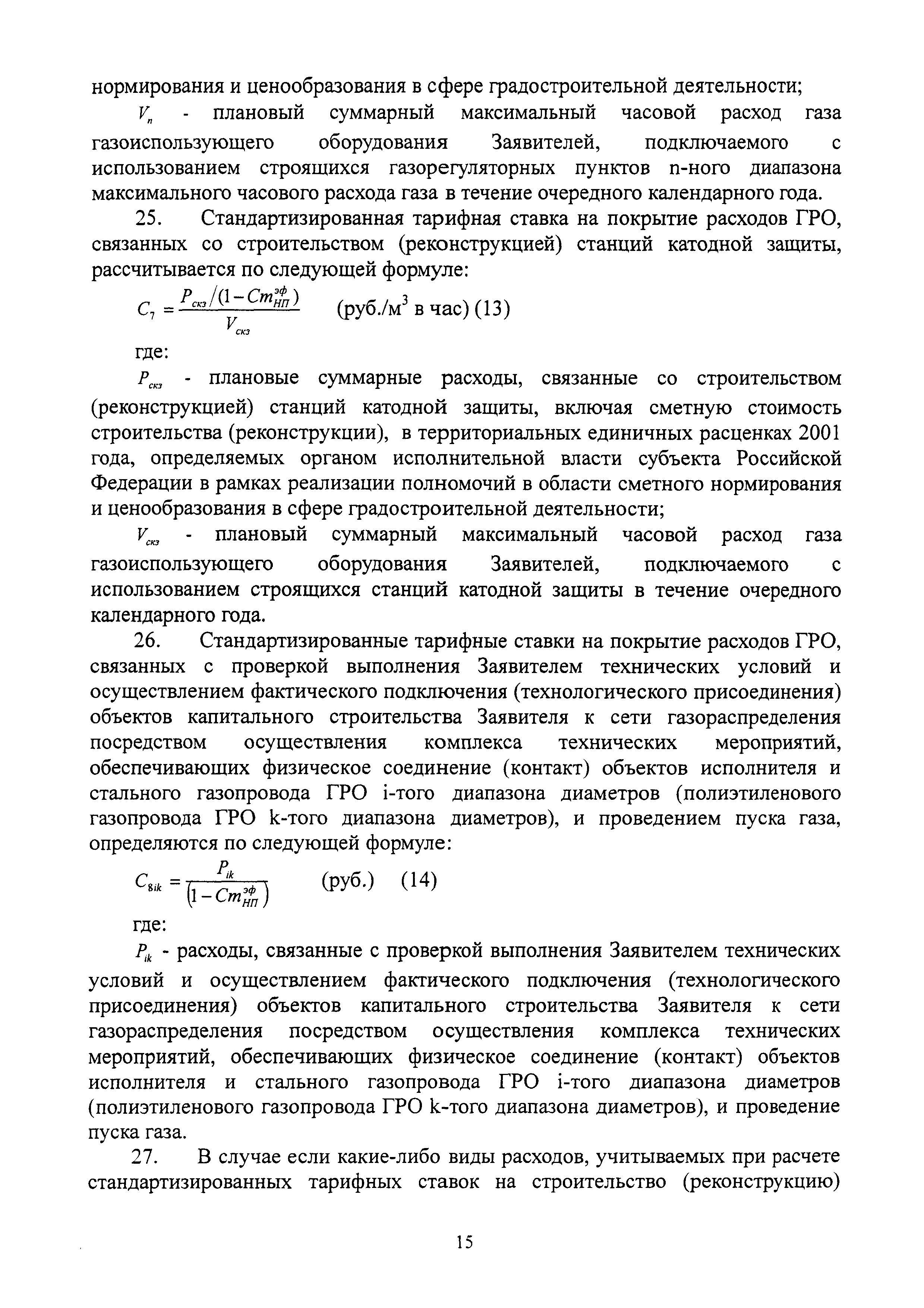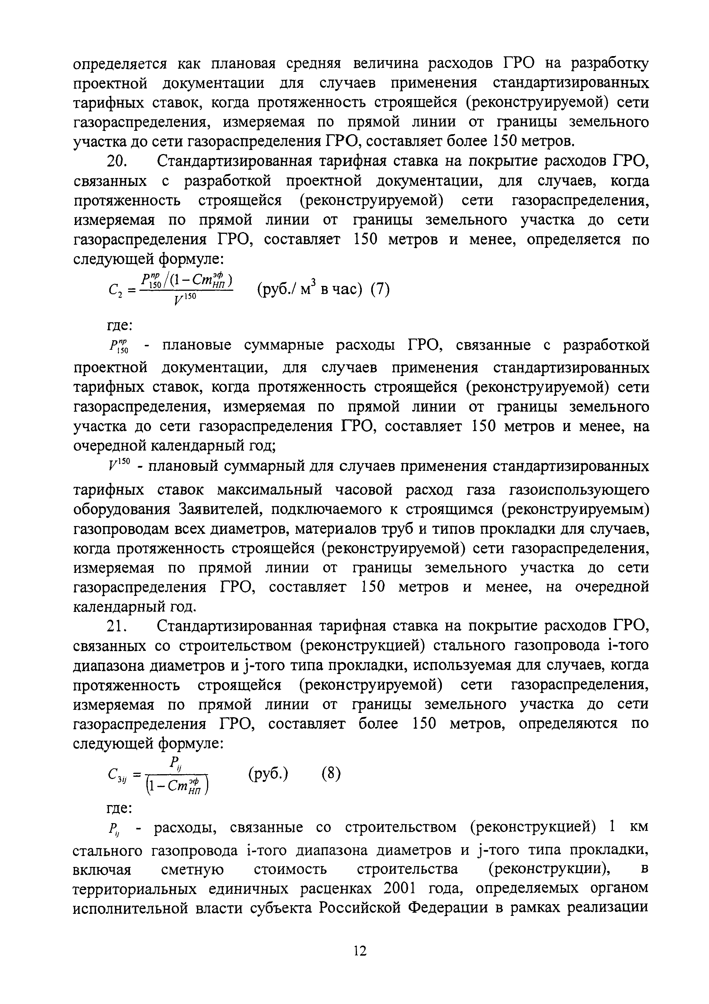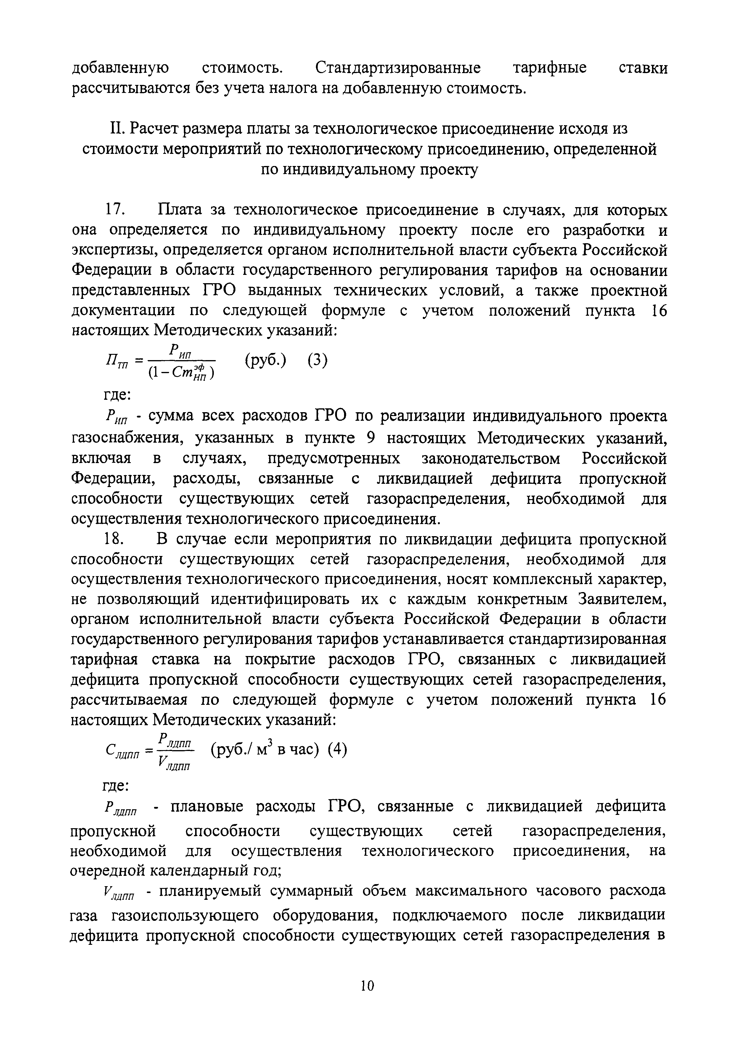 | Оглавление: | I. Общие положения II. Расчет размера платы за технологическое присоединение исходя из стоимости мероприятий по технологическому присоединению, определенной по индивидуальному проекту III. Расчет стандартизированных тарифных ставок IV. Определение величины платы за технологическое присоединение на основании утвержденных стандартизированных тарифных ставок Приложение 1. Расчет расходов на подключение (технологическое присоединение) в случаях, указанных в подпунктах "а" и "б" пункта 5 Методических указаний Приложение 2. Расчет стандартизированной тарифной ставки на покрытие расходов ГРО, связанных с разработкой проектной документации Приложение 3. Расчет стандартизированных тарифных ставок на покрытие расходов ГРО, связанных со строительством (реконструкцией) газопроводов, для случаев, когда протяженность строящейся (реконструируемой) сети газораспределения, измеряемая по прямой линии от границы земельного участка до сети газораспределения ГРО, составляет более 150 метров Приложение 4. Расчет стандартизированной тарифной ставки на покрытие расходов ГРО, связанных со строительством (реконструкцией) газопроводов, для случаев, когда протяженность строящейся (реконструируемой) сети газораспределения, измеряемая по прямой линии от границы земельного участка до сети газораспределения ГРО, составляет 150 метров и менее Приложение 5. Расчет стандартизированных тарифных ставок на покрытие расходов ГРО, связанных со строительством (реконструкцией) газорегуляторных пунктов Приложение 6. Расчет стандартизированной тарифной ставки на покрытие расходов, связанных со строительством (реконструкцией) станций катодной защиты Приложение 7. Расчет стандартизированных тарифных ставок на покрытие расходов ГРО, связанных с проверкой выполнения Заявителем технических условий и осуществлением фактического подключения (технологического присоединения) объектов капитального строительства Заявителя к сети газораспределения Приложение 8. Расчет платы за технологическое присоединение газоиспользующего оборудования по индивидуальному проекту |
