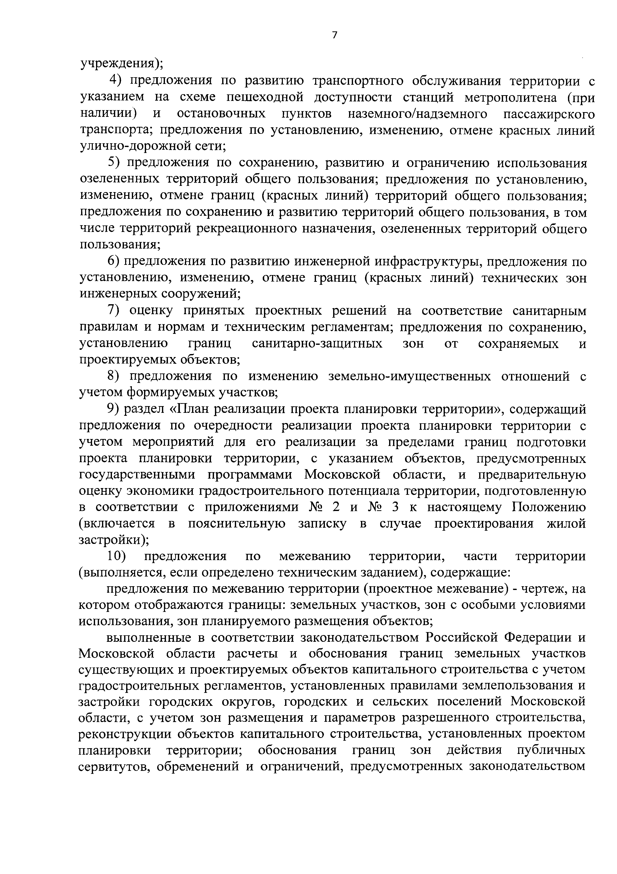 Положение о составе, порядке получения решения о подготовке, согласования и утверждения документации по планировке территорий в Московской области, разработка которой осуществляется по заявлениям физических и юридических лиц| Статус: | утратил силу | | Название рус.: | Положение о составе, порядке получения решения о подготовке, согласования и утверждения документации по планировке территорий в Московской области, разработка которой осуществляется по заявлениям физических и юридических лиц | | Дата добавления в базу: | 21.05.2015 | | Дата актуализации: | 01.01.2021 | | Дата введения: | 30.12.2014 | | Дата окончания срока действия: | 30.12.2016 | | Область применения: | Положение регулирует отношения, связанные с подготовкой, согласованием и утверждением документации по планировке территорий в Московской области, разработка которой осуществляется по заявлениям физических и юридических лиц | | Оглавление: | Раздел 1. Общие положения Раздел 2. Состав проекта планировки территории Раздел 3. Состав материалов по обоснованию проекта планировки территории Раздел 4. Состав материалов проекта межевания Раздел 5. Порядок получения решения о подготовке документации по планировке территории Раздел 6. Порядок согласования и утверждения документации по планировке территорий Приложение № 1. Состав технического задания на подготовку документации по планировке территории Приложение № 2. Предварительная оценка экономики градостроительного потенциала территории Приложение № 3. Формы заполнения данных для предварительной оценки градостроительного потенциала территории Приложение № 4. Состав презентационного материала | | Утверждён: | 30.12.2014 Правительство Московской области (Government of the Moscow Region 1197/52)
