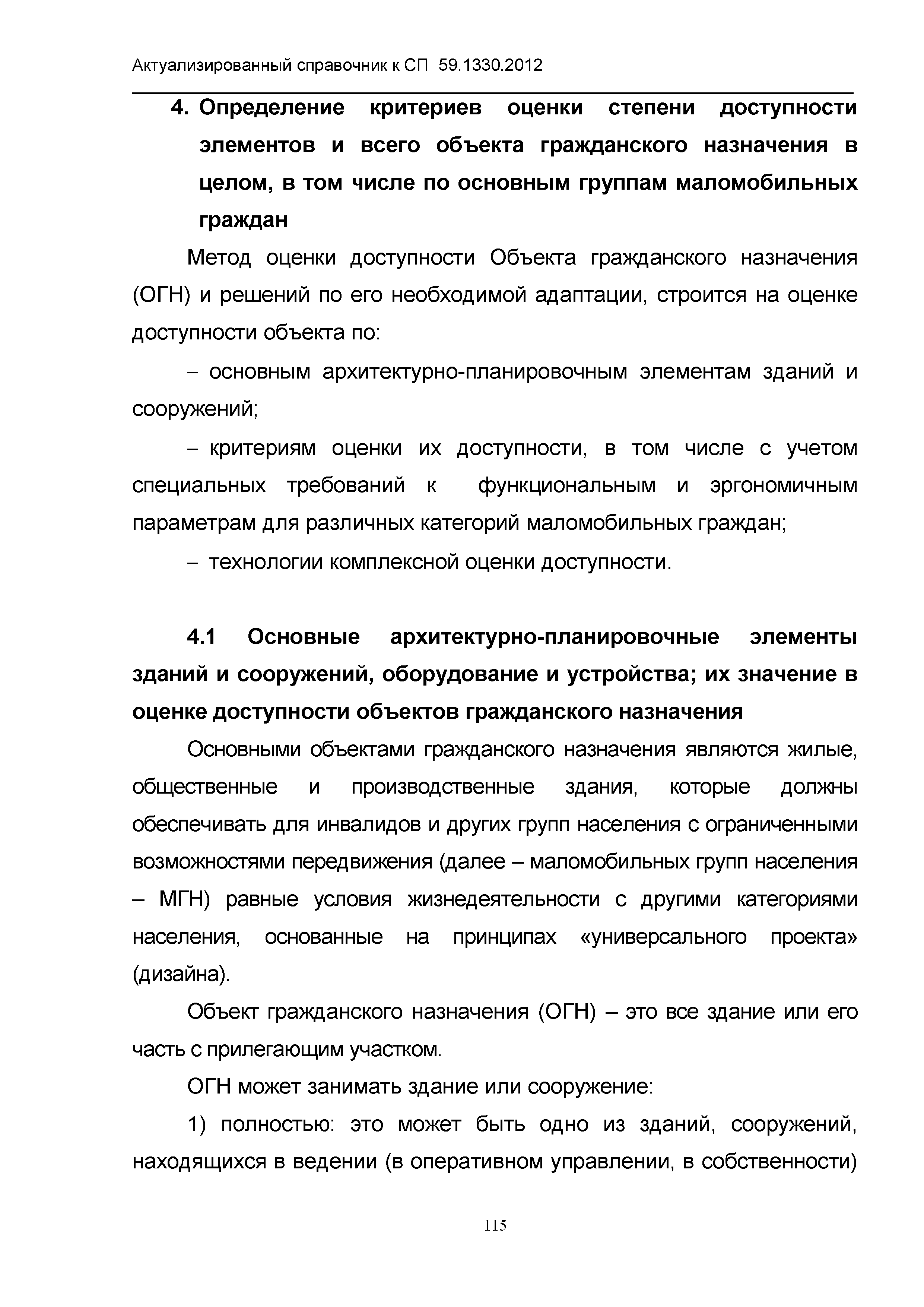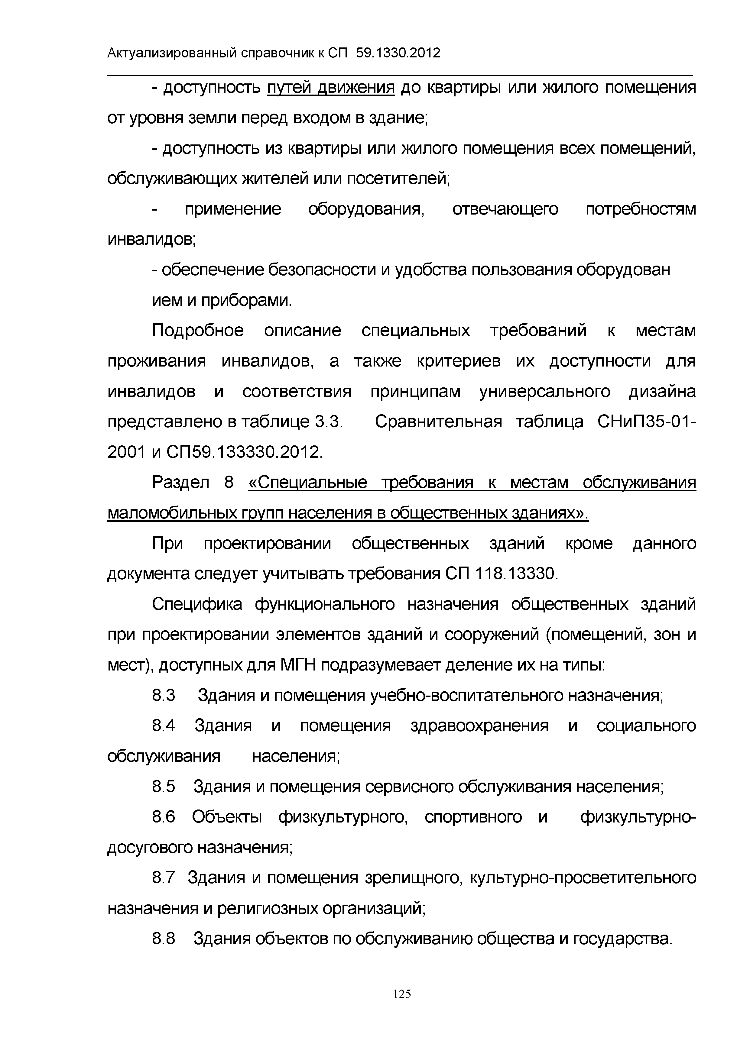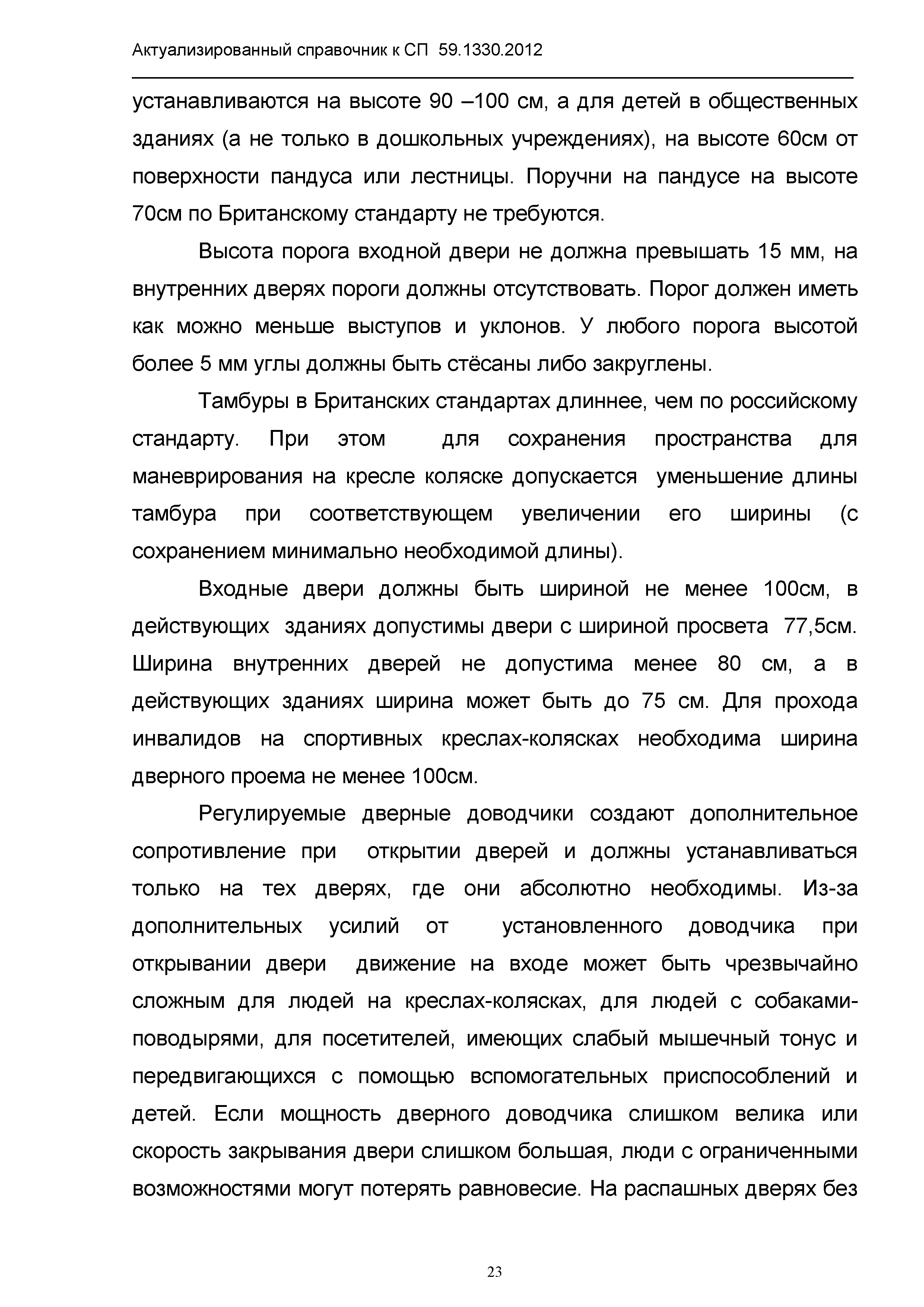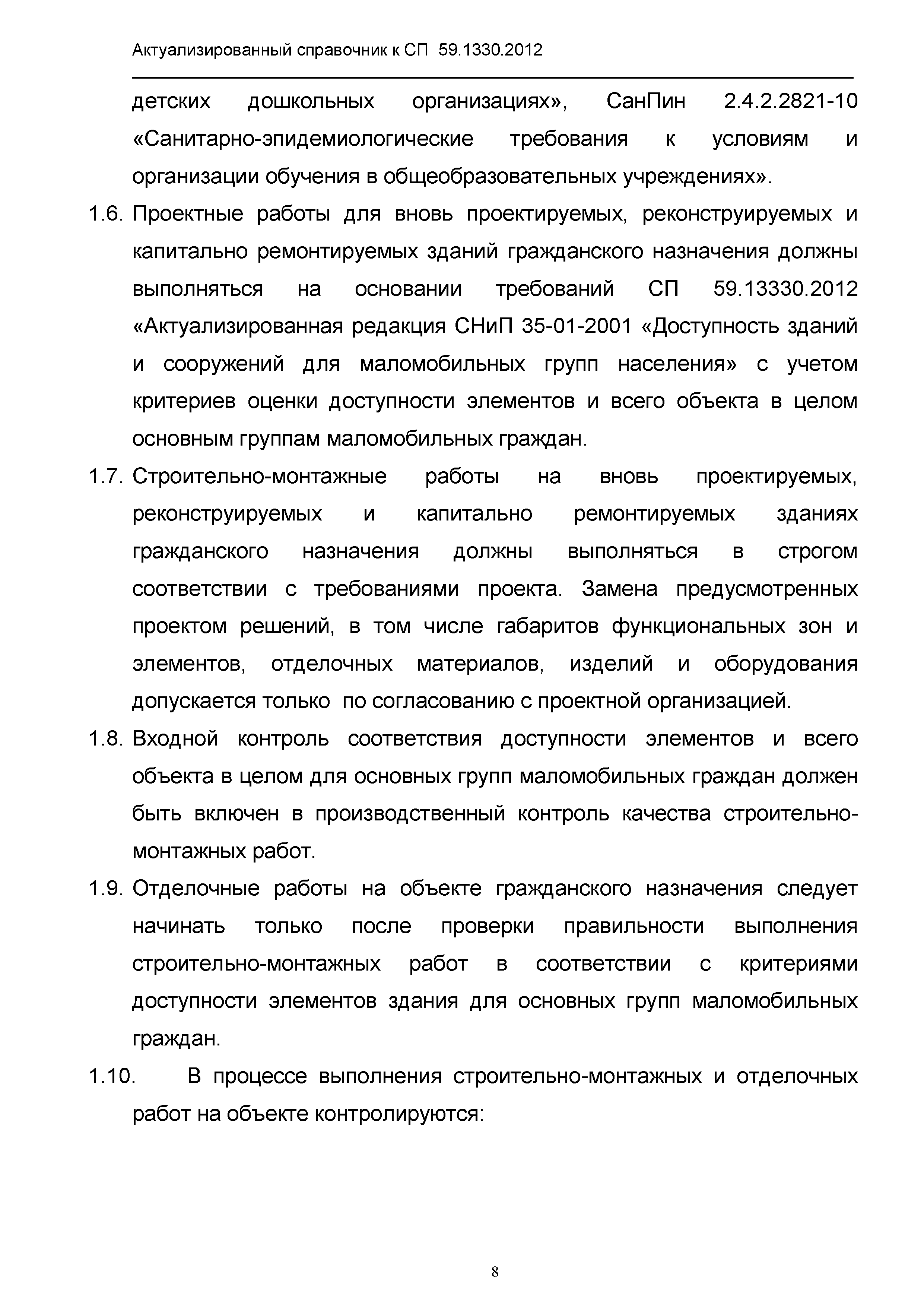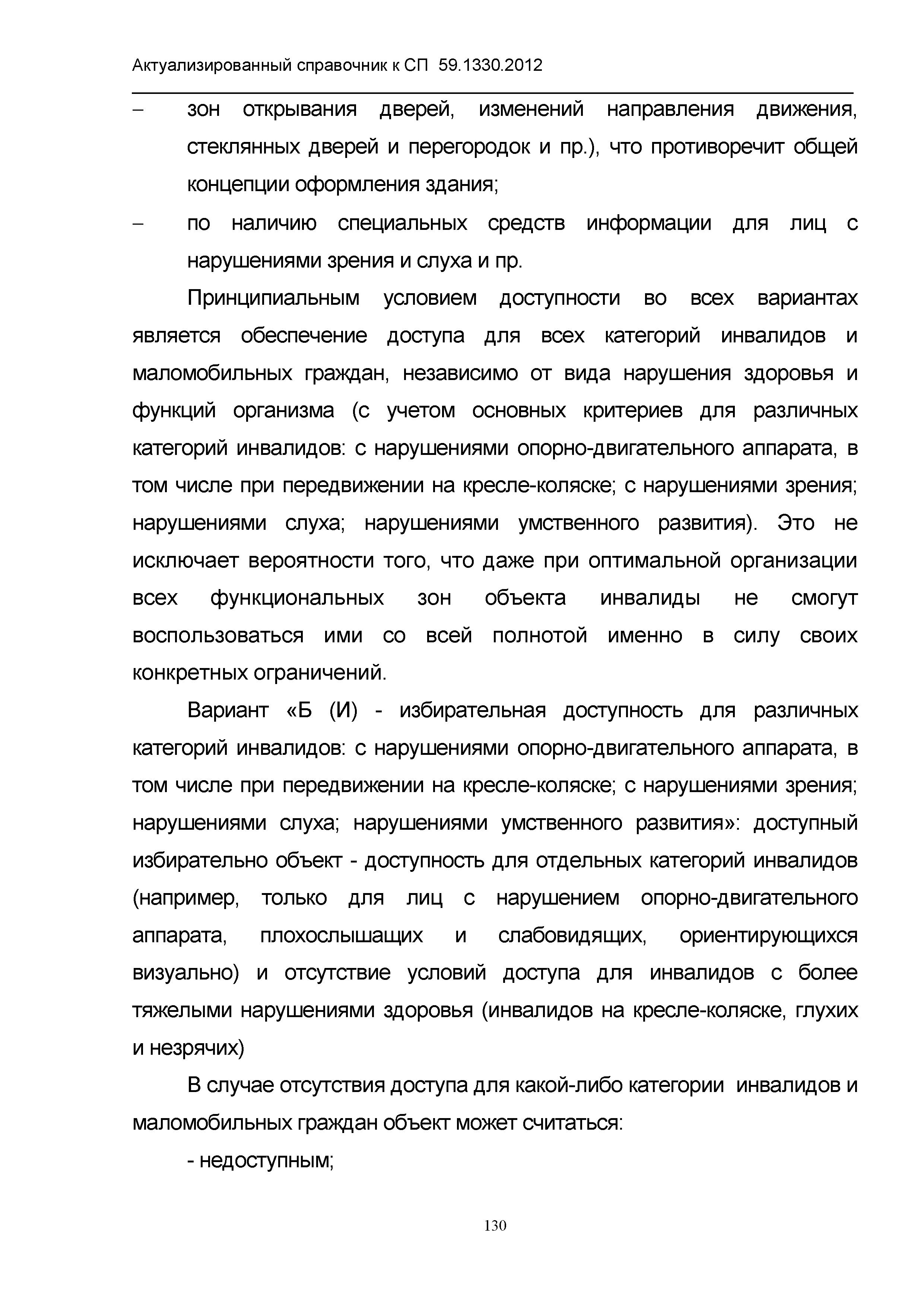 | Название рус.: | Актуализированный справочник по основным структурно-функциональным зонам и элементам объектов гражданского назначения, обеспечивающих доступность объектов для маломобильных групп населения, на основе анализа действующей системы нормативных документов в строительстве и вновь вводимого с 1.01.2013 г. СП 59.13330.2012 "Актуализированная редакция СНиП 35-01-2001 "Доступность зданий и сооружений для маломобильных групп населения" |