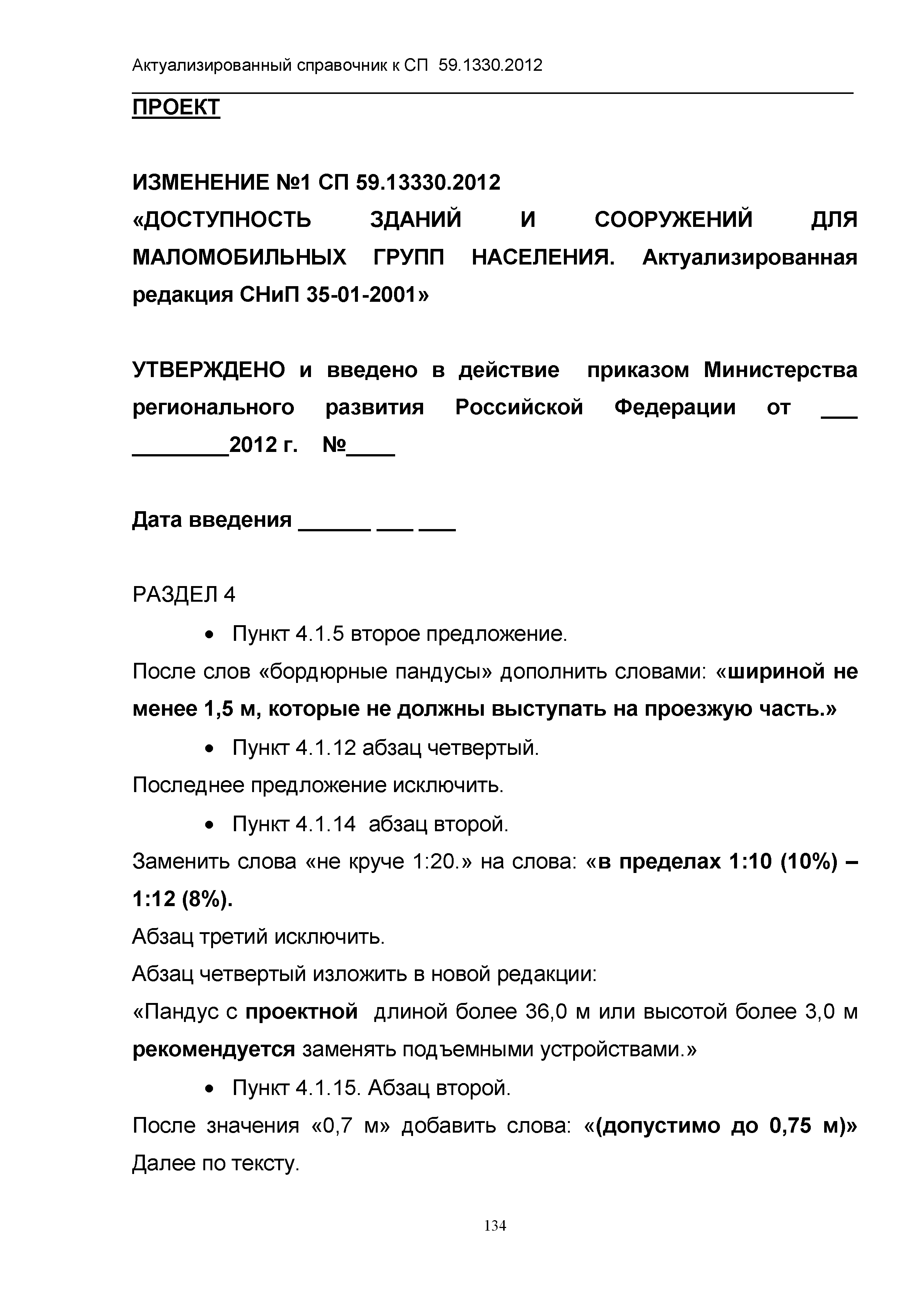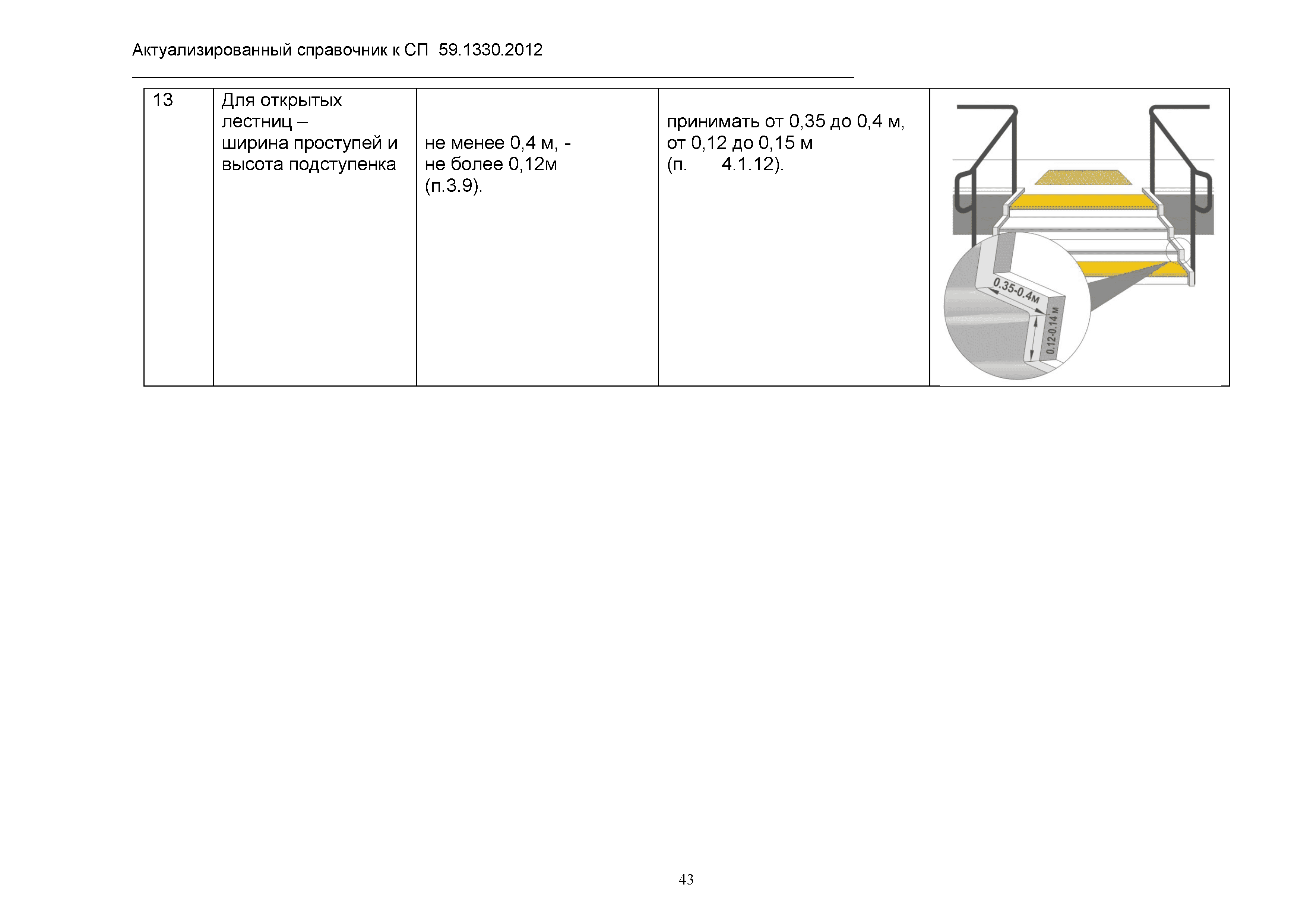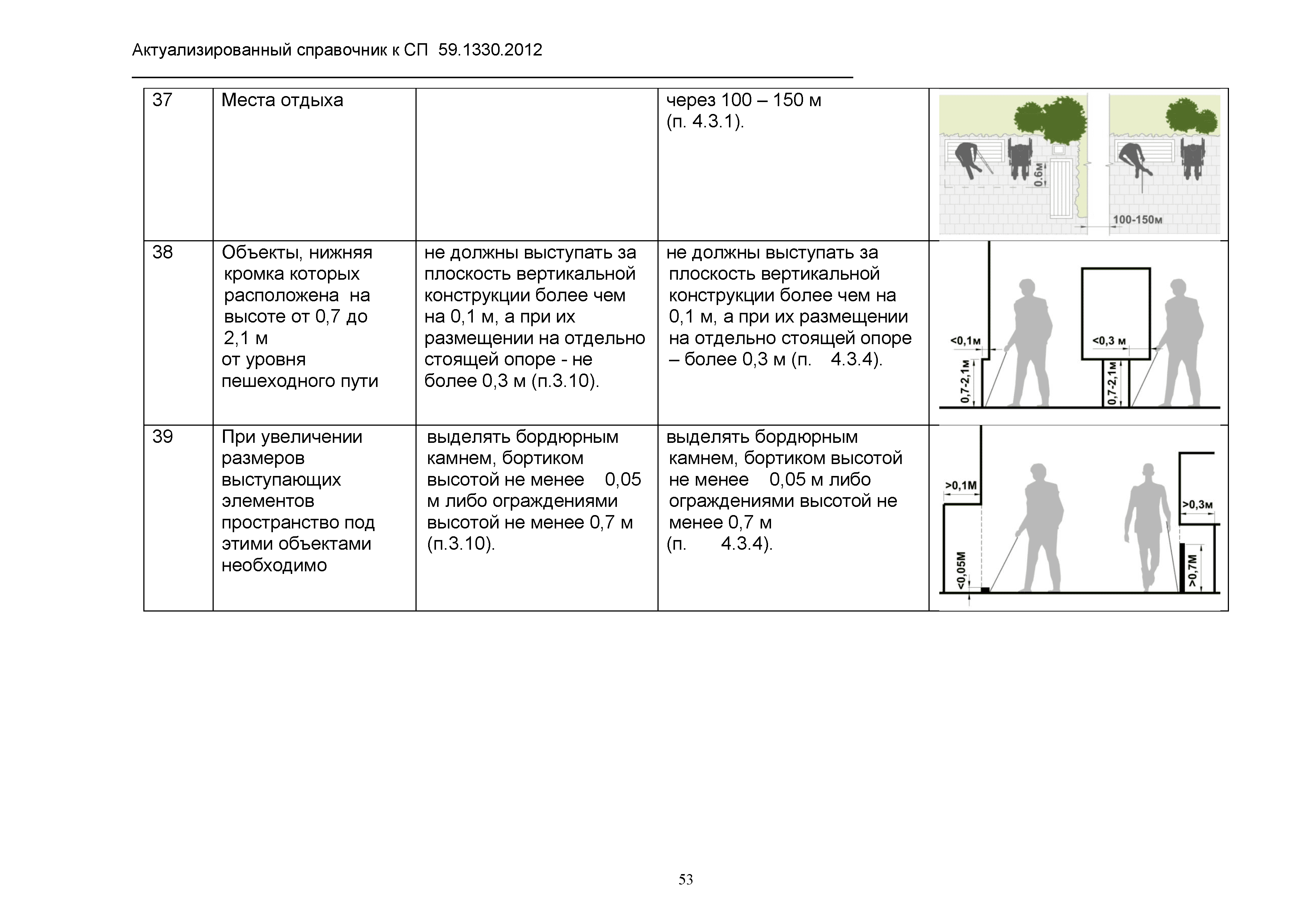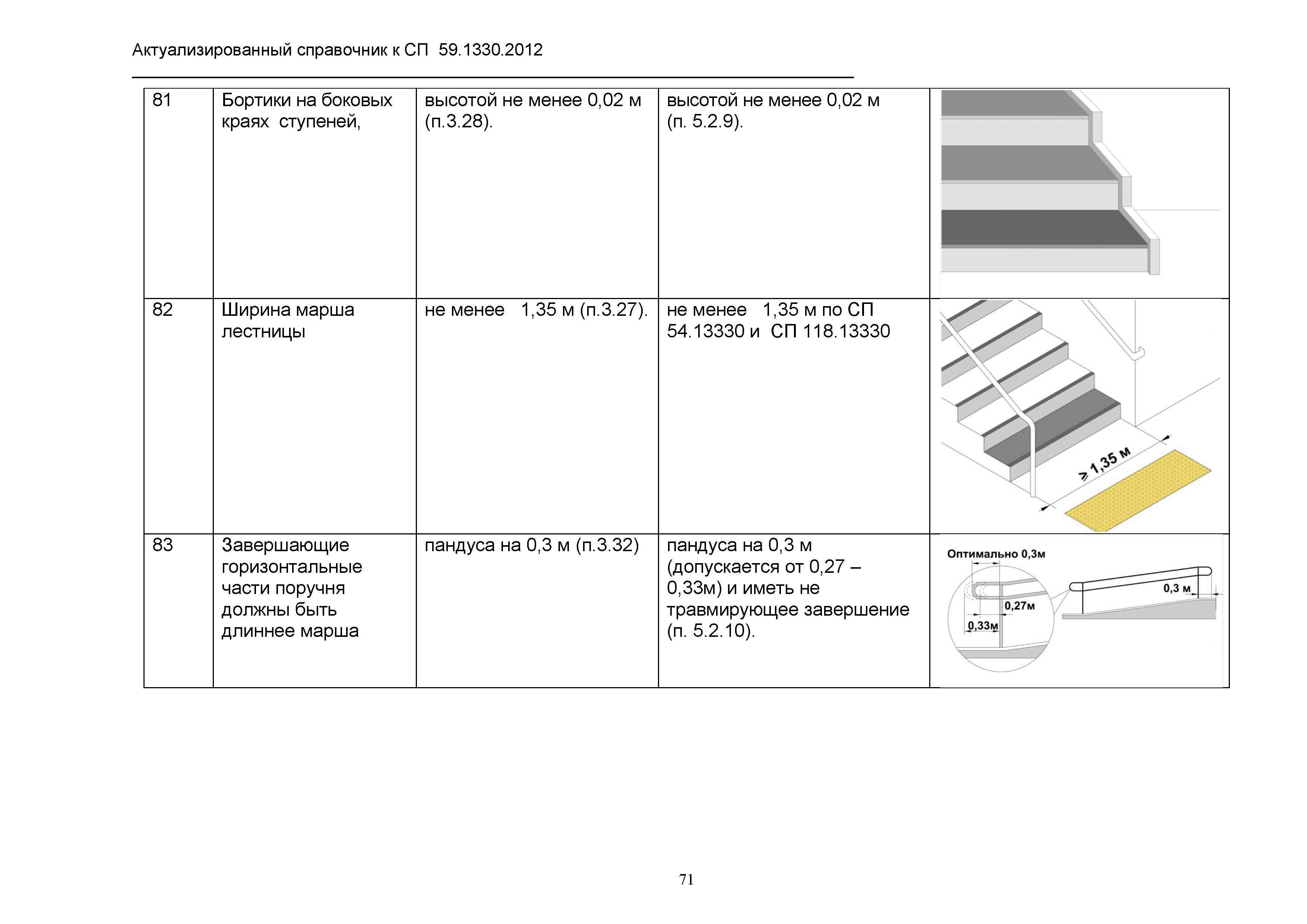 | Оглавление: | 1. Общая часть 2. Сравнительный анализ действующих нормативов по основным структурно-функциональным зонам и элементам объектов гражданского назначения, обеспечивающих доступность объектов для маломобильных групп населения, в зарубежных странах 2.1. Американский национальный стандарт "American National Standard ICC/ANSI A117.1-2003 Accessible and Usable Buildings and Facilities" 2.2 Британские стандарты "BSI" "Проектирование зданий и прилежащей территории с учетом доступности для маломобильных групп населения" - Свод правил "British Standard 8300" 2.3. Немецкий стандарт DIN 18040 "Безбарьерное строительство - Принципы проектирования", Часть 1 "Общественные здания", Часть 2 "Жилые помещения" 3. Сравнительный анализ действующих и вновь вводимых с 01.01.2013 г. нормативов по основным структурно-функциональным зонам и элементам объектов гражданского назначения, обеспечивающих доступность объектов для маломобильных групп населения в РФ 4. Определение критериев оценки степени доступности элементов и всего объекта в целом, в том числе по основным группам маломобильных граждан Приложение 1. Подготовленные изменения в СП 59.13330.2012 "Актуализированная редакция СНиП 35-01-2001 "Доступность зданий и сооружений для маломобильных групп населения" |