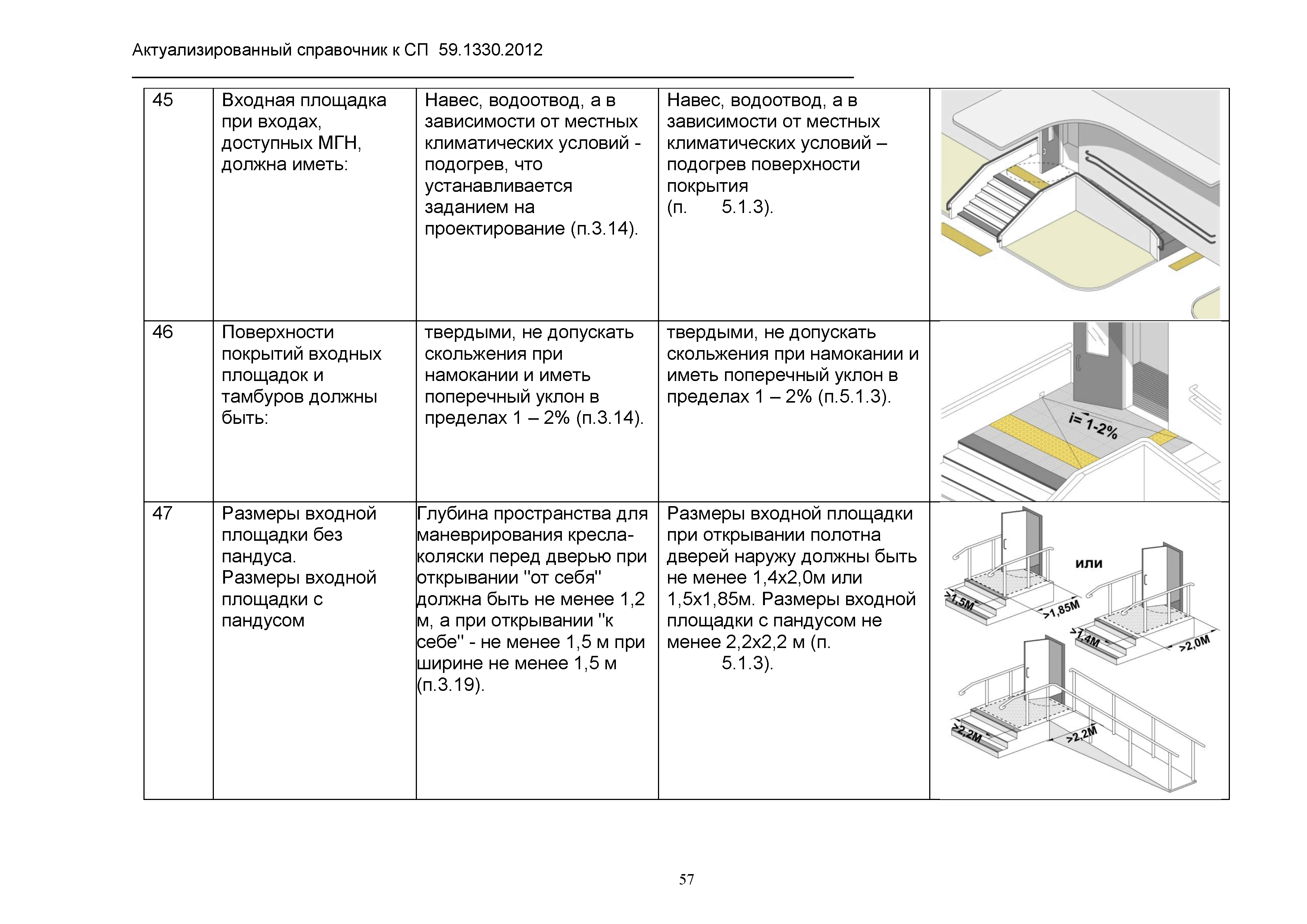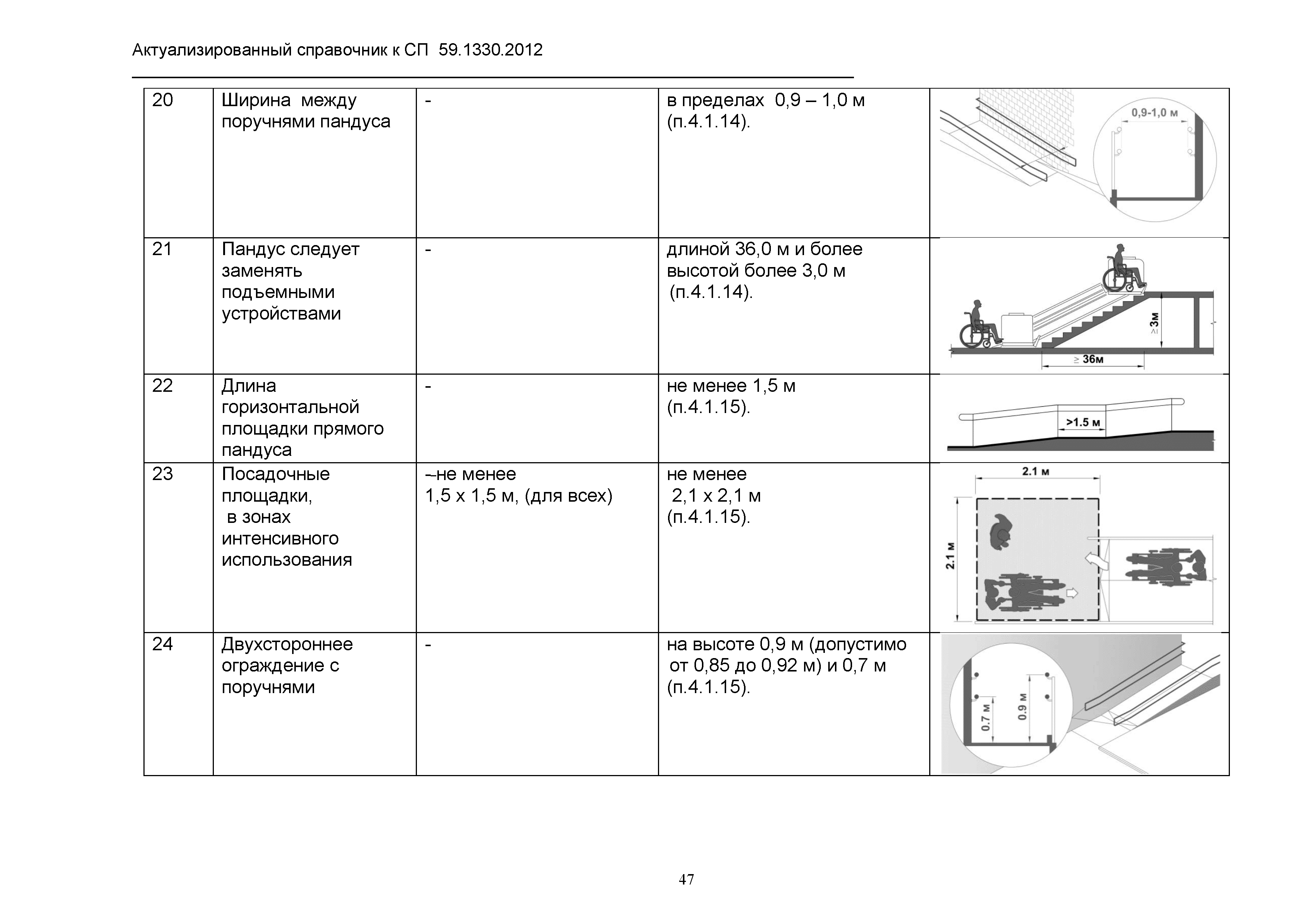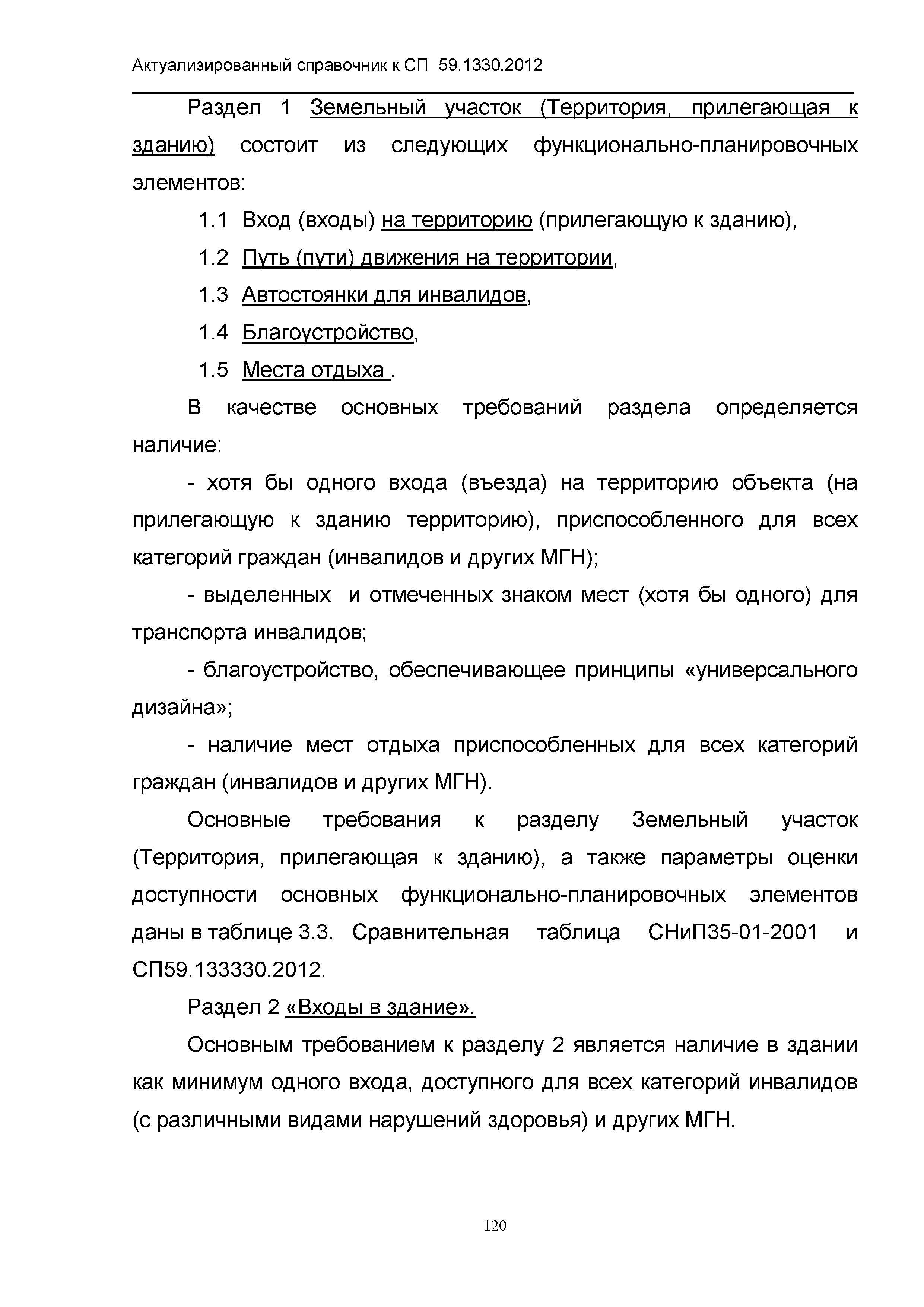 Скачать Актуализированный справочник по основным структурно-функциональным зонам и элементам объектов гражданского назначения, обеспечивающих доступность объектов для маломобильных групп населения, на основе анализа действующей системы нормативных документов в строительстве и вновь вводимого с 1.01.2013 г. СП 59.13330.2012 Актуализированная редакция СНиП 35-01-2001 Доступность зданий и сооружений для маломобильных групп населенияДата актуализации: 01.01.2021 |