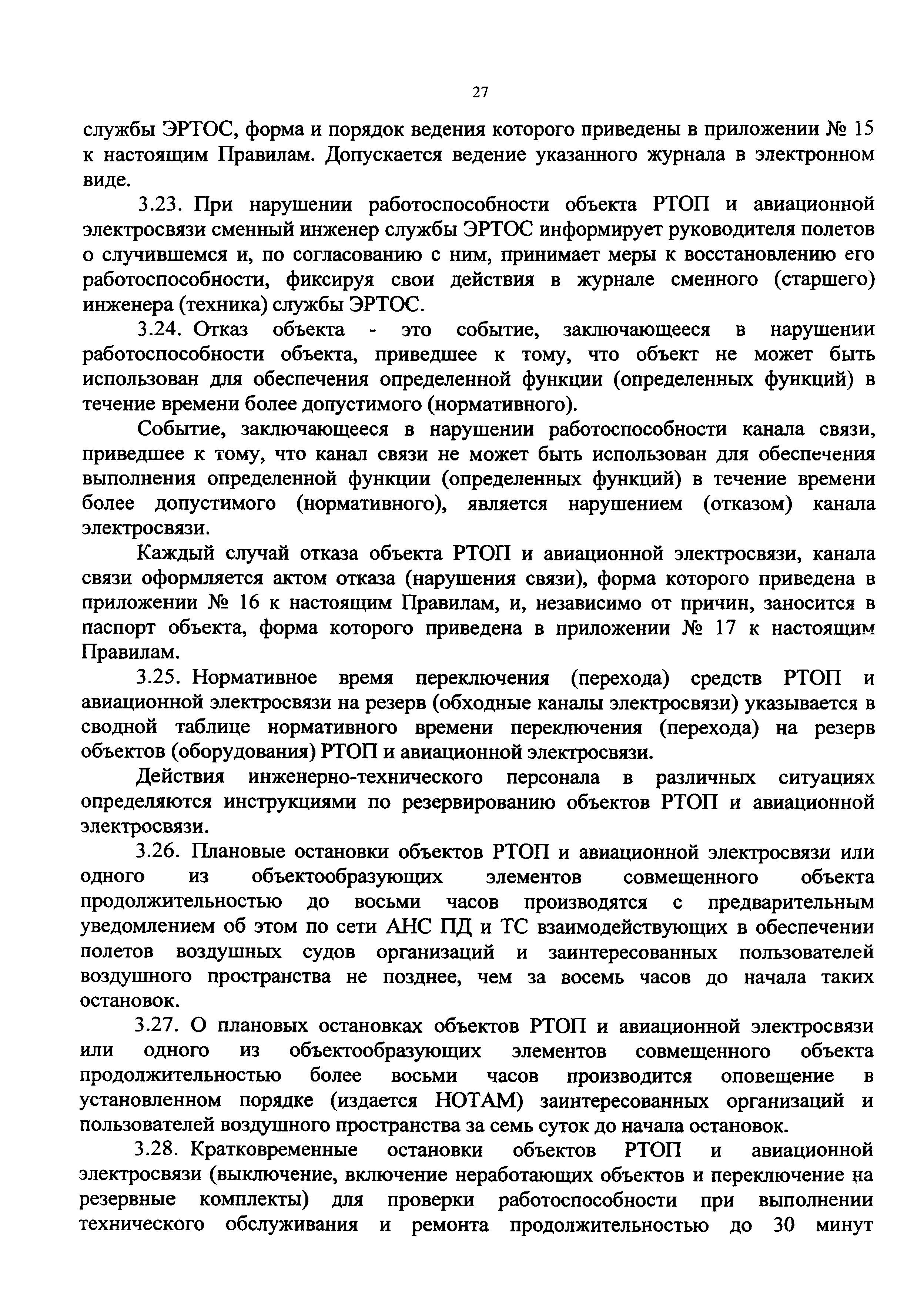 | Оглавление: | I. Общие положения II. Организация радиотехнического обеспечения полетов воздушных судов и авиационной электросвязи III. Организация технической эксплуатации объектов и средств РТОП и авиационной электросвязи IV. Использование радиочастотного спектра и обеспечение ЭМС средств РТОП и авиационной электросвязи Приложение № 1 Приложение № 2 Приложение № 3 Приложение № 4 Приложение № 5 Приложение № 6 Приложение № 7 Приложение № 8 Приложение № 9 Приложение № 10 Приложение № 11 Приложение № 12 Приложение № 13 Приложение № 14 Приложение № 15 Приложение № 16 Приложение № 17 Приложение № 18 Приложение № 19 Приложение № 20 |