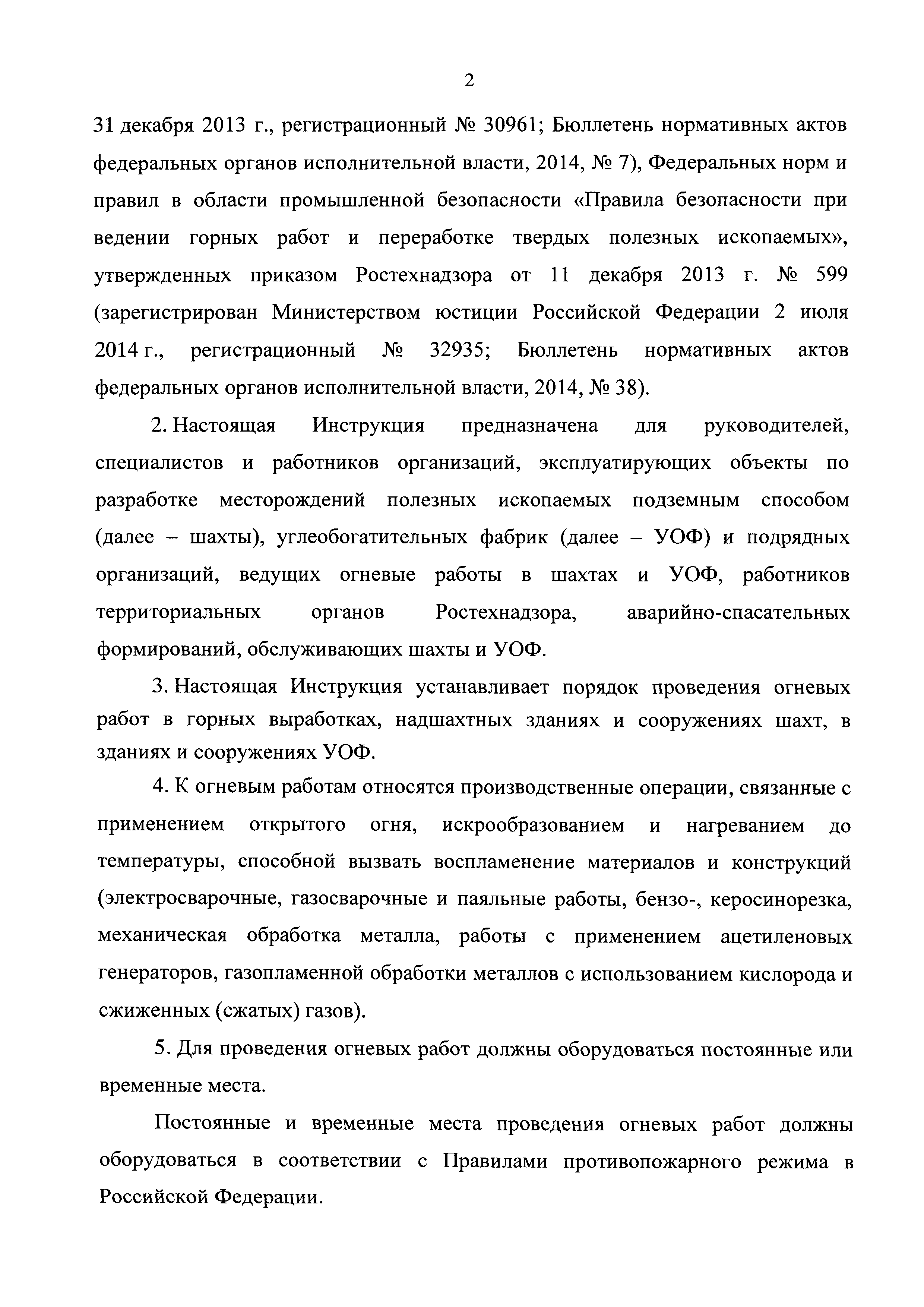 | Название рус.: | Федеральные нормы и правила в области промышленной безопасности "Инструкция по ведению огневых работ в горных выработках, надшахтных зданиях шахт и углеобогатительных фабриках" |