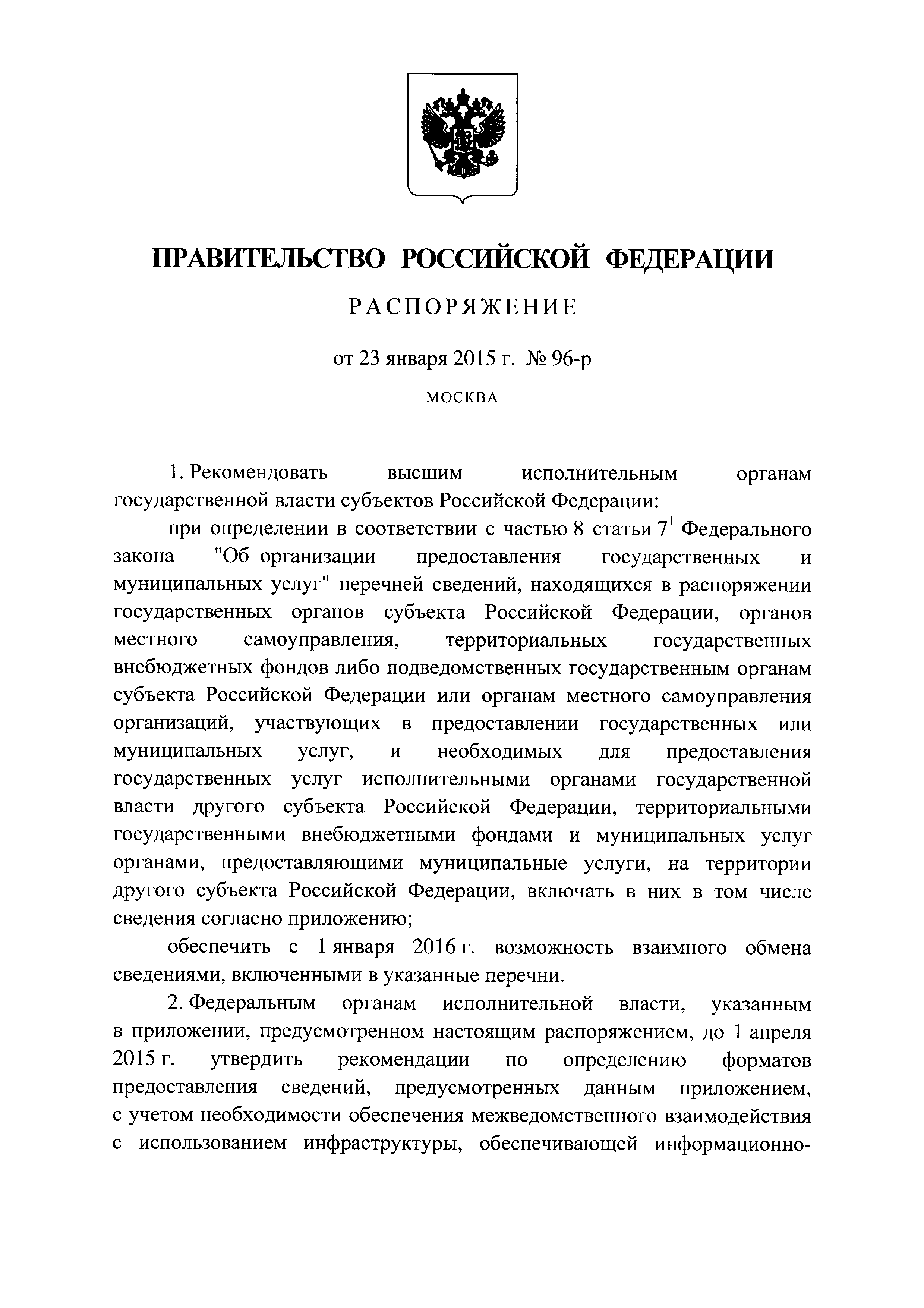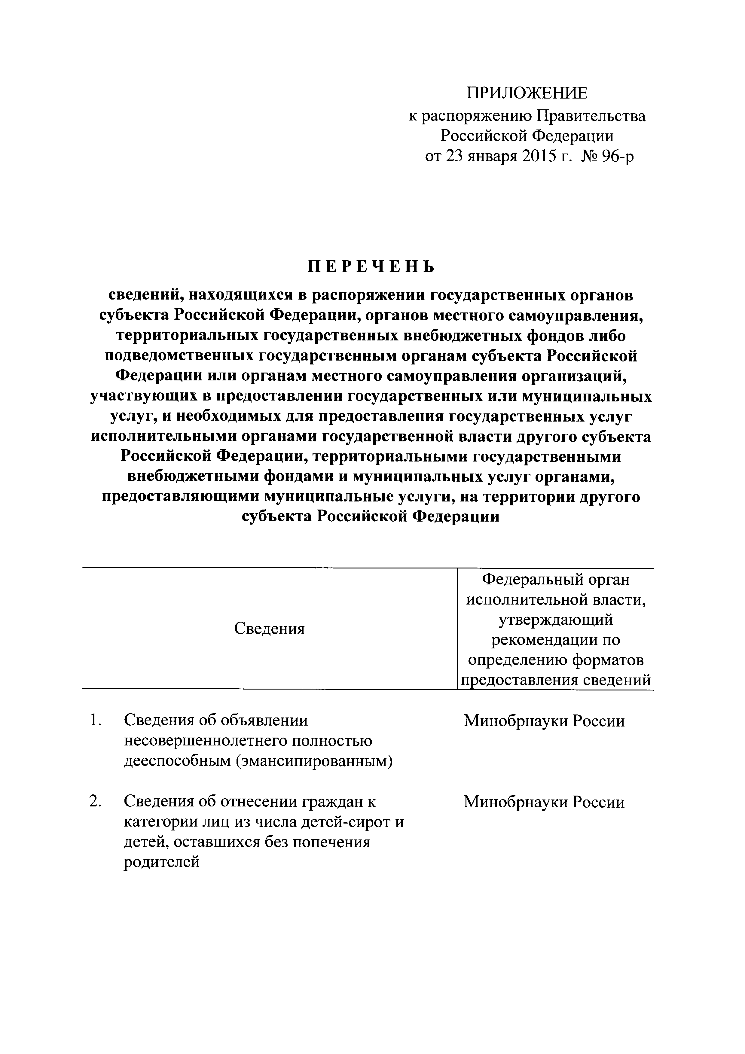 Перечень сведений, находящихся в распоряжении государственных органов субъекта Российской Федерации, органов местного самоуправления, территориальных государственных внебюджетных фондов либо подведомственных государственным органам субъекта Российской Федерации или органам местного самоуправления организаций, участвующих в предоставлении государственных или муниципальных услуг, и необходимых для предоставления государственных услуг исполнительными органами государственной власти другого субъекта Российской Федерации, территориальными государственными внебюджетными фондами и муниципальных услуг органами, предоставляющими муниципальные услуги, на территории другого субъекта Российской Федерации| Статус: | действует | | Название рус.: | Перечень сведений, находящихся в распоряжении государственных органов субъекта Российской Федерации, органов местного самоуправления, территориальных государственных внебюджетных фондов либо подведомственных государственным органам субъекта Российской Федерации или органам местного самоуправления организаций, участвующих в предоставлении государственных или муниципальных услуг, и необходимых для предоставления государственных услуг исполнительными органами государственной власти другого субъекта Российской Федерации, территориальными государственными внебюджетными фондами и муниципальных услуг органами, предоставляющими муниципальные услуги, на территории другого субъекта Российской Федерации | | Дата добавления в базу: | 21.05.2015 | | Дата актуализации: | 01.01.2021 | | Дата введения: | 23.01.2015 | | Оглавление: | Приложение. Перечень сведений, находящихся в распоряжении государственных органов субъекта Российской Федерации, органов местного самоуправления, территориальных государственных внебюджетных фондов либо подведомственных государственным органам субъекта Российской Федерации или органам местного самоуправления организаций, участвующих в предоставлении государственных или муниципальных услуг, и необходимых для предоставления государственных услуг исполнительными органами государственной власти другого субъекта Российской Федерации, территориальными государственными внебюджетными фондами и муниципальных услуг органами, предоставляющими муниципальные услуги, на территории другого субъекта Российской Федерации | | Утверждён: | 23.01.2015 Правительство Российской Федерации (96-р)