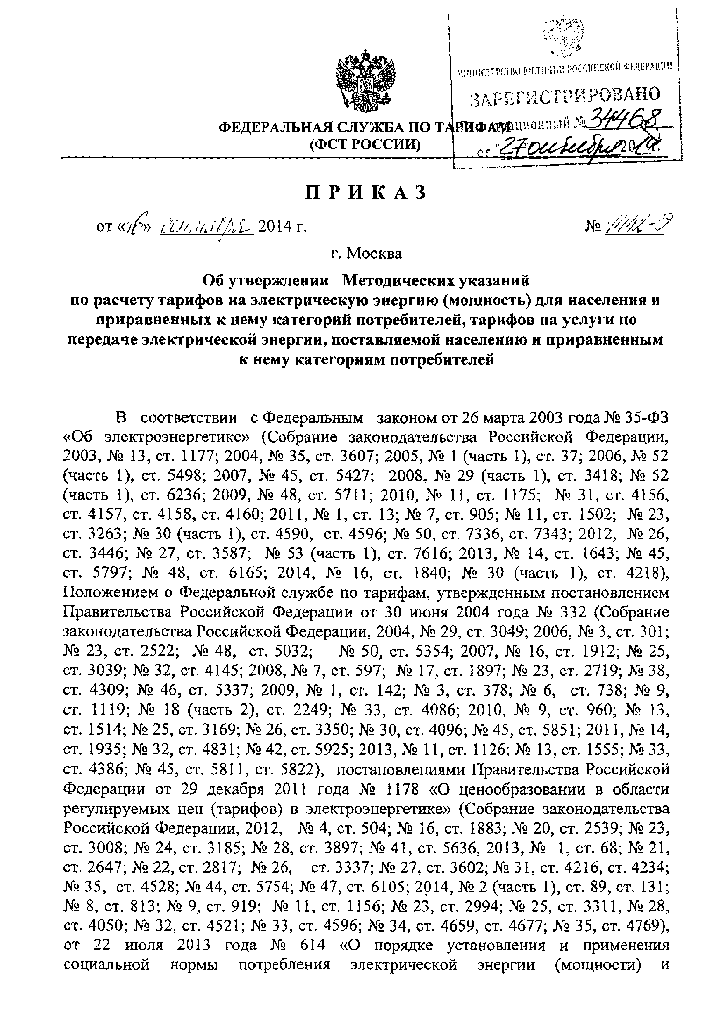 | Утверждён: | 16.09.2014 Федеральная служба по тарифам (1442-Э) |