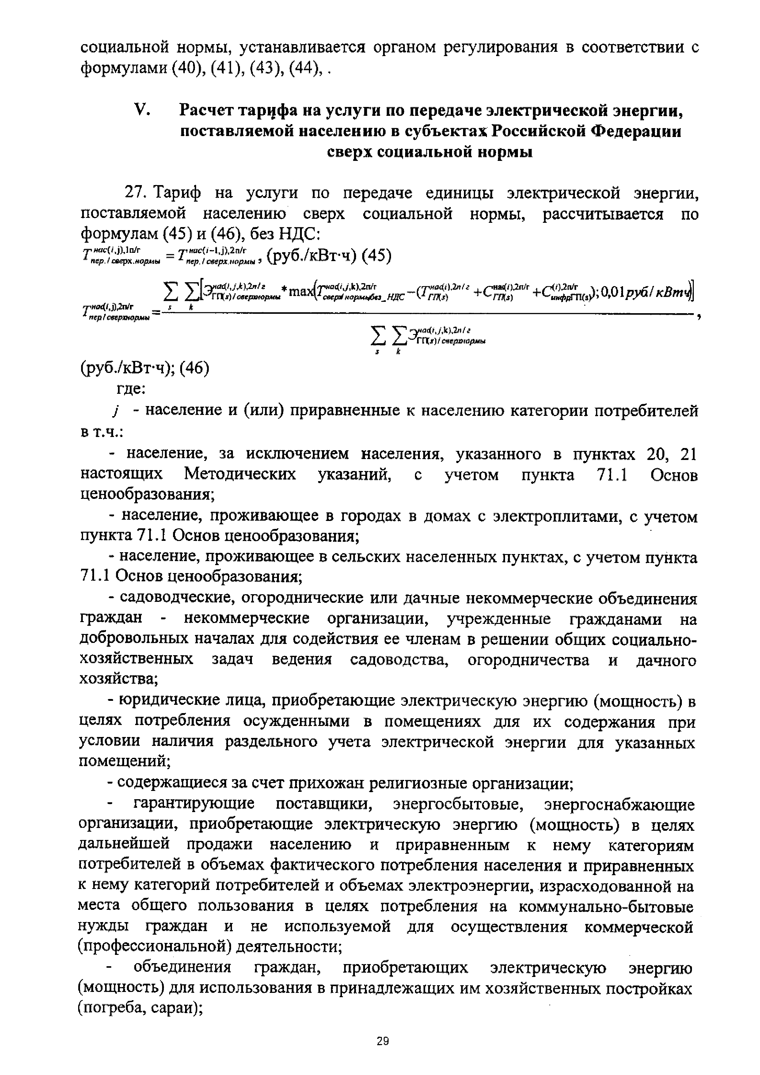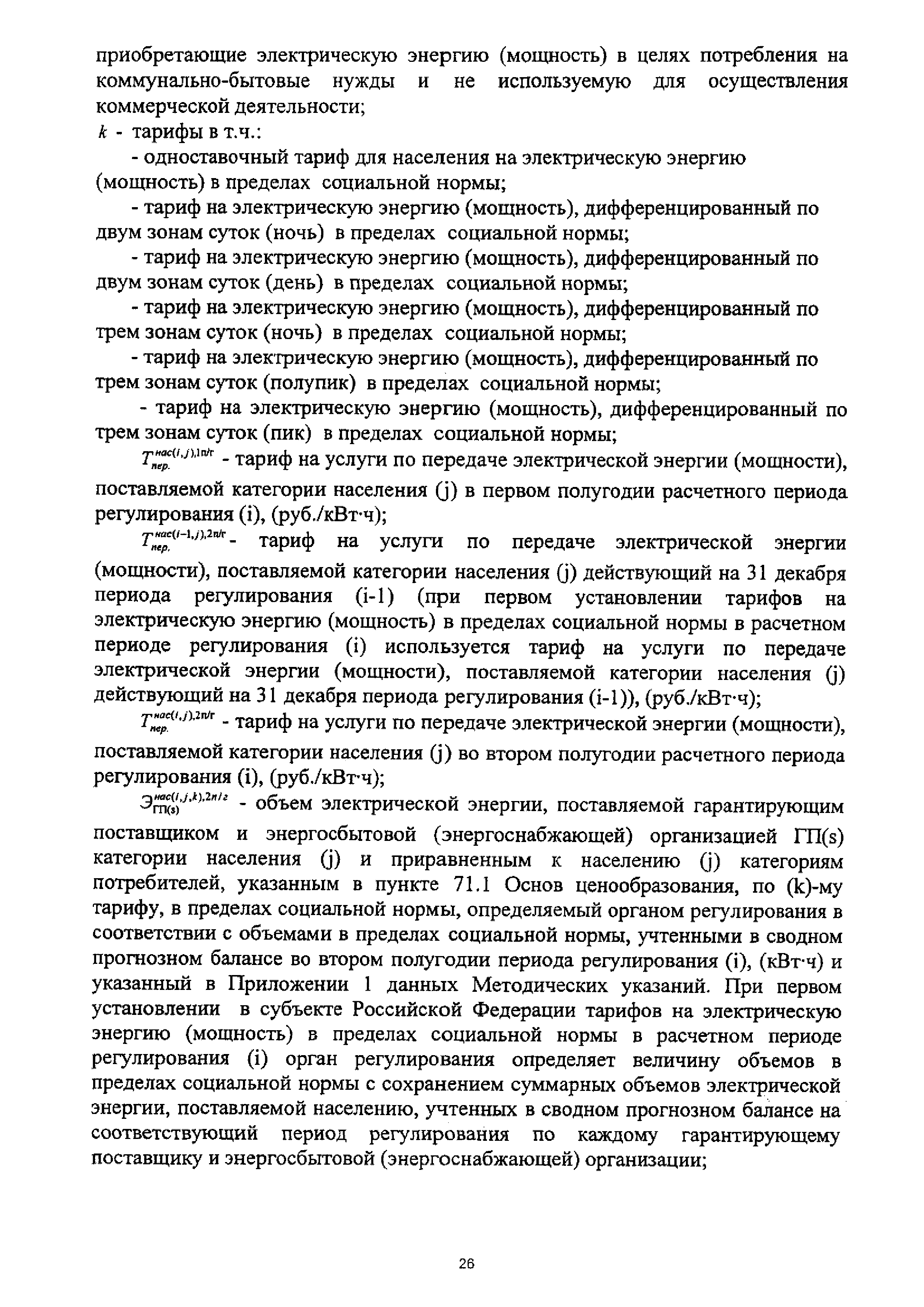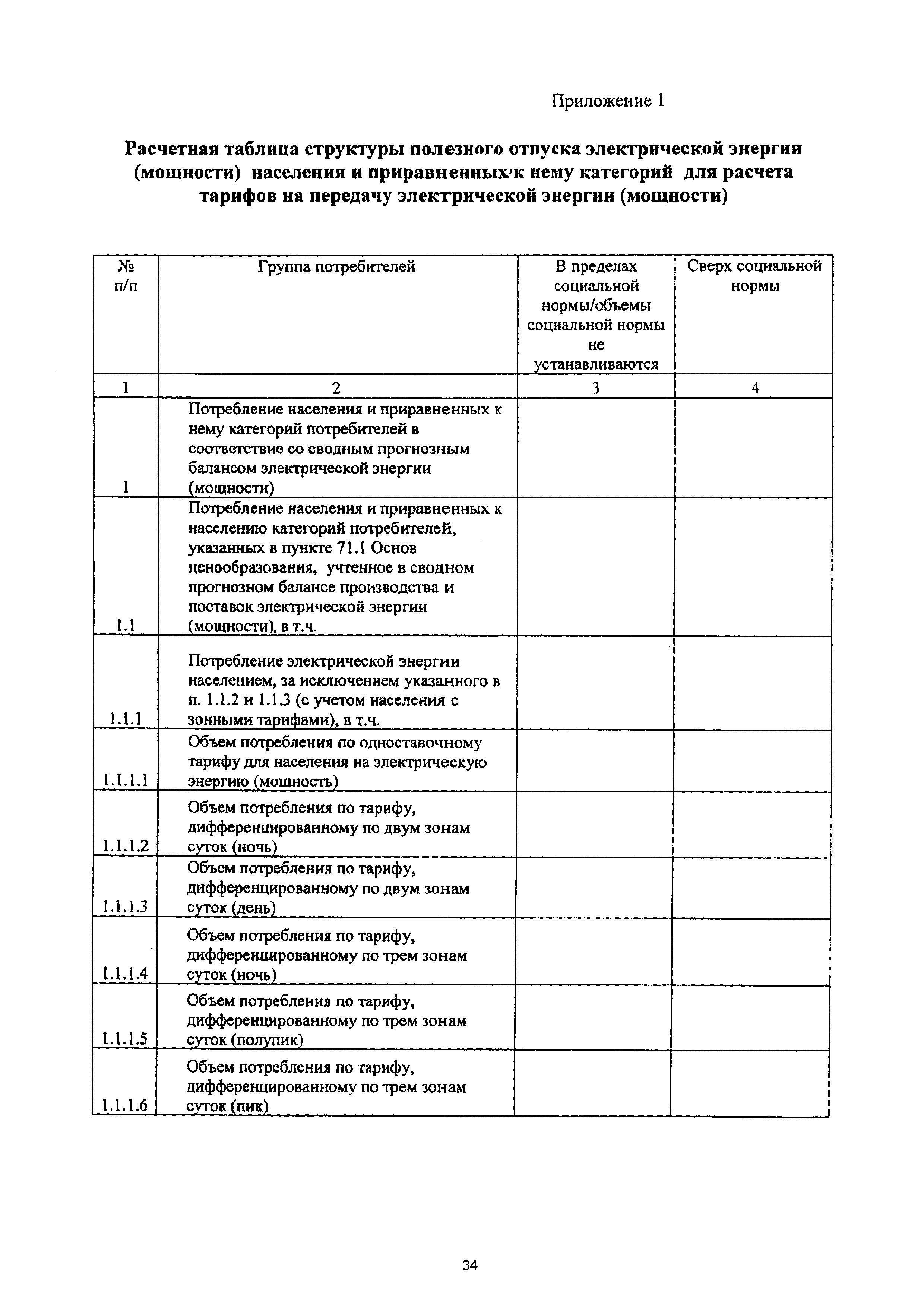 | Оглавление: | I. Общие положения II. Расчет тарифа на электрическую энергию (мощность), поставляемую населению в пределах социальной нормы III. Расчет тарифа на электрическую энергию (мощность), поставляемую населению сверх социальной нормы IV. Расчет тарифа на услуги по передаче электрической энергии, поставляемой населению в пределах социальной нормы V. Расчет тарифа на услуги по передаче электрической энергии, поставляемой населению в субъектах Российской Федерации сверх социальной нормы Приложение 1. Расчетная таблица структуры полезного отпуска электрической энергии (мощности) населения и приравненных к нему категорий для расчета тарифов на передачу электрической энергии (мощности) |