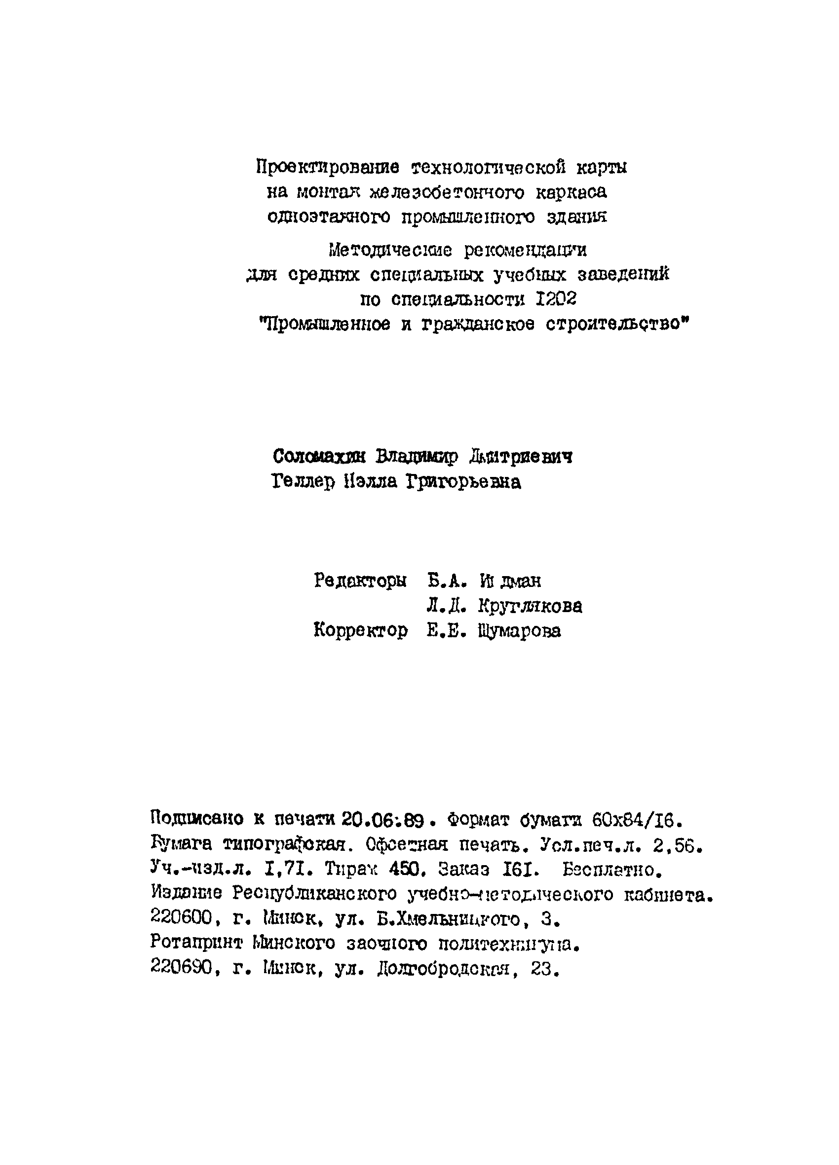 | Разработан: | Белорусский политехнический институт Минский архитектурно-строительный техникум