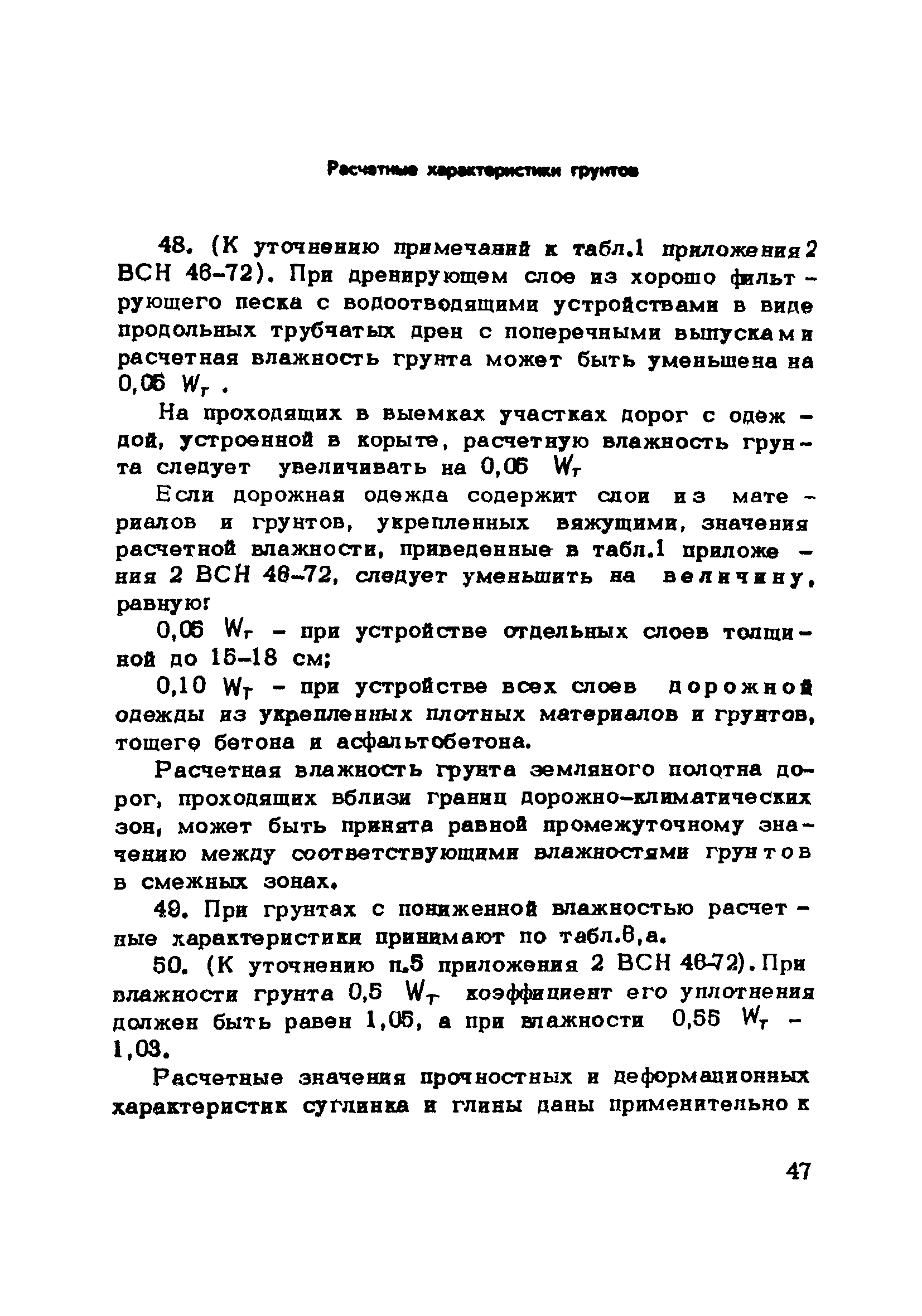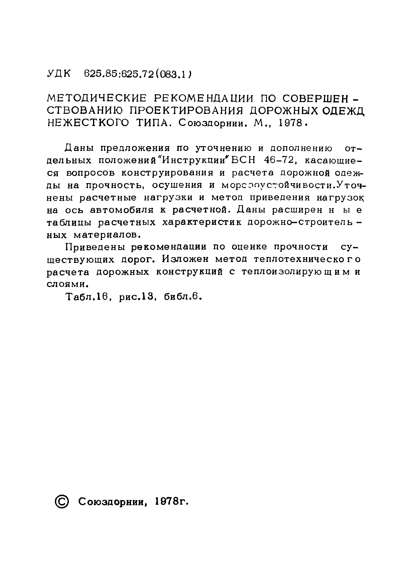 | Область применения: | В документе даны предложения по уточнению и дополнению отдельных положений ВСН 46-72, касающиеся вопросов конструирования и расчета дорожной одежды на прочность, осушения и морозоустойчивости. Уточнены расчетные нагрузки и метод приведения нагрузок на ось автомобиля к расчетной. Даны расширенные таблицы расчетных характеристик дорожно-строительных материалов. Приведены рекомендации по оценке прочности существующих дорог. Изложен метод теплотехнического расчета дорожных конструкций с теплоизолирующими слоями. |