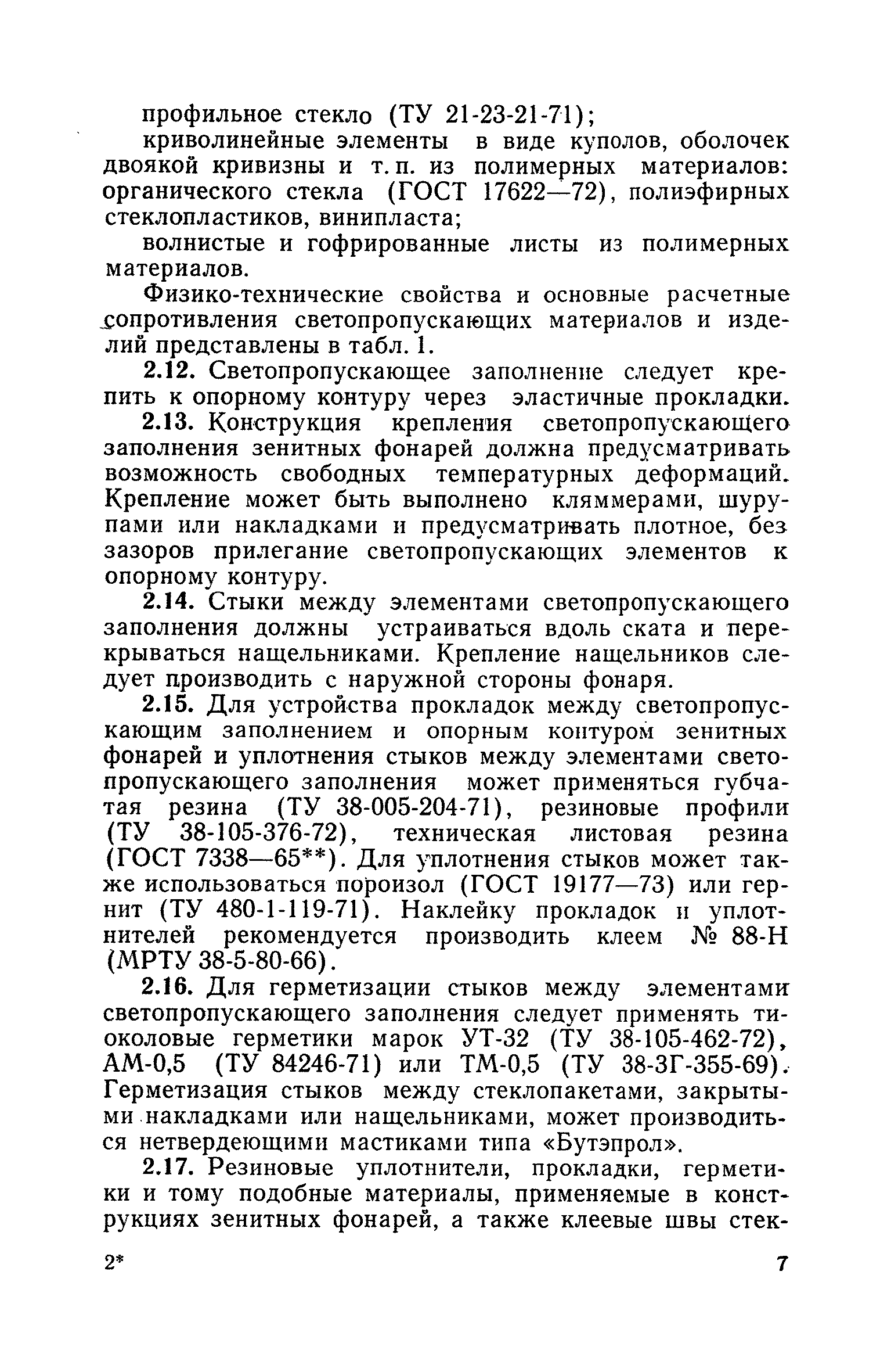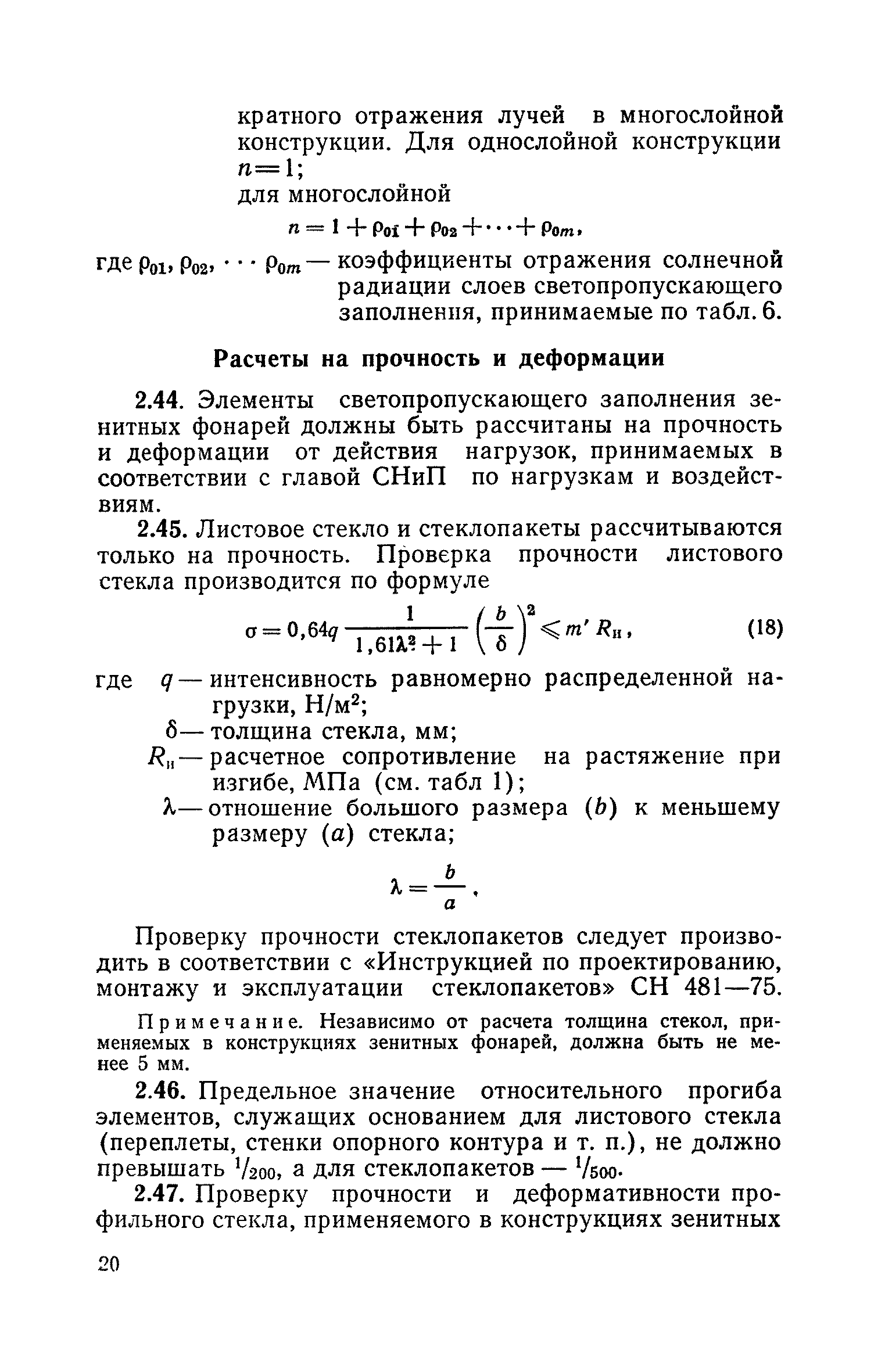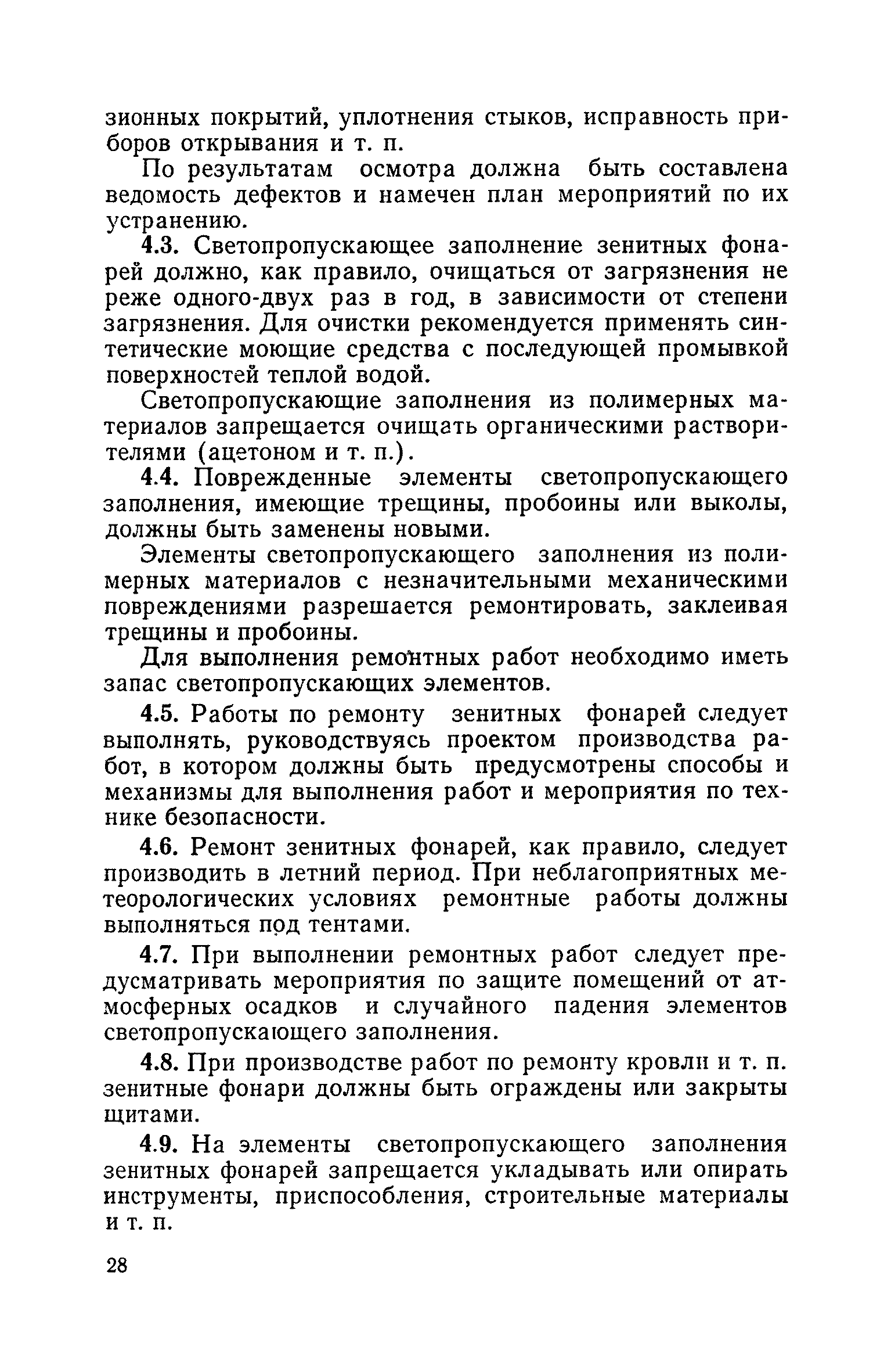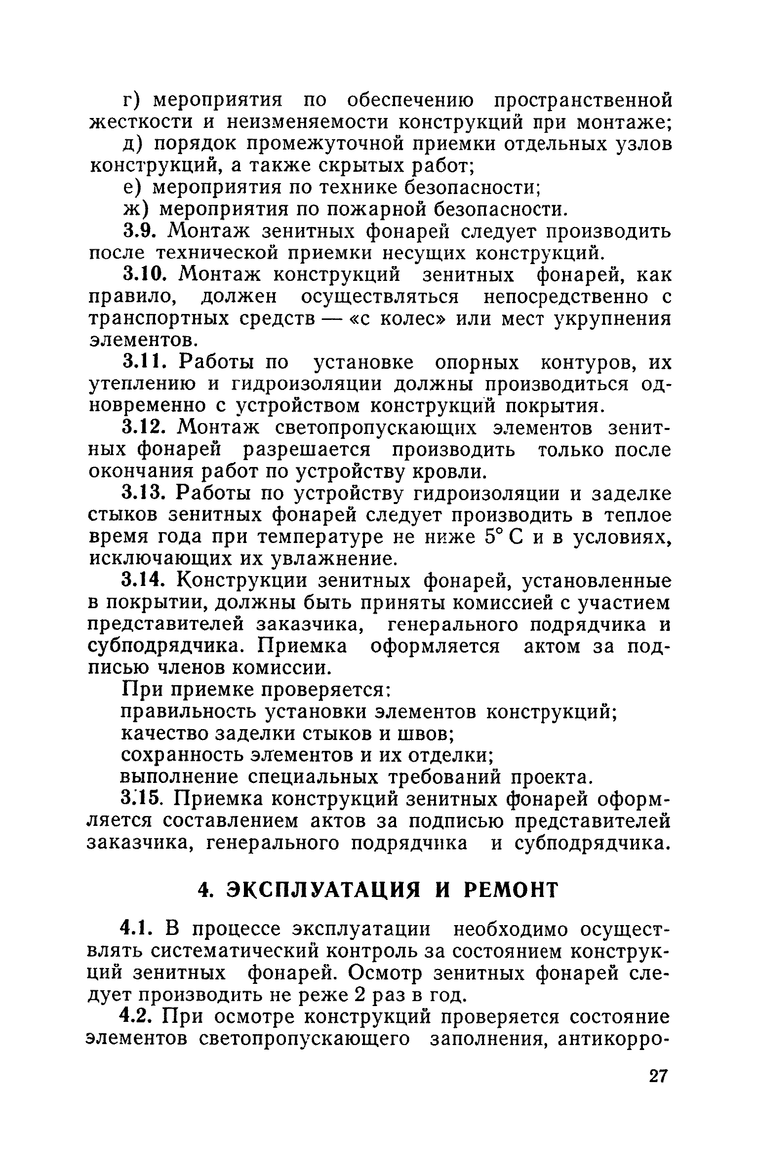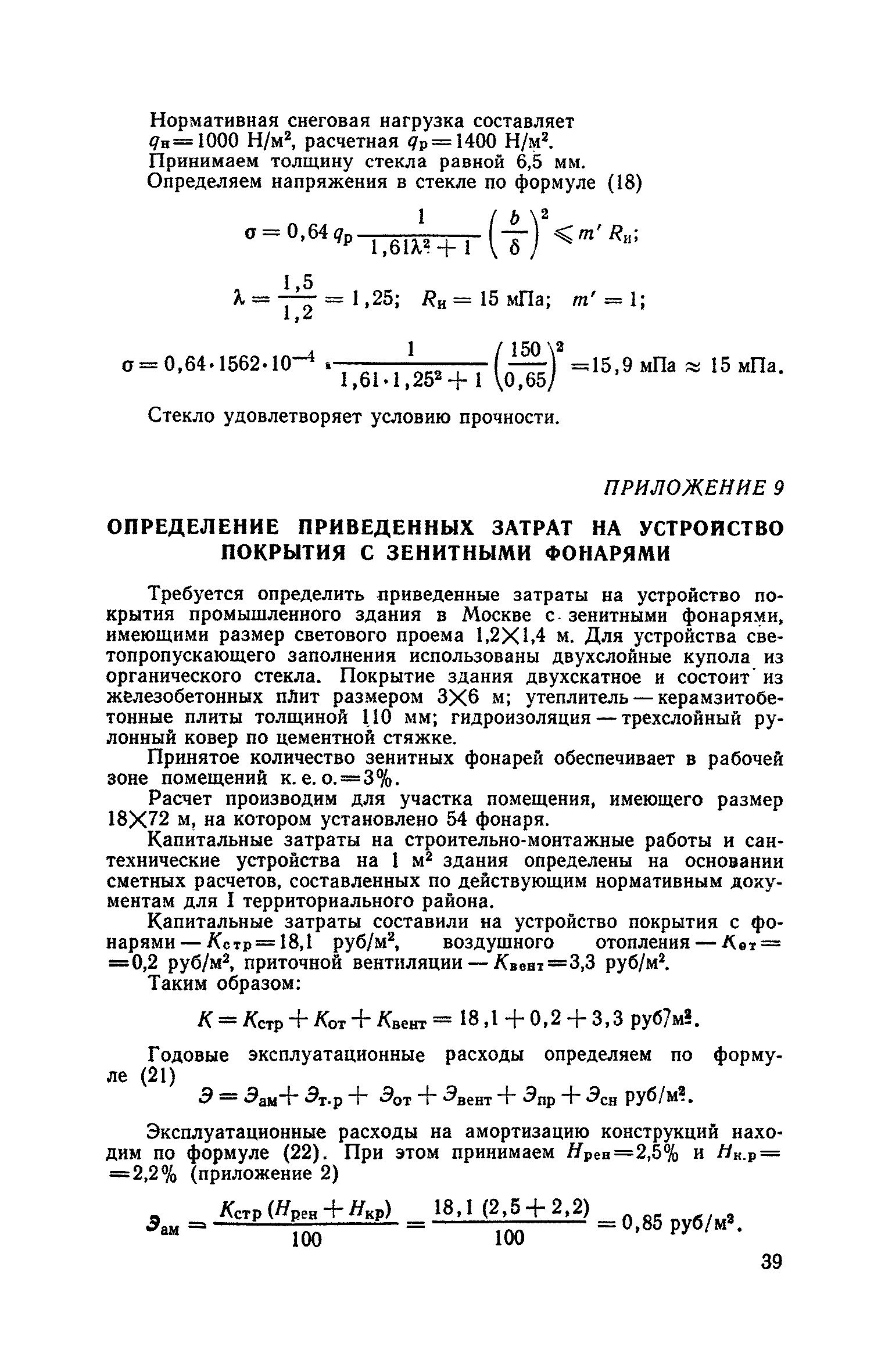 | Оглавление: | 1. Общие положения 2. Проектирование Конструкции Требования пожарной безопасности Светотехнические расчеты Теплотехнические расчеты Защита помещений от инсоляции Расчеты на прочность и деформации Экономическая оценка 3. Монтаж 4. Эксплуатация и ремонт Приложение 1. Зенитные фонари, применяемые для естественного освещения помещений производственных зданий Приложение 2. Нормы отчислений от капитальных затрат на реновацию, капитальный и текущий ремонты конструкций зданий Приложение 3. Годовые расходы на очистку остекления Приложение 4. Годовые расходы на уборку снега с кровля Приложение 5. Территориальные коэффициенты К к годовым расходам на снегоуборочные работы и работы по очистке остекления Приложение 6 Определение необходимого количества зенитных фонарей для естественного освещения помещения производственного здания Приложение 7. Теплотехнический расчет светопропускающего заполнения зенитного фонаря Приложение 8. Статический расчет светопропускающего заполнения зенитного фонаря Приложение 9. Определение приведенных затрат на устройство покрытия с зенитными фонарями |