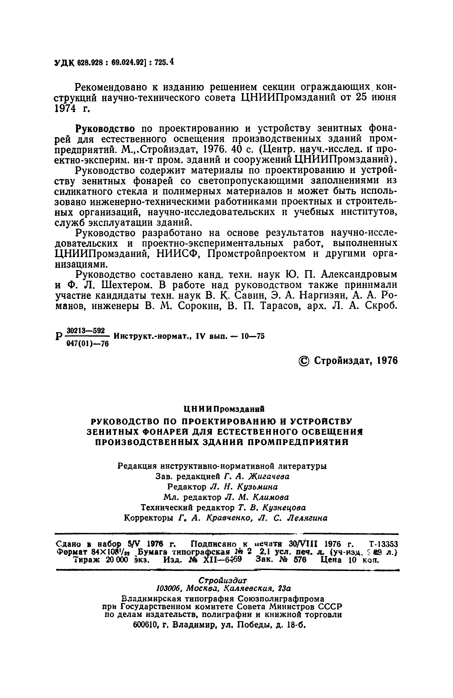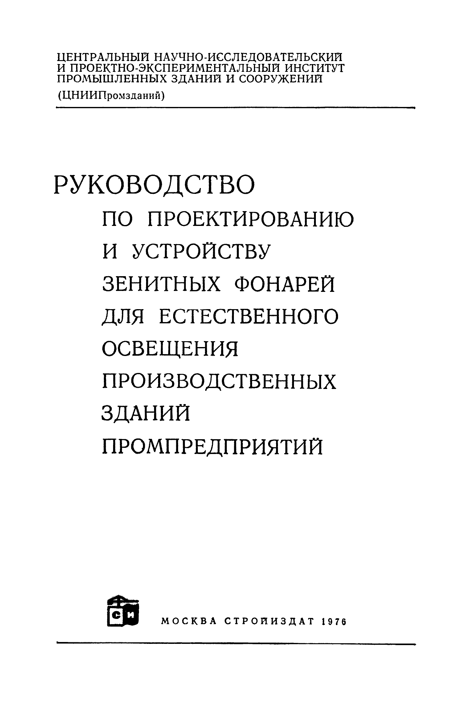 | Название рус.: | Руководство по проектированию и устройству зенитных фонарей для естественного освещения производственных зданий промпредприятий |