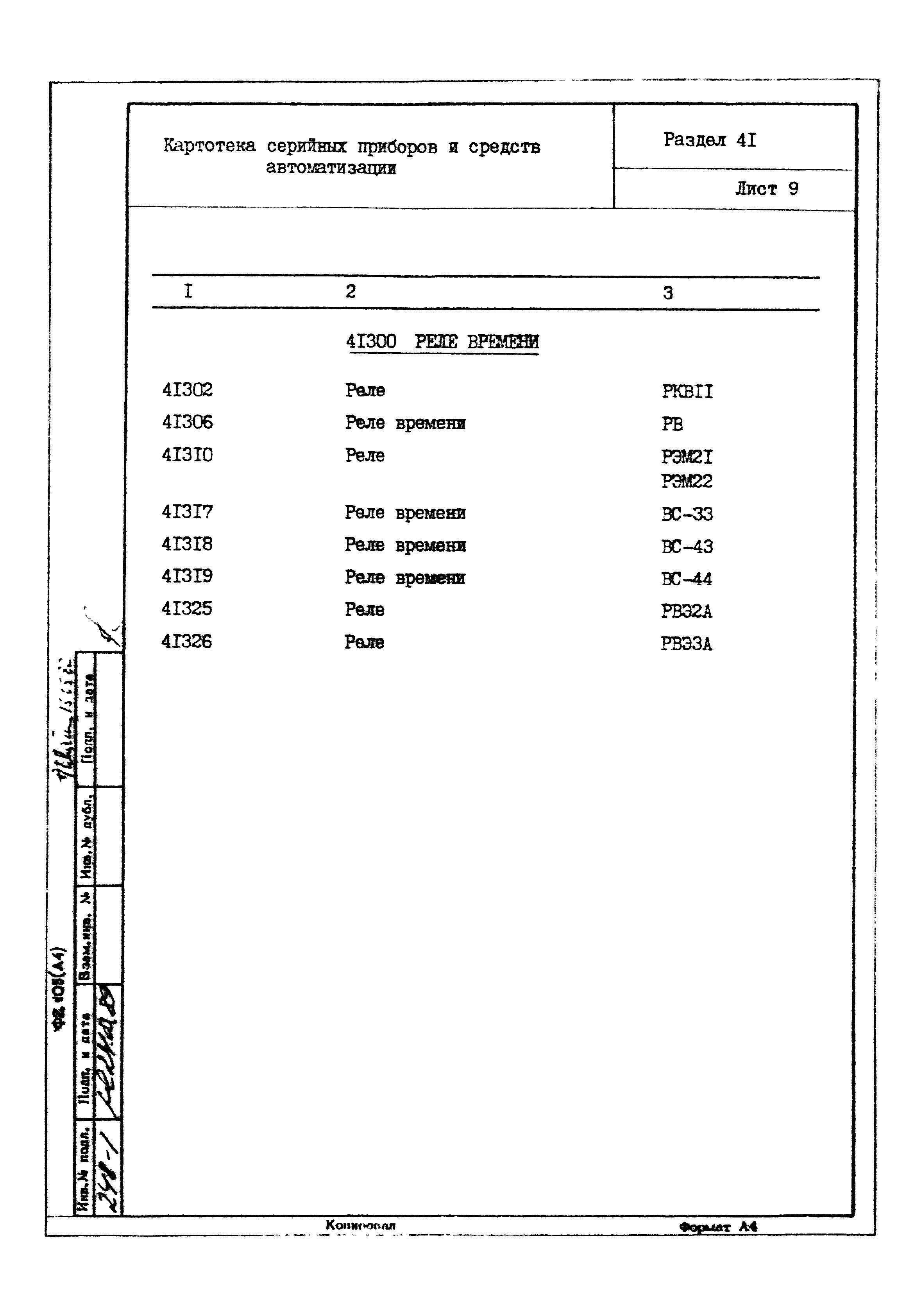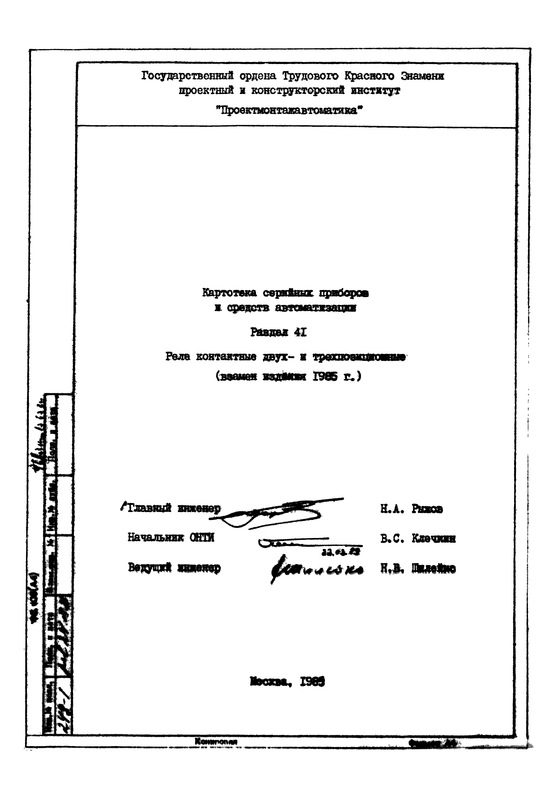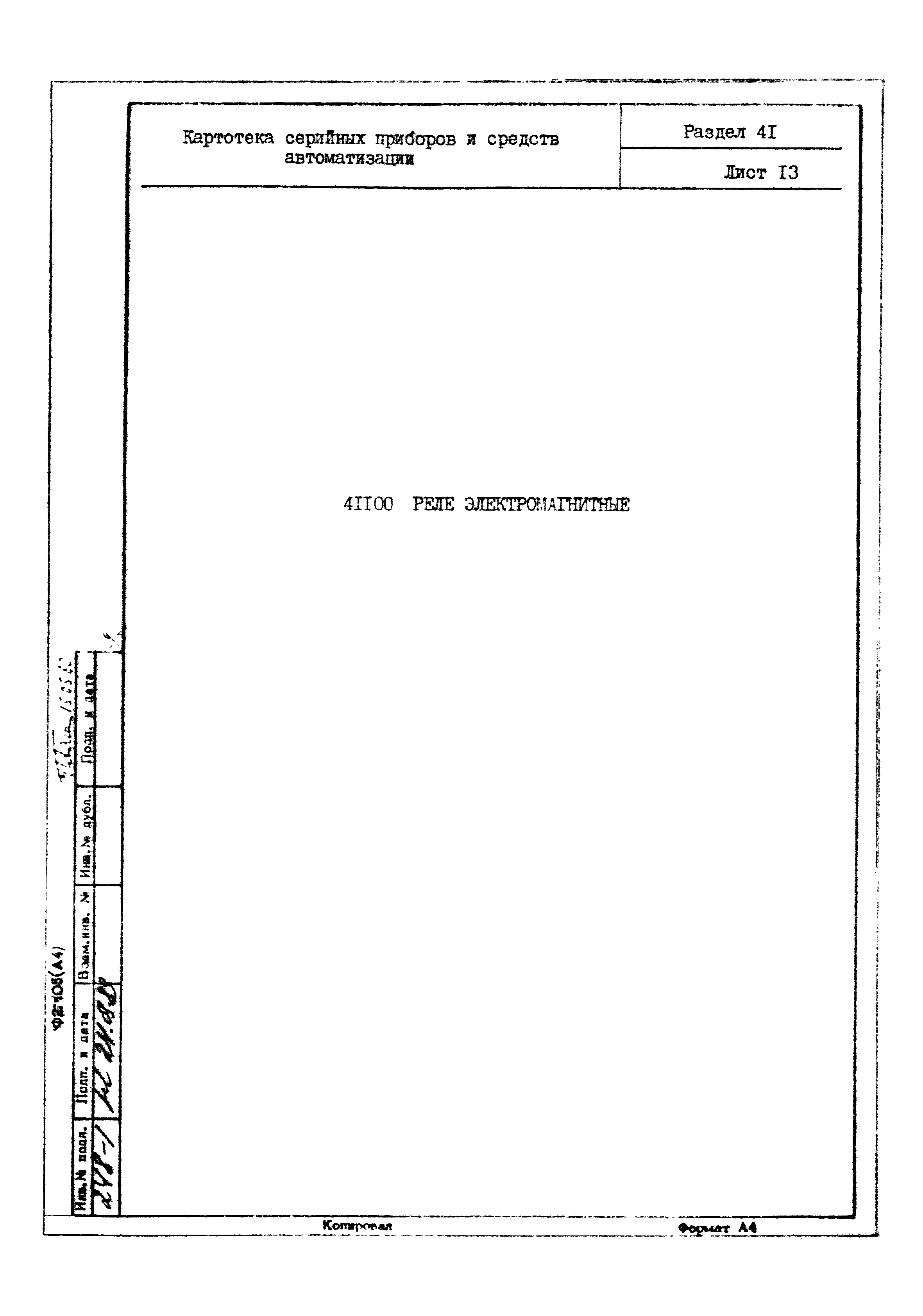 | Название рус.: | Картотека серийных приборов и средств автоматизации. Раздел 41. Реле контактные двух- и трехпозиционные |