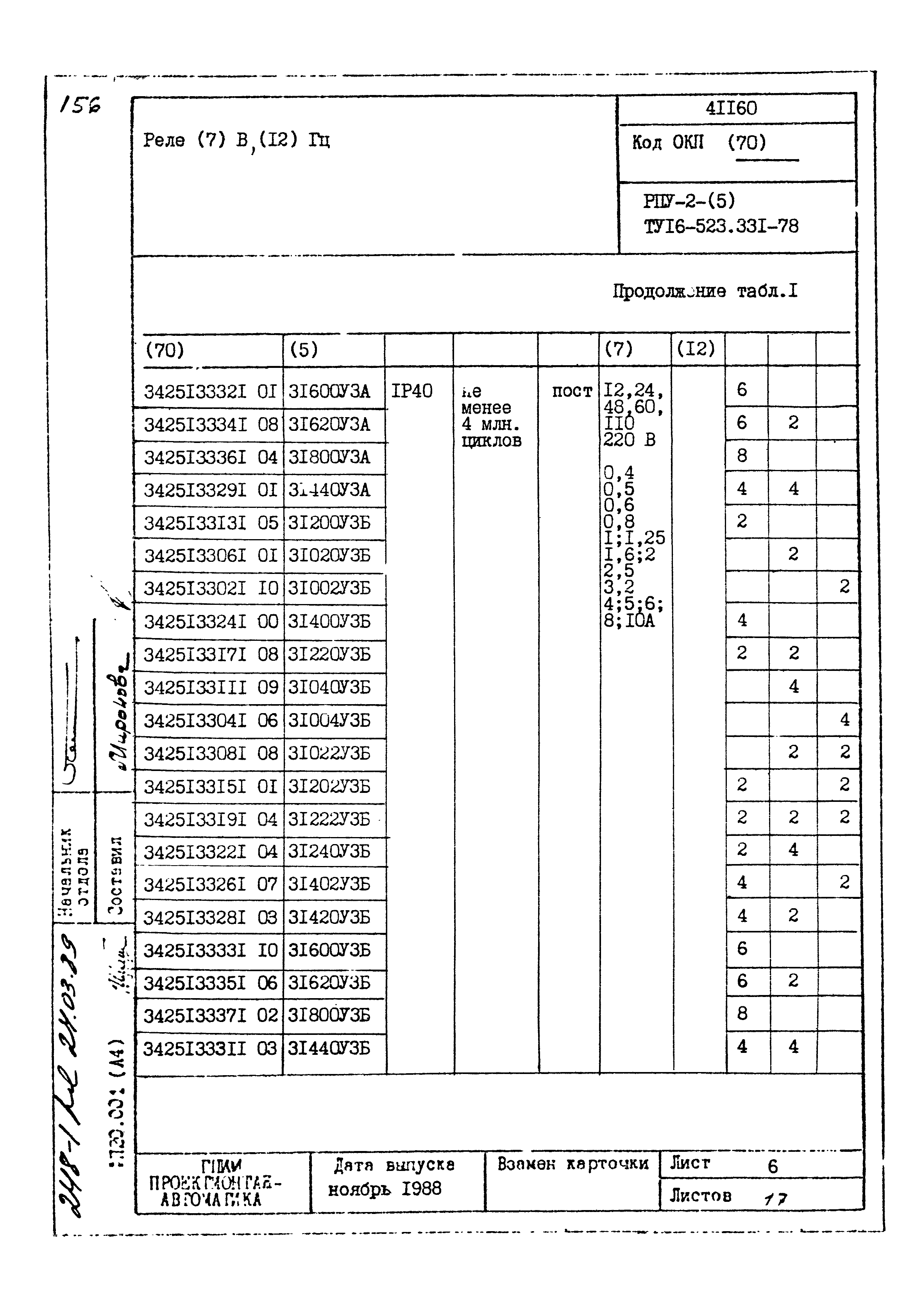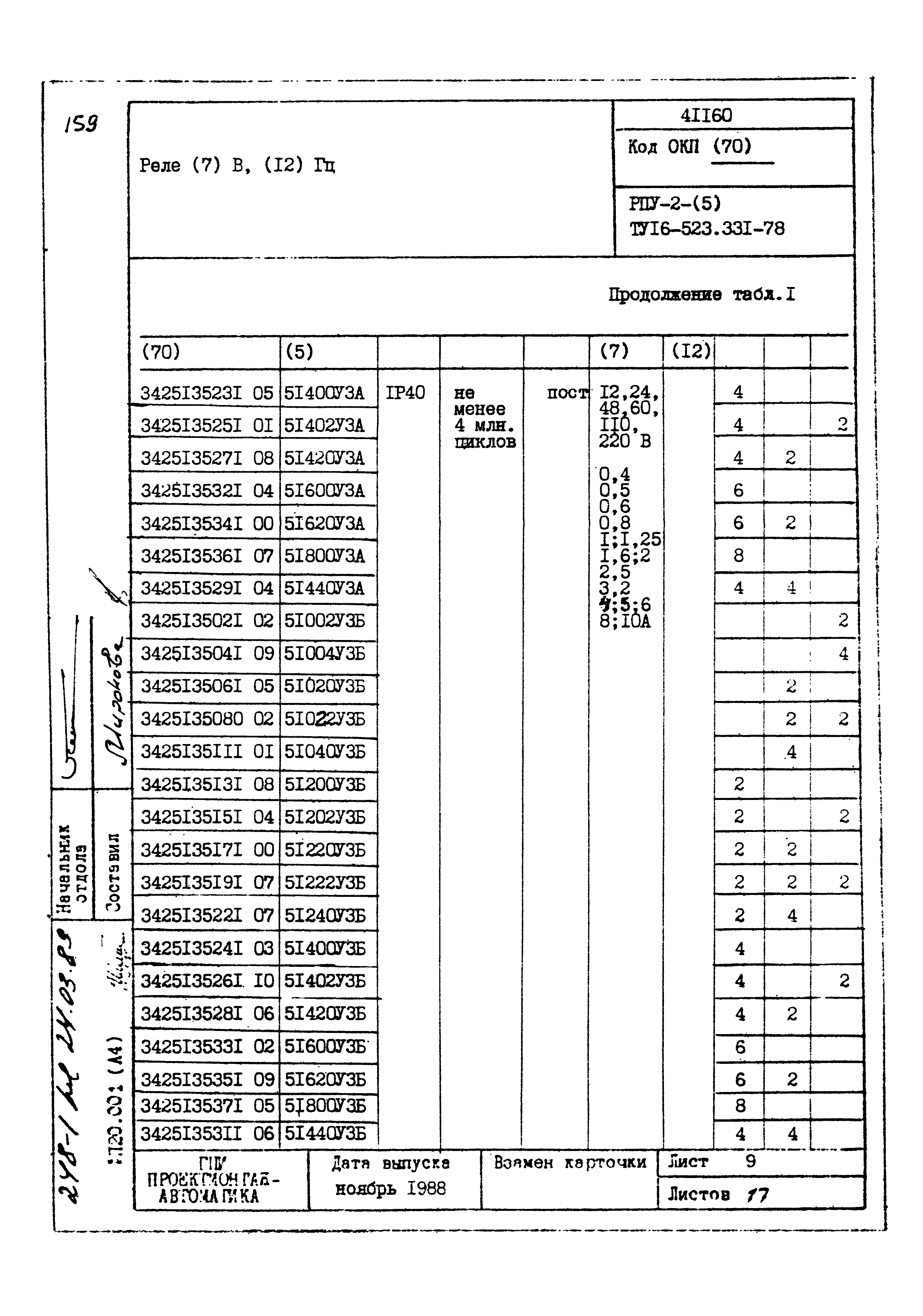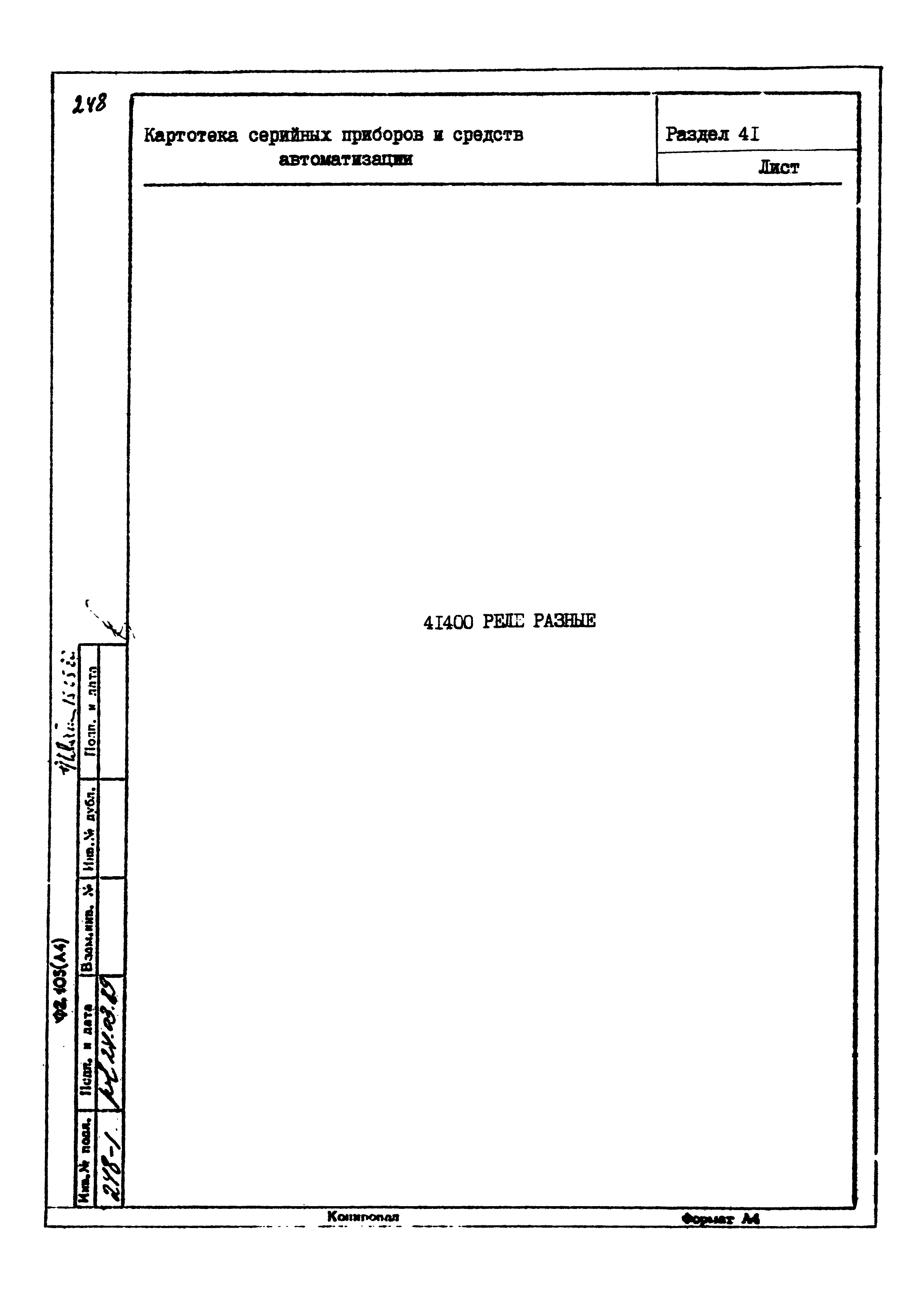 | Название рус.: | Картотека серийных приборов и средств автоматизации. Раздел 41. Реле контактные двух- и трехпозиционные |