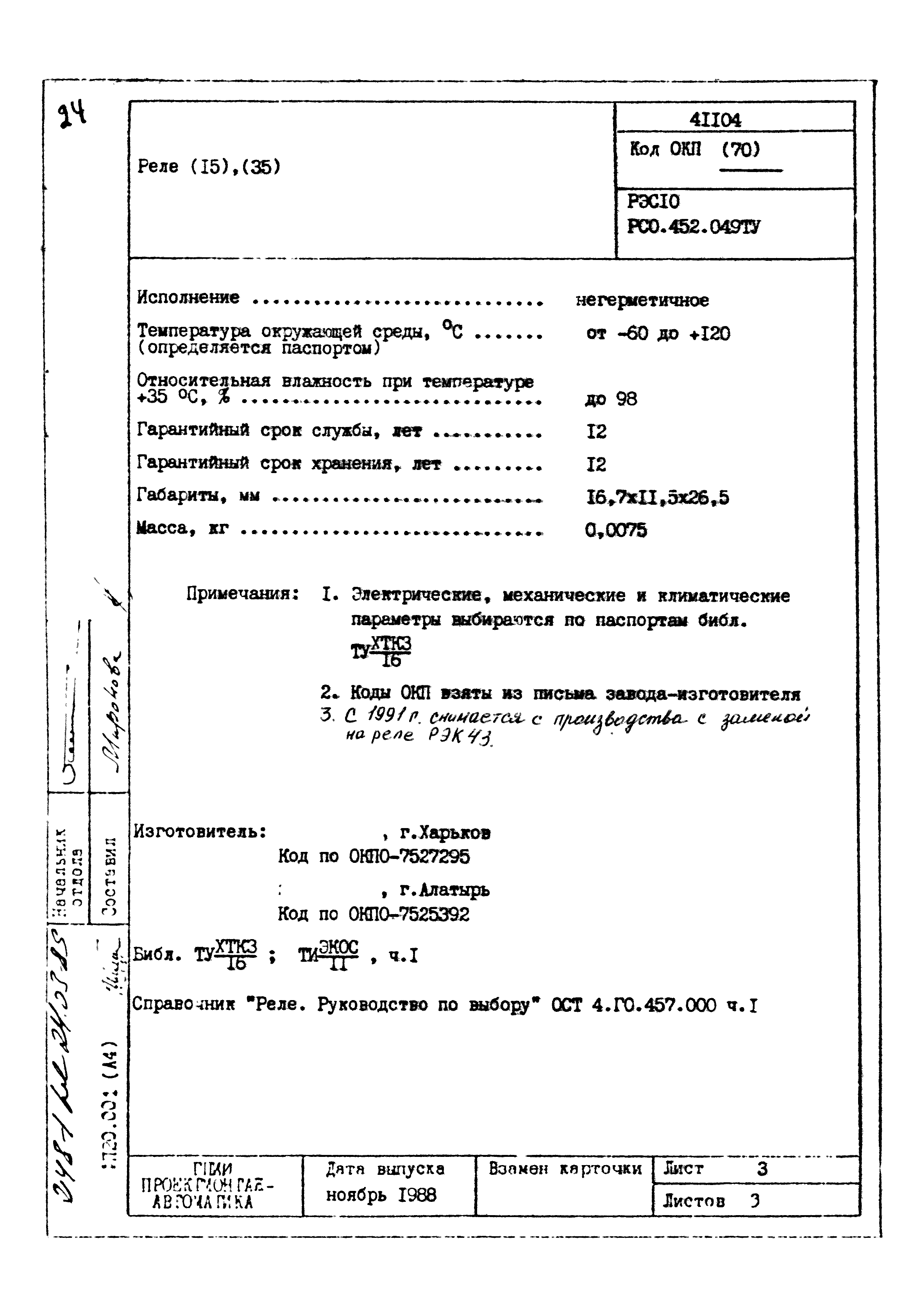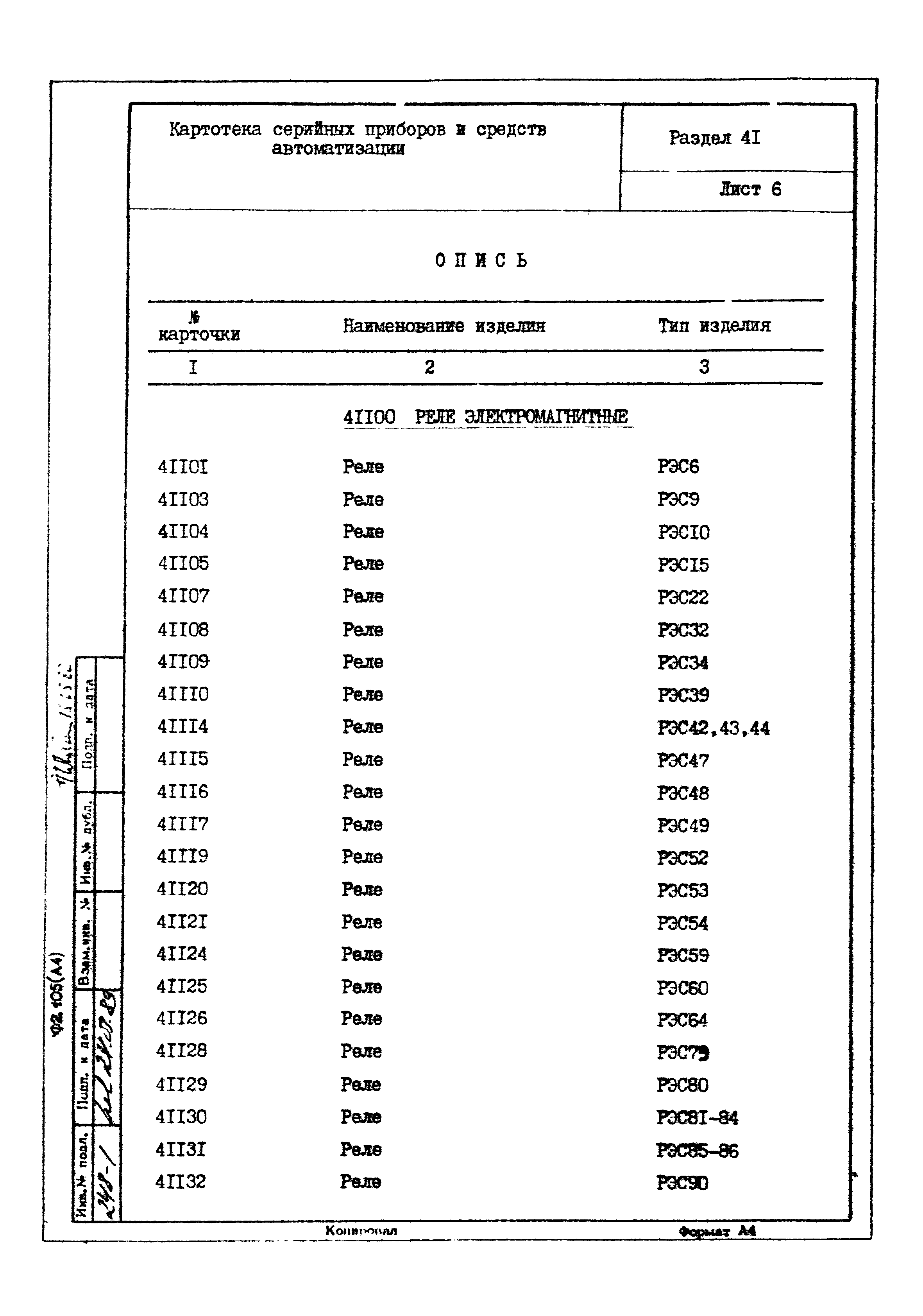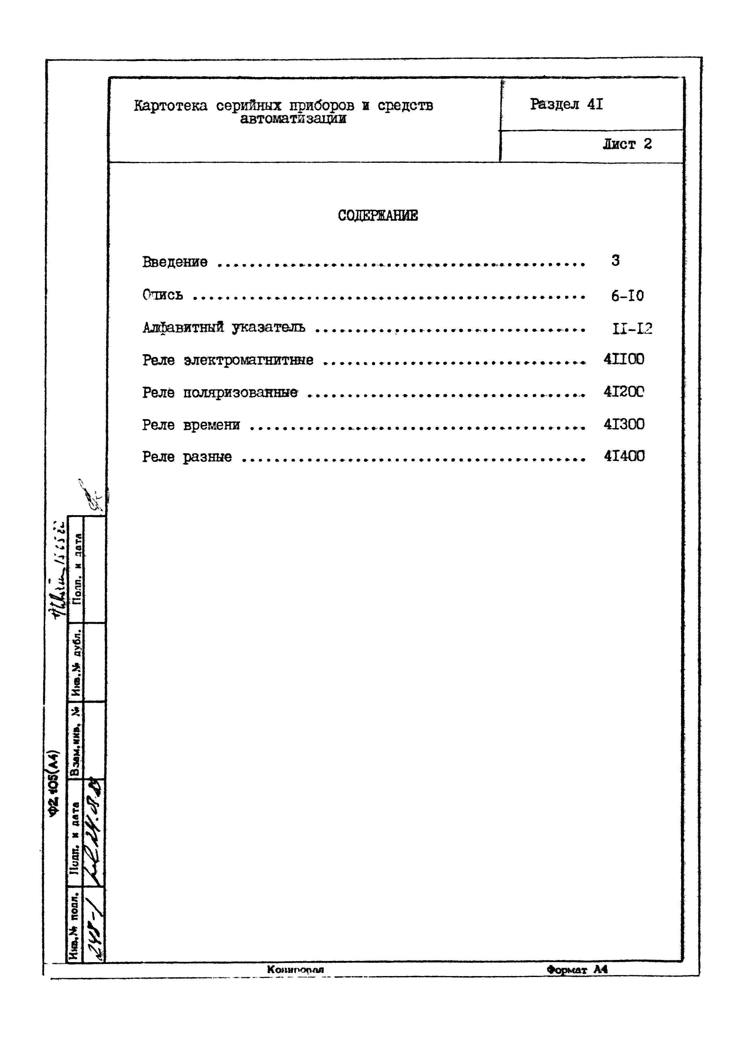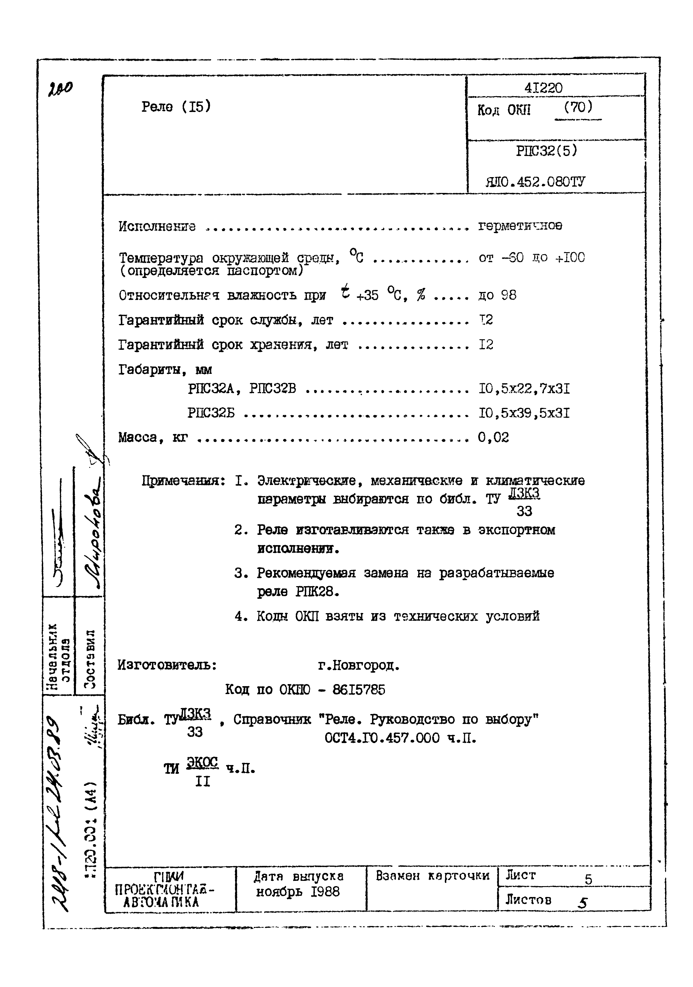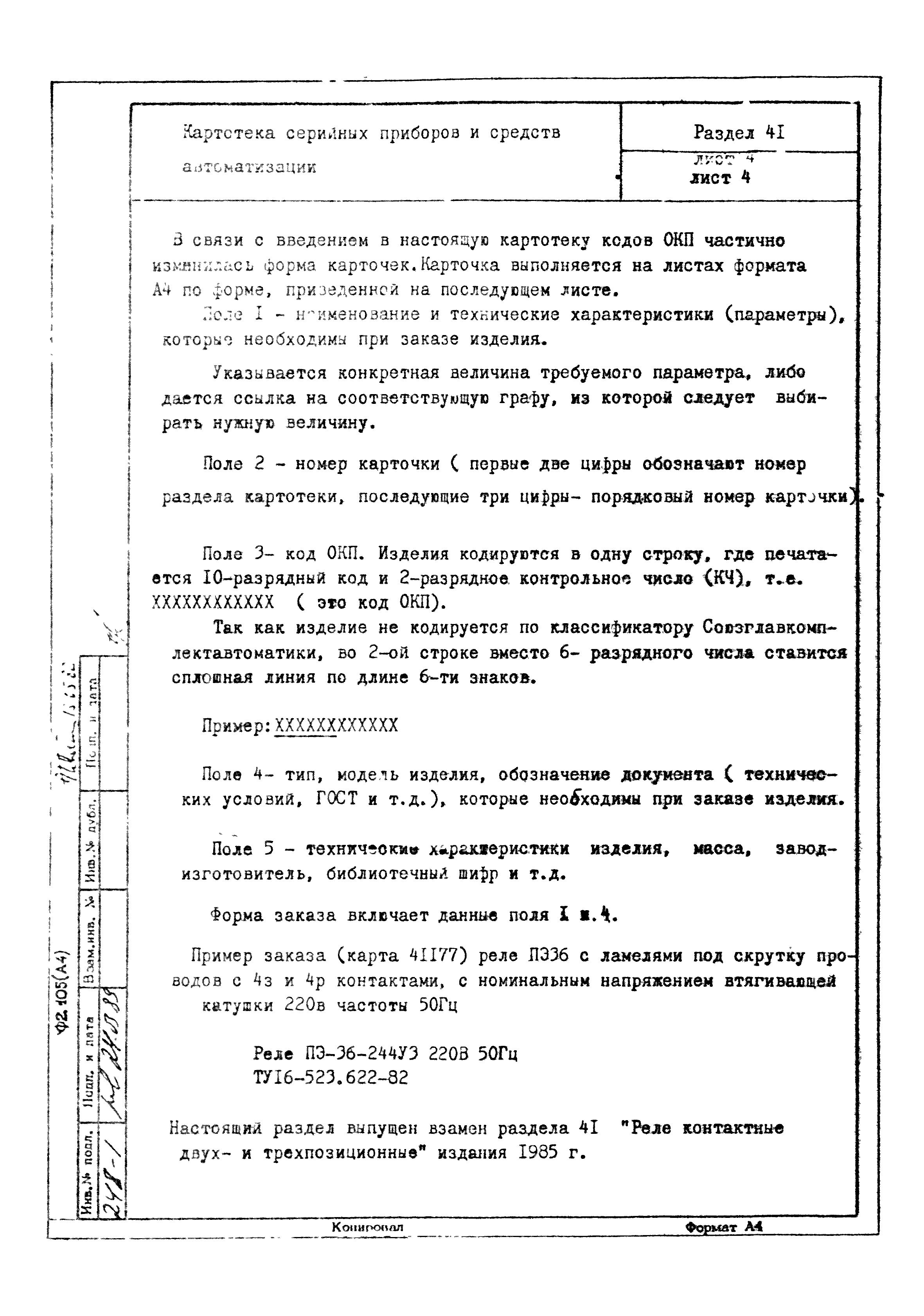 | Заменяет собой: | - «Картотека серийных приборов и средств автоматизации. Раздел 41. Реле контактные двух- и трехпозиционные» (1985 год)