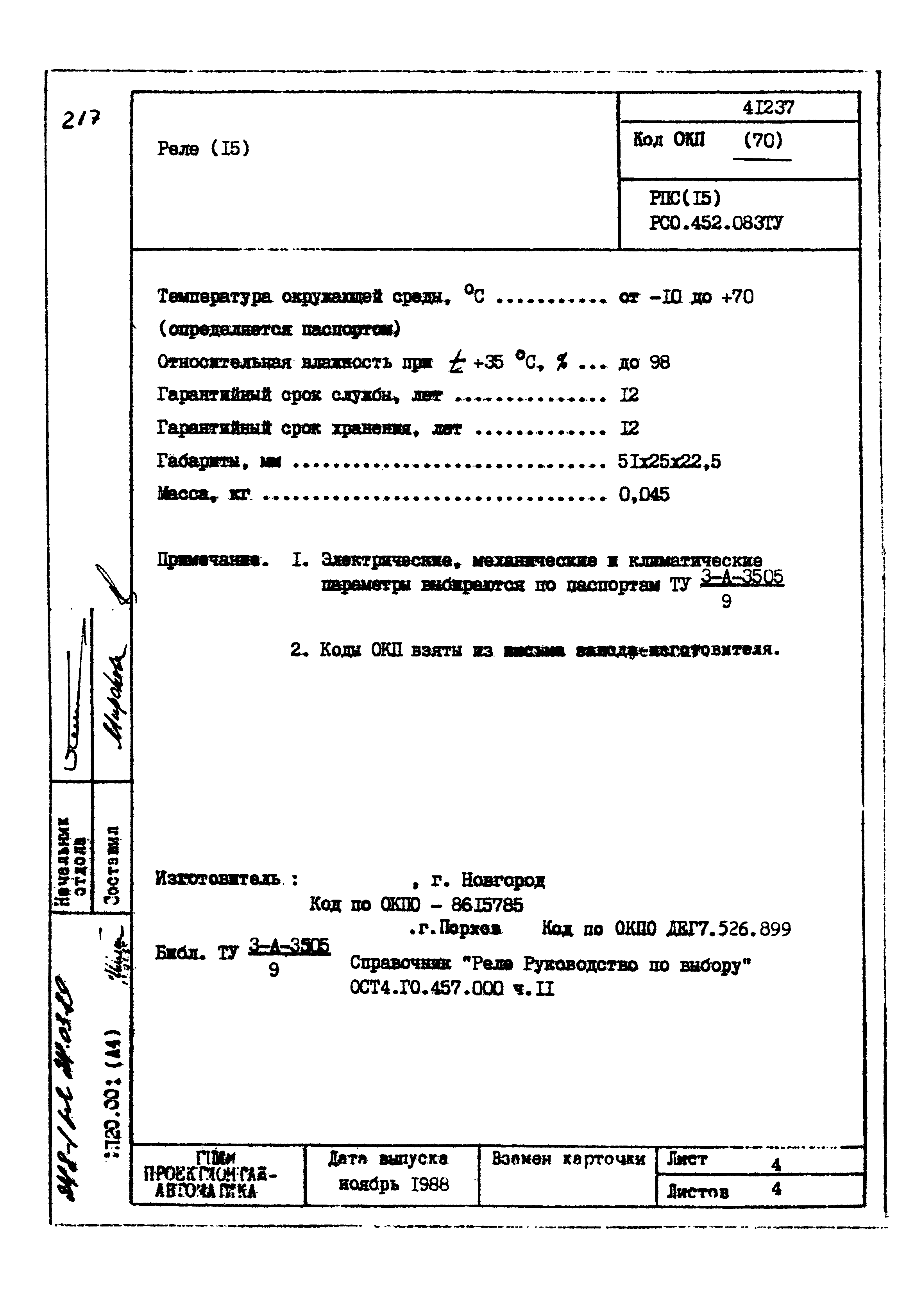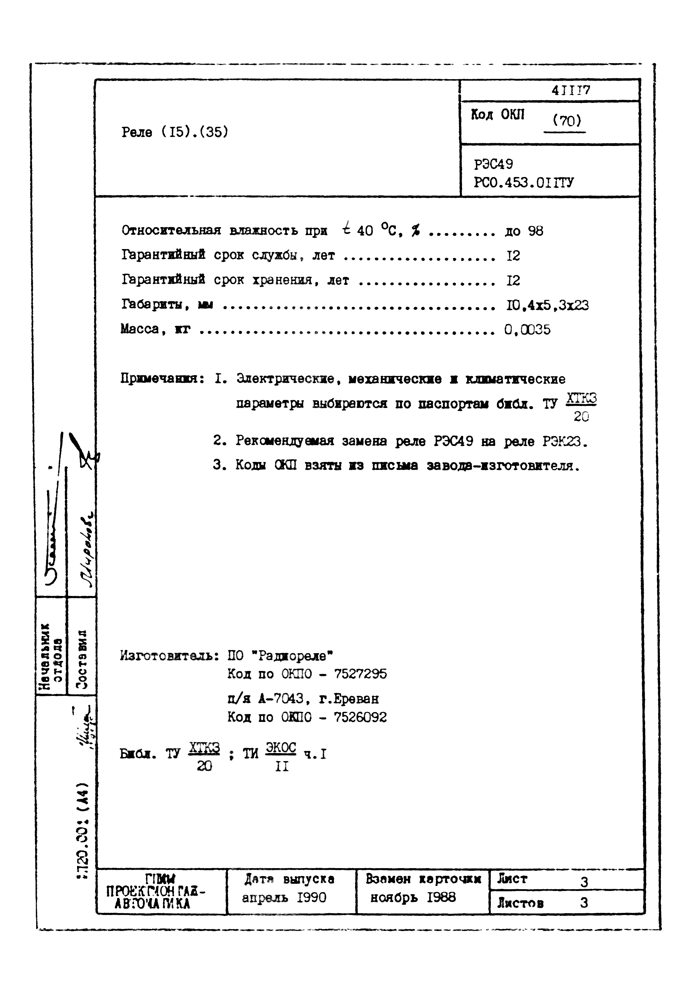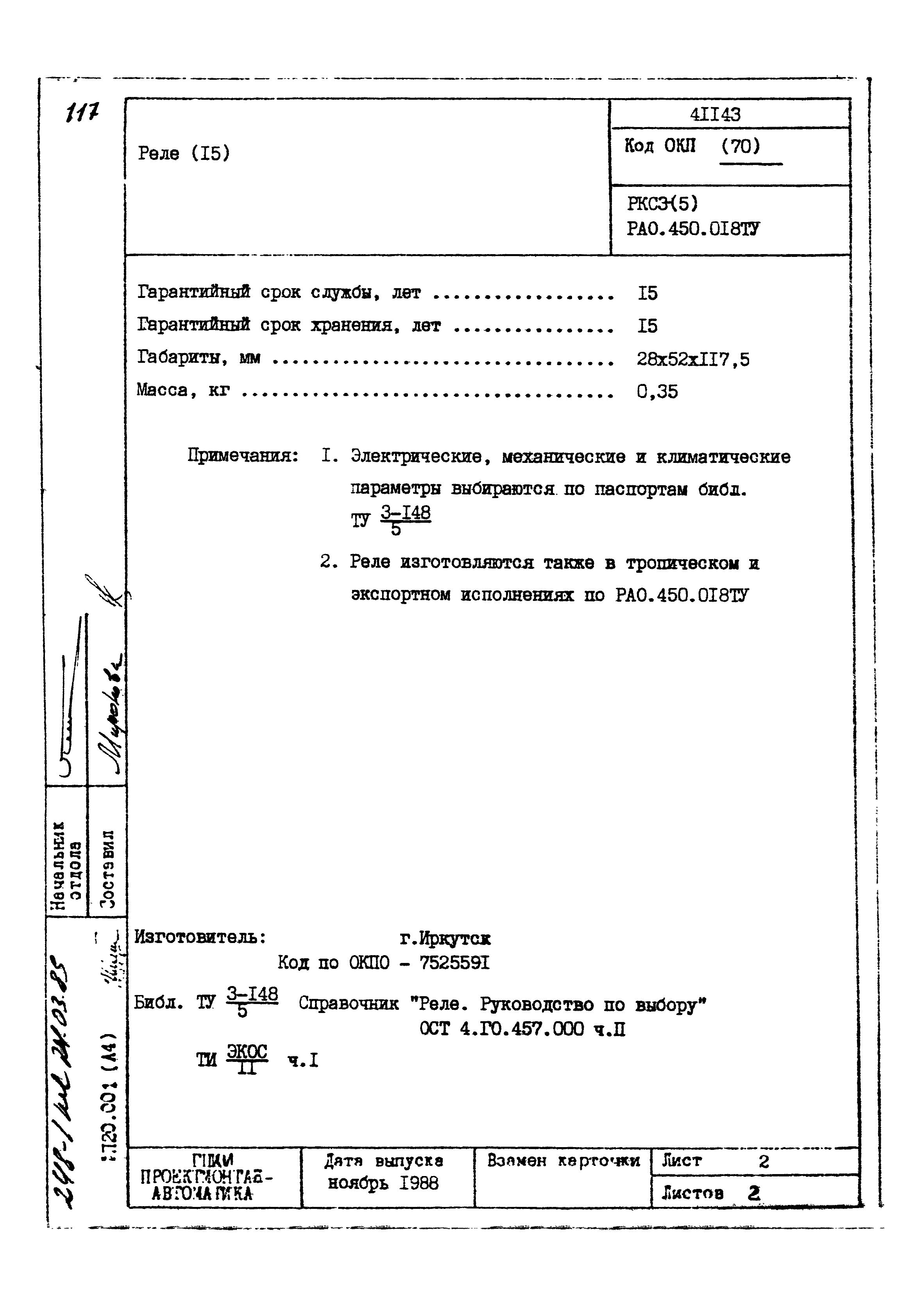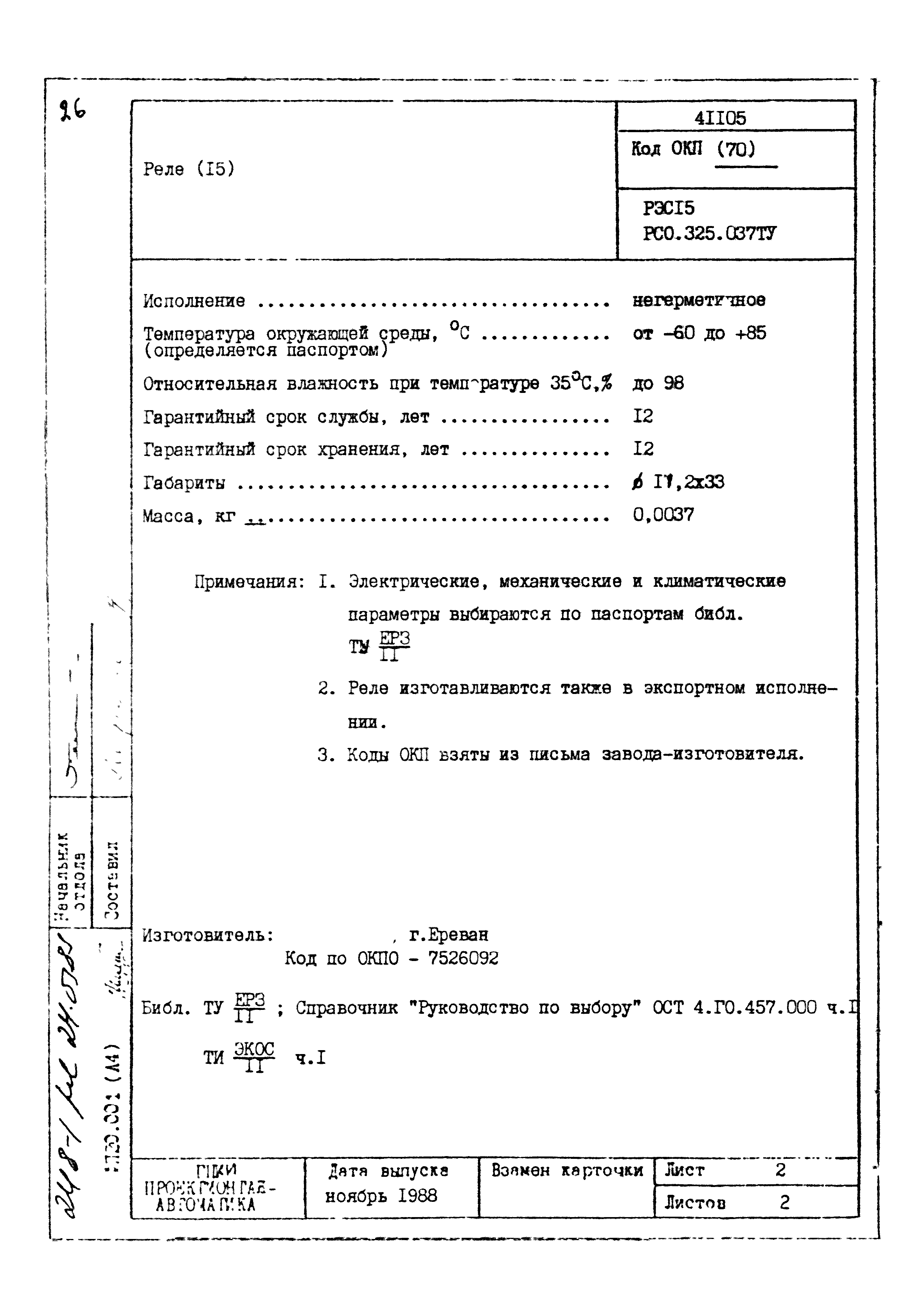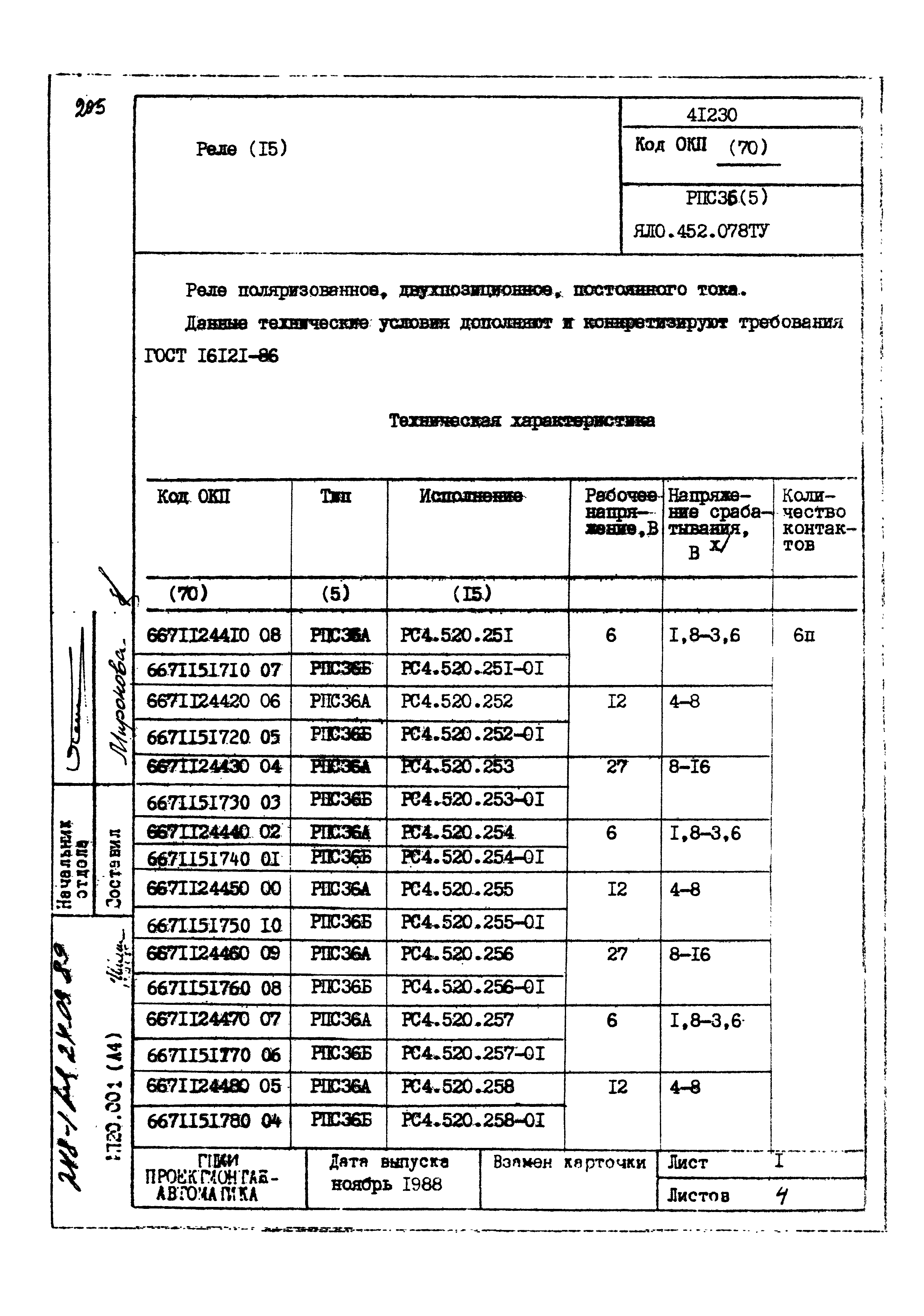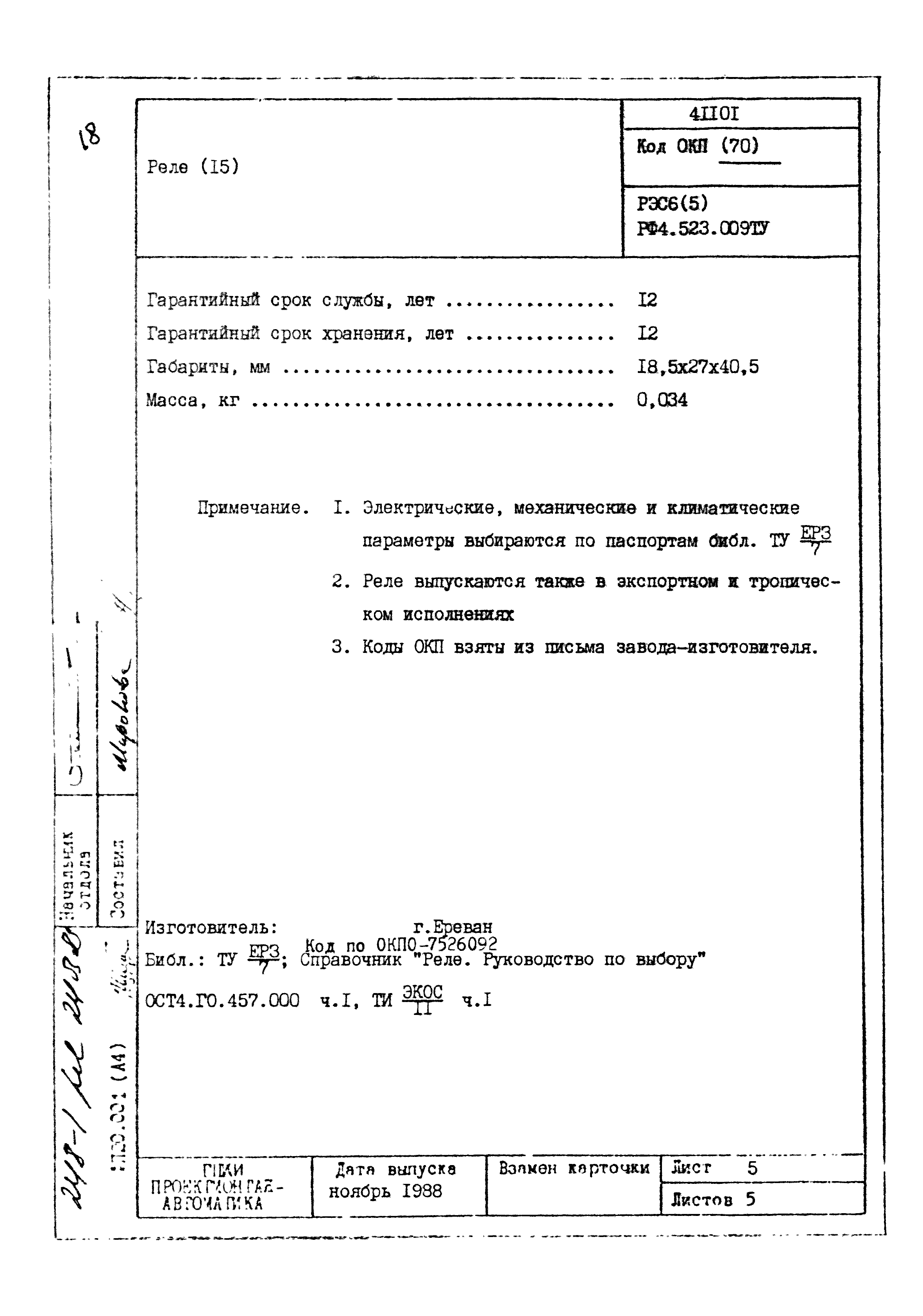 | Заменяет собой: | - «Картотека серийных приборов и средств автоматизации. Раздел 41. Реле контактные двух- и трехпозиционные» (1985 год)