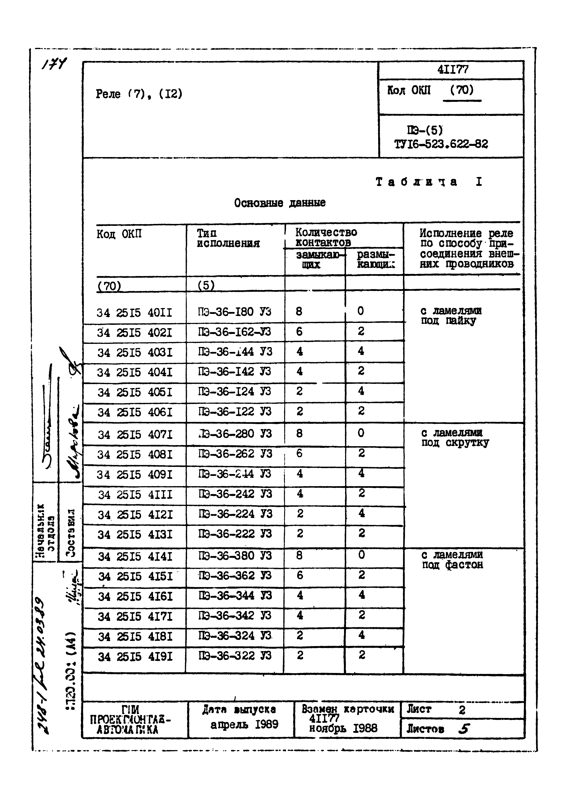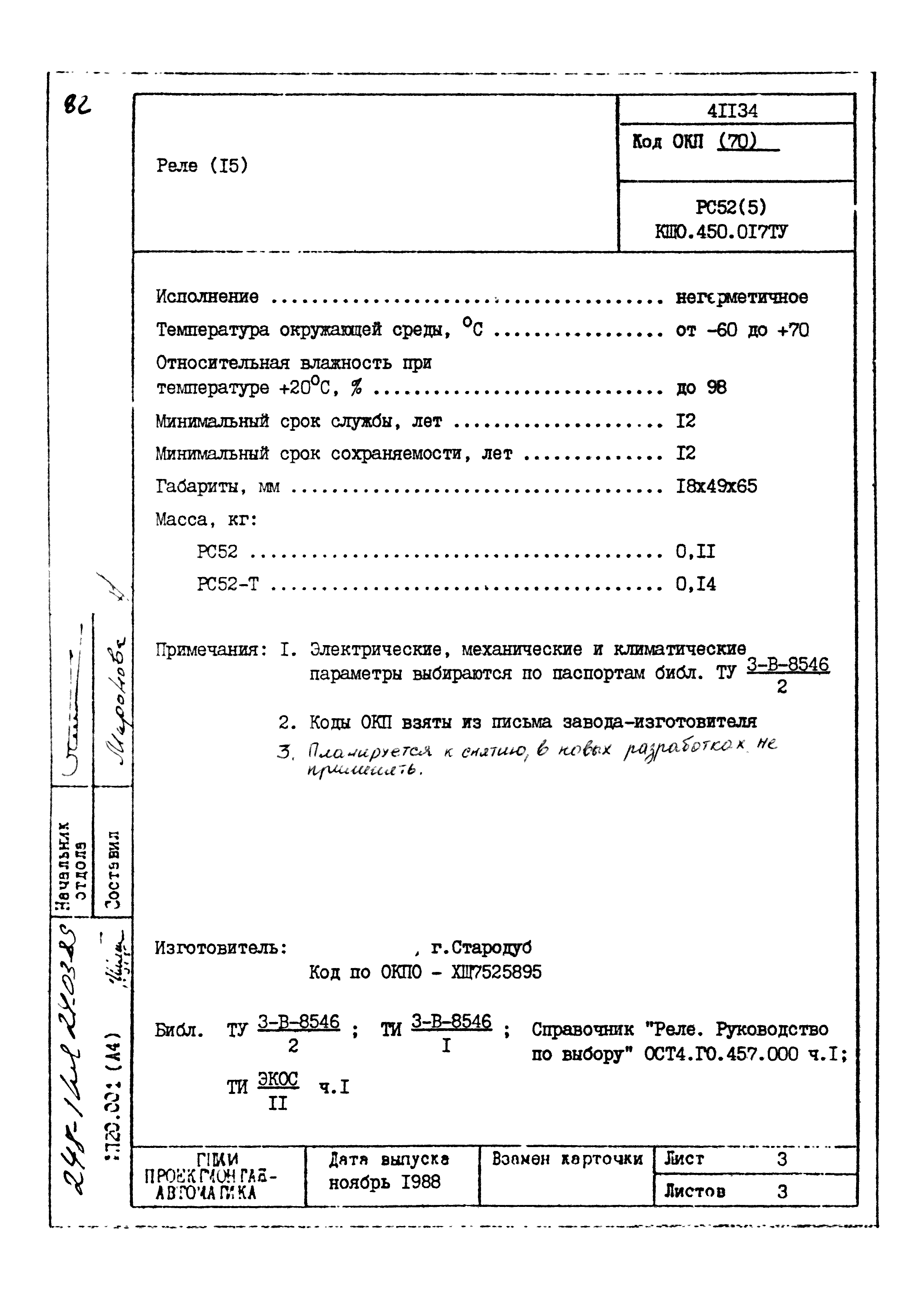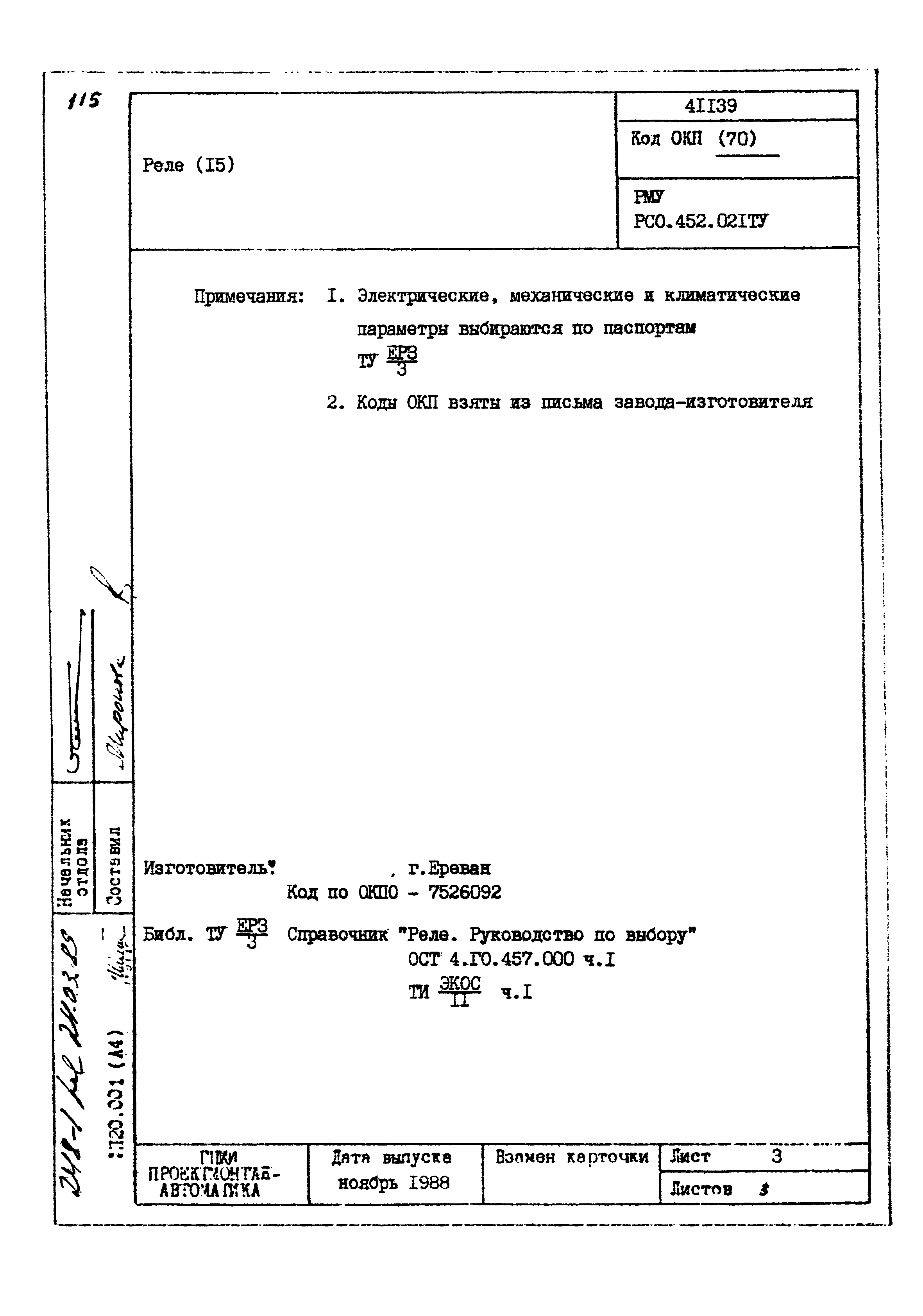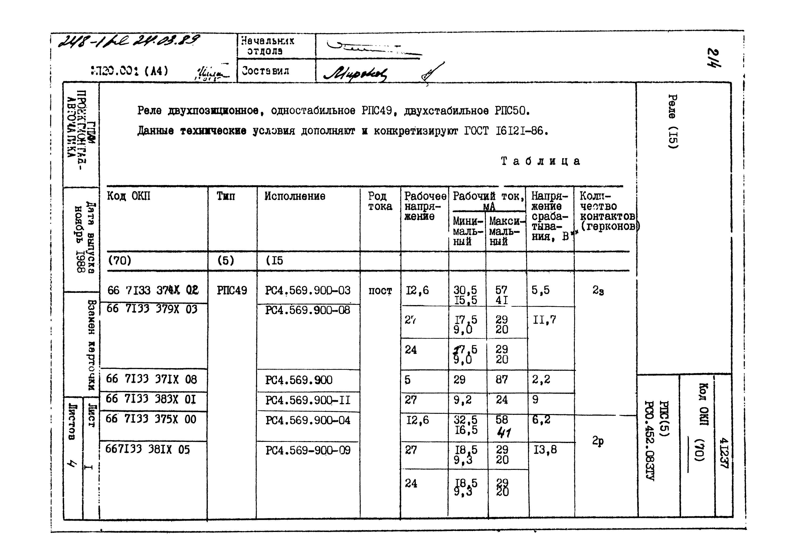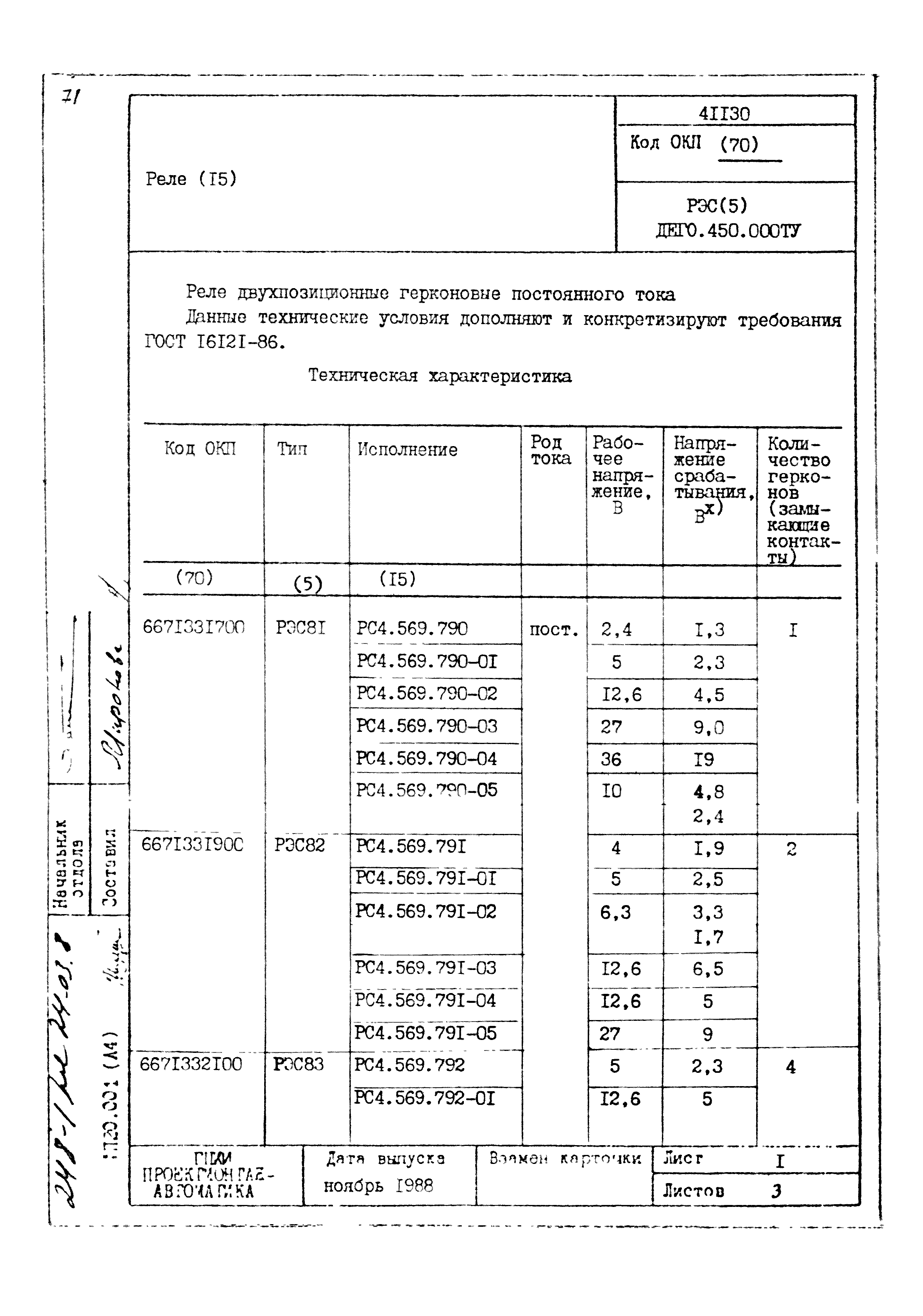 | Заменяет собой: | - «Картотека серийных приборов и средств автоматизации. Раздел 41. Реле контактные двух- и трехпозиционные» (1985 год)