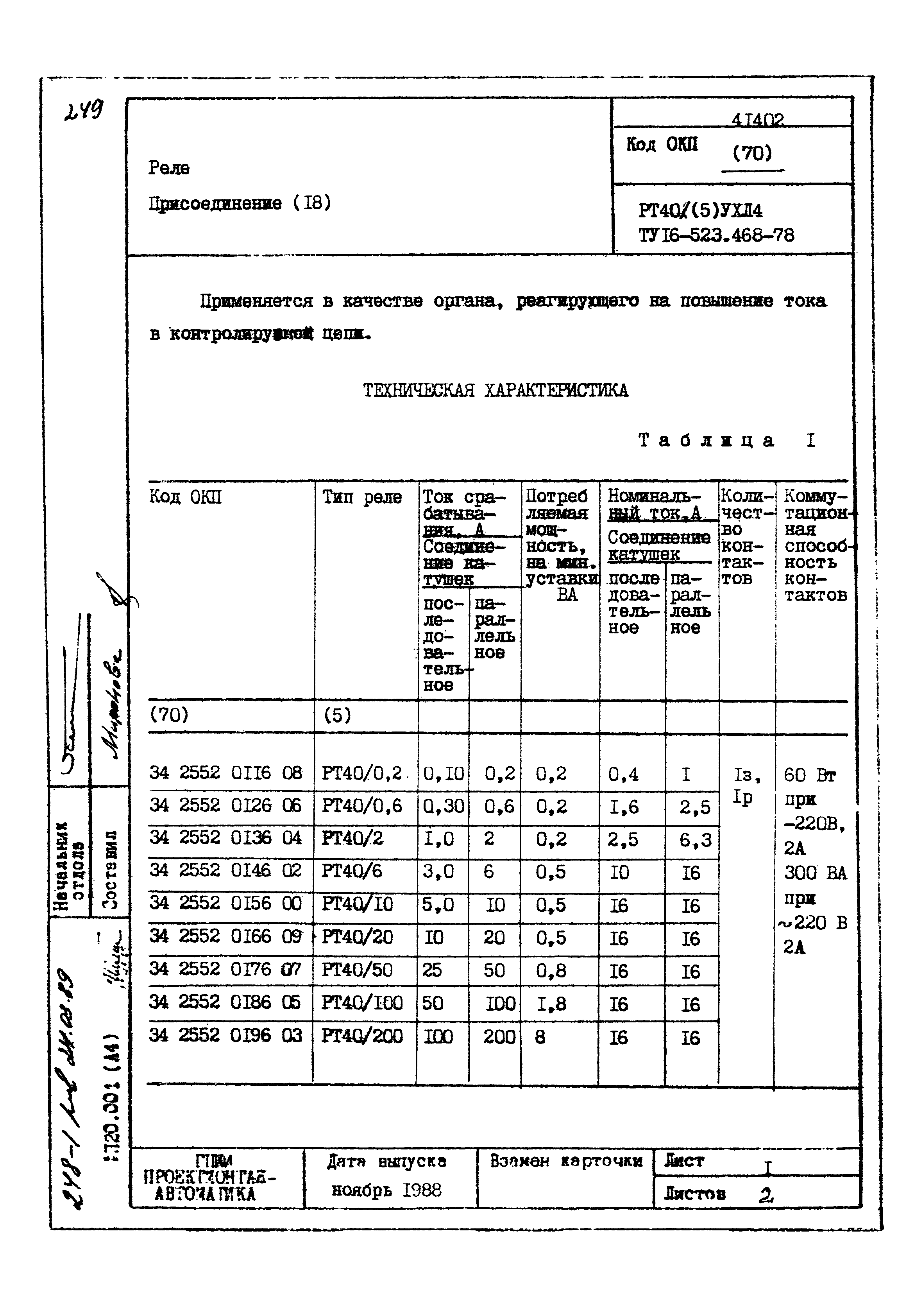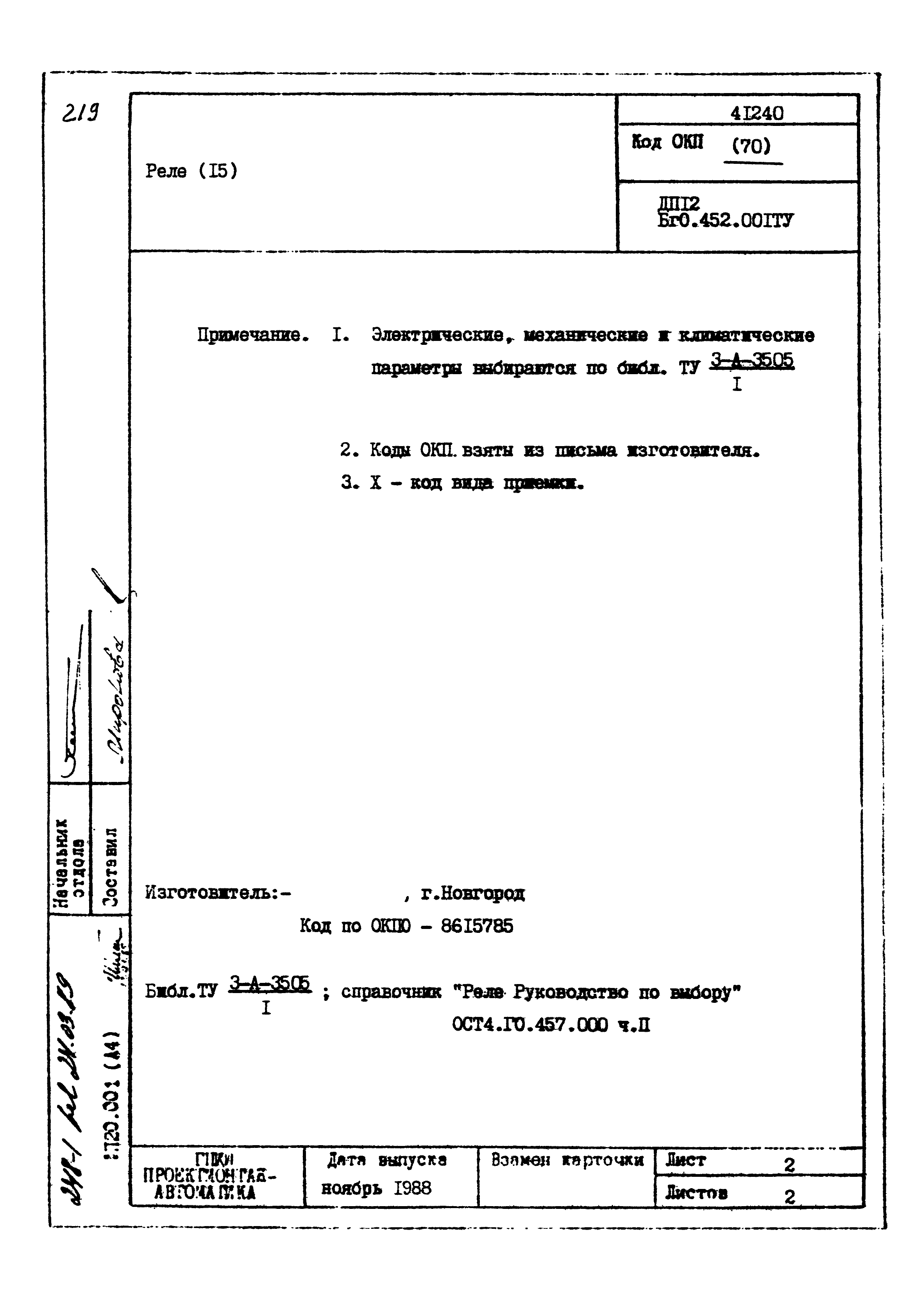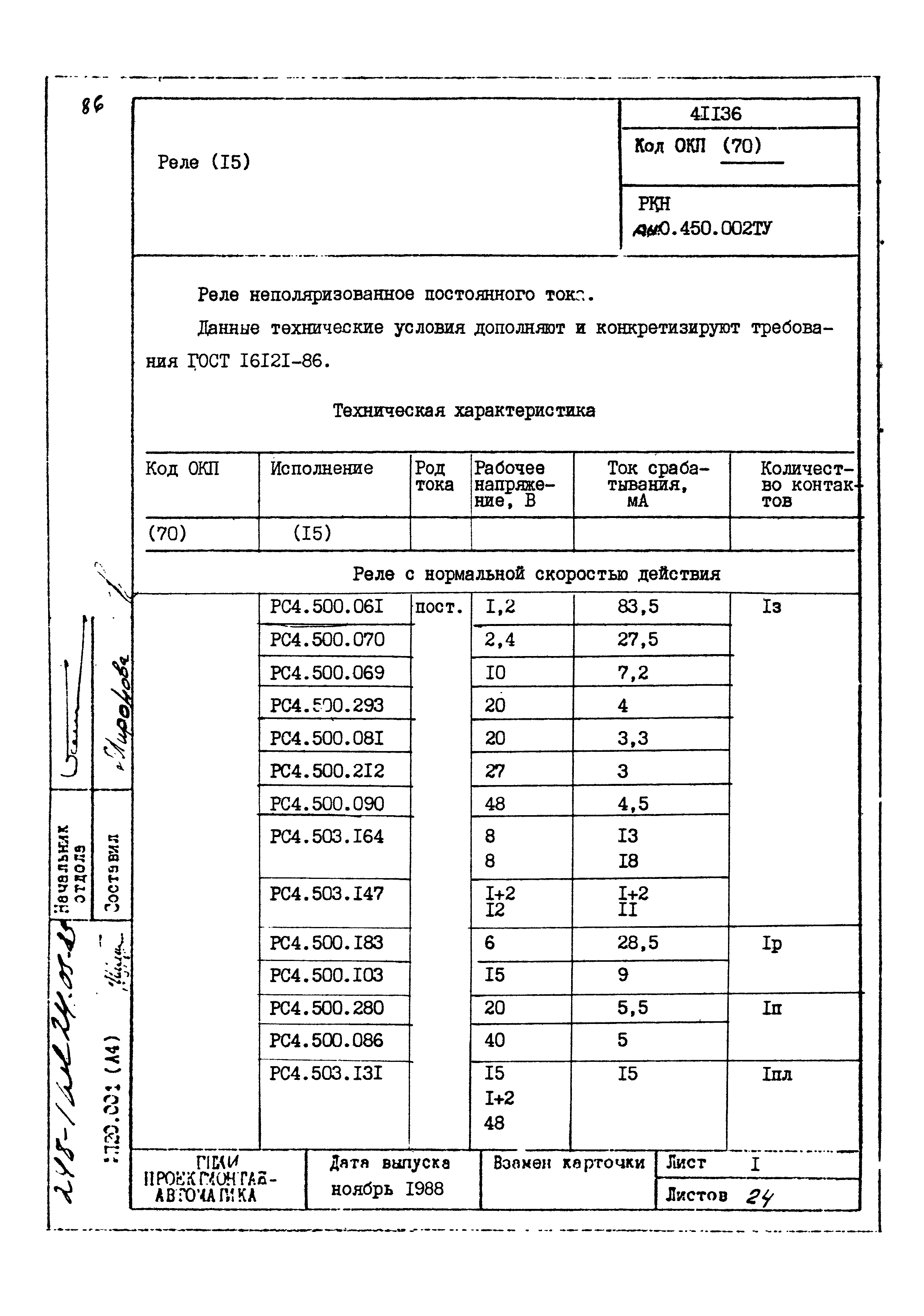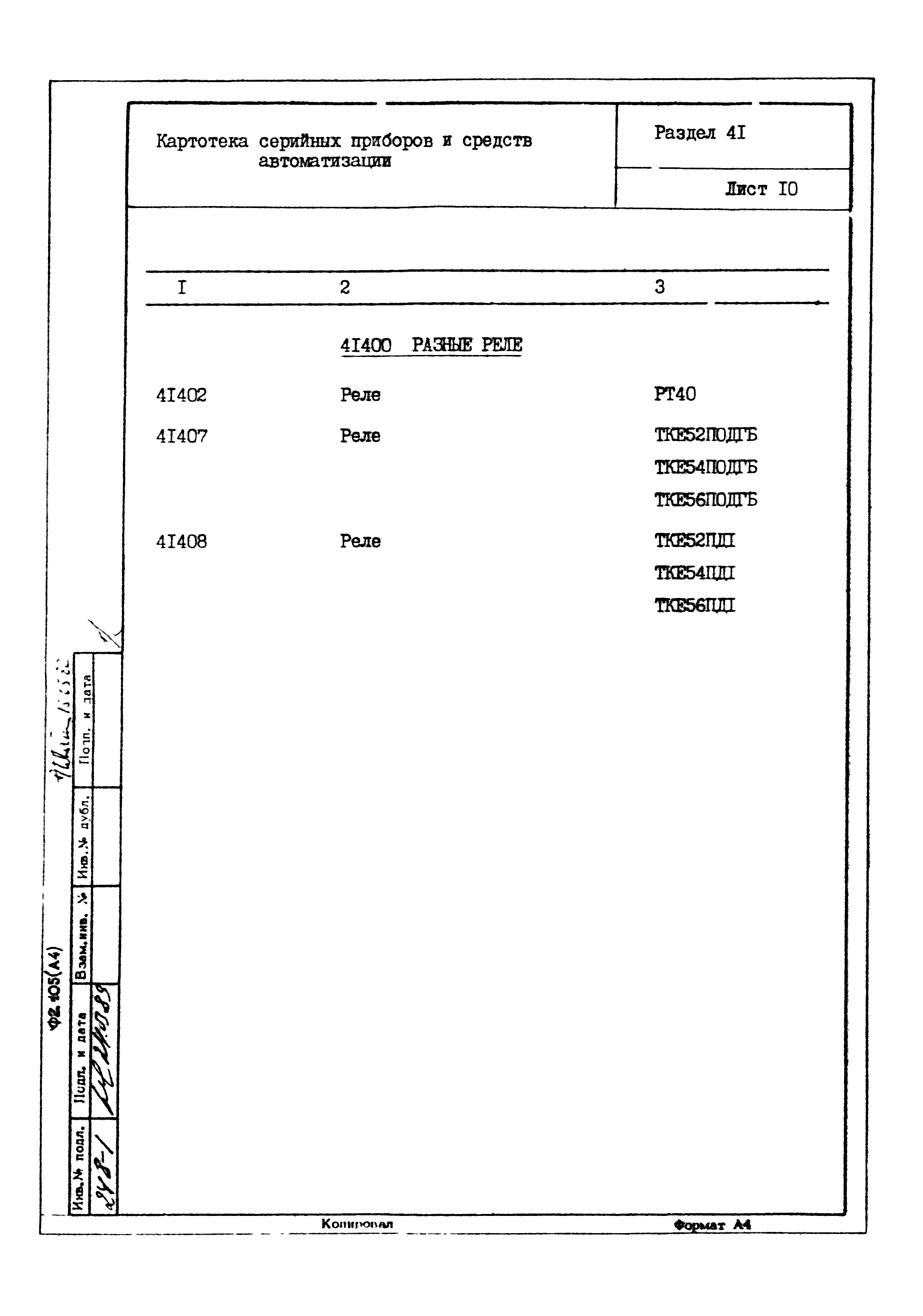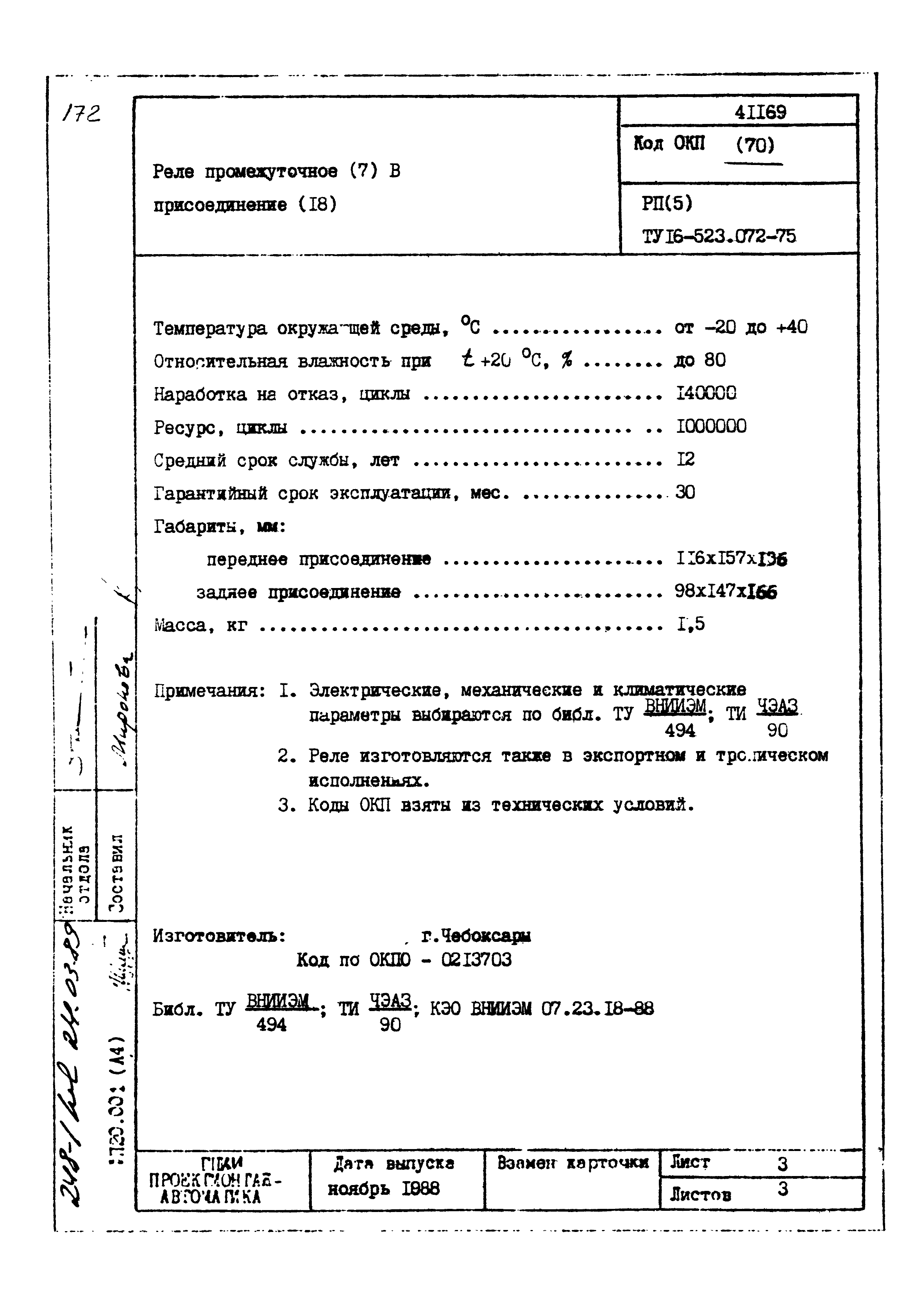 | Заменяет собой: | - «Картотека серийных приборов и средств автоматизации. Раздел 41. Реле контактные двух- и трехпозиционные» (1985 год)