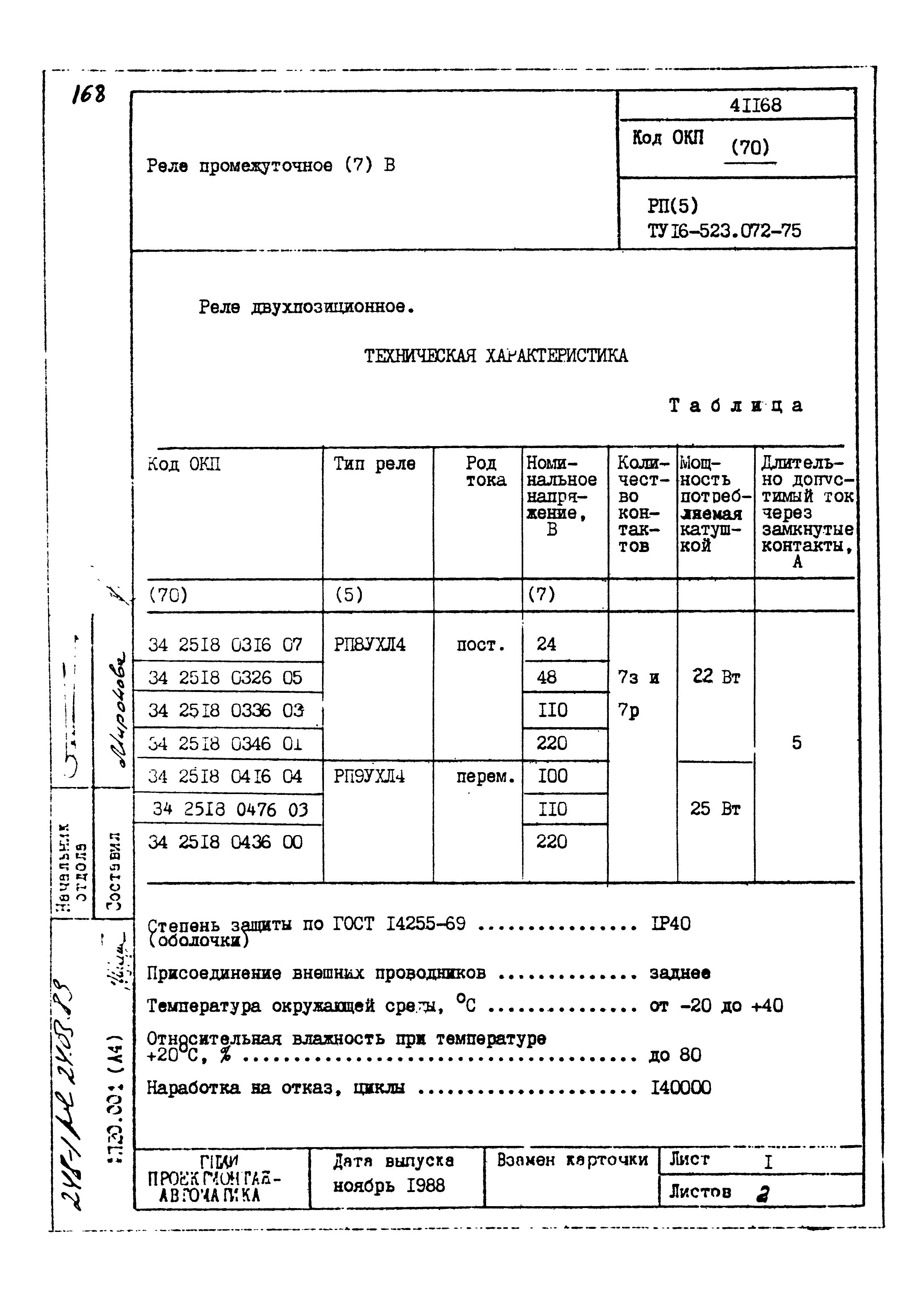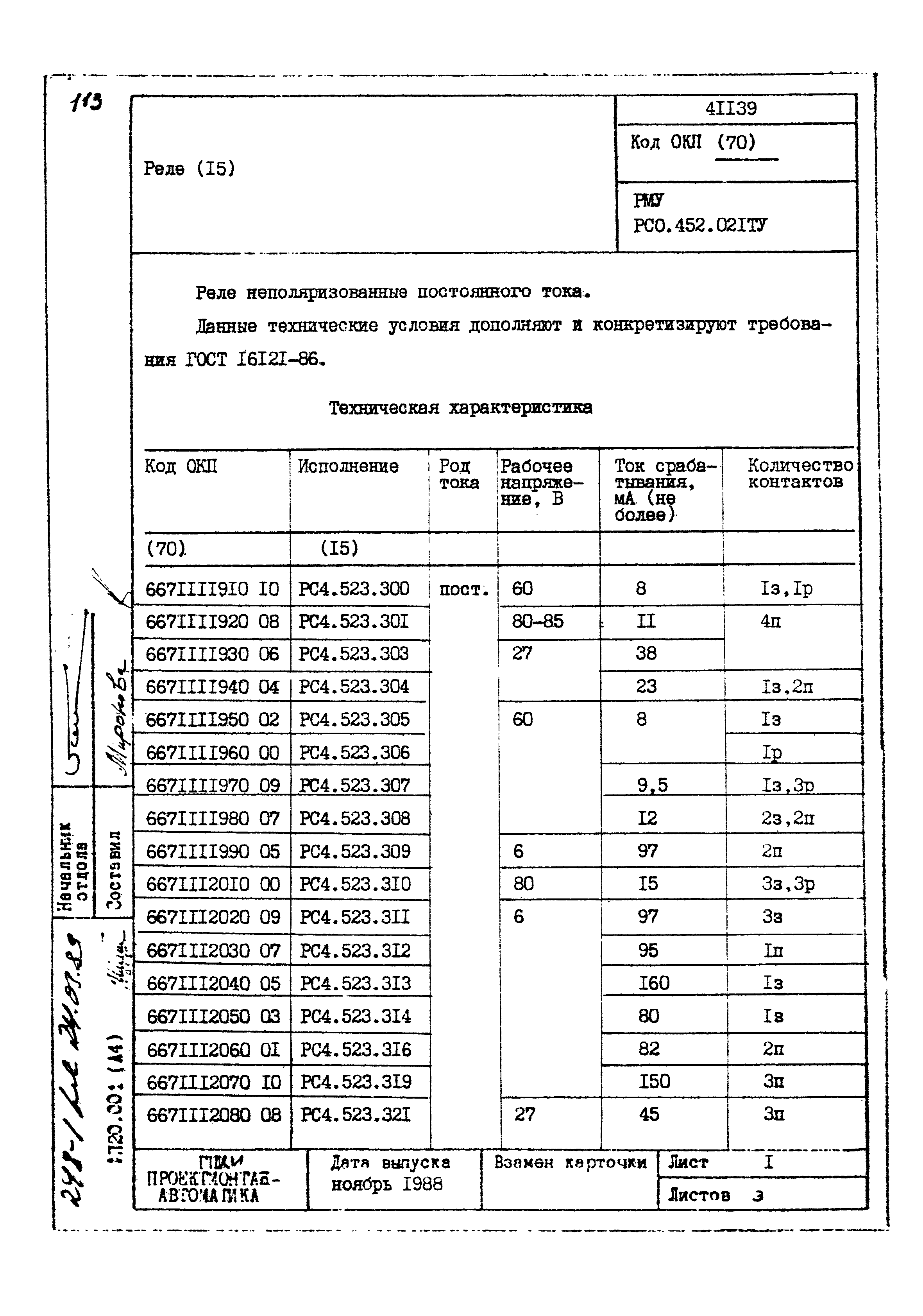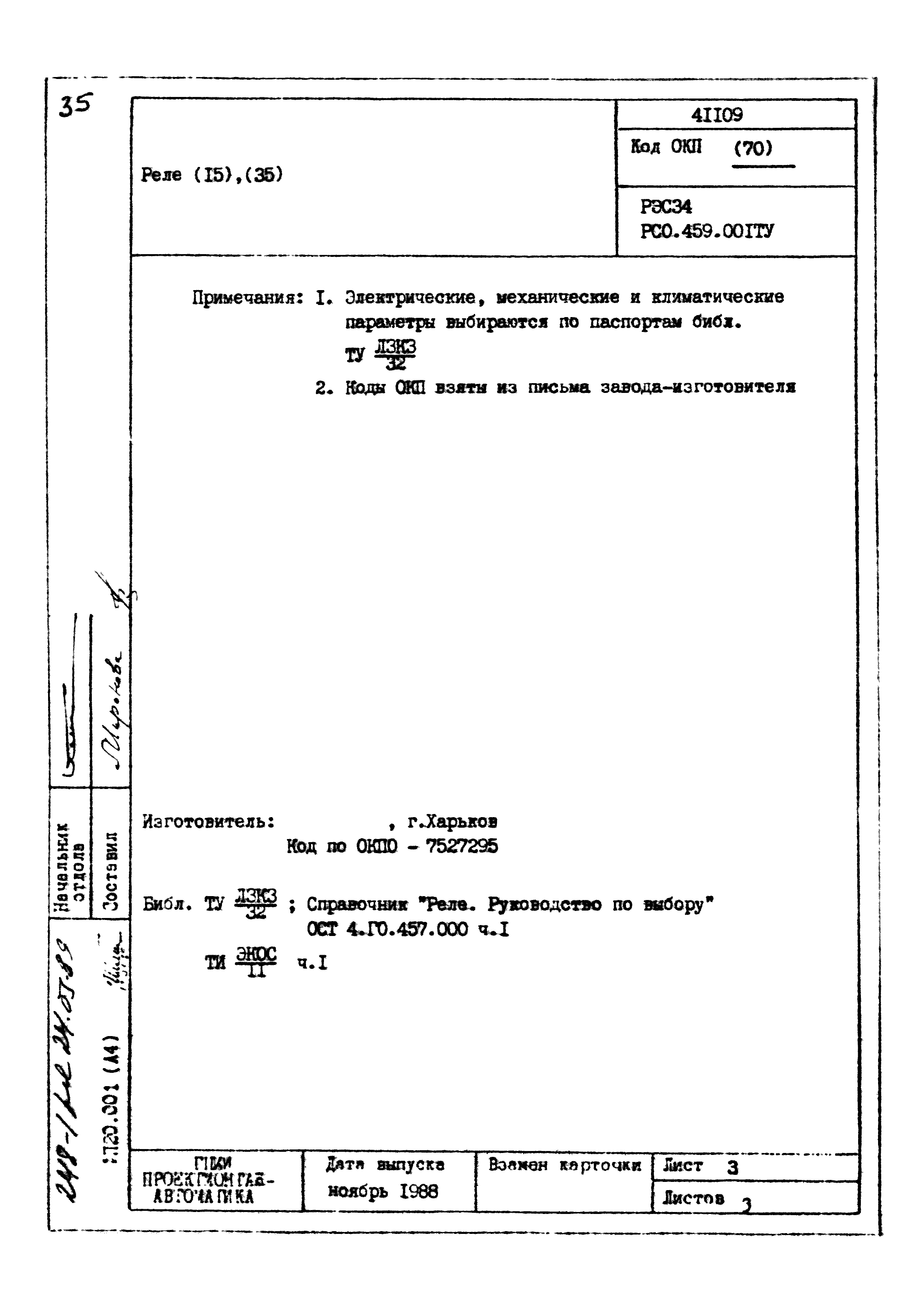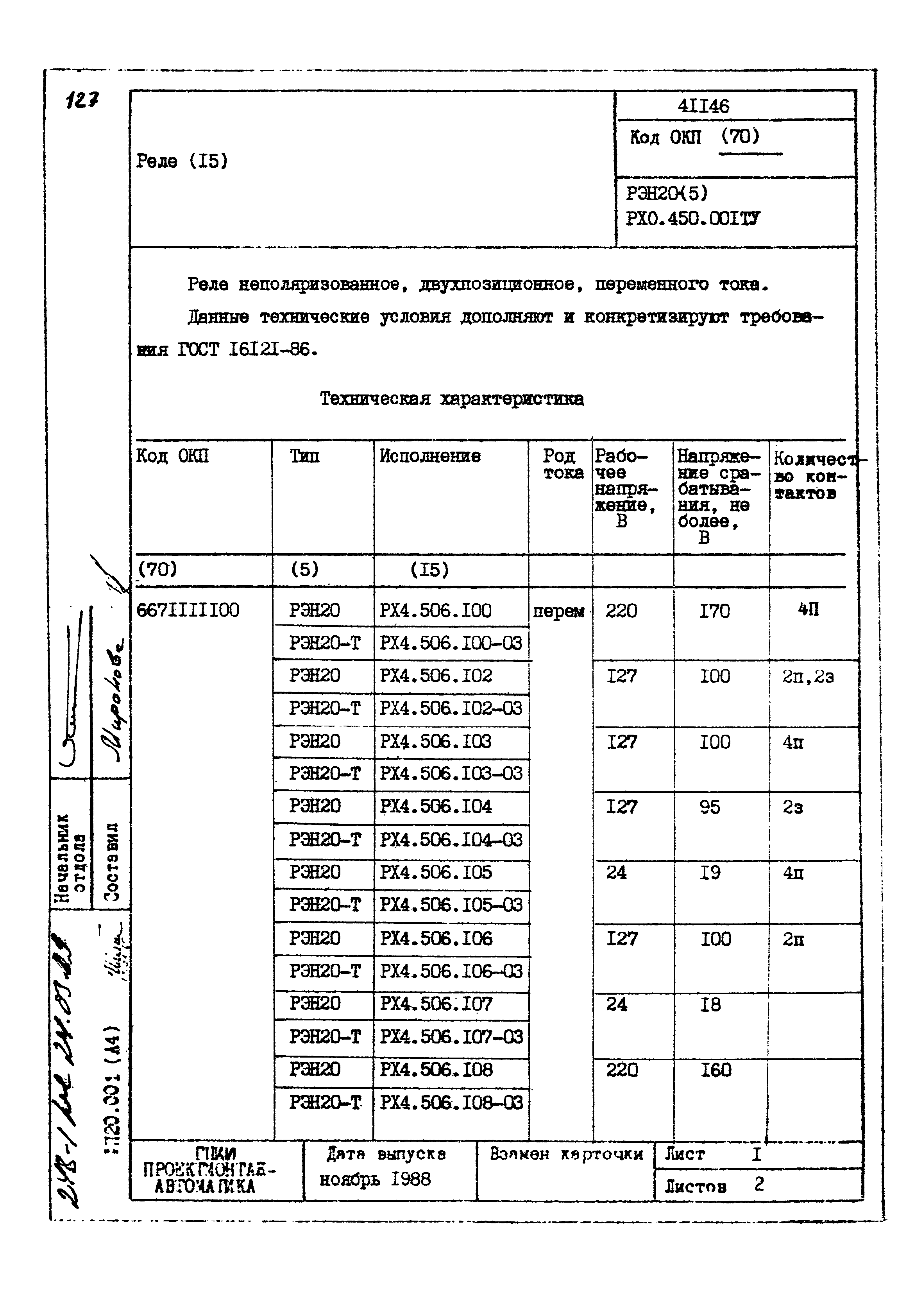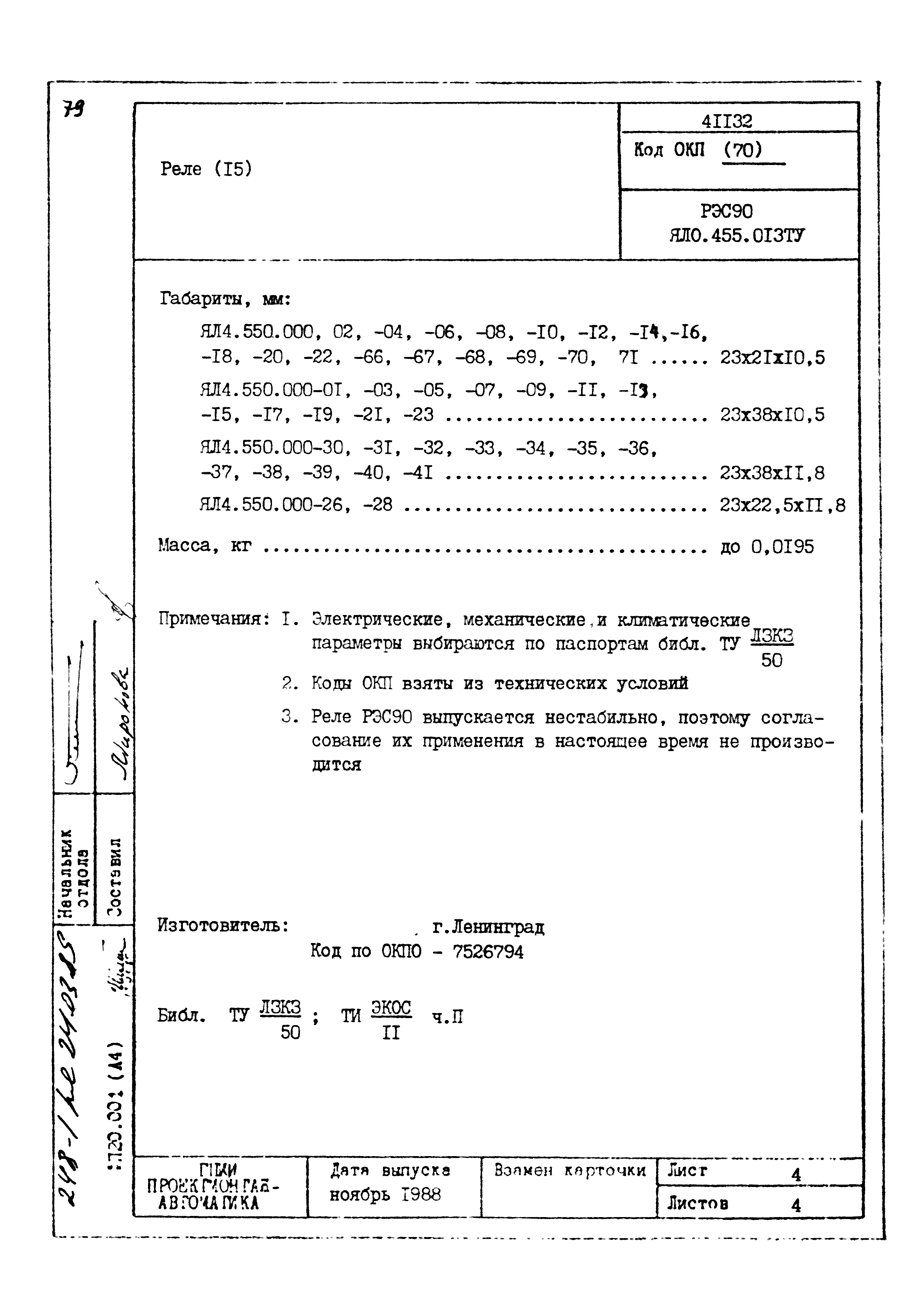 | Заменяет собой: | - «Картотека серийных приборов и средств автоматизации. Раздел 41. Реле контактные двух- и трехпозиционные» (1985 год)