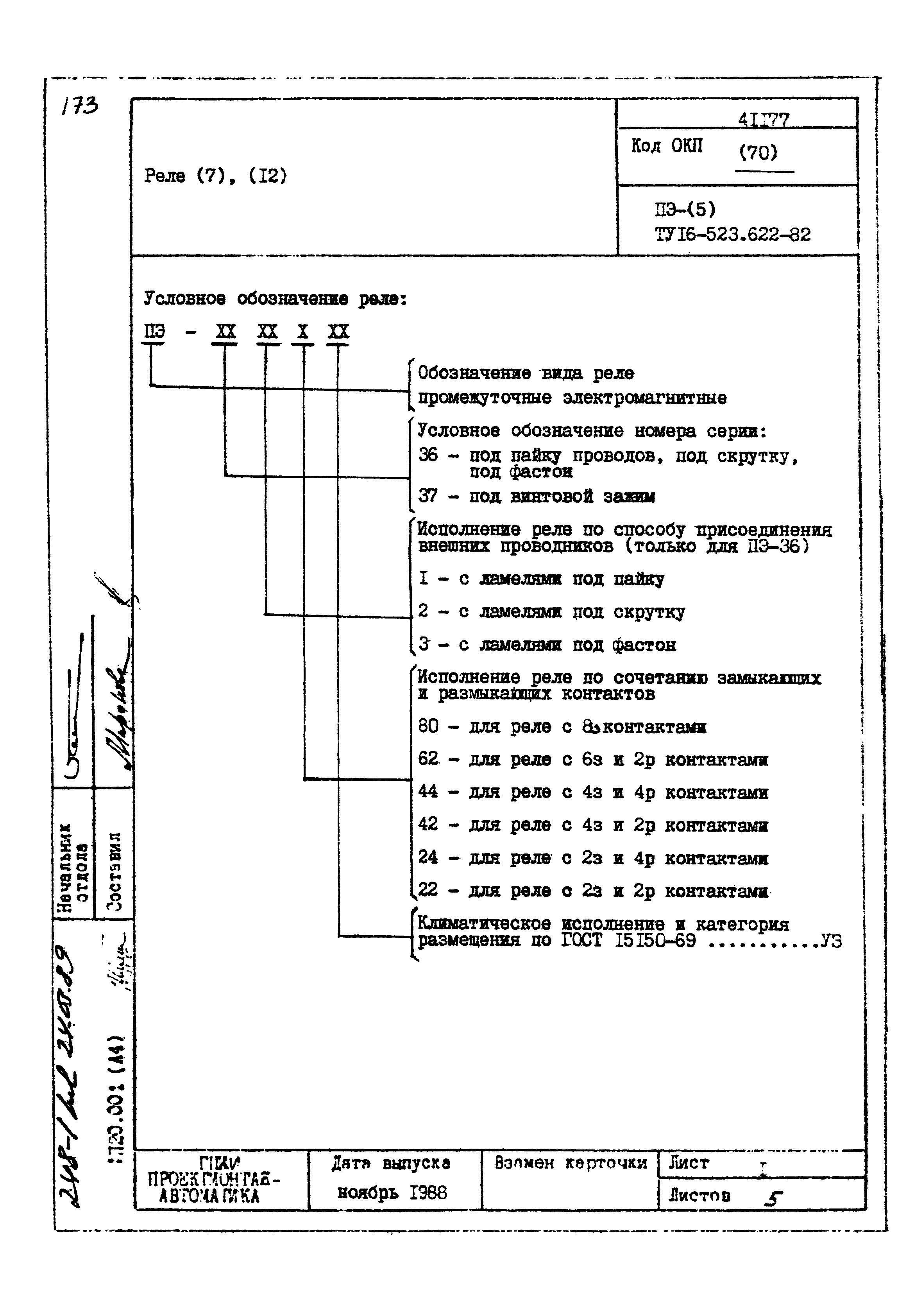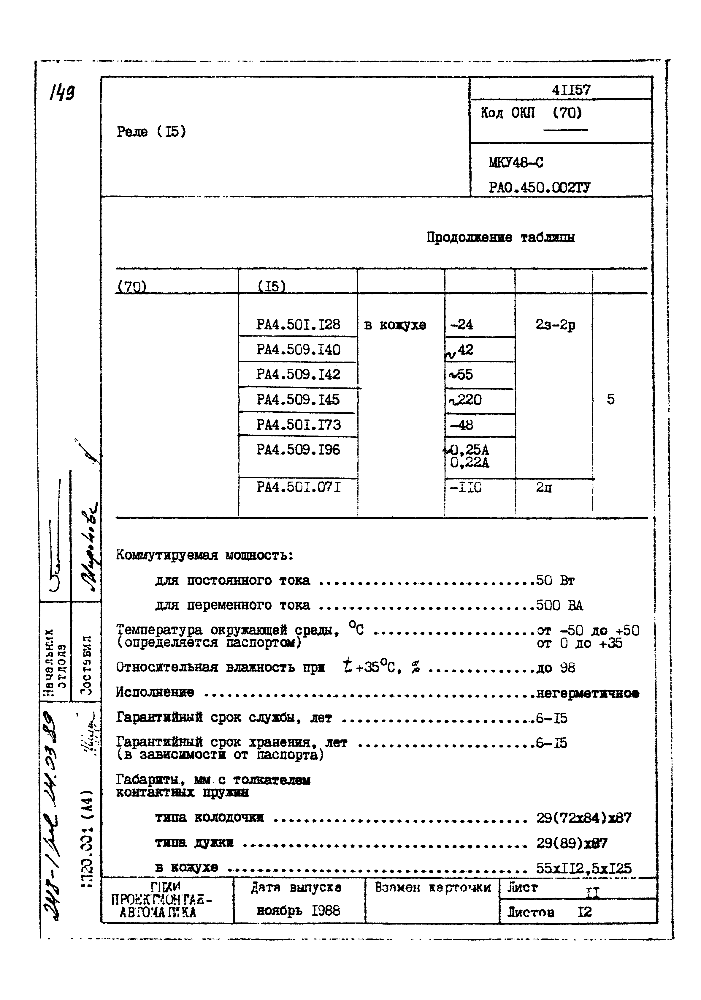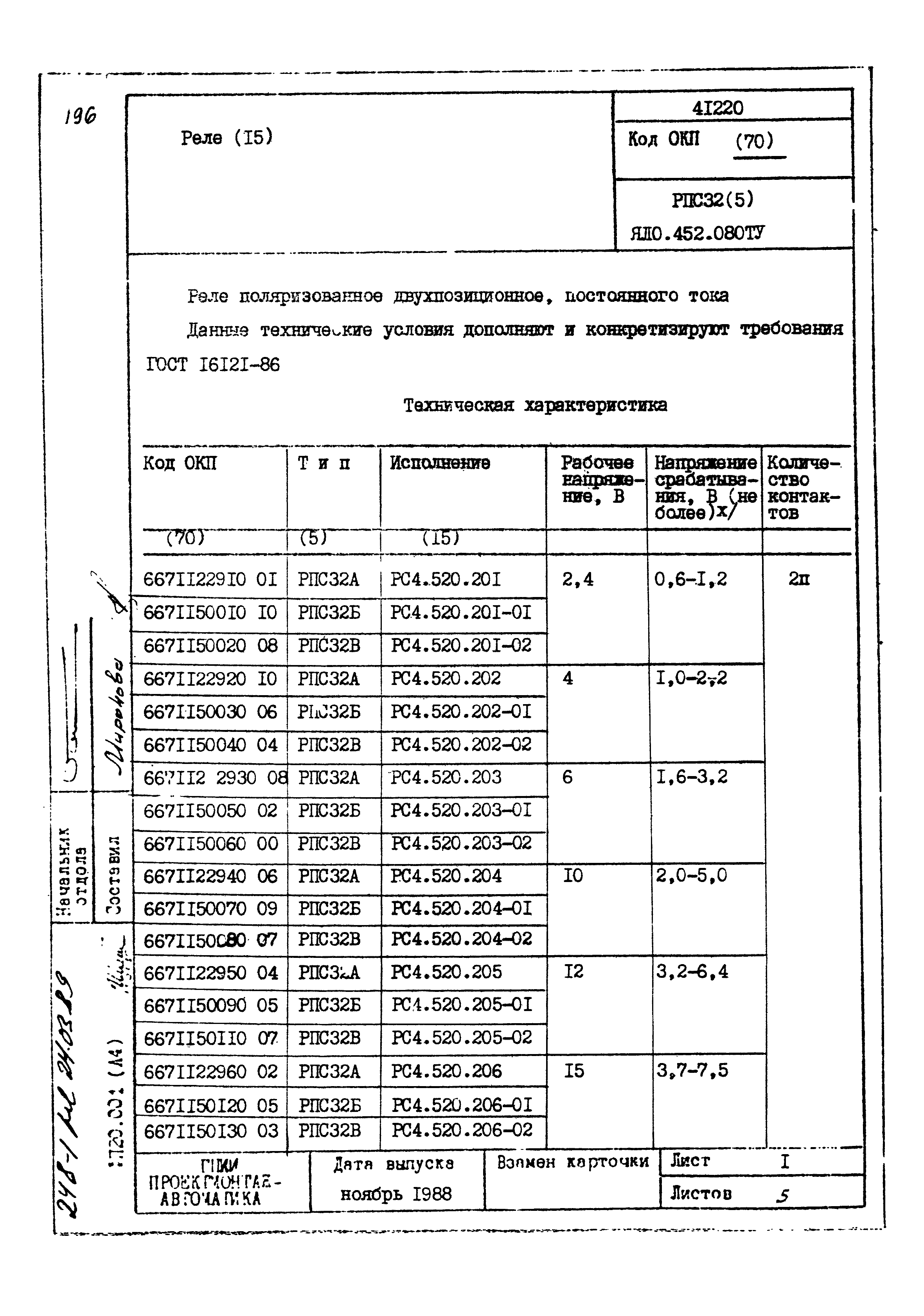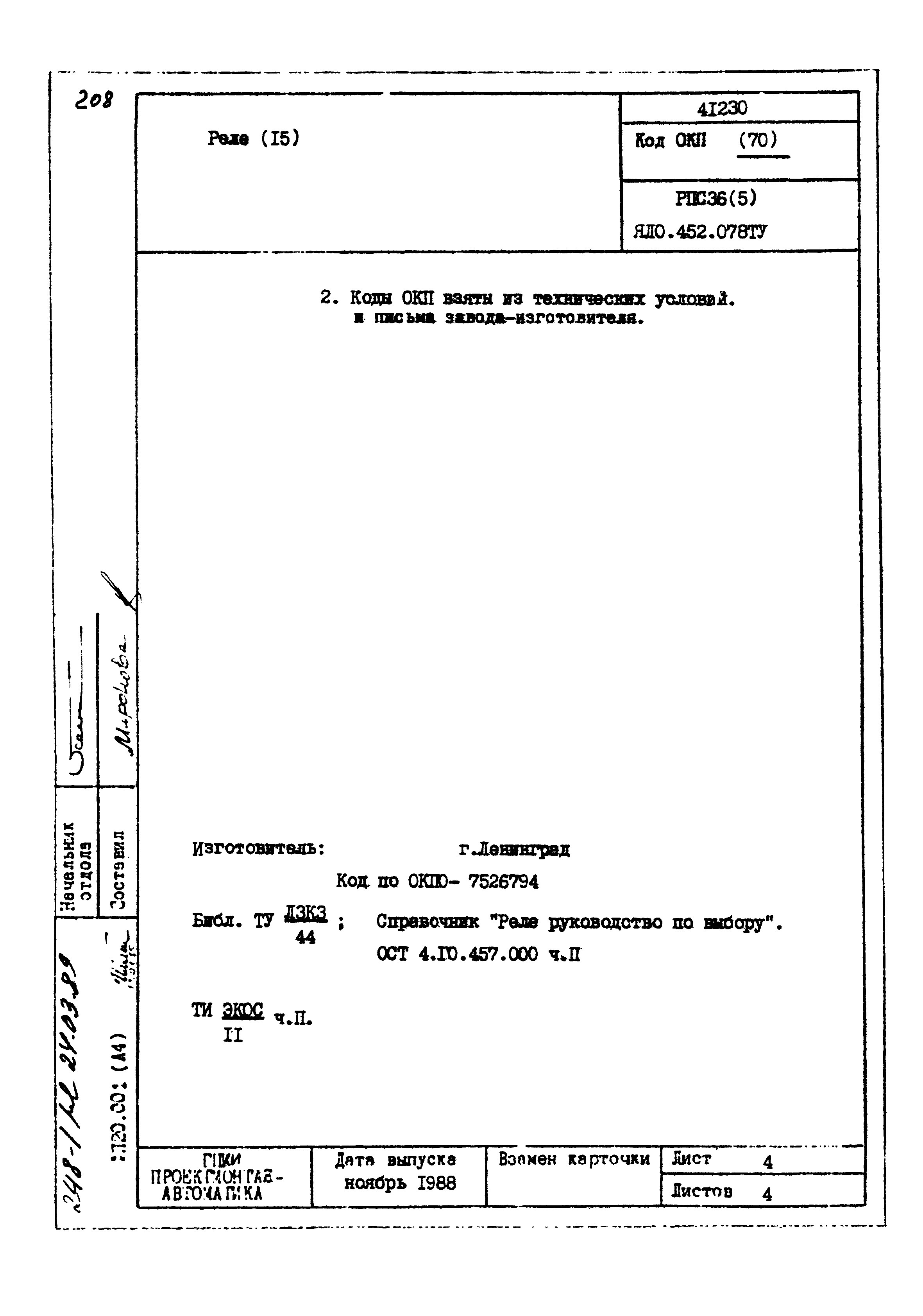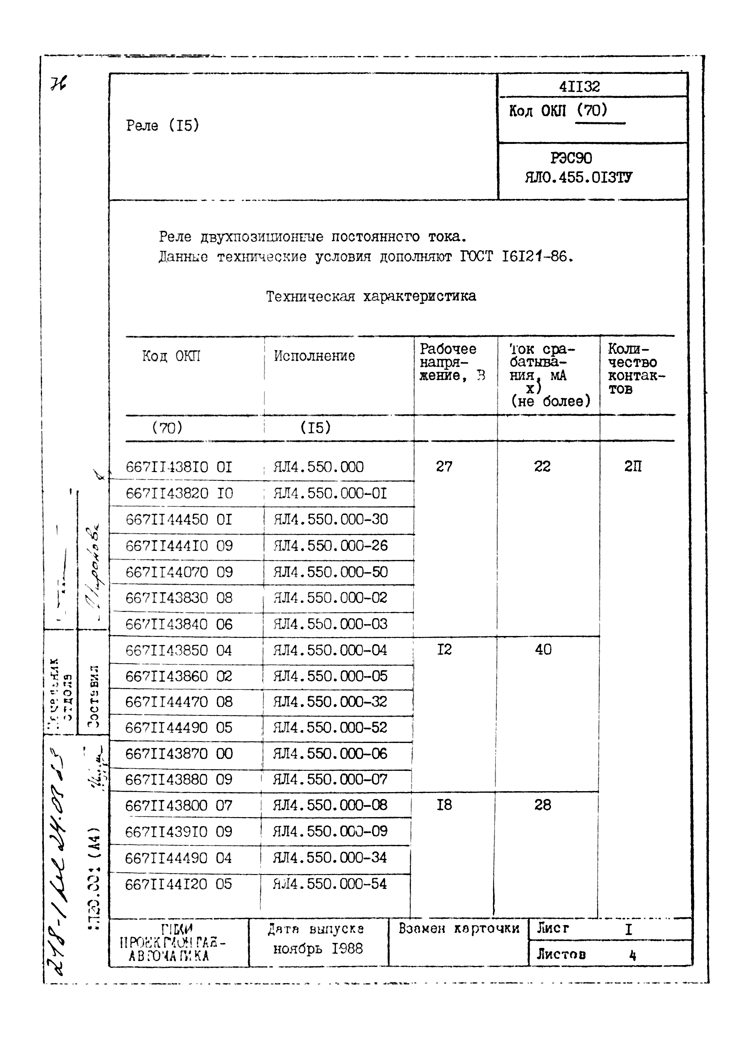 | Заменяет собой: | - «Картотека серийных приборов и средств автоматизации. Раздел 41. Реле контактные двух- и трехпозиционные» (1985 год)