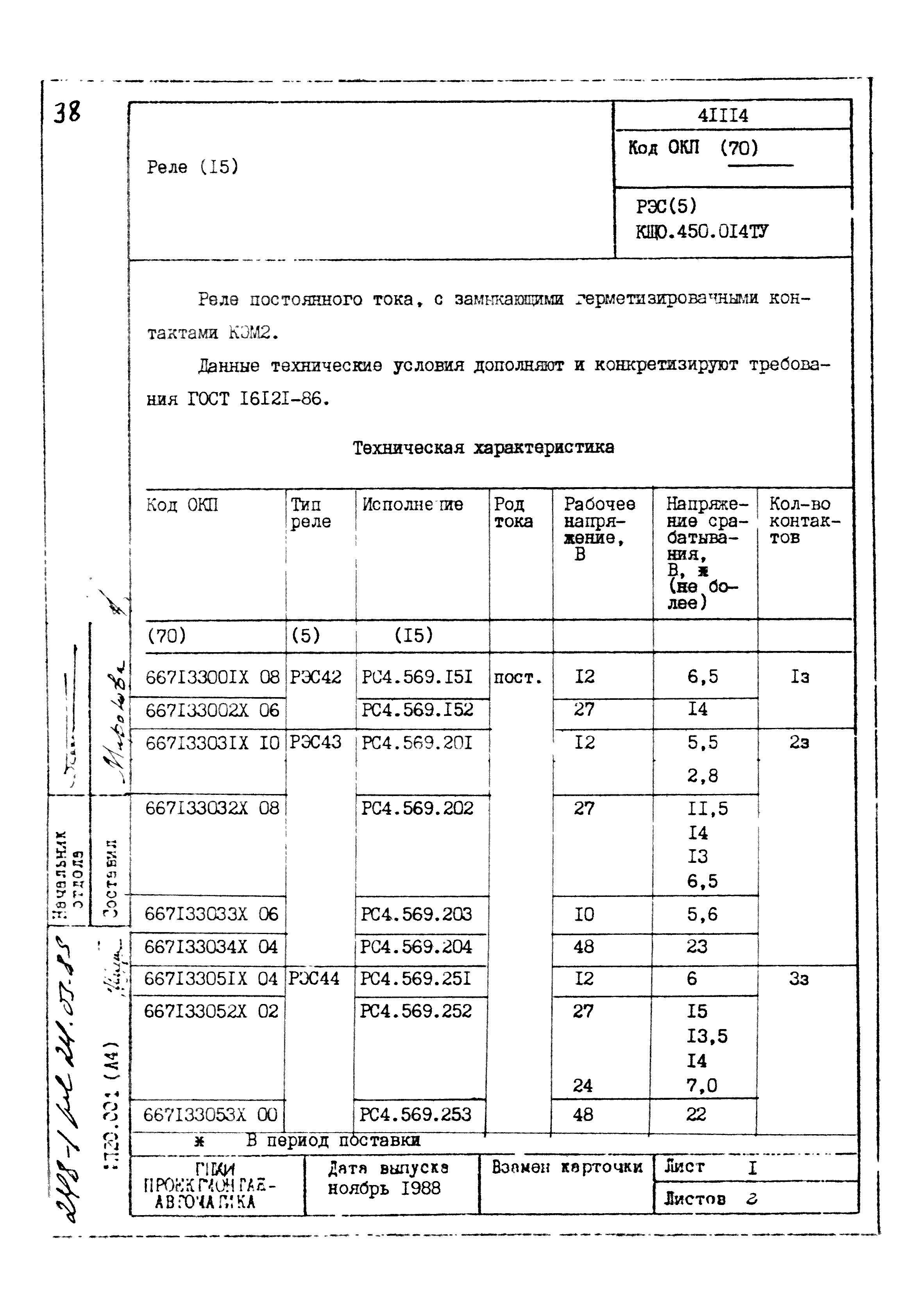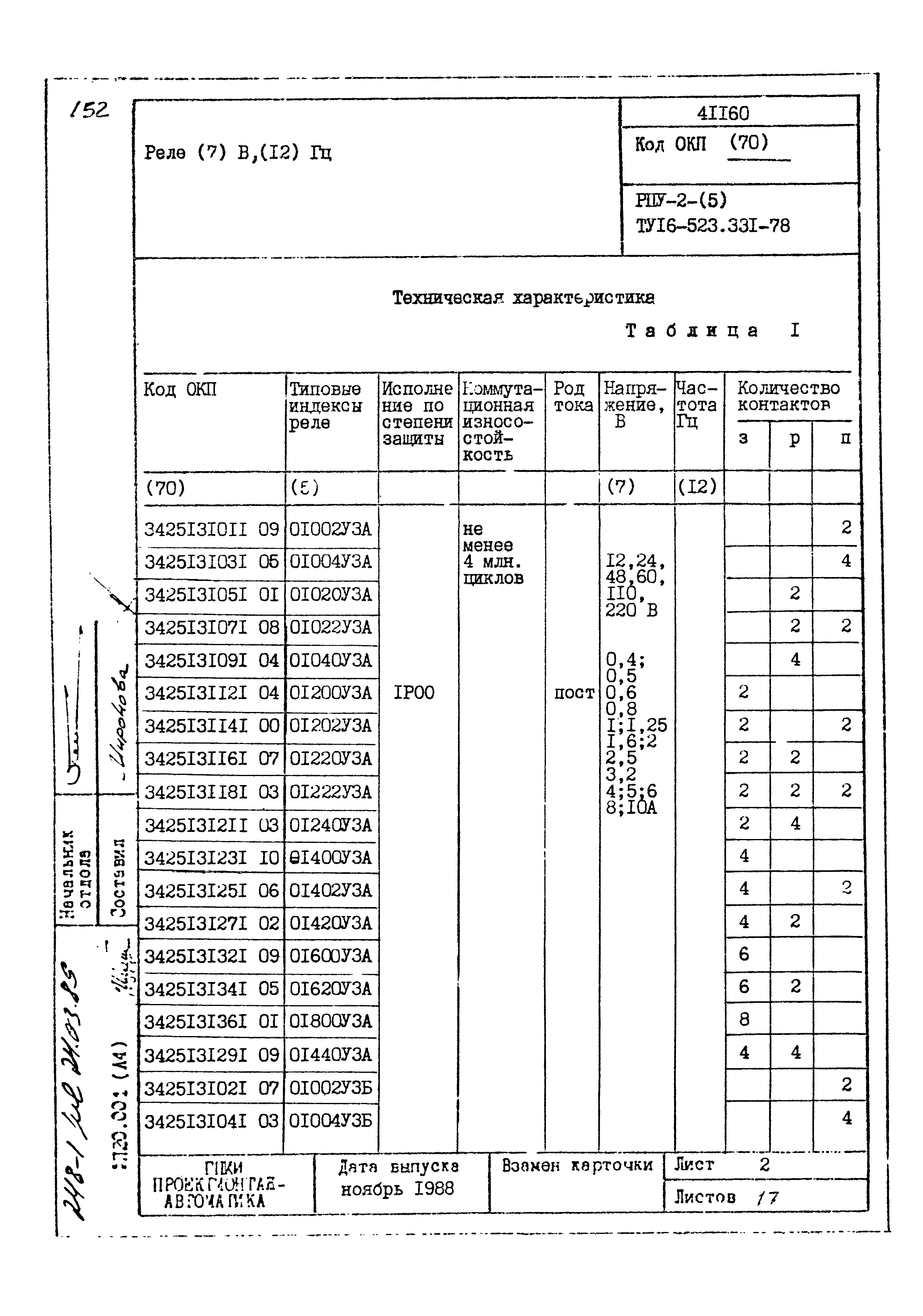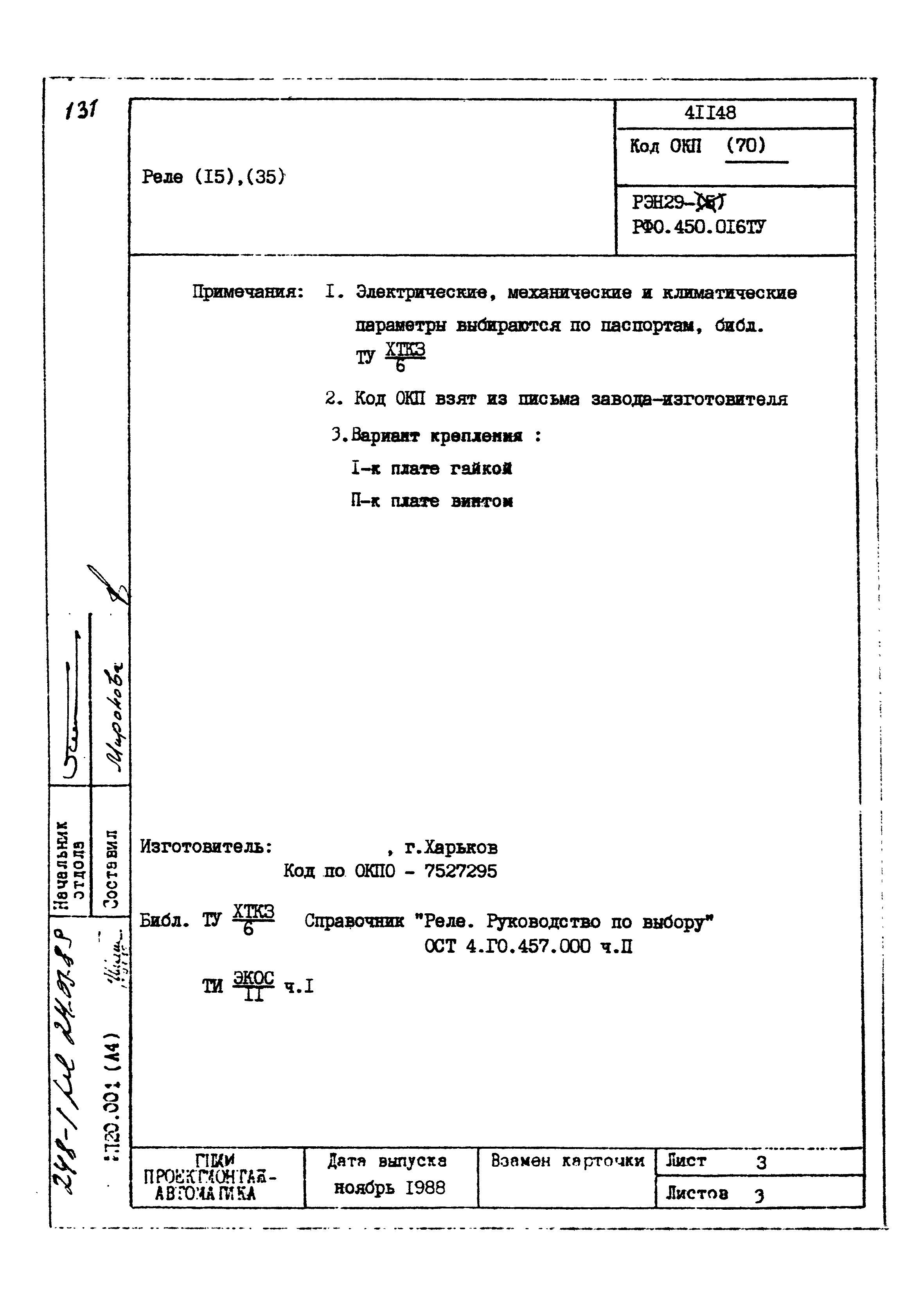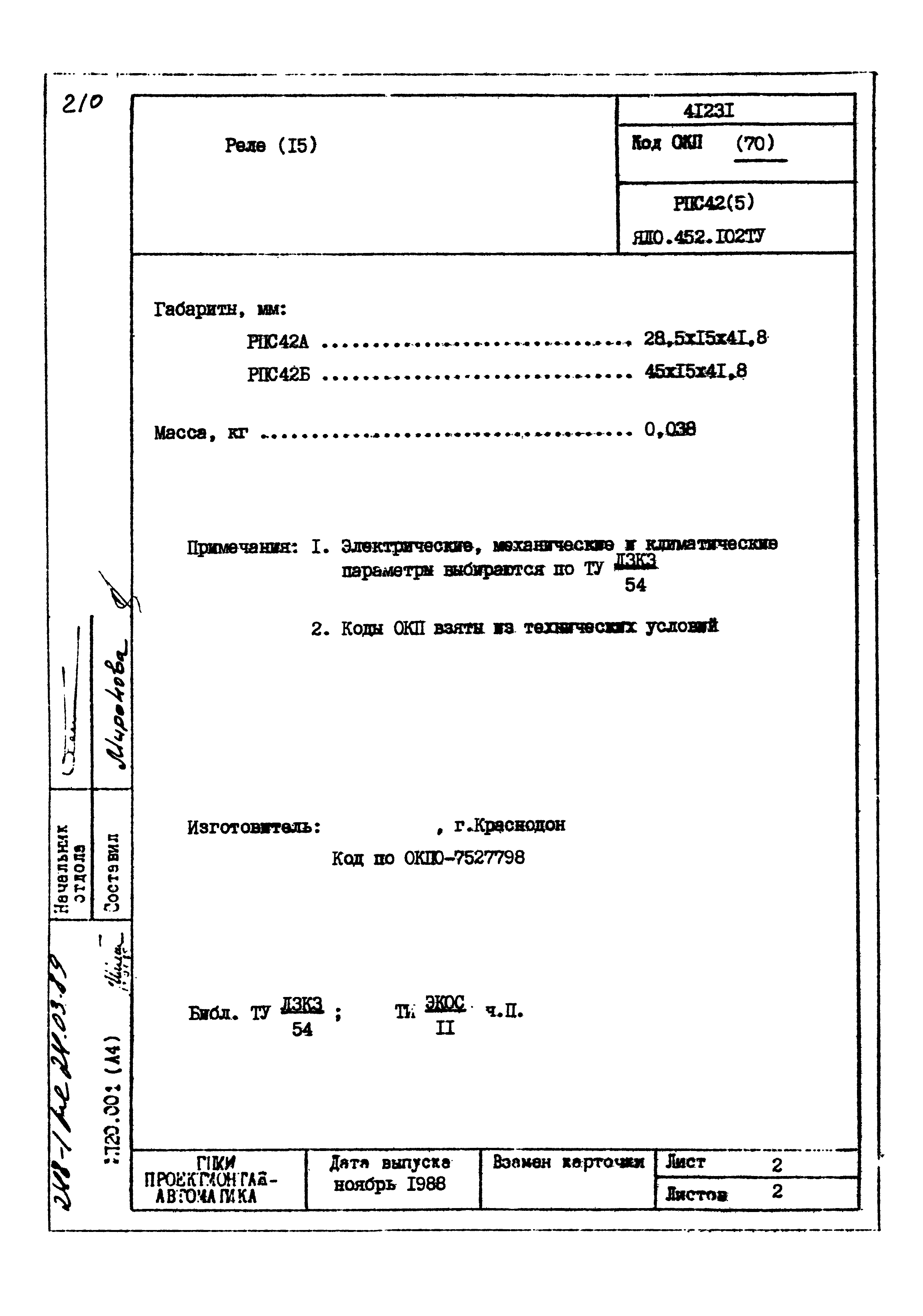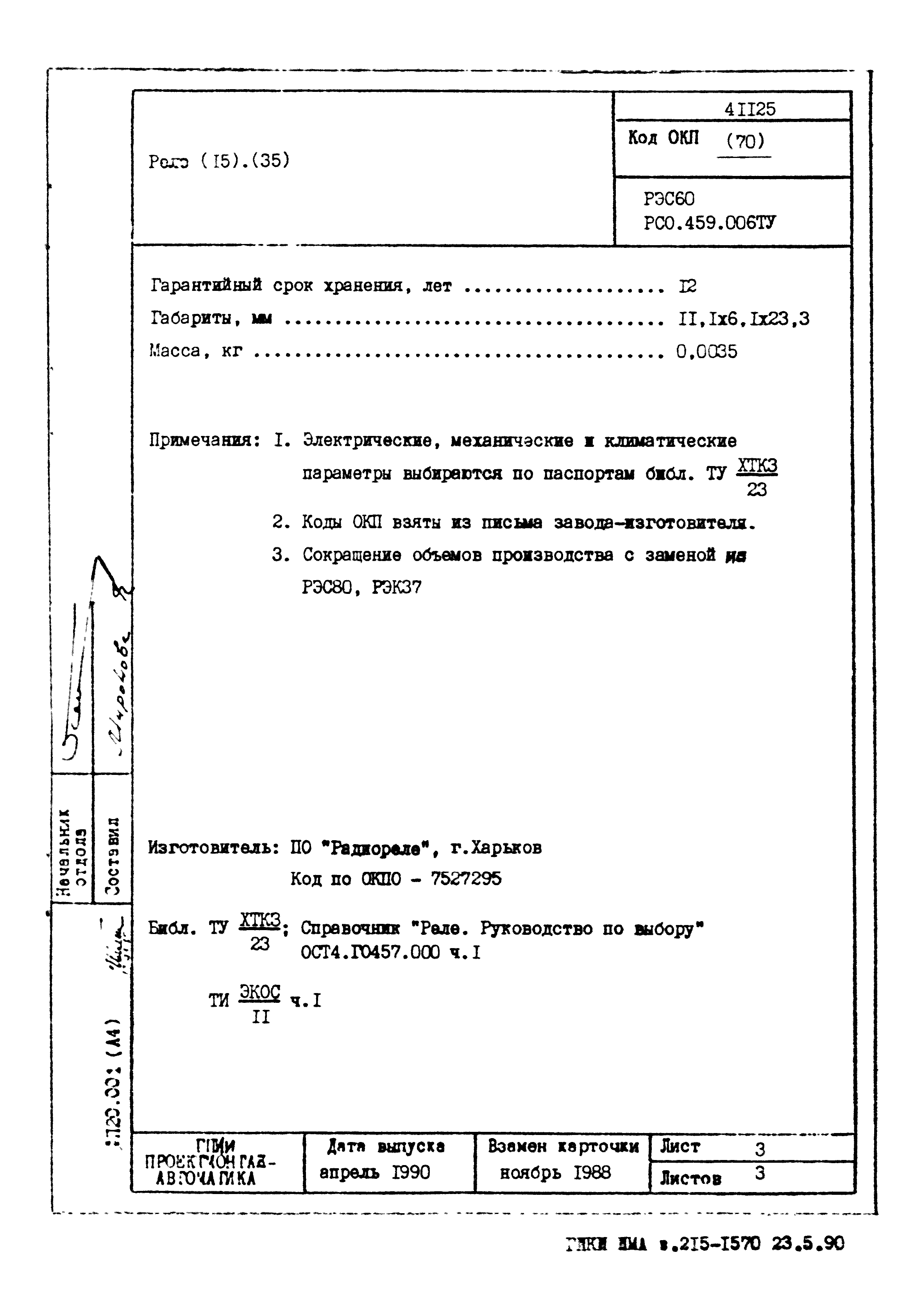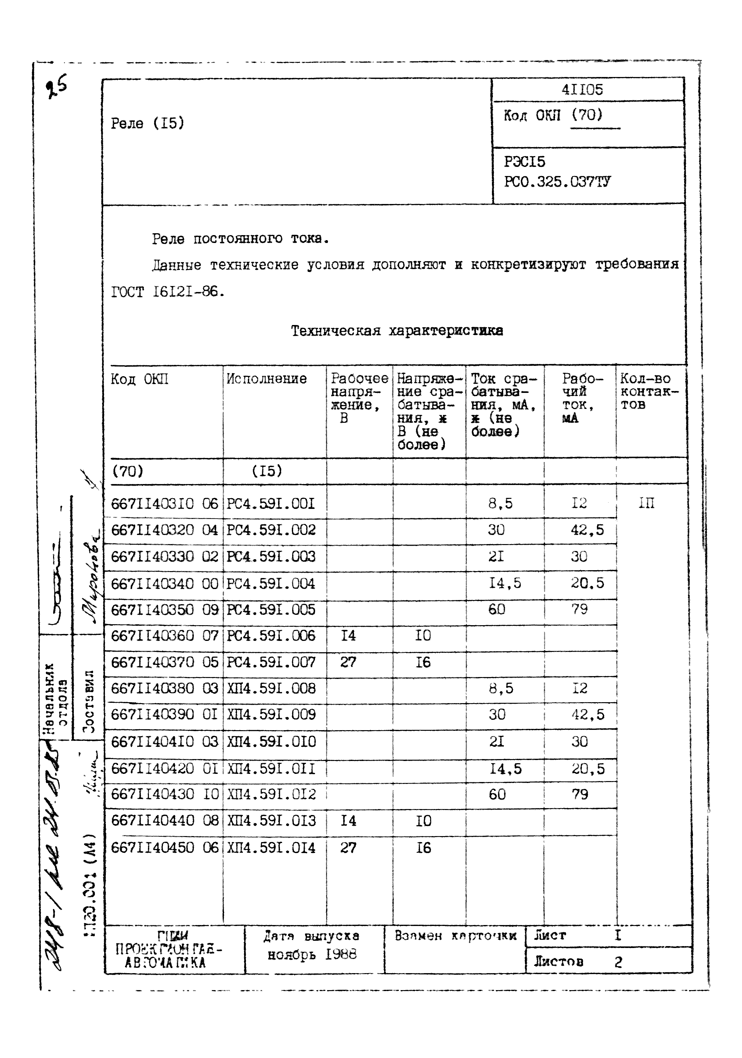 | Заменяет собой: | - «Картотека серийных приборов и средств автоматизации. Раздел 41. Реле контактные двух- и трехпозиционные» (1985 год)