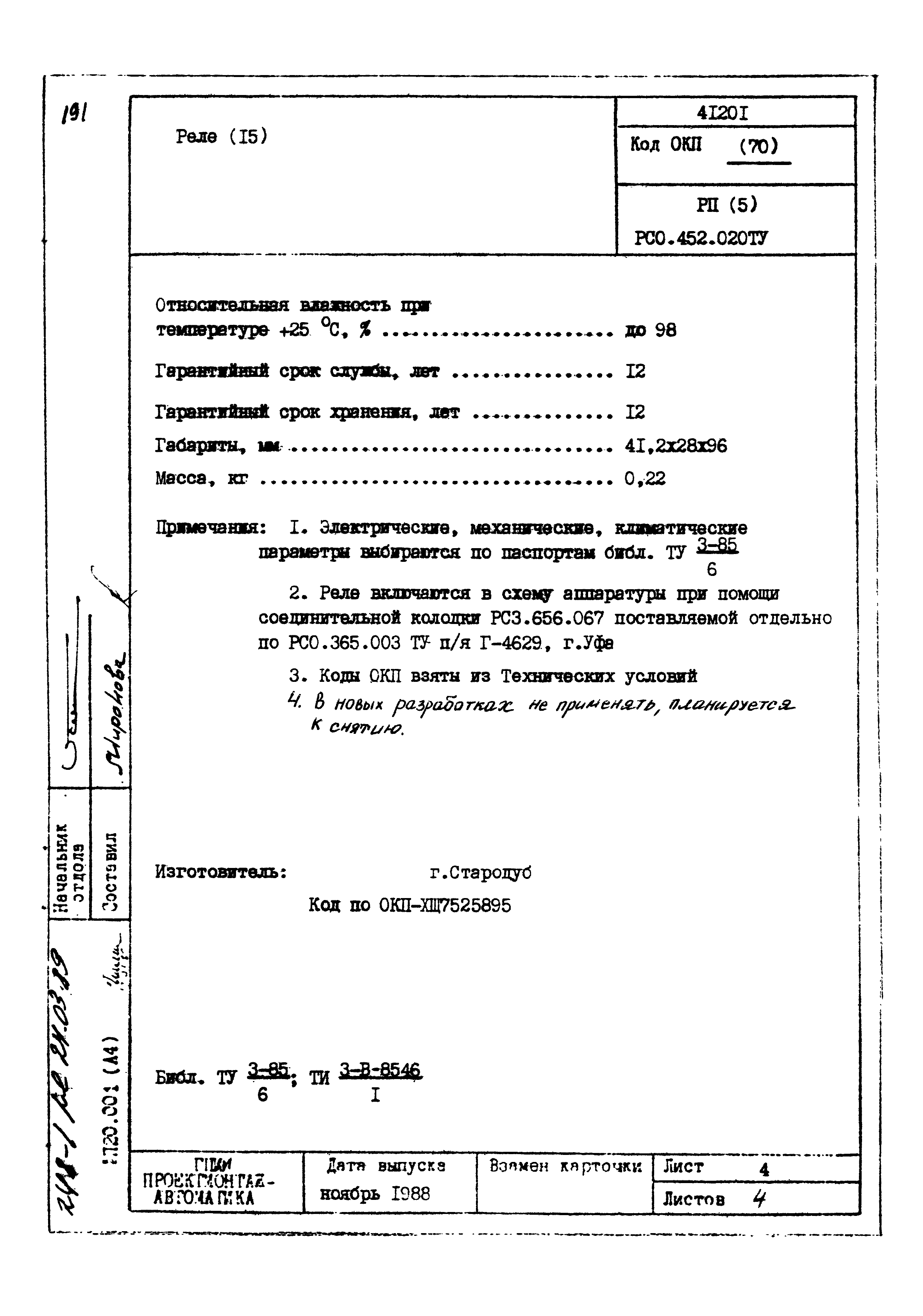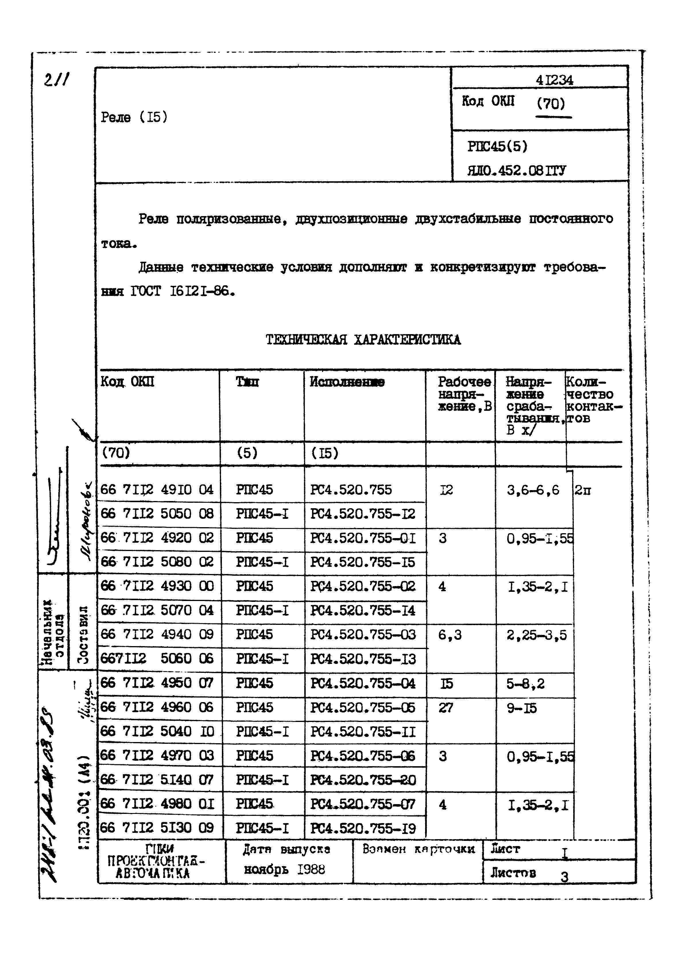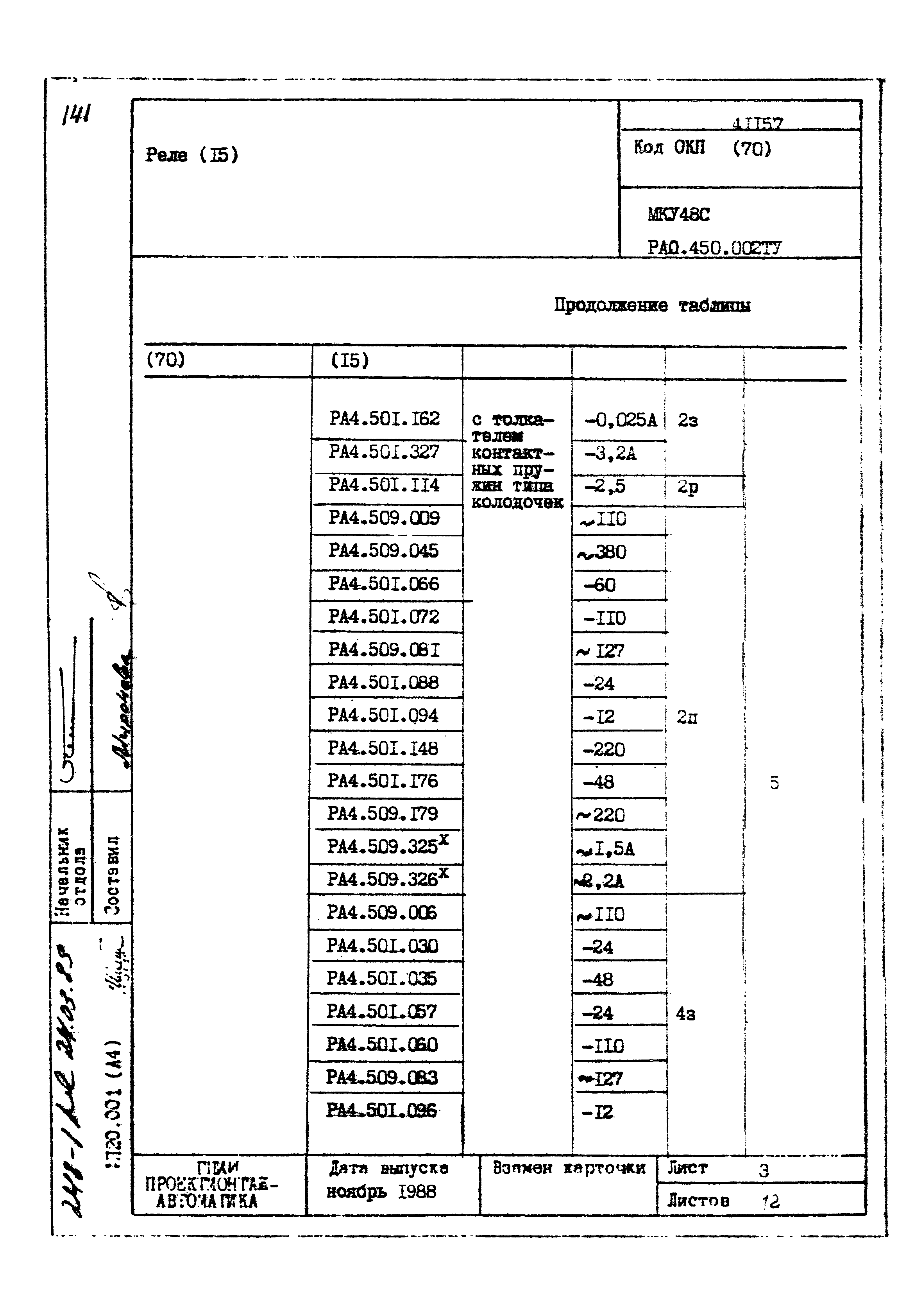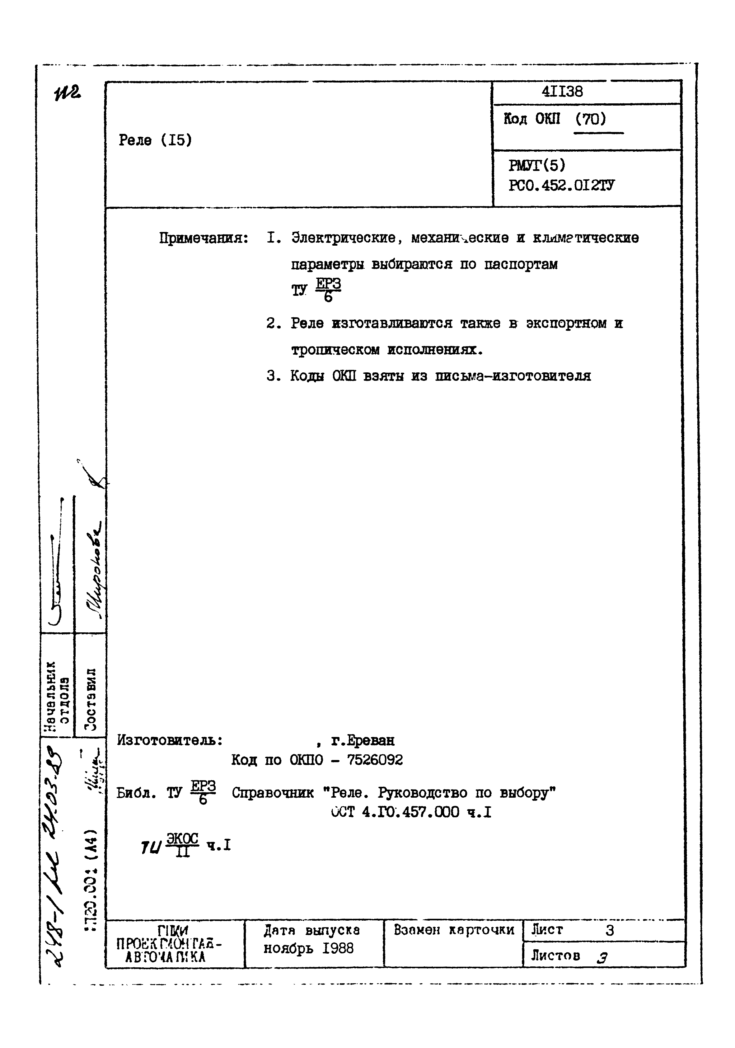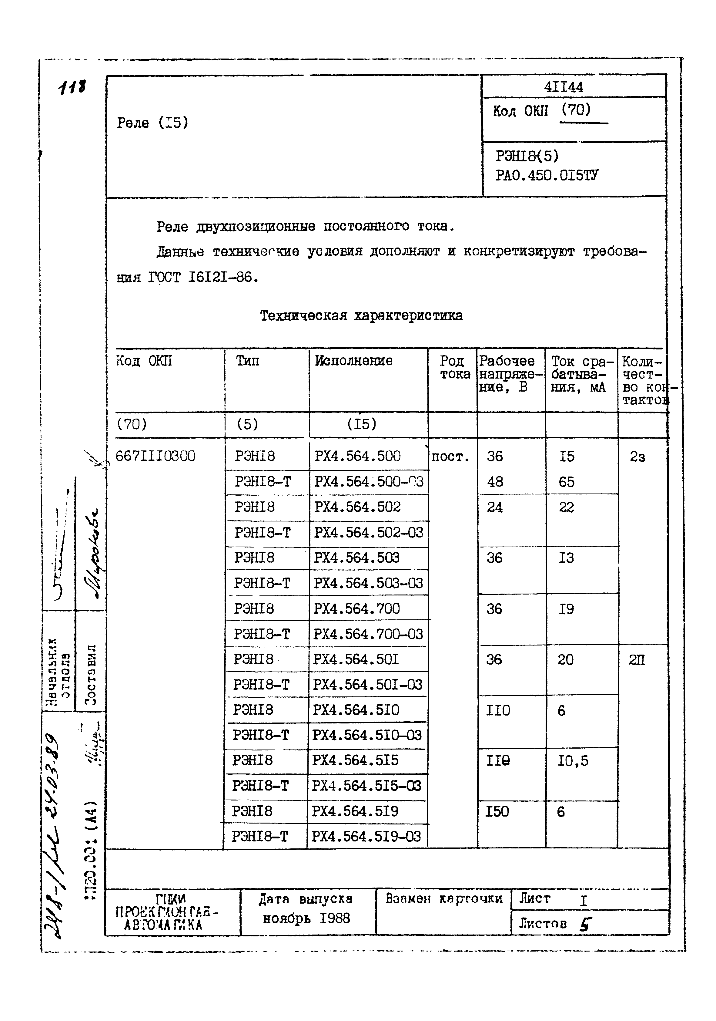 | Заменяет собой: | - «Картотека серийных приборов и средств автоматизации. Раздел 41. Реле контактные двух- и трехпозиционные» (1985 год)