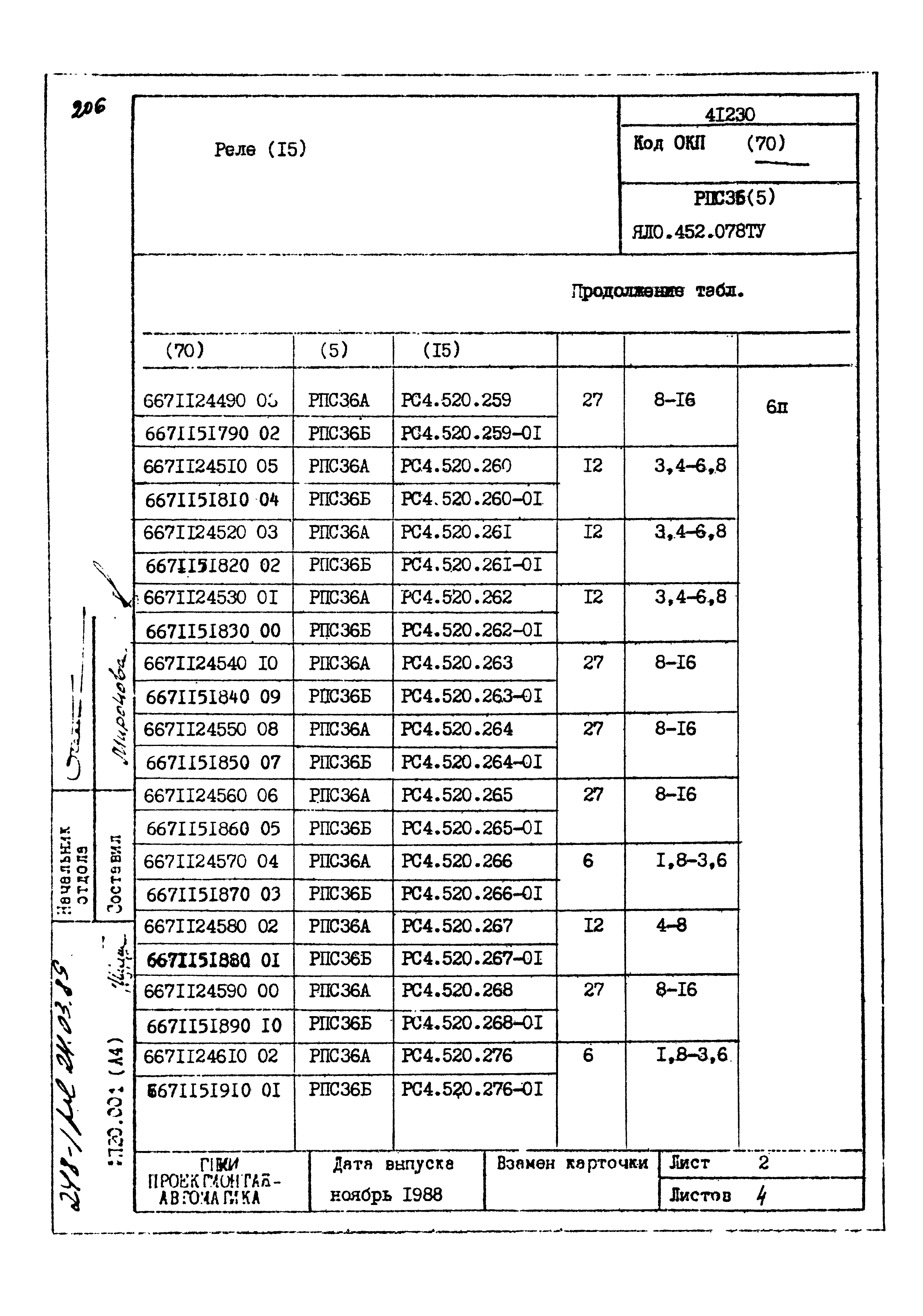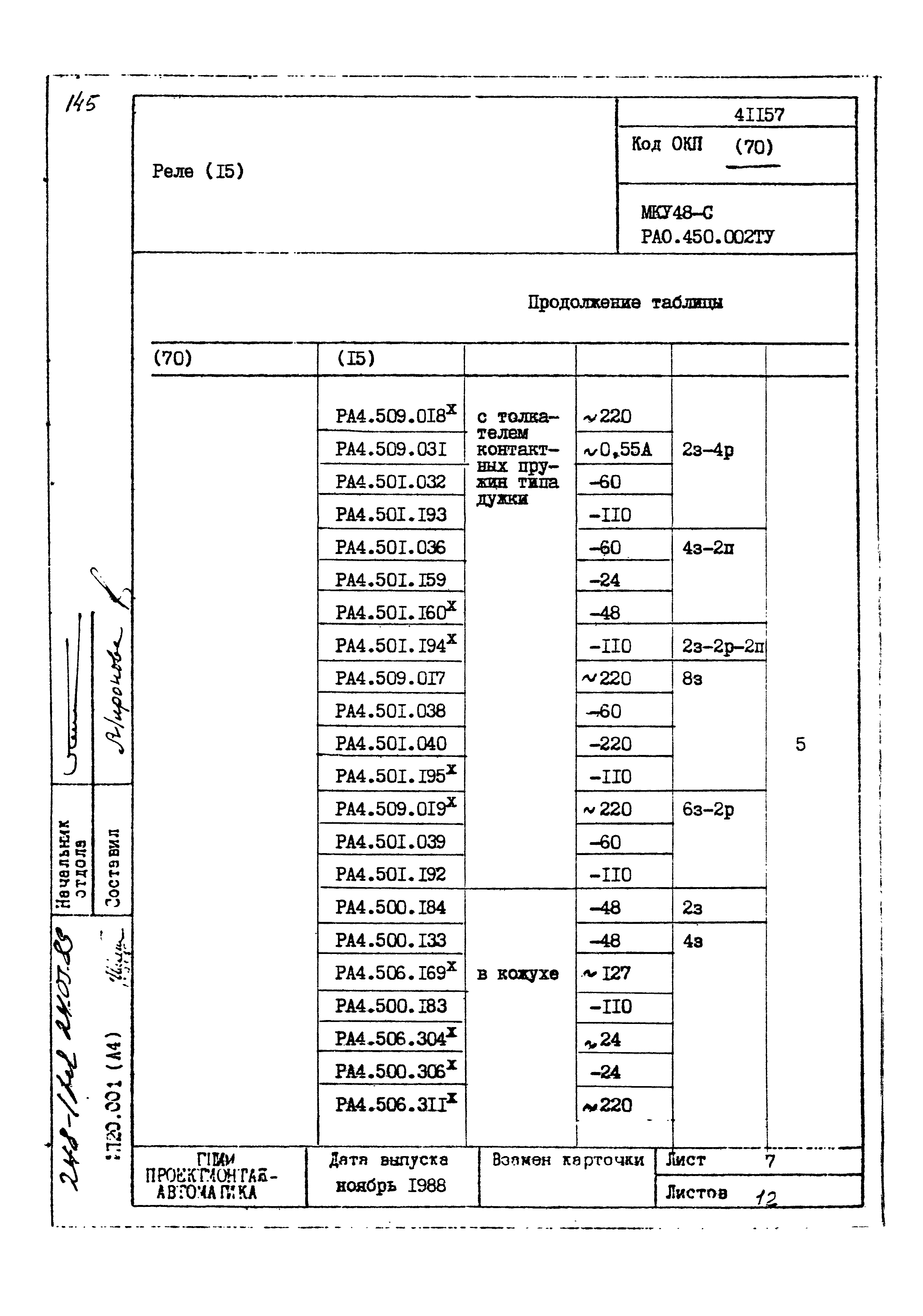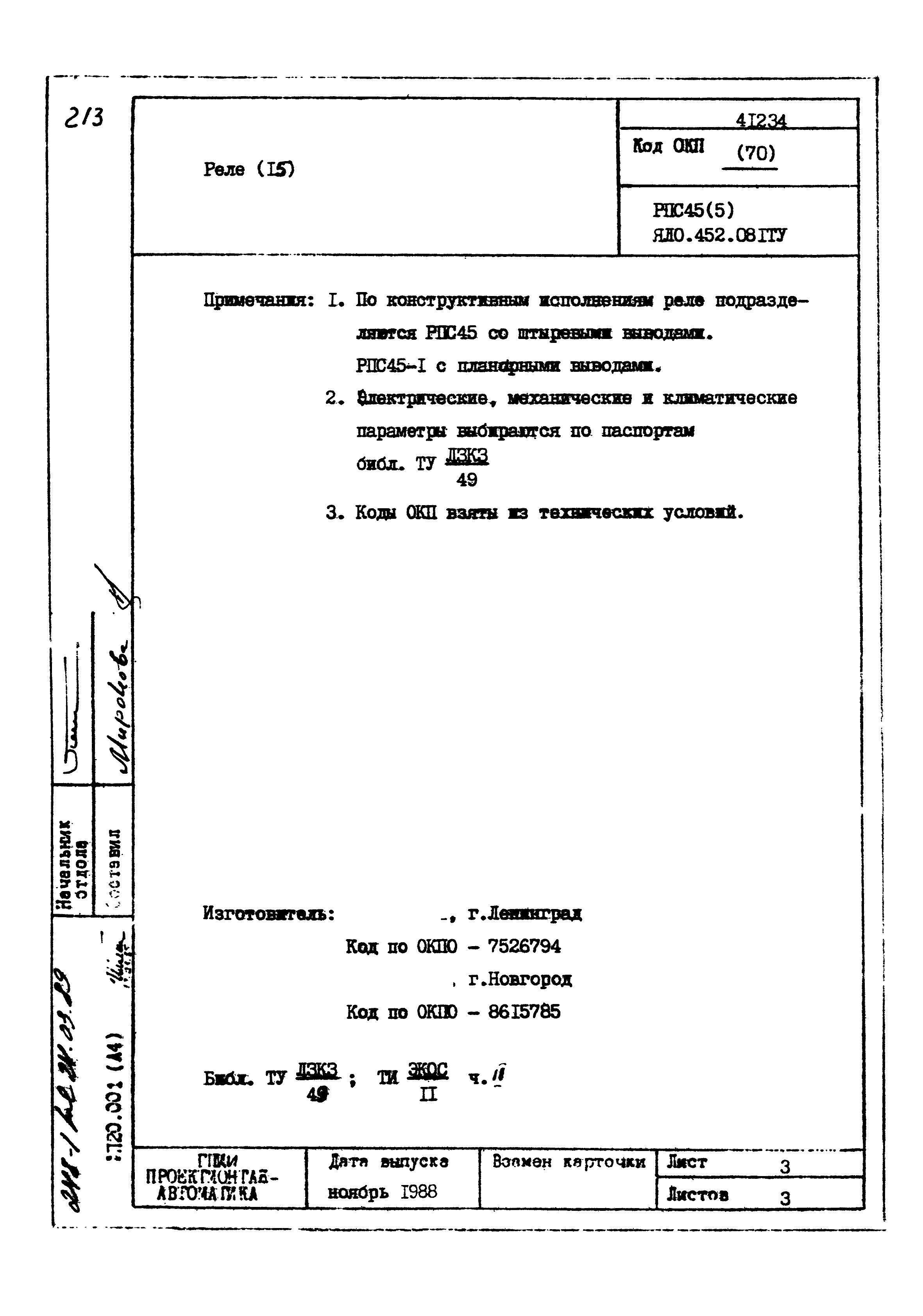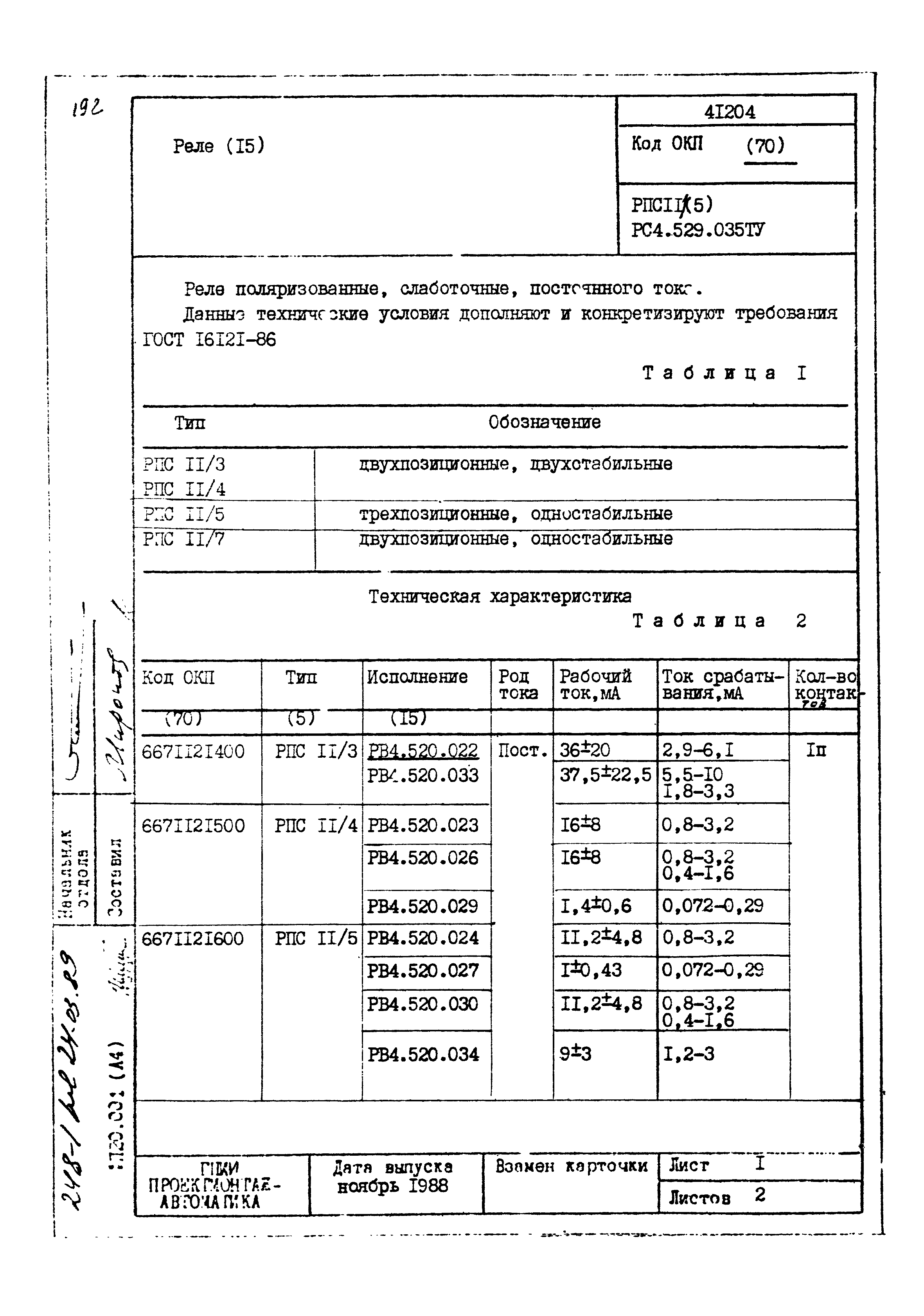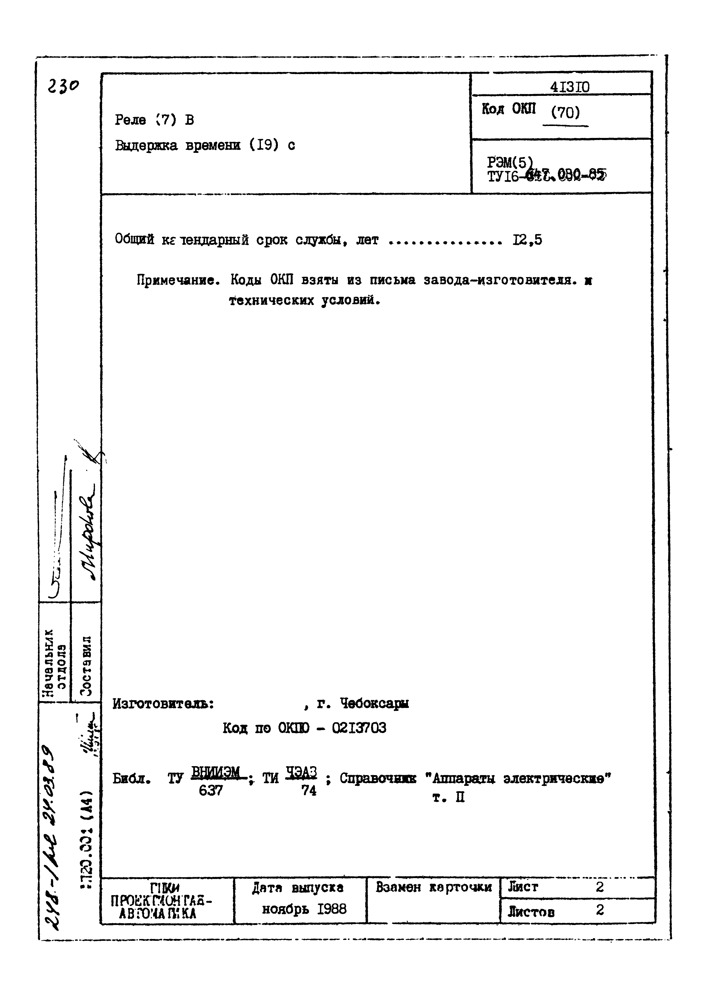 | Заменяет собой: | - «Картотека серийных приборов и средств автоматизации. Раздел 41. Реле контактные двух- и трехпозиционные» (1985 год)