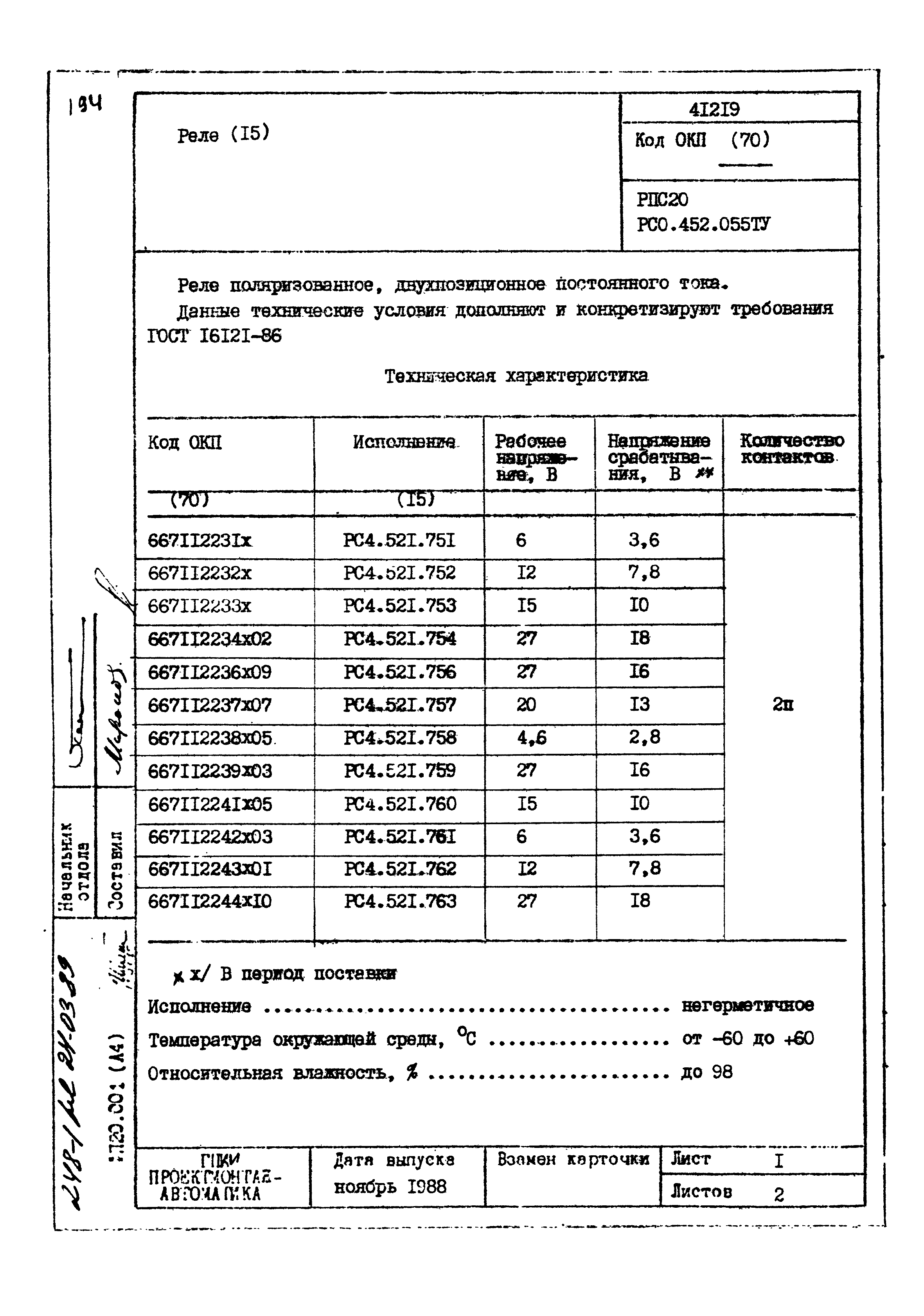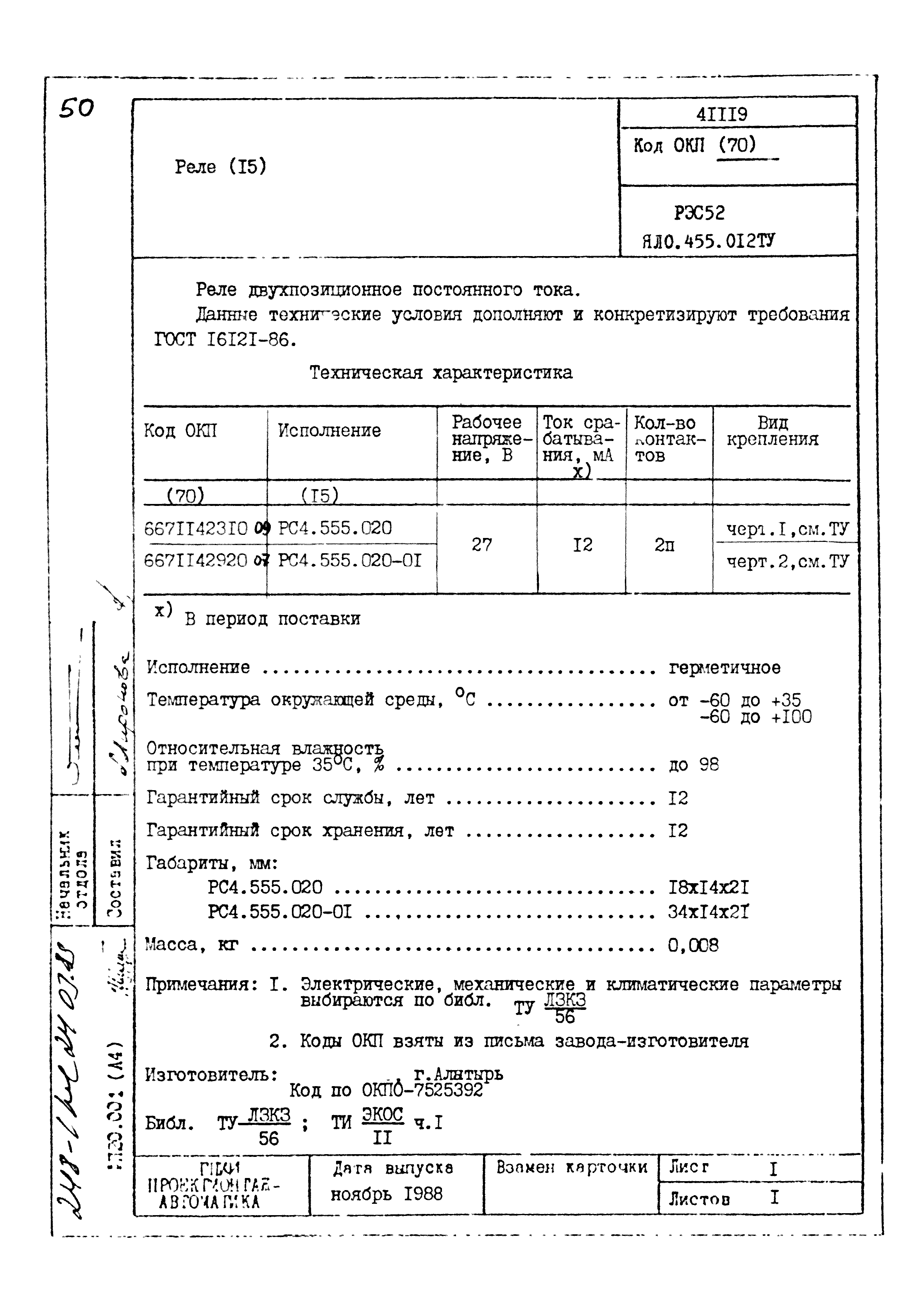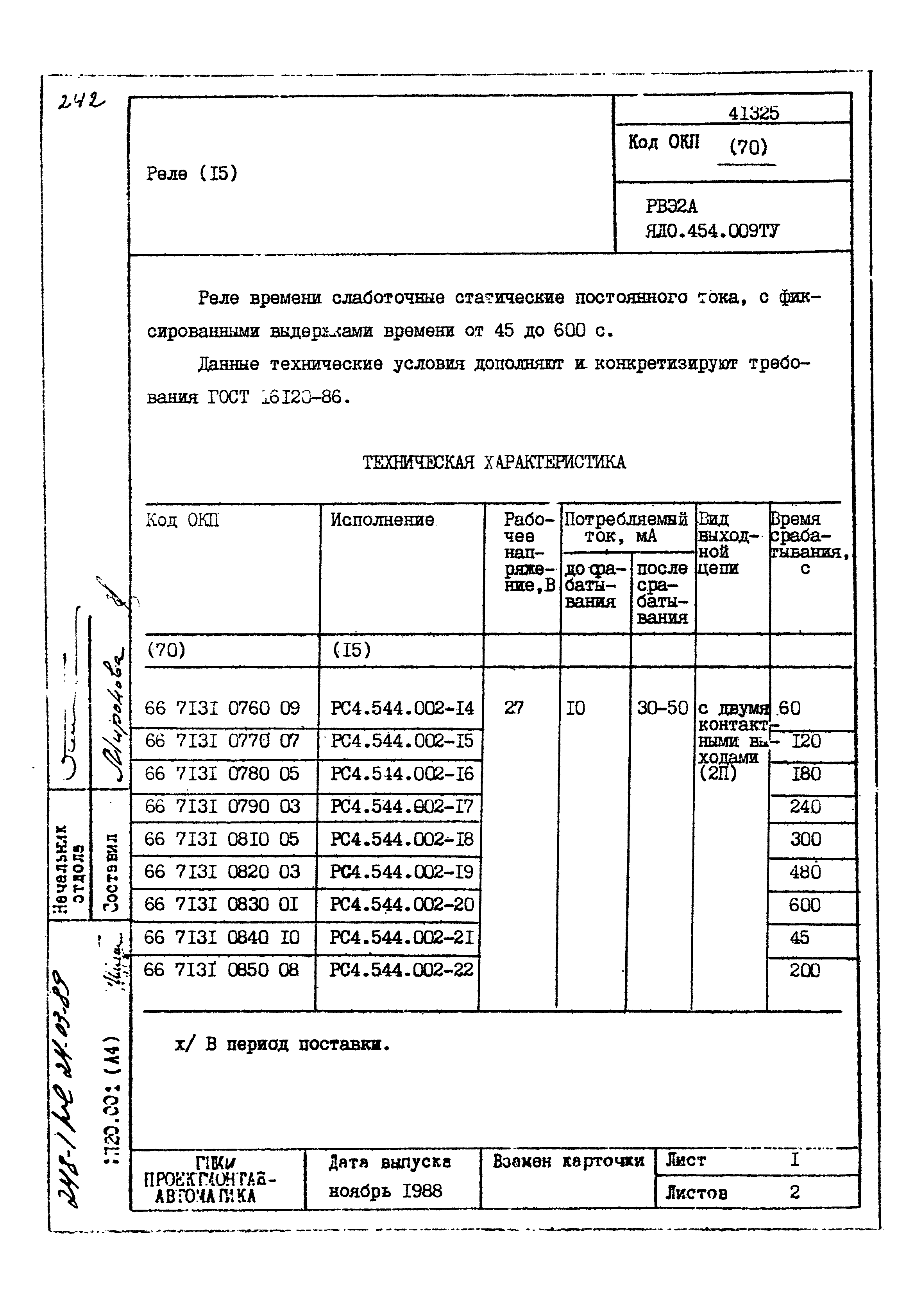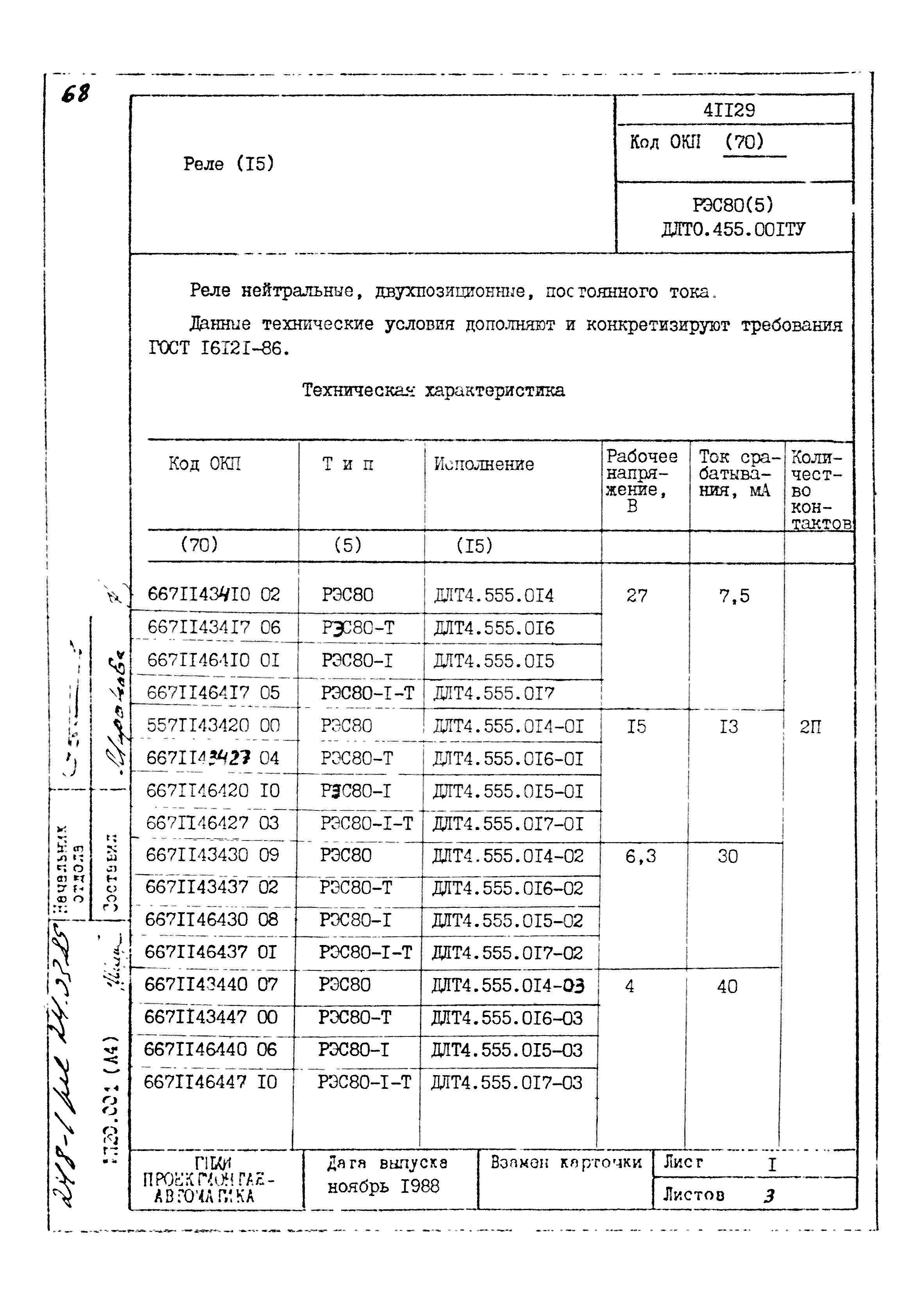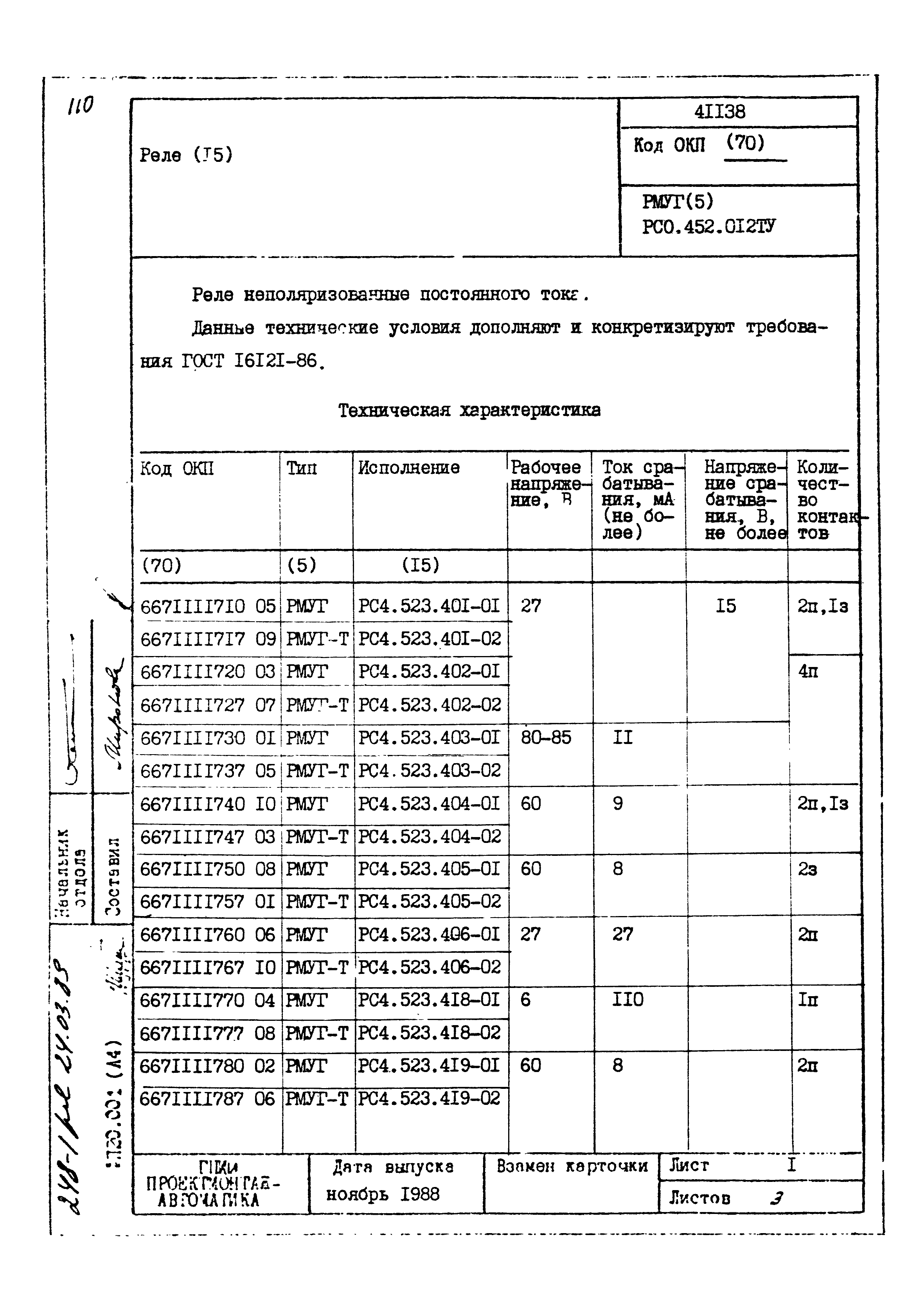 | Заменяет собой: | - «Картотека серийных приборов и средств автоматизации. Раздел 41. Реле контактные двух- и трехпозиционные» (1985 год)
